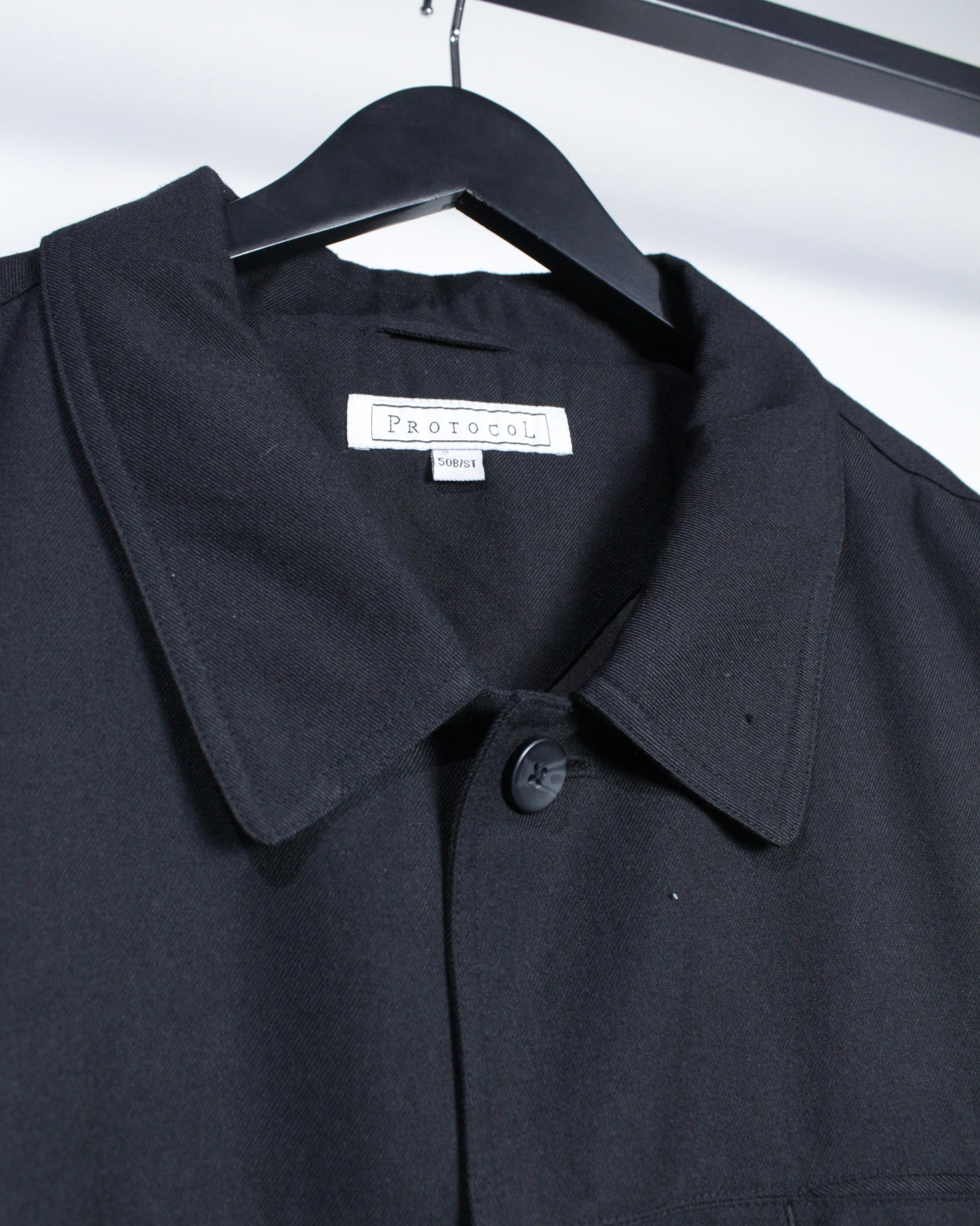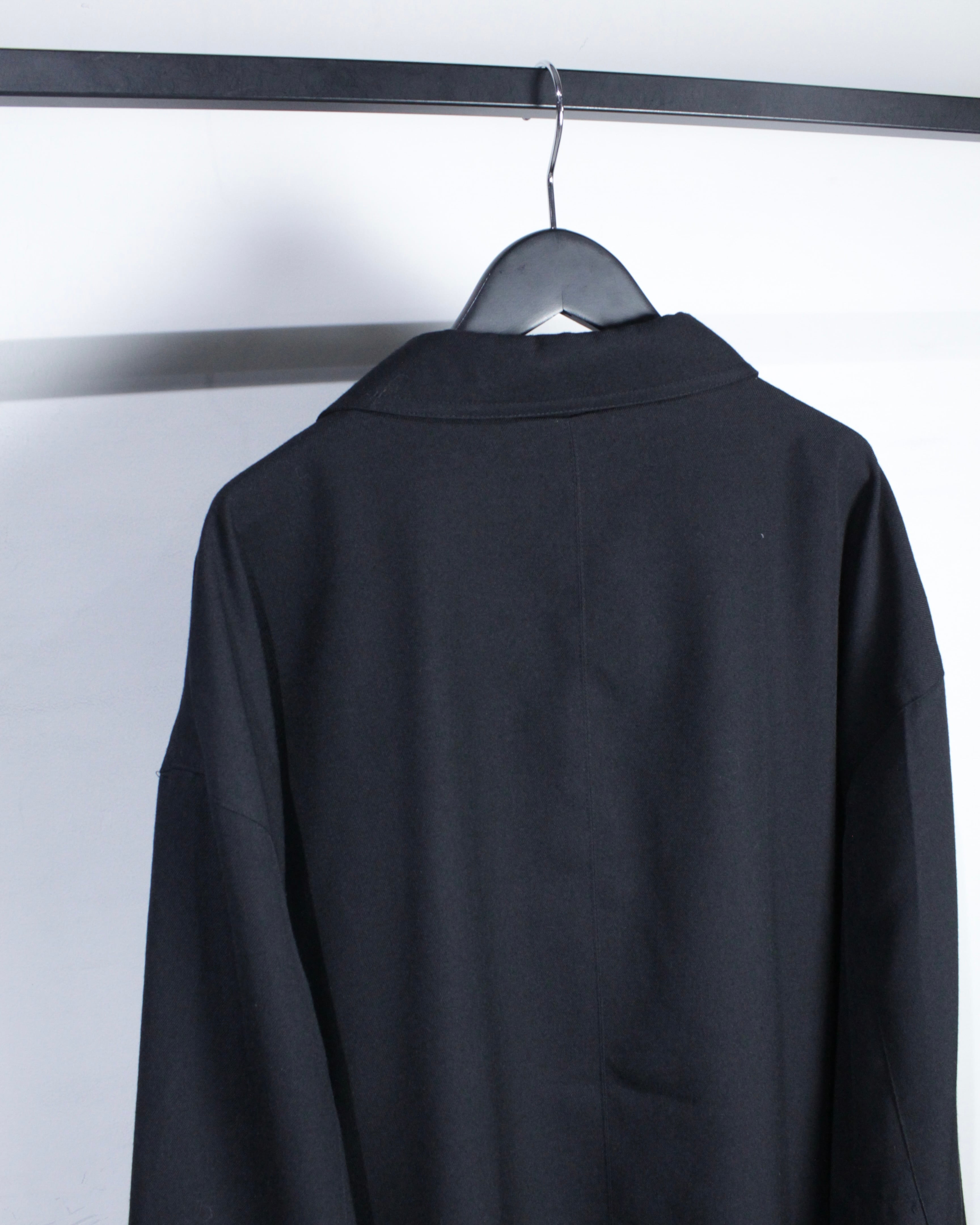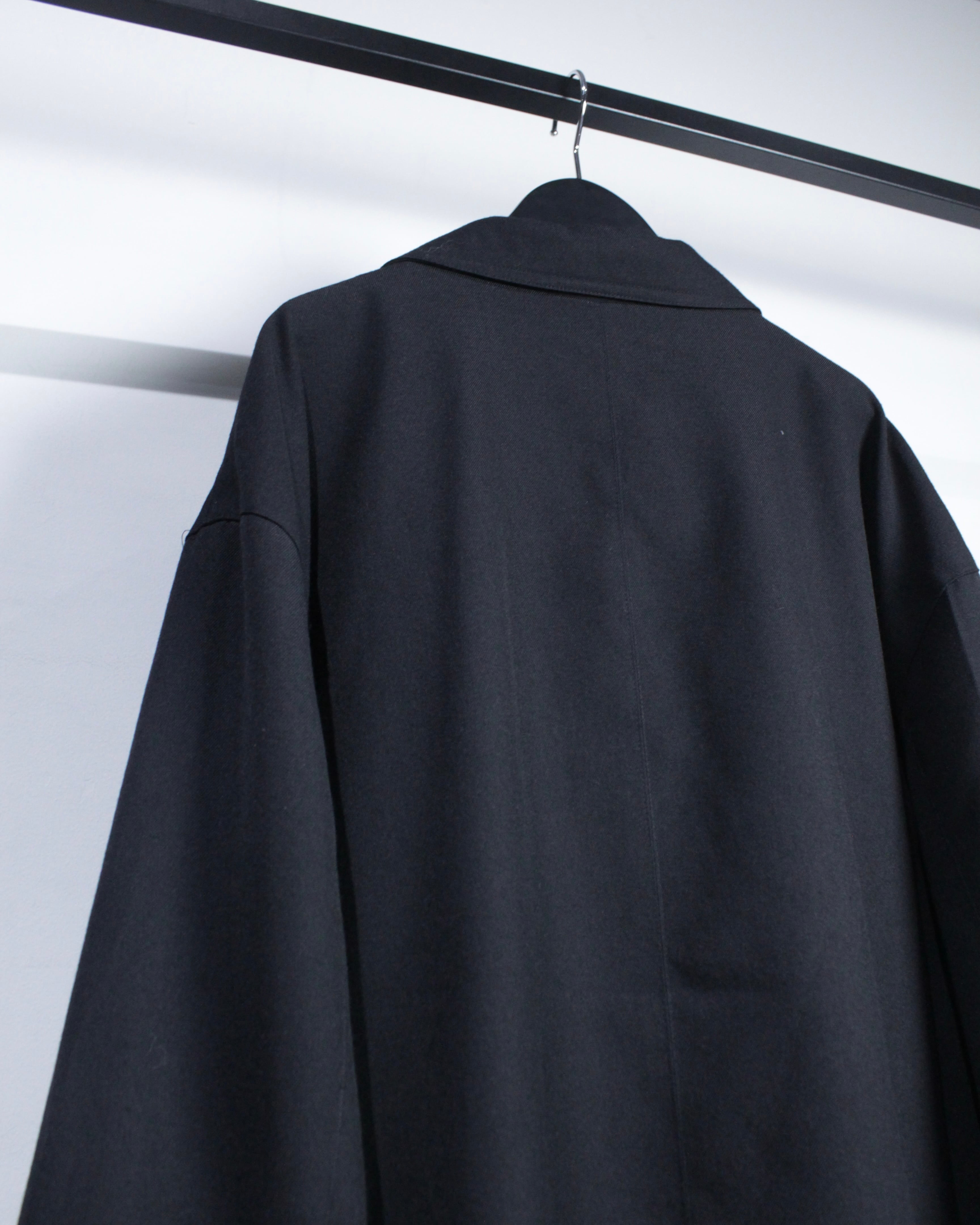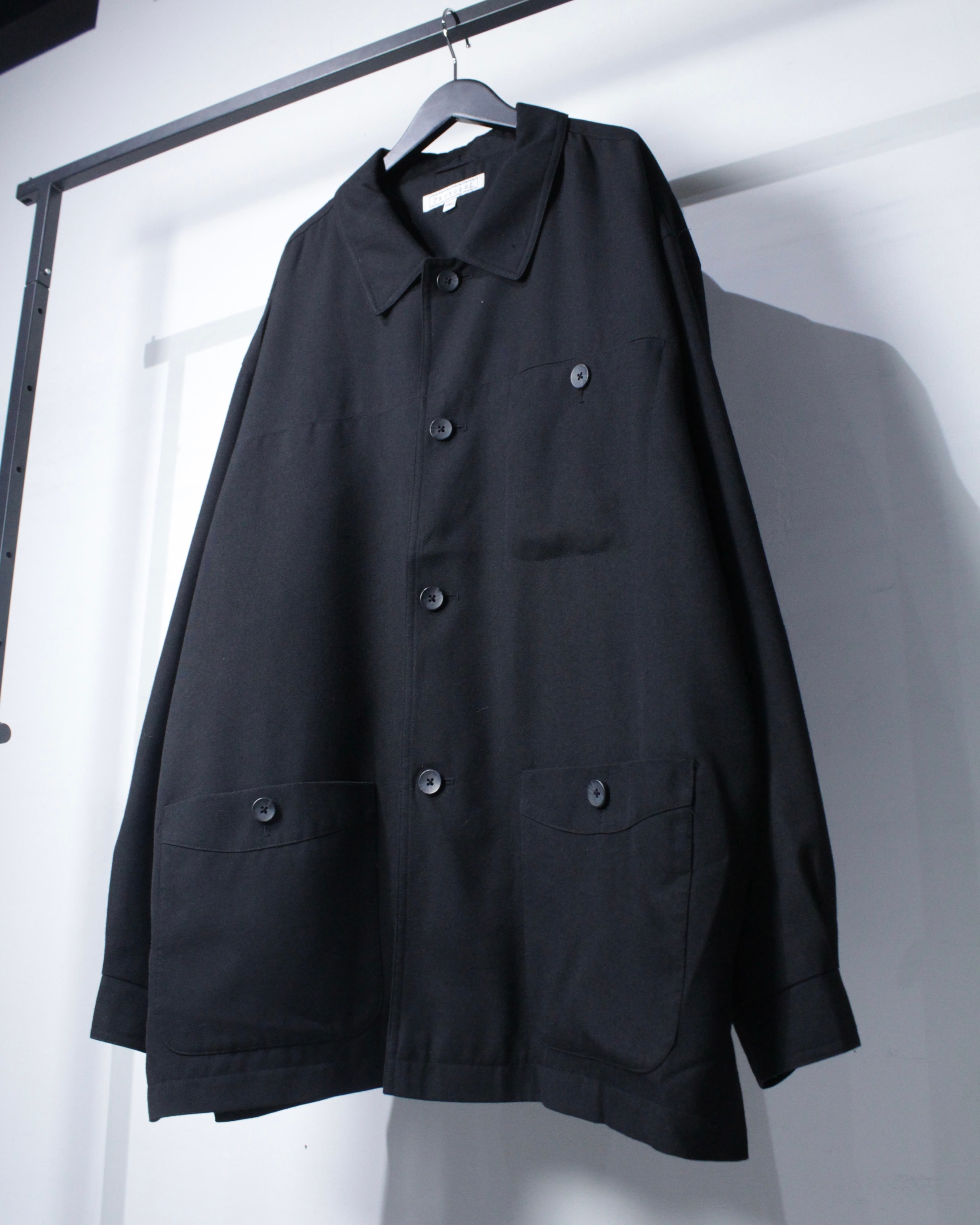 ブラックを基調に、無駄を削ぎ落とした佇まいが魅力のカバーオール型シャツジャケット。