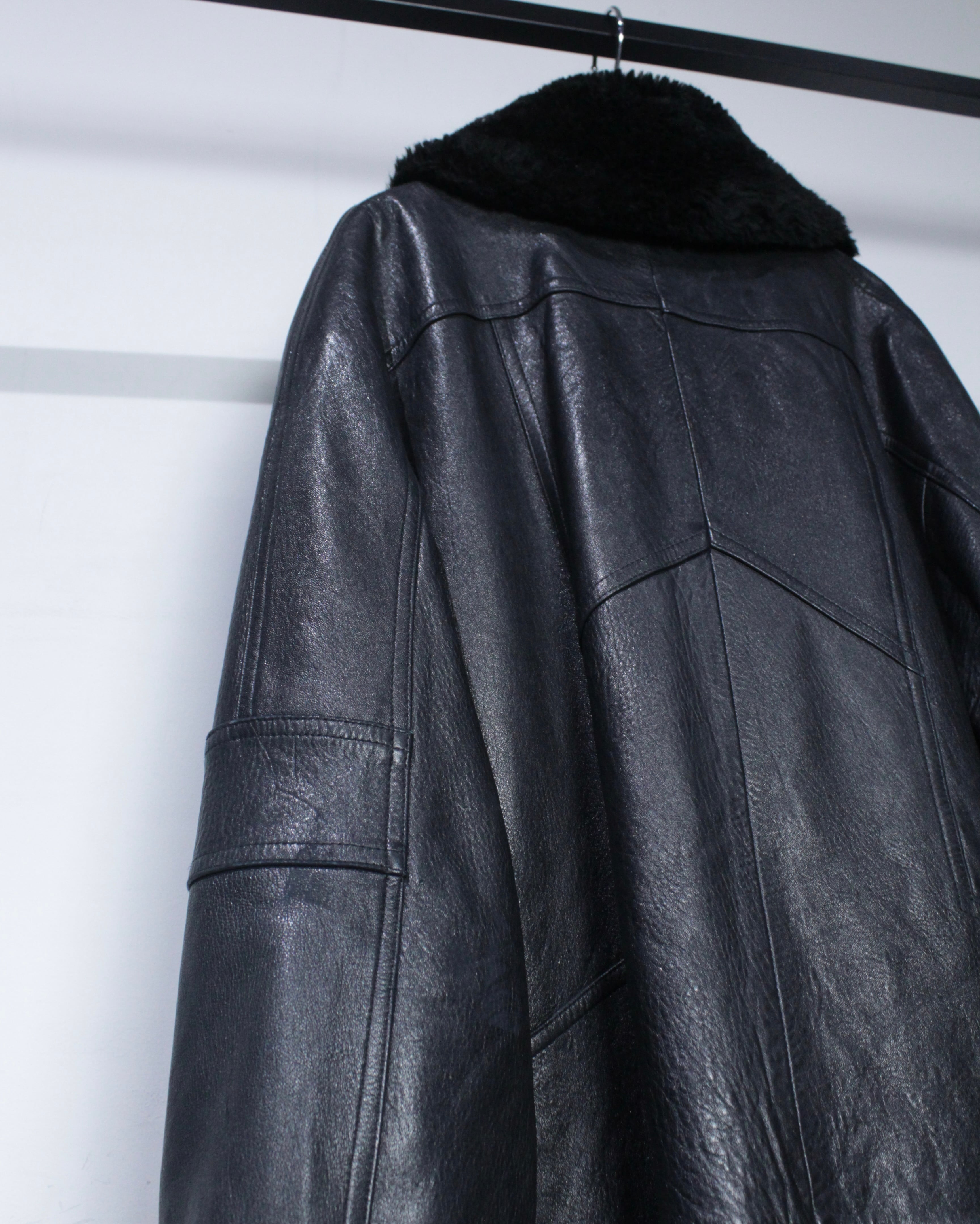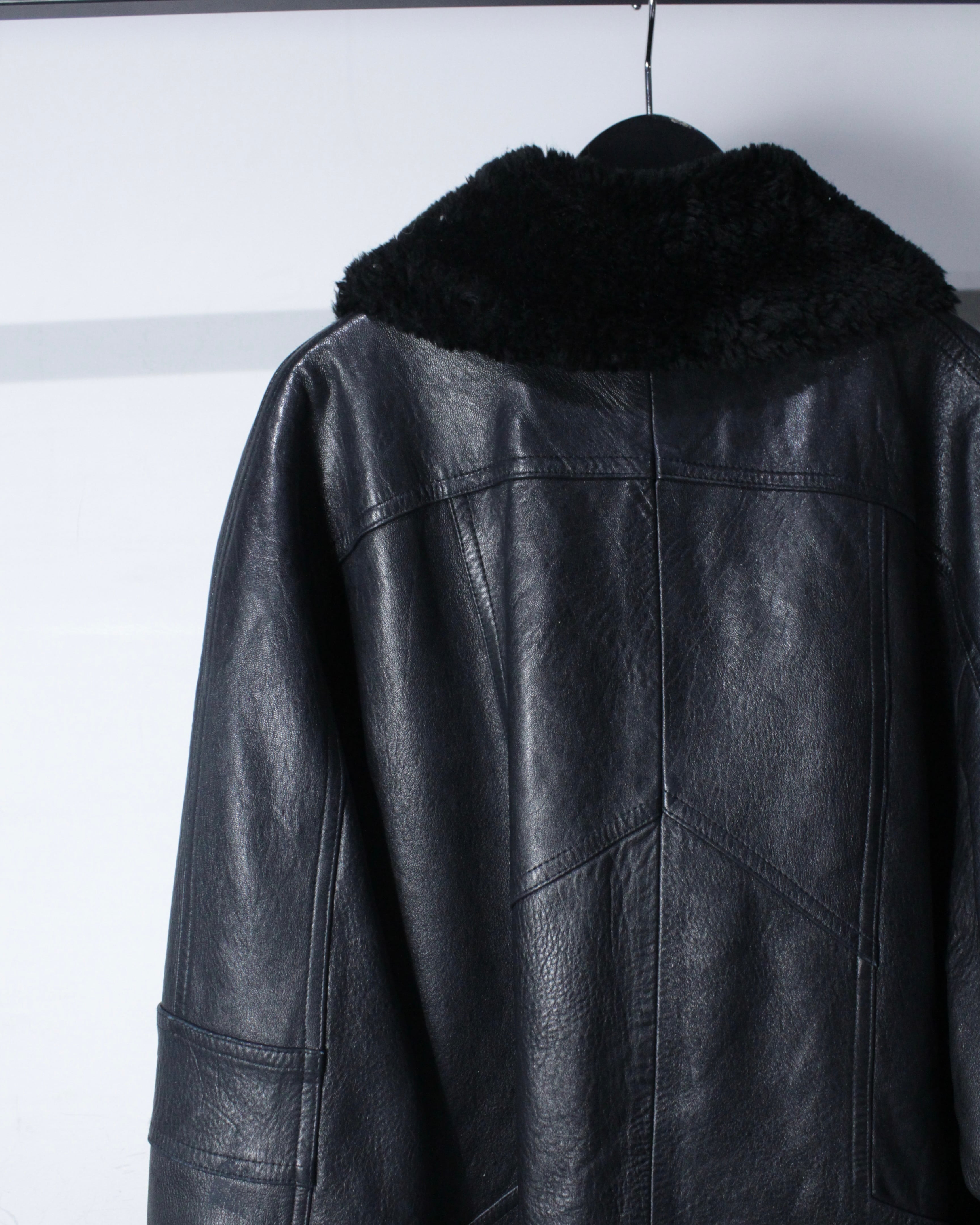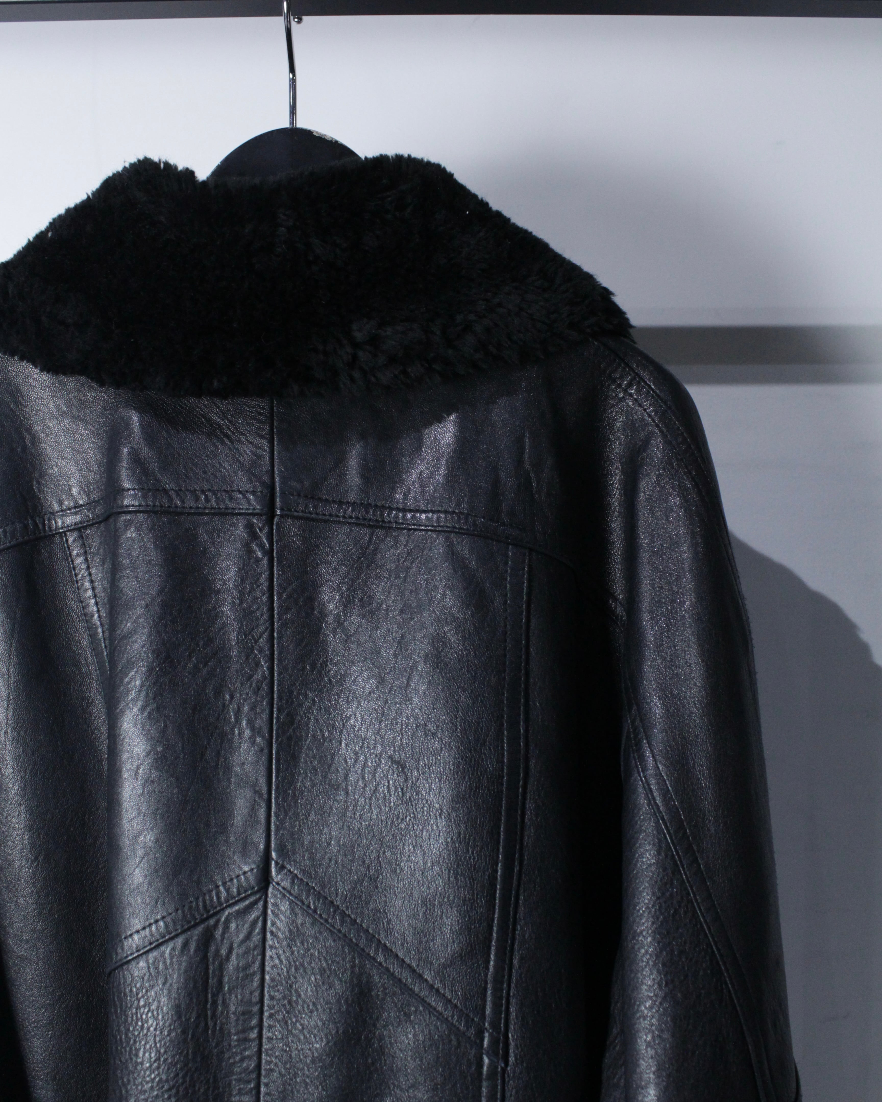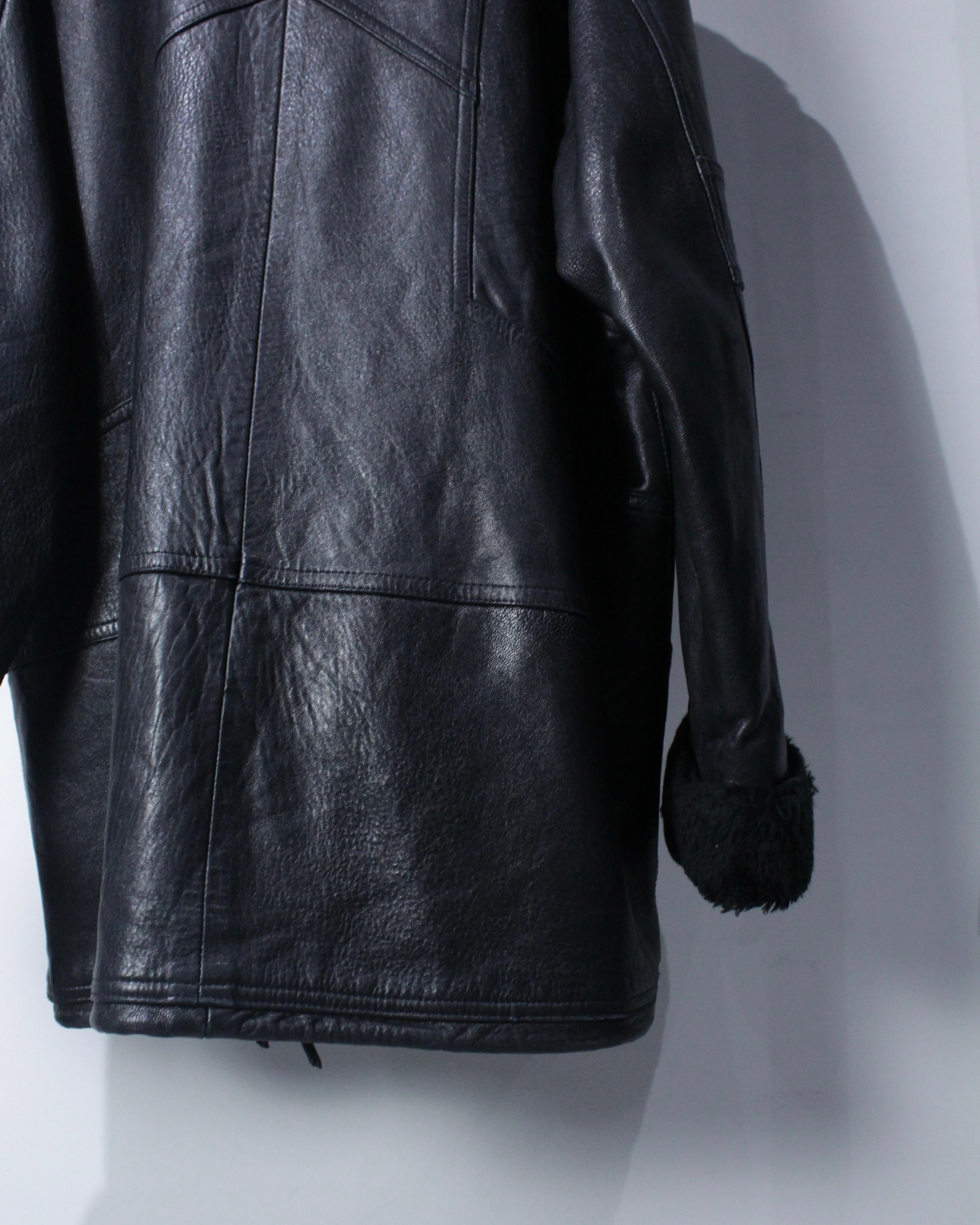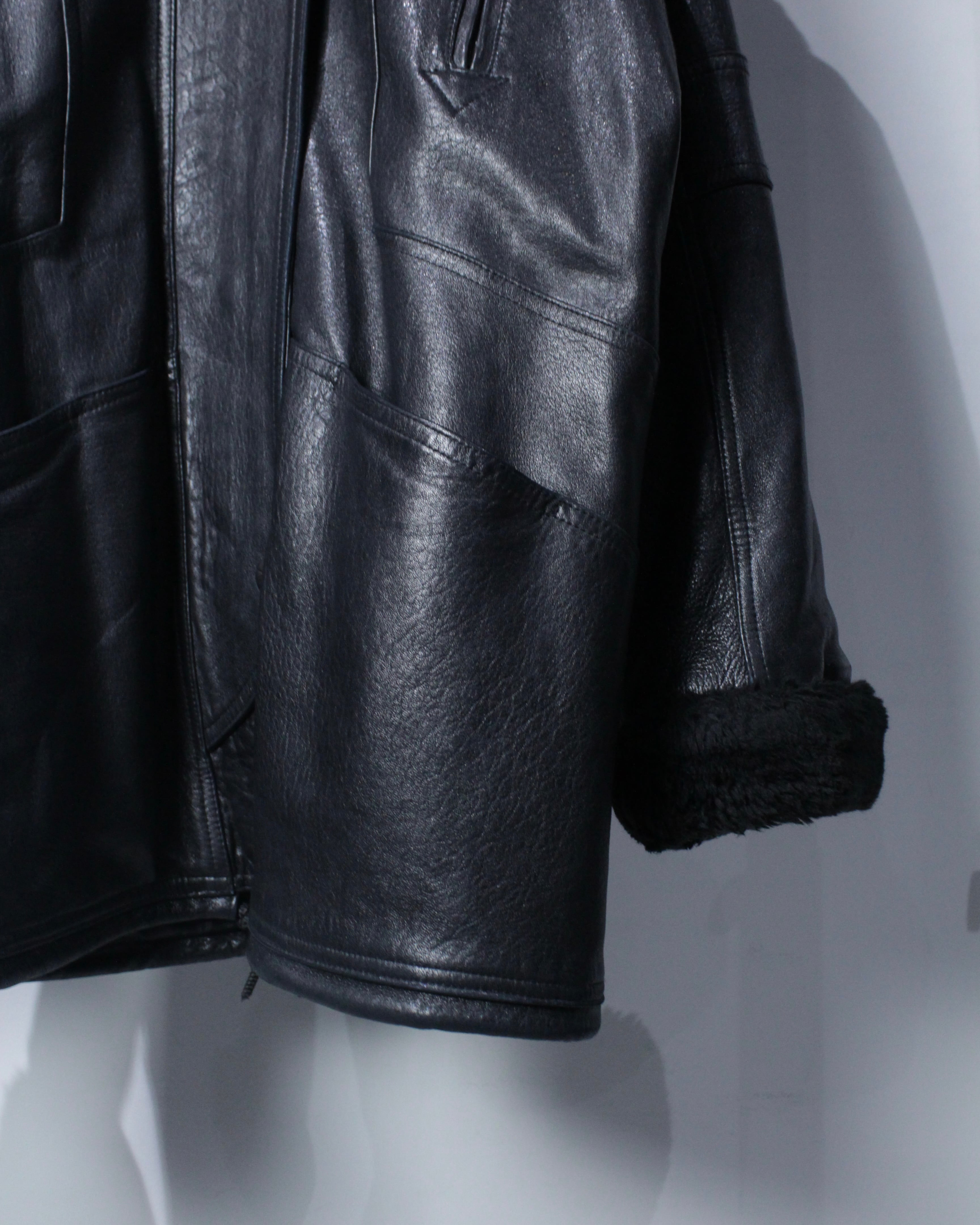ボディにはしっかりとした厚みとコシを備えたレザーを採用。襟元と袖口にはボアを切り替えを施し、視覚的なアクセントになるだけでなく、防寒性も高く、首元や手首をしっかりと包み今時期も温かく着用出来る仕立てに。