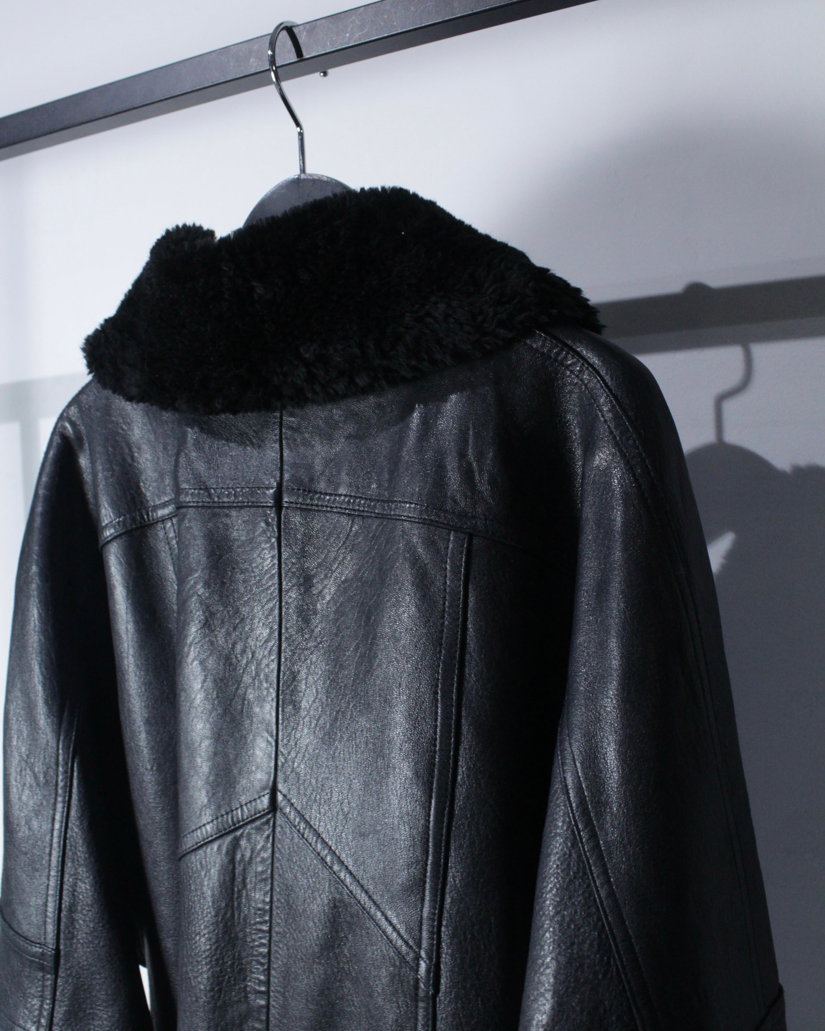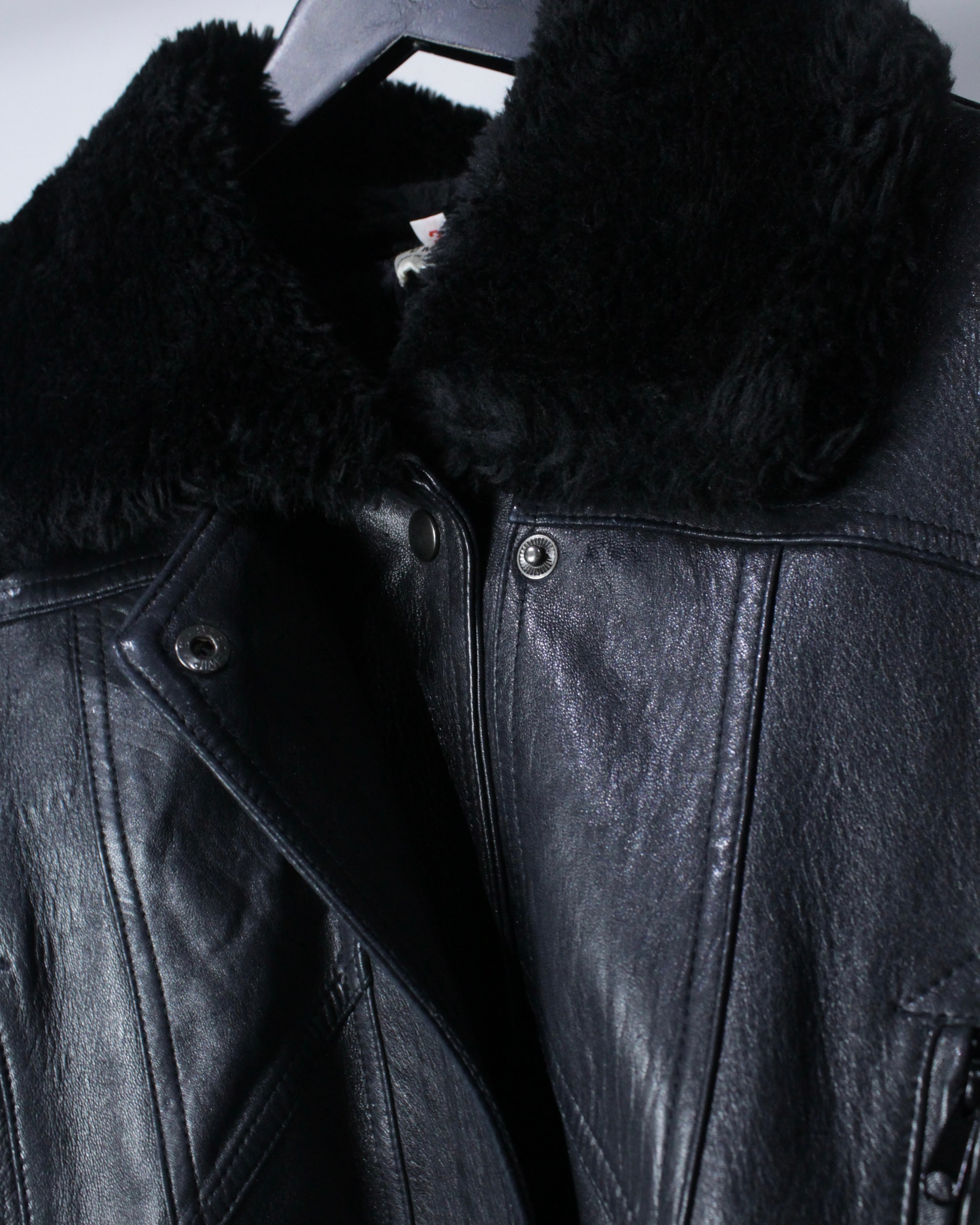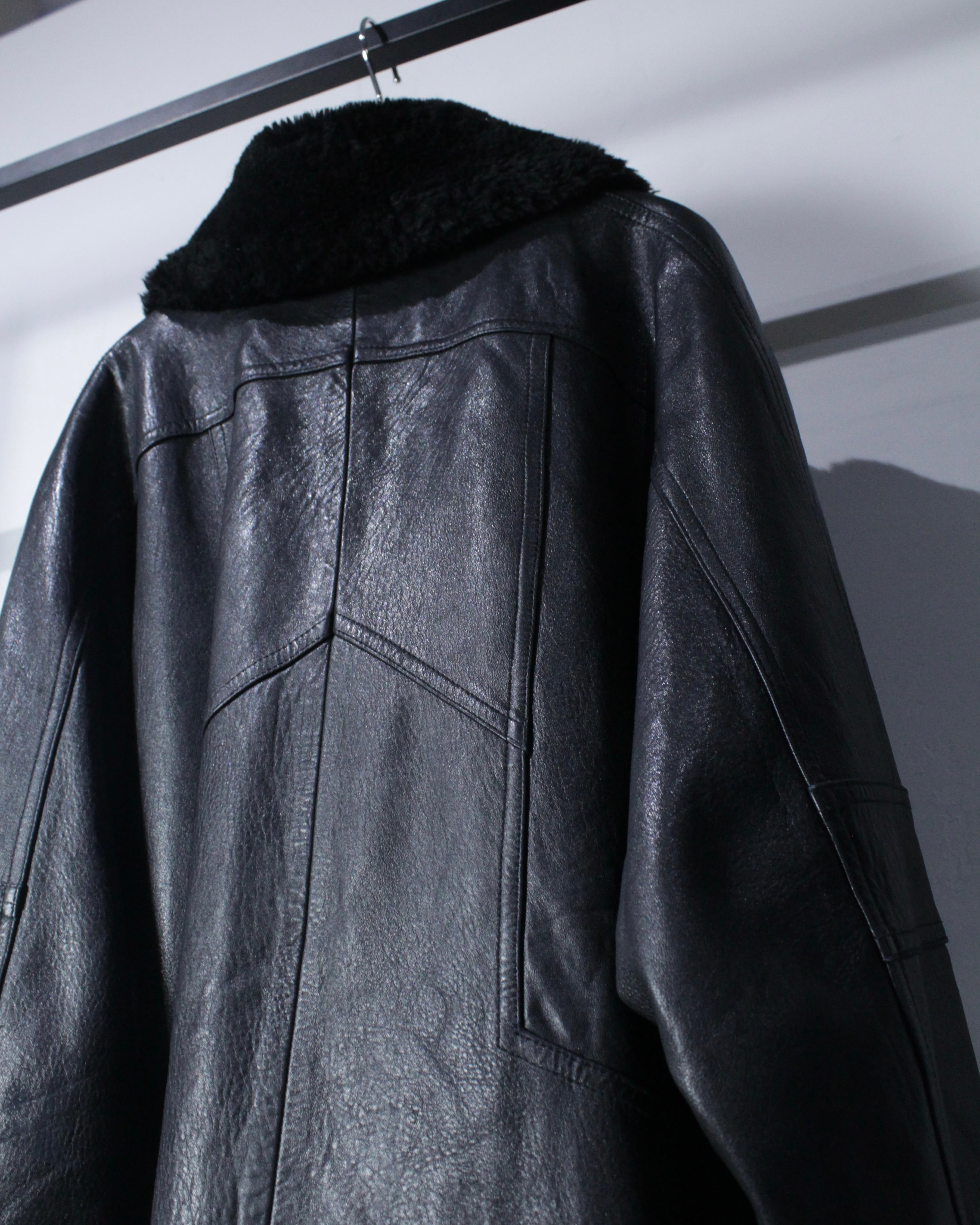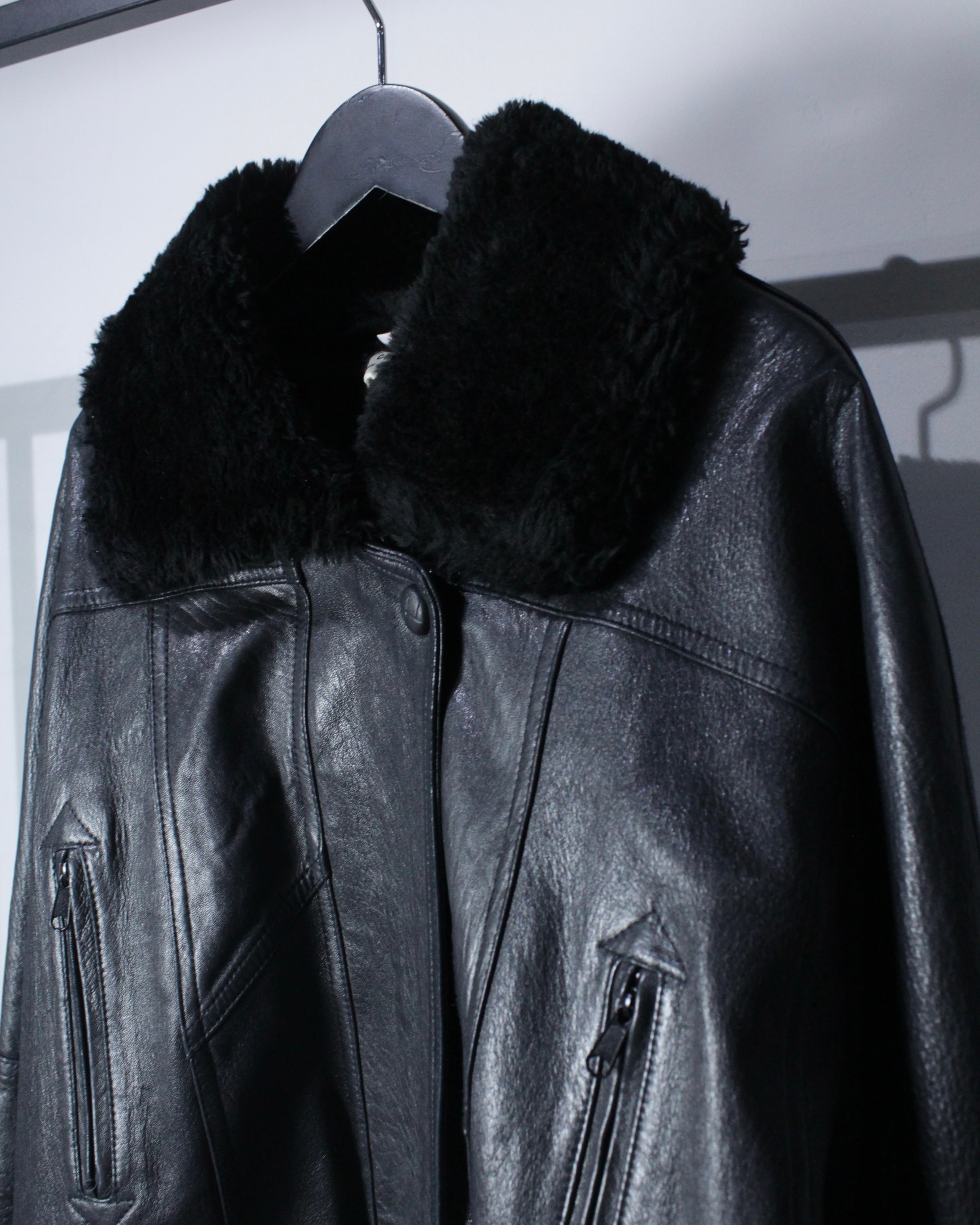 ボディにはしっかりとした厚みとコシを備えたレザーを採用。襟元と袖口にはボアを切り替えを施し、視覚的なアクセントになるだけでなく、防寒性も高く、首元や手首をしっかりと包み今時期も温かく着用出来る仕立てに。