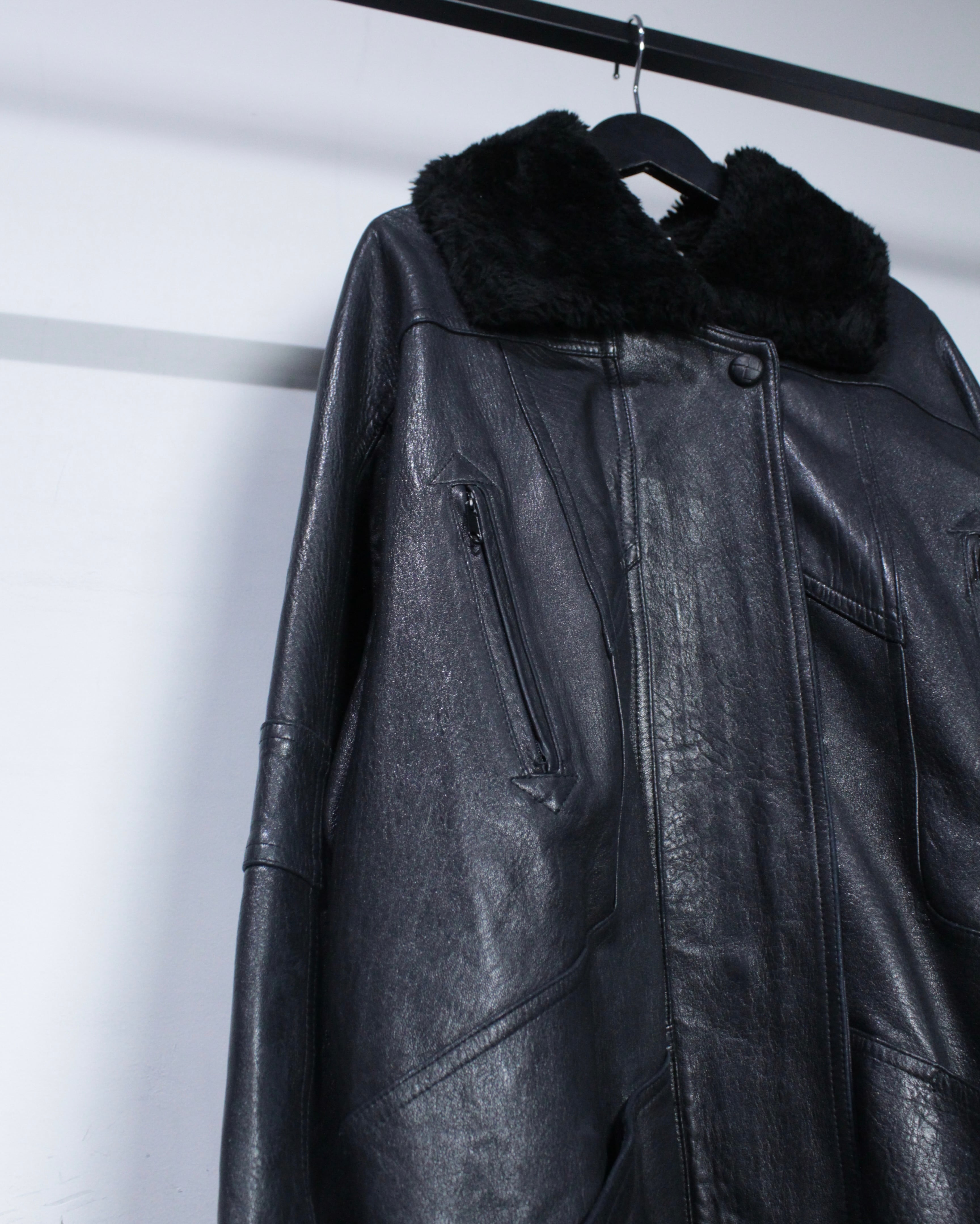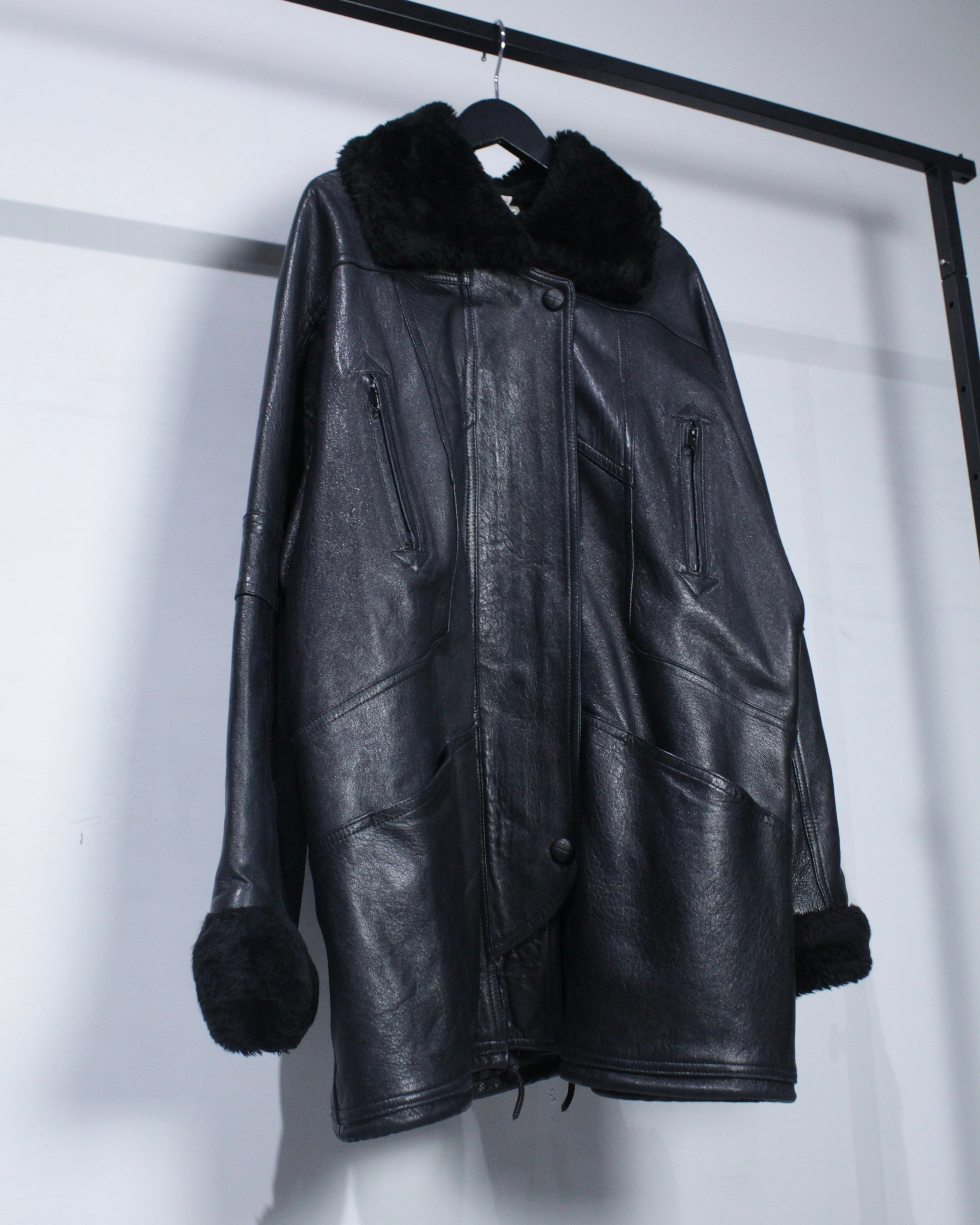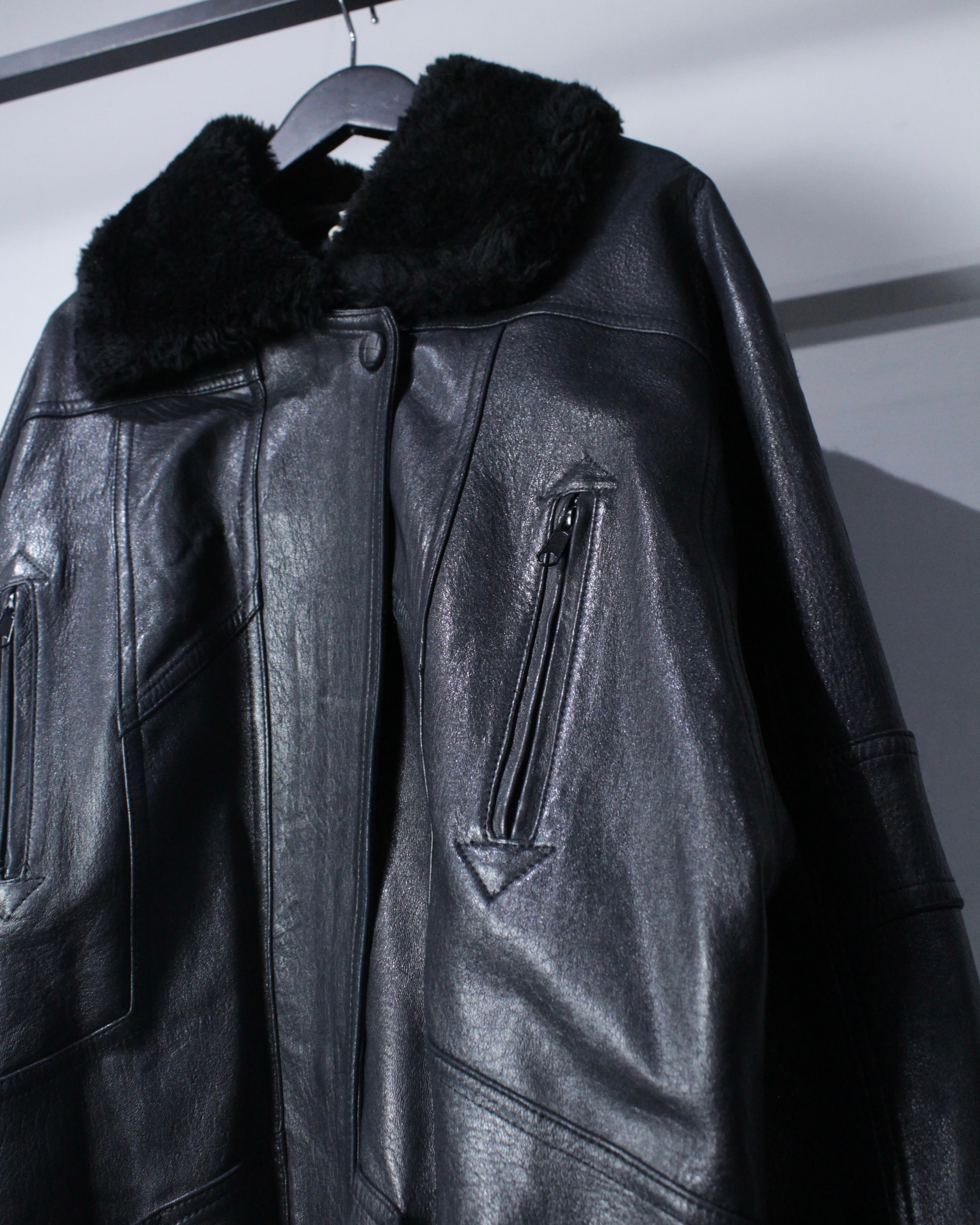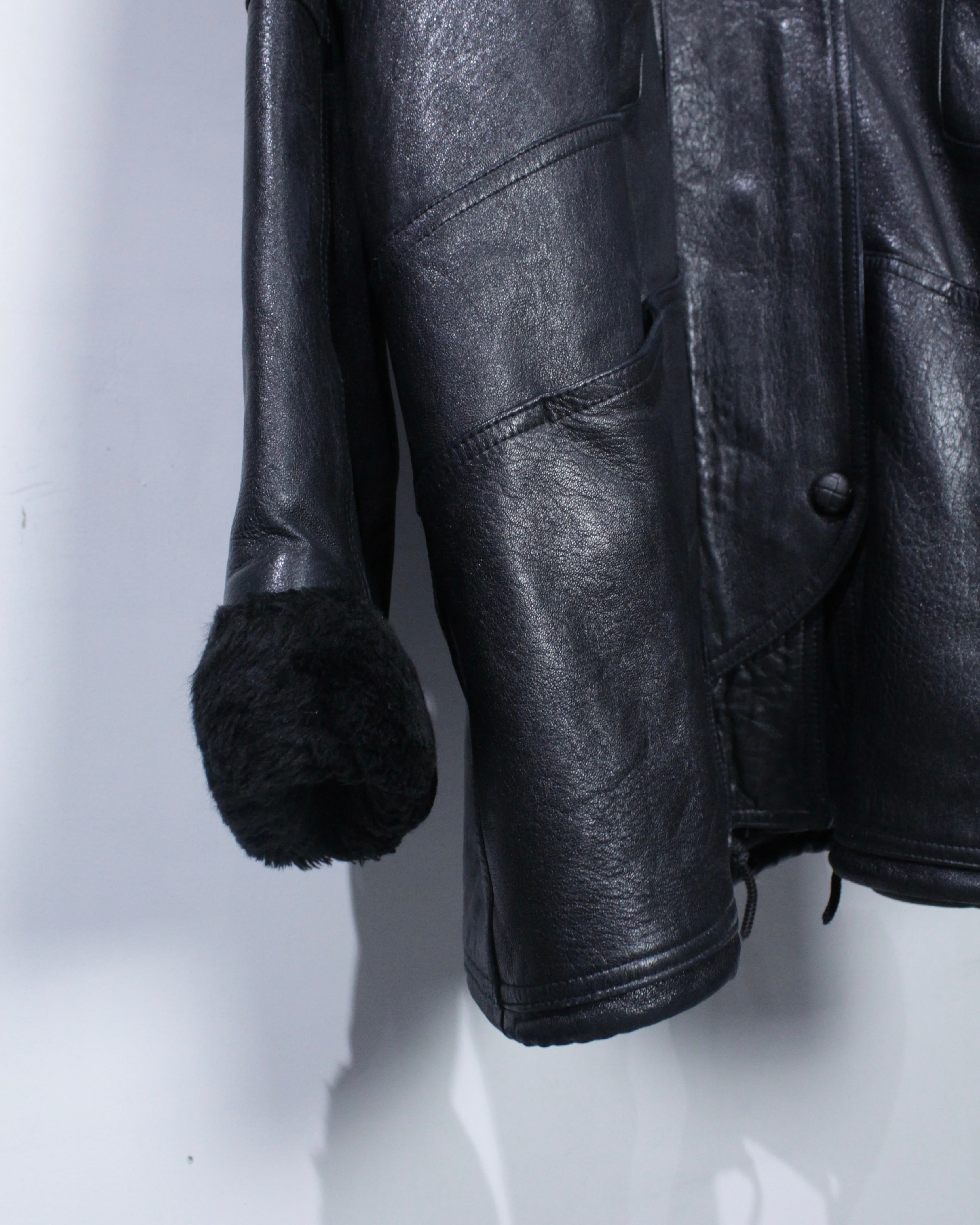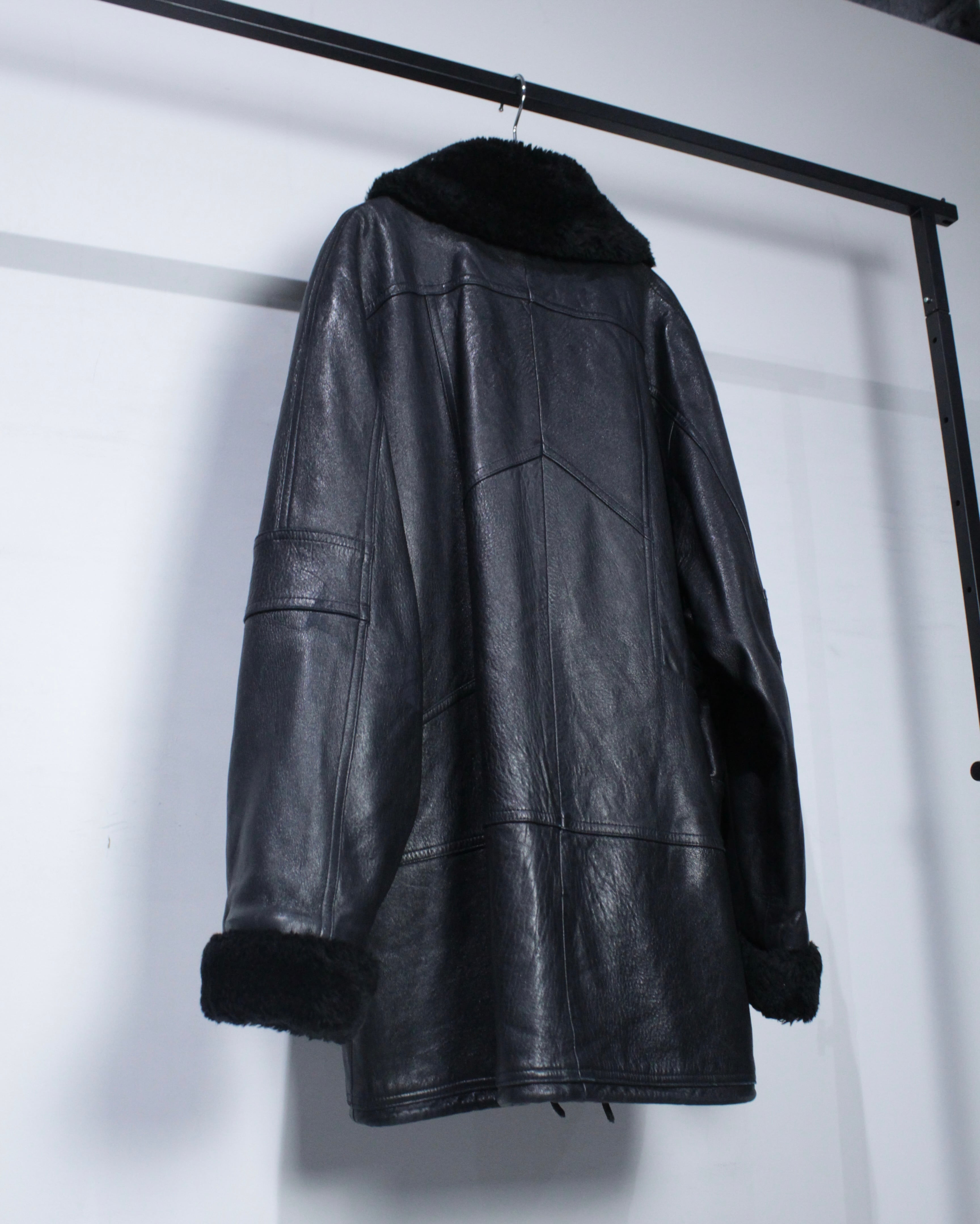 ボディにはしっかりとした厚みとコシを備えたレザーを採用。襟元と袖口にはボアを切り替えを施し、視覚的なアクセントになるだけでなく、防寒性も高く、首元や手首をしっかりと包み今時期も温かく着用出来る仕立てに。