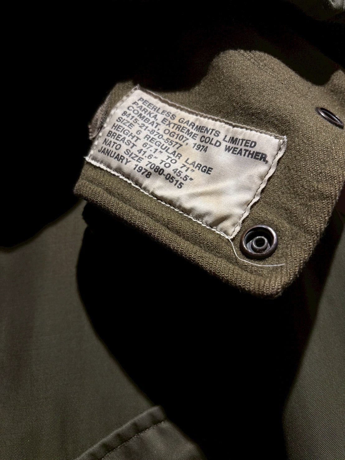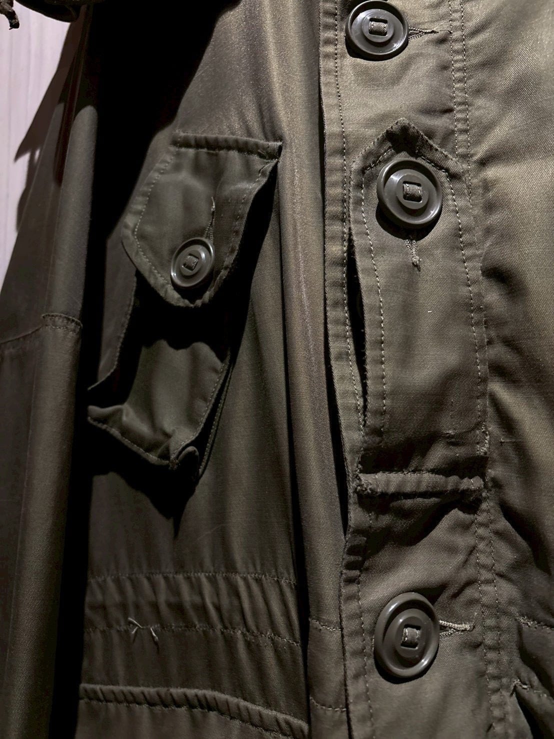 ナイロンとコットンから成るハリのあるソリッドなシェルに、立体的なポケット、ダブルジップ仕様、大きめのボタンとカナダ軍特有の重厚感あるディテールがしっかりと盛り込まれています。