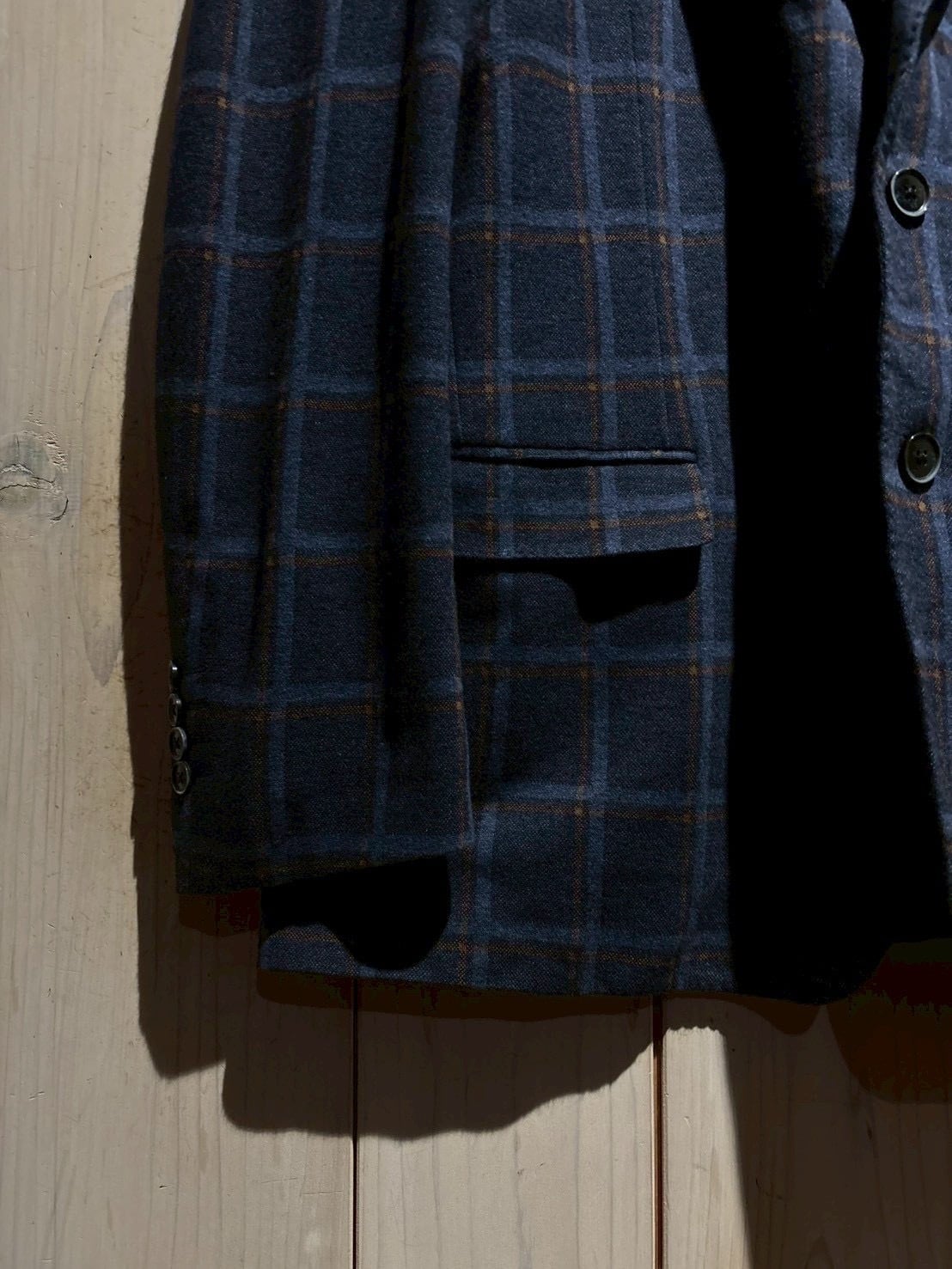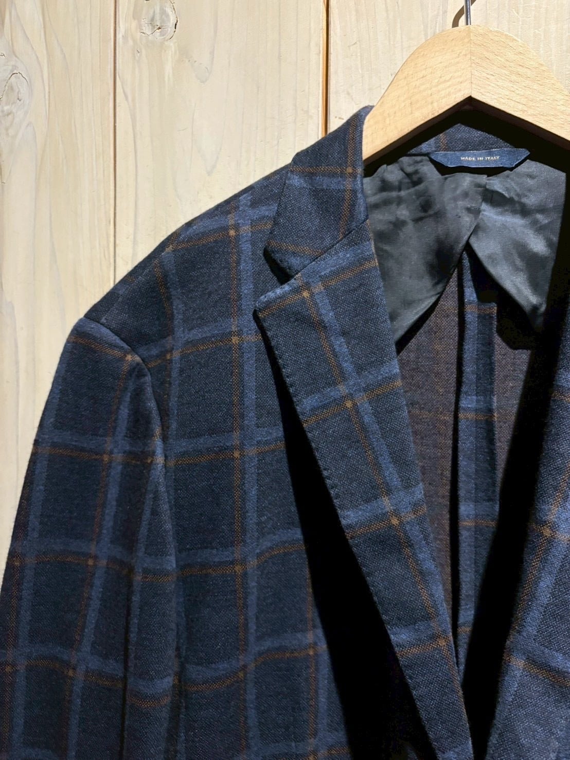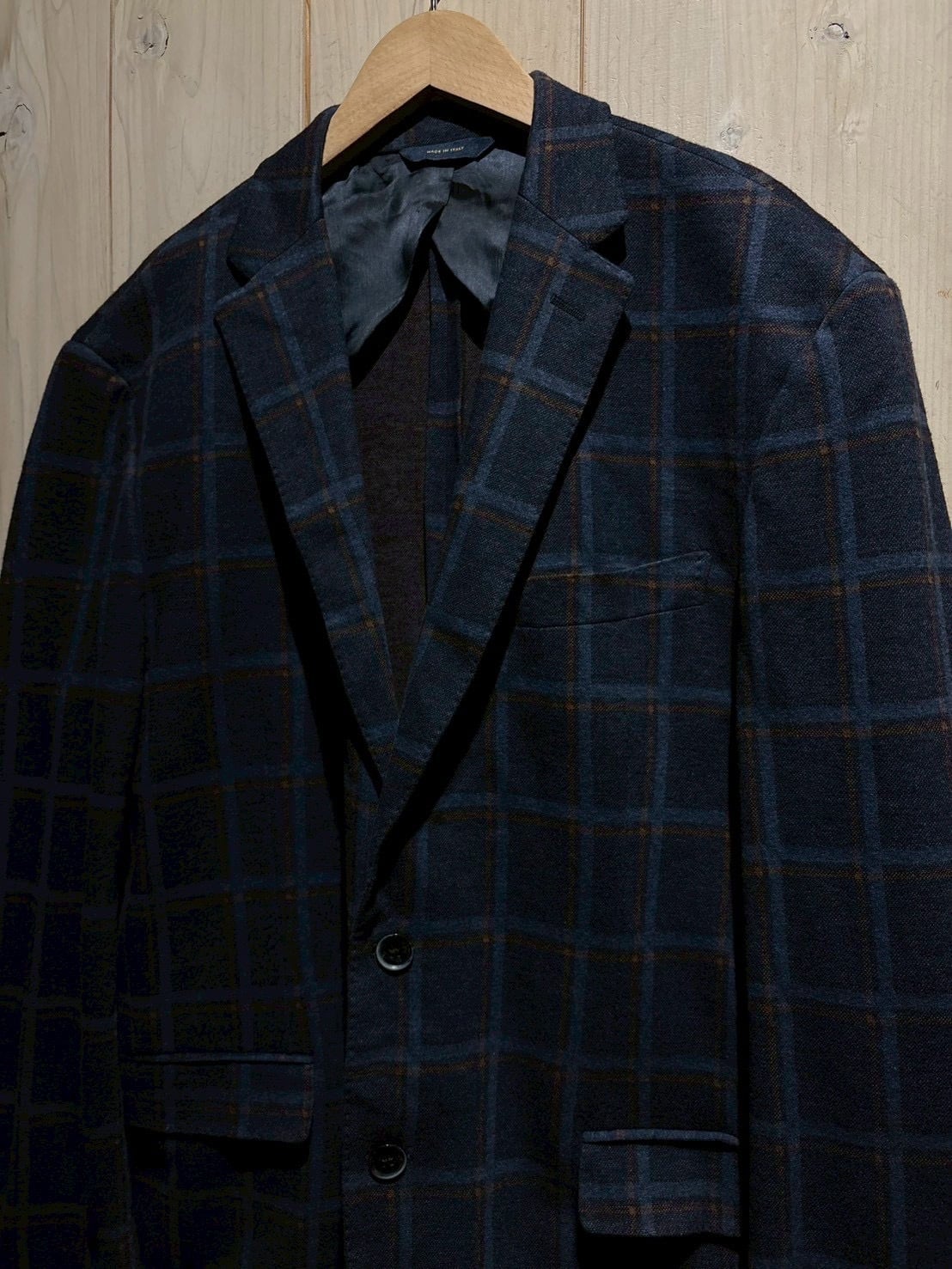 深みのあるネイビーのボディに、暖色のチェック柄をON。クラシックでありながら絶妙な配色で、タイドアップにはもちろん、カジュアルダウンしたスタイリングにもしっかりとハマってくれます。