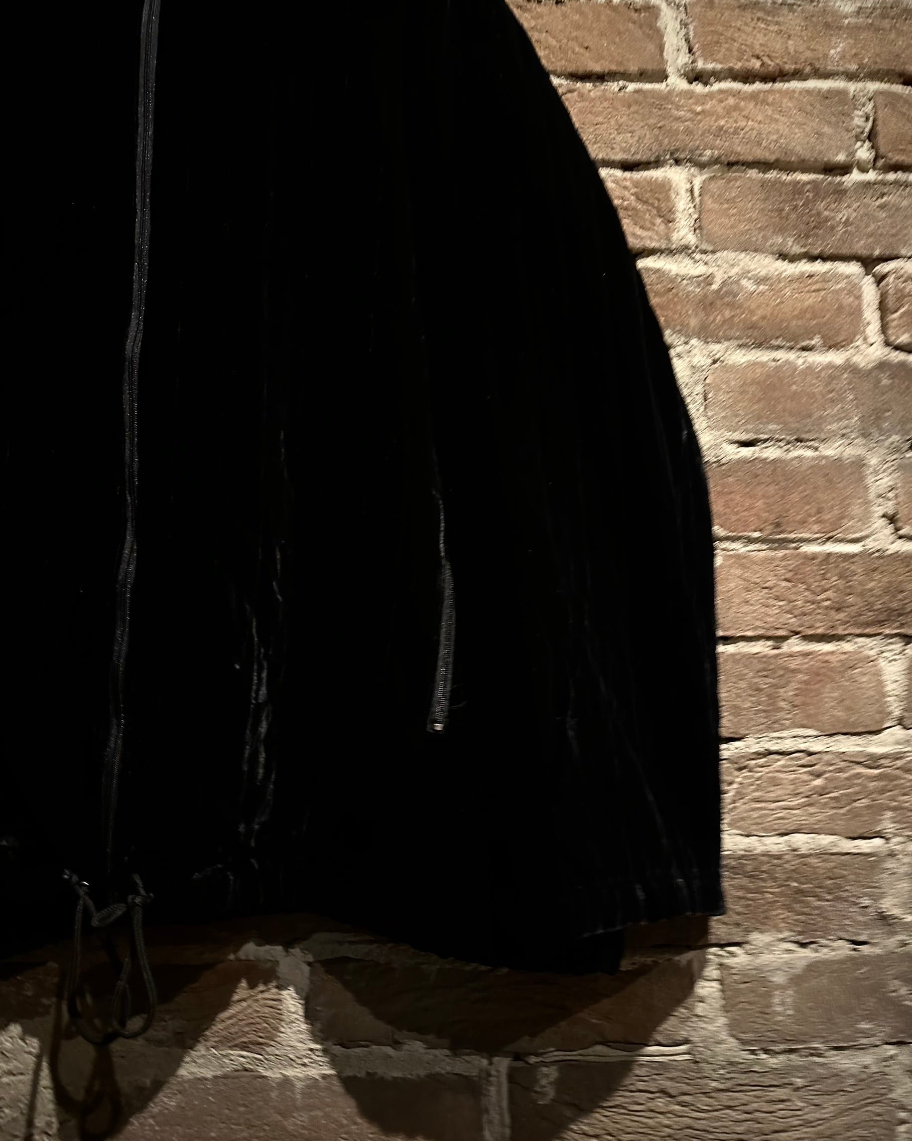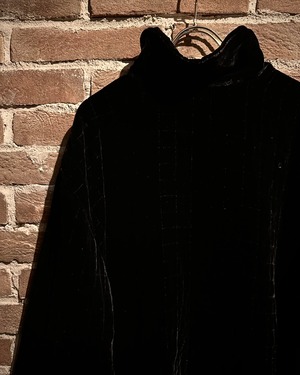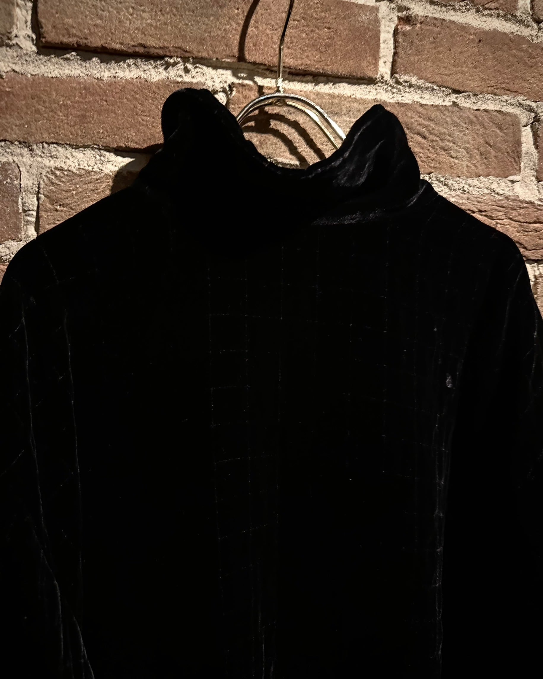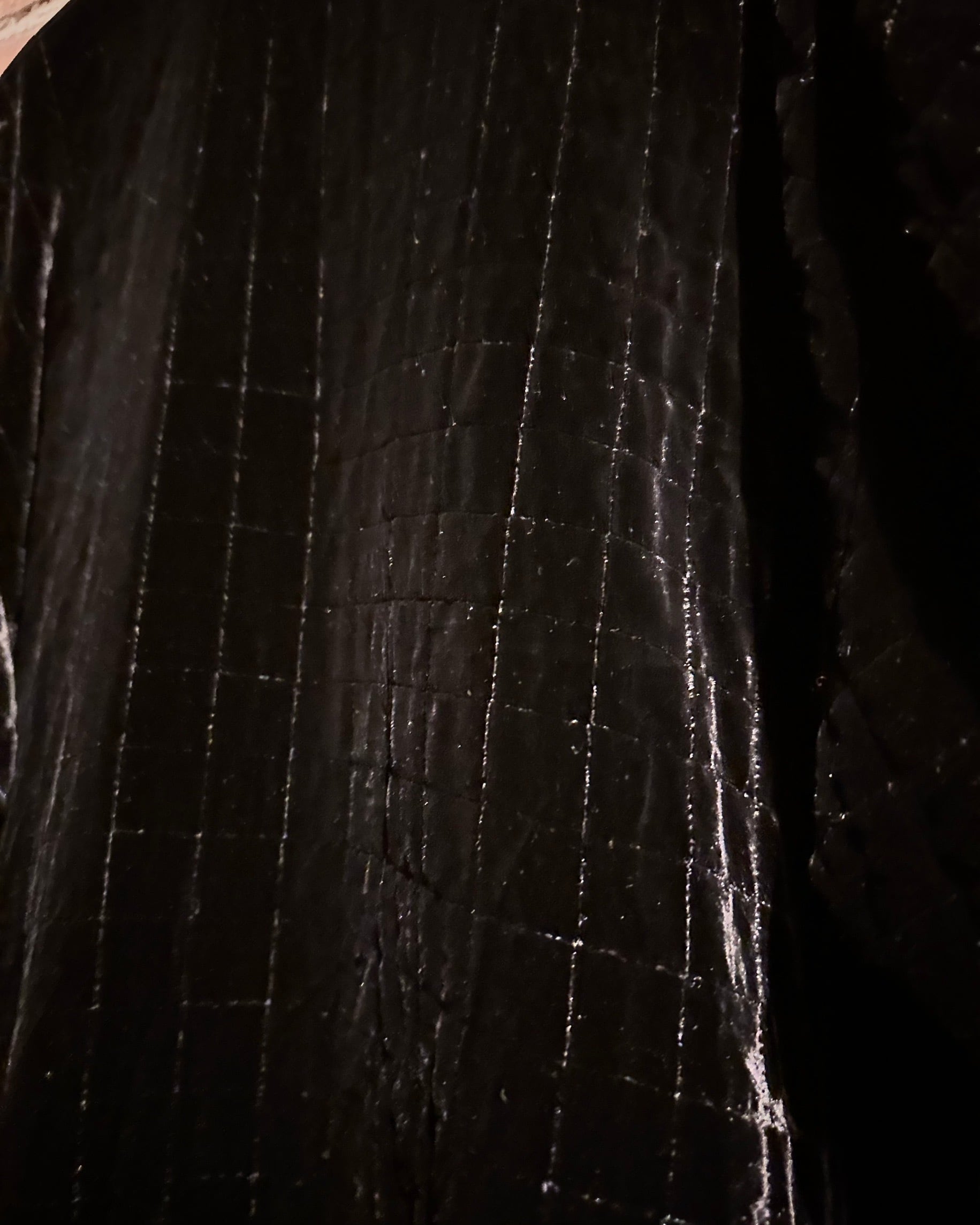 柔らかく光を吸い込むようなブラックベロアに、キルティングステッチによる立体感が加わり、シンプルながら奥行きのある佇まいに仕上がっています。