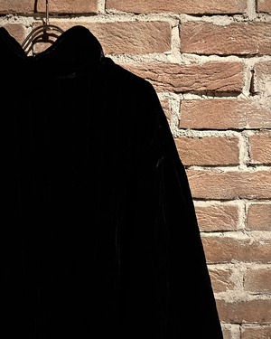 表地にはレーヨン×シルク混のベロアを使用。滑らかな肌触りと上品な光沢を備えつつ、中綿入りで軽さと防寒性を両立。裏地にはシルクを採用し、袖通しや着心地の良さも抜群です。