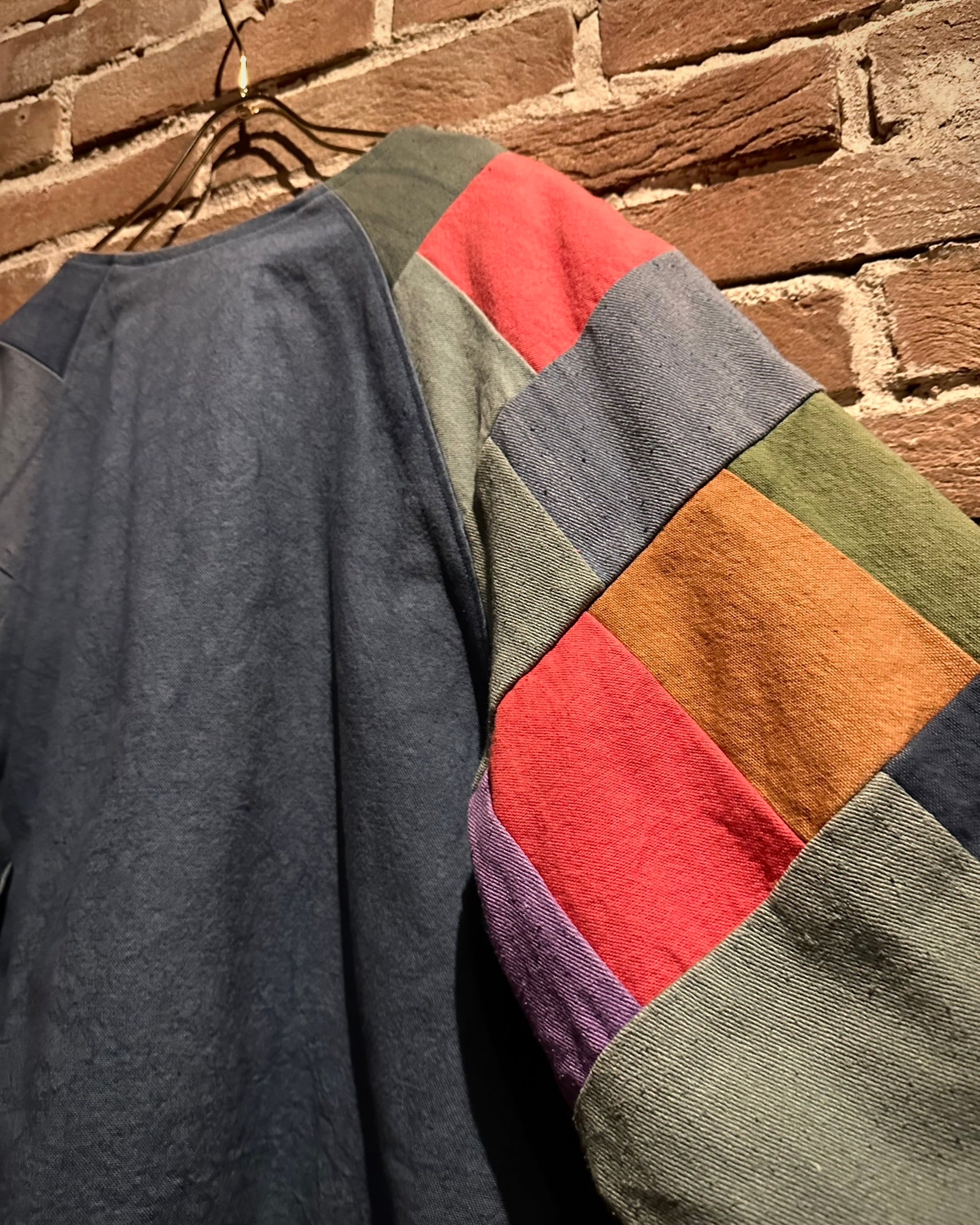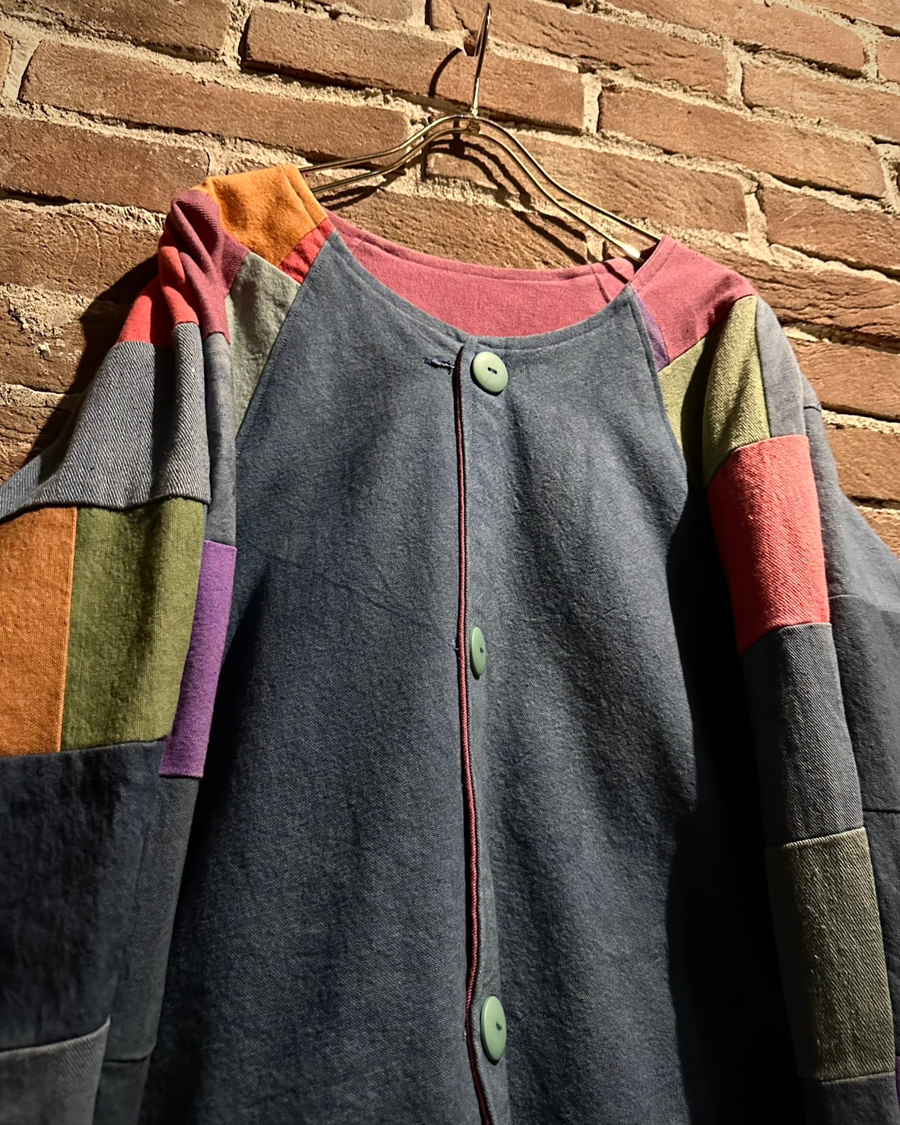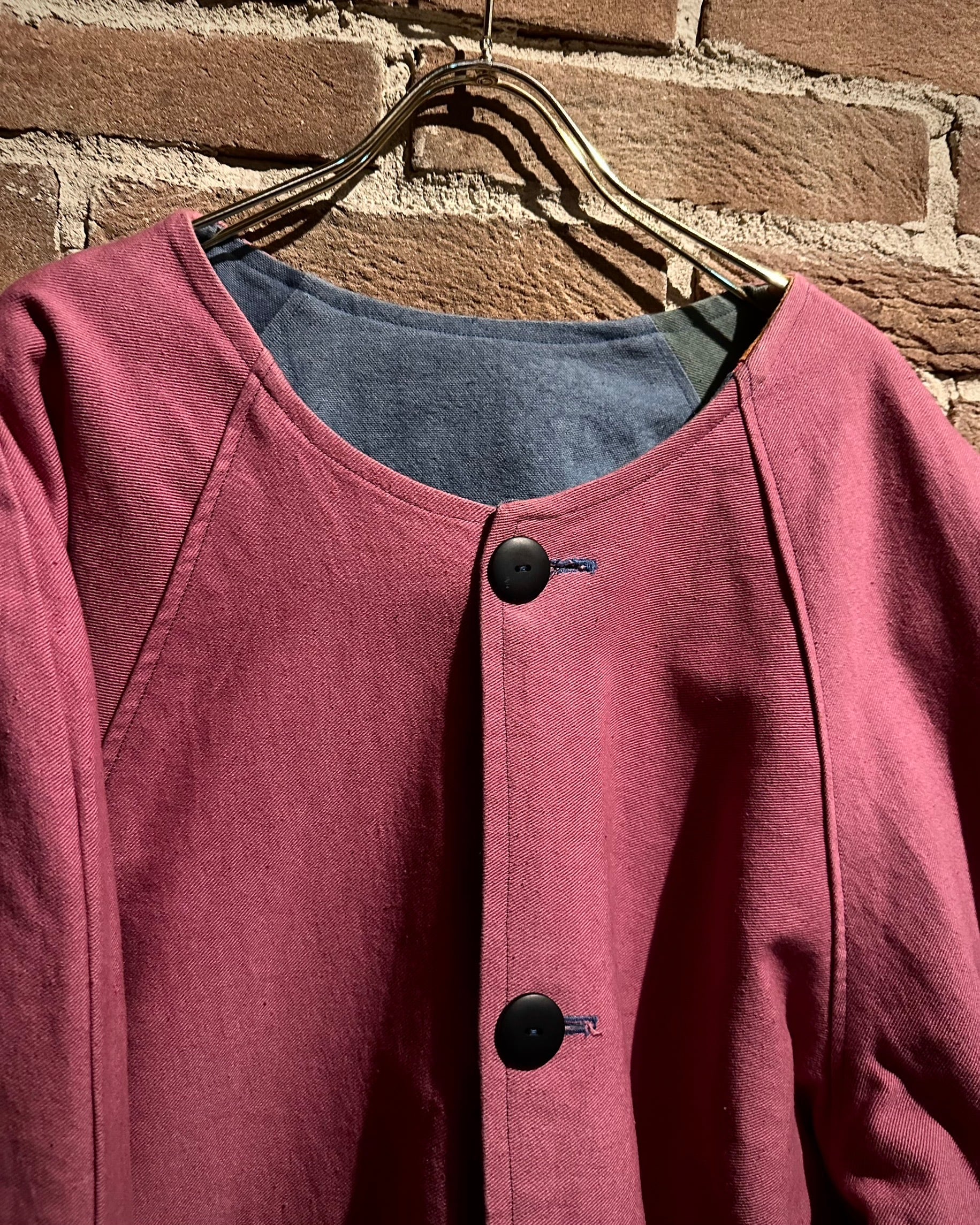 パッチワーク面は多彩な色使いをバランス良く配置し、ピンク面はスタイリングの主役となる存在感。異なる表情を1着で楽しめる、リバーシブルならではの奥行きが魅力です。