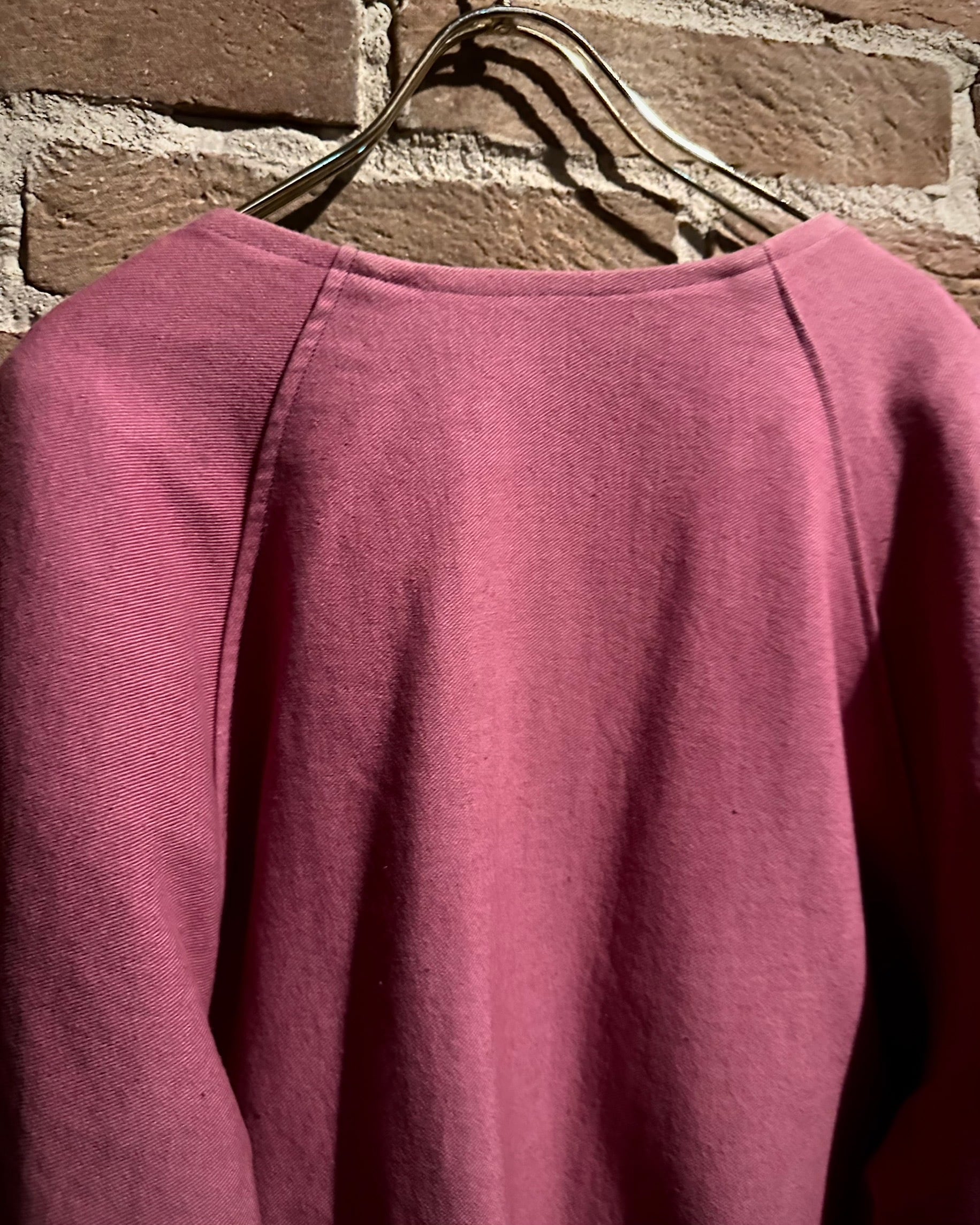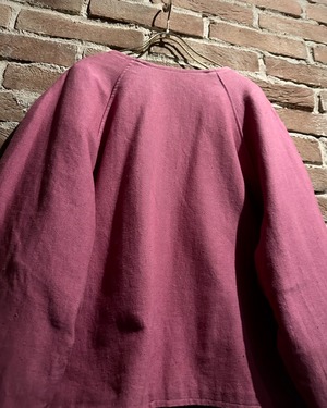 フロントはシンプルなボタン仕様。ラグランスリーブによる丸みのある肩周りが、着用時のシルエットを美しく見せてくれます。