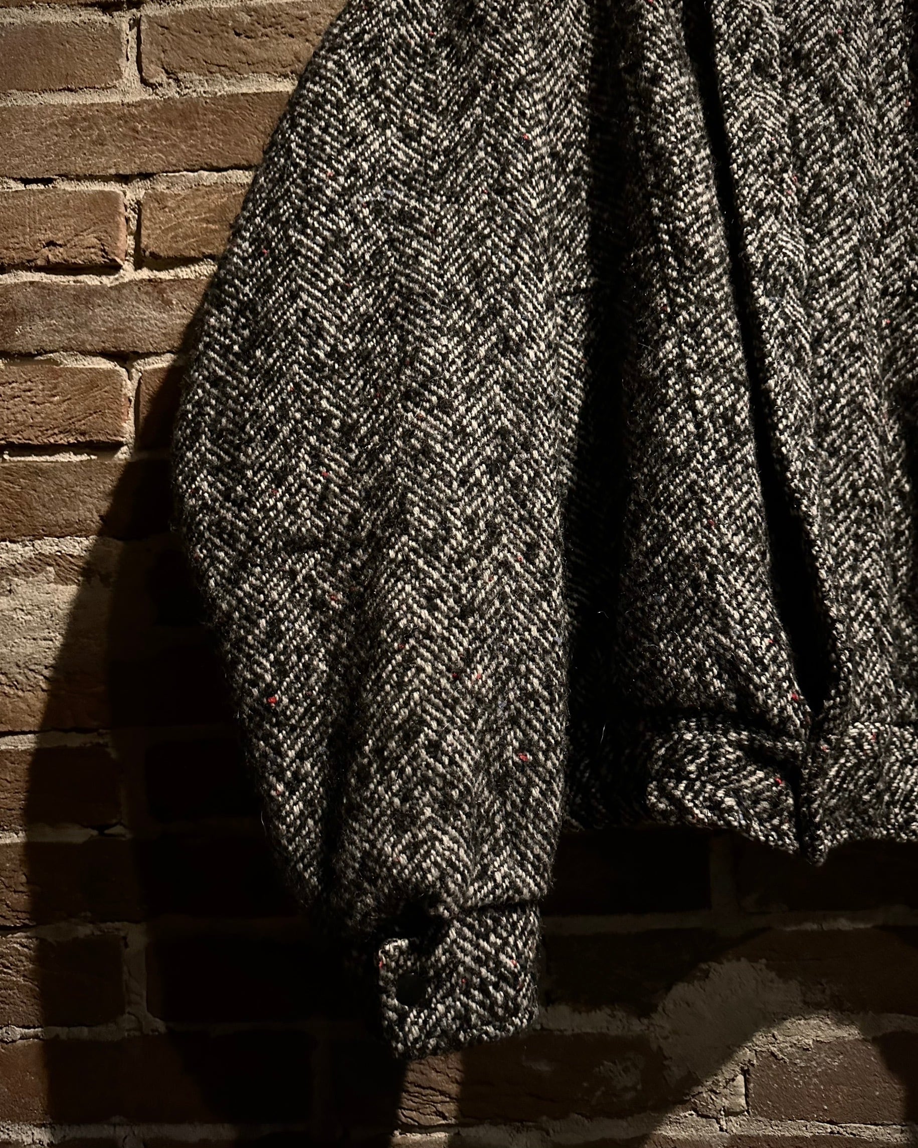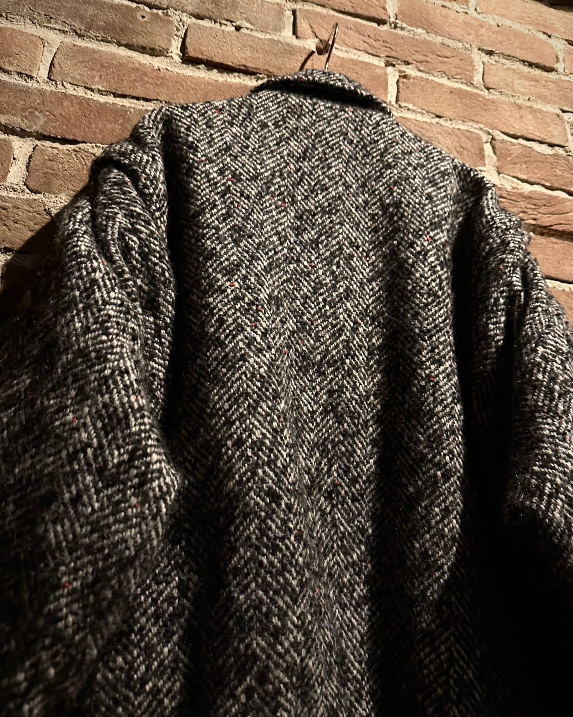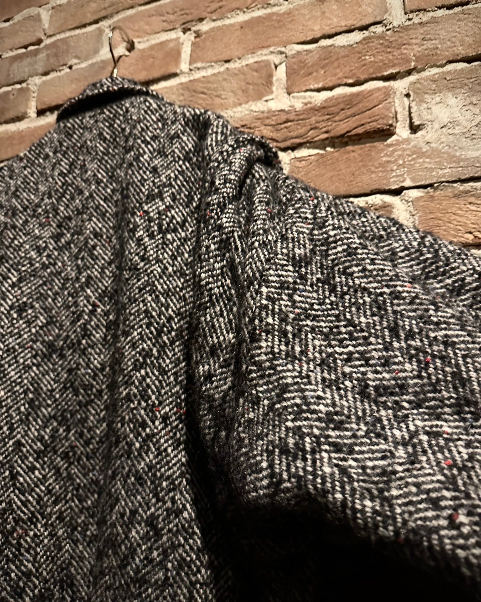 立体的に走るヘリンボーン織りに、ネップ特有の不均一な表情が加わり、奥行きのある素材感を演出。ツイードらしい重厚さを保ちつつも、風合いは非常に良く、日常に落とし込みやすいバランスに仕上がっています。