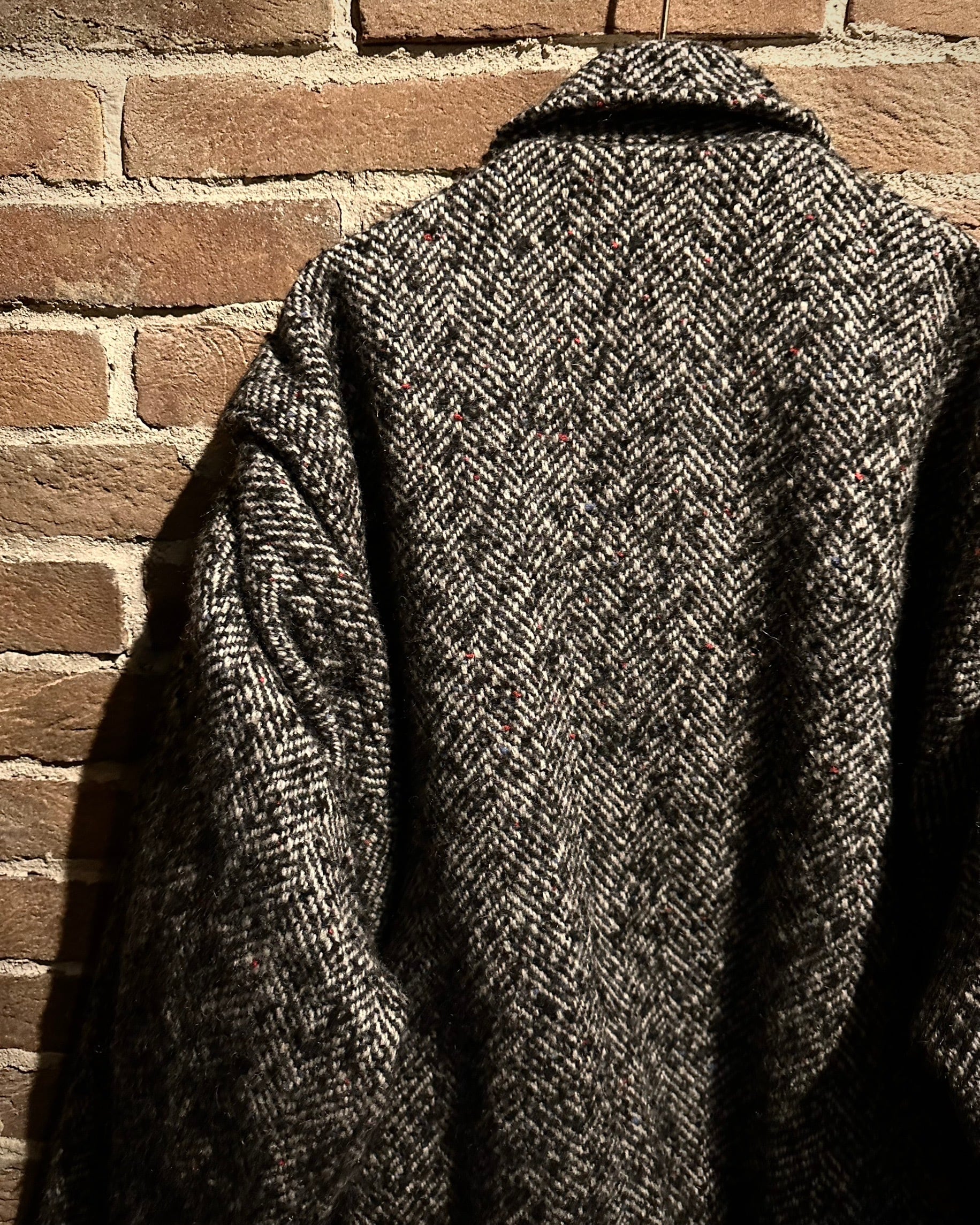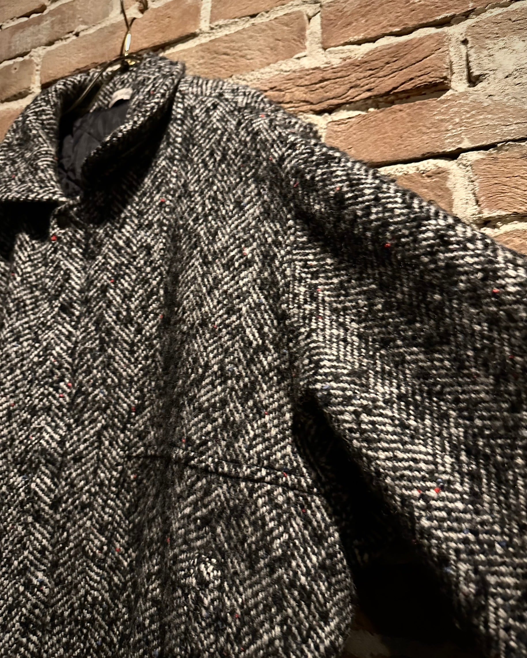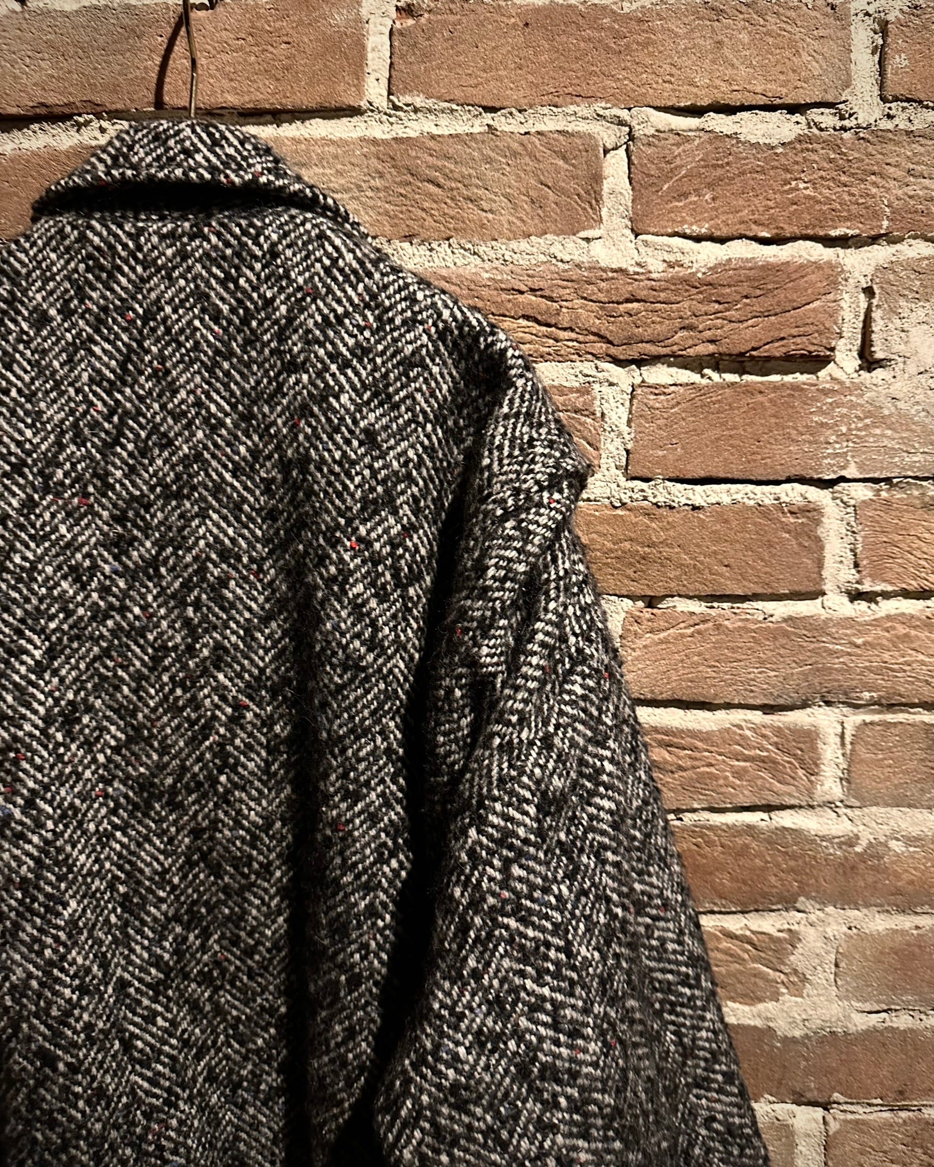 立体的に走るヘリンボーン織りに、ネップ特有の不均一な表情が加わり、奥行きのある素材感を演出。ツイードらしい重厚さを保ちつつも、風合いは非常に良く、日常に落とし込みやすいバランスに仕上がっています。