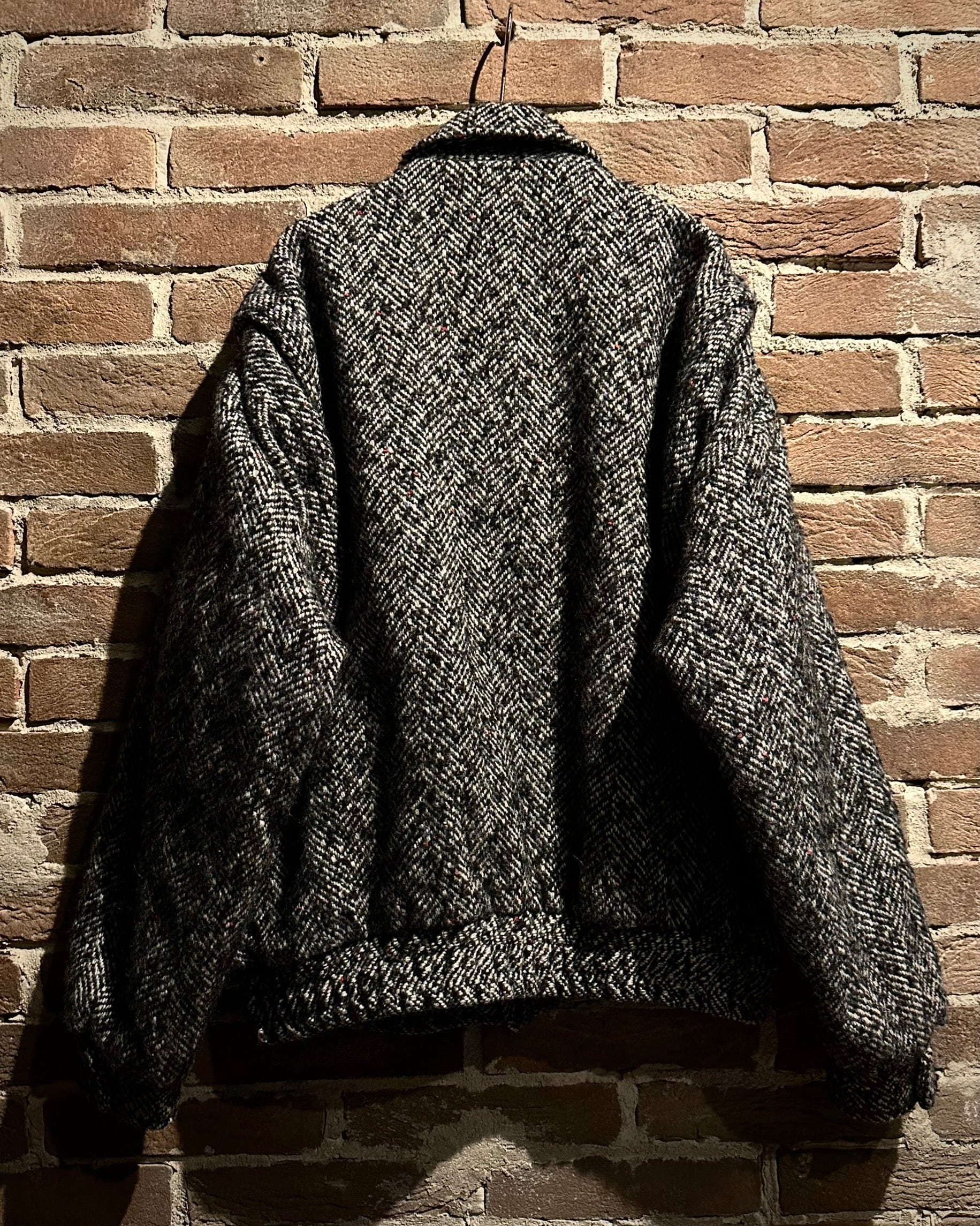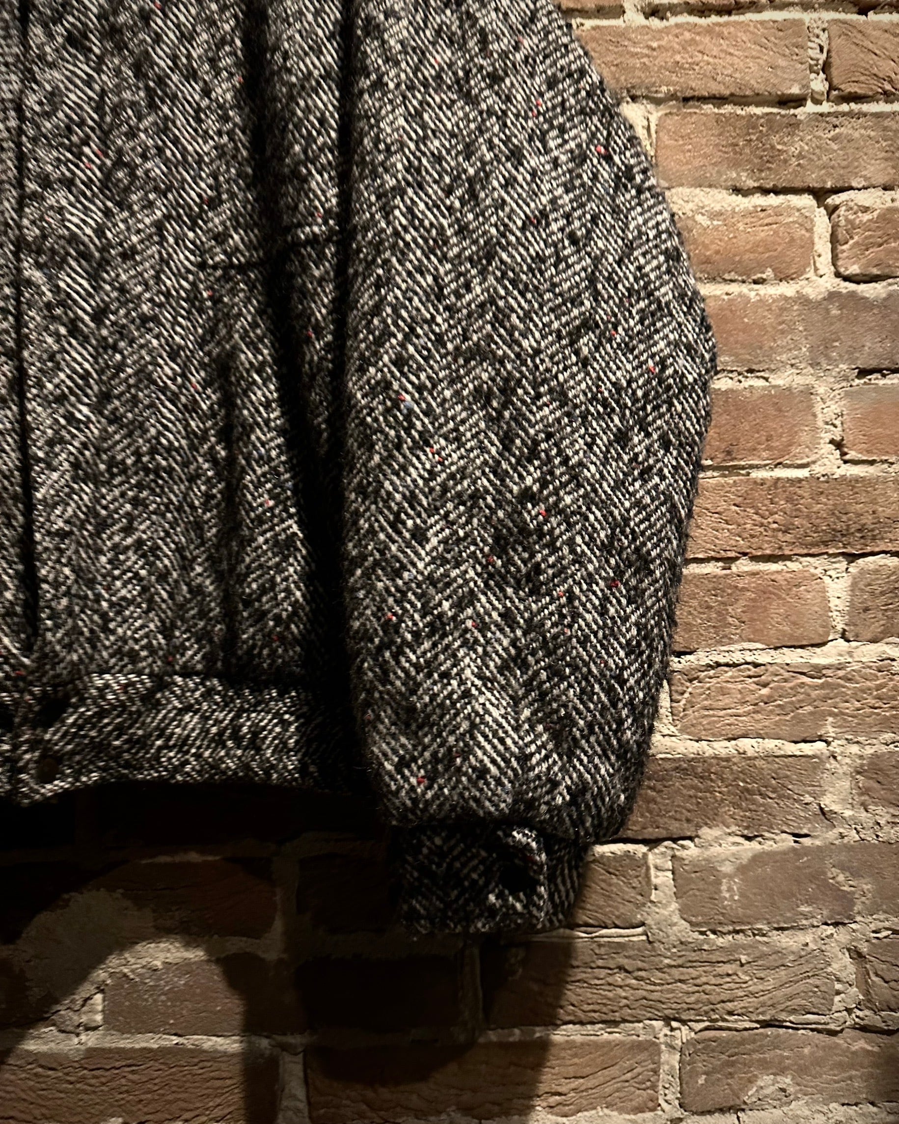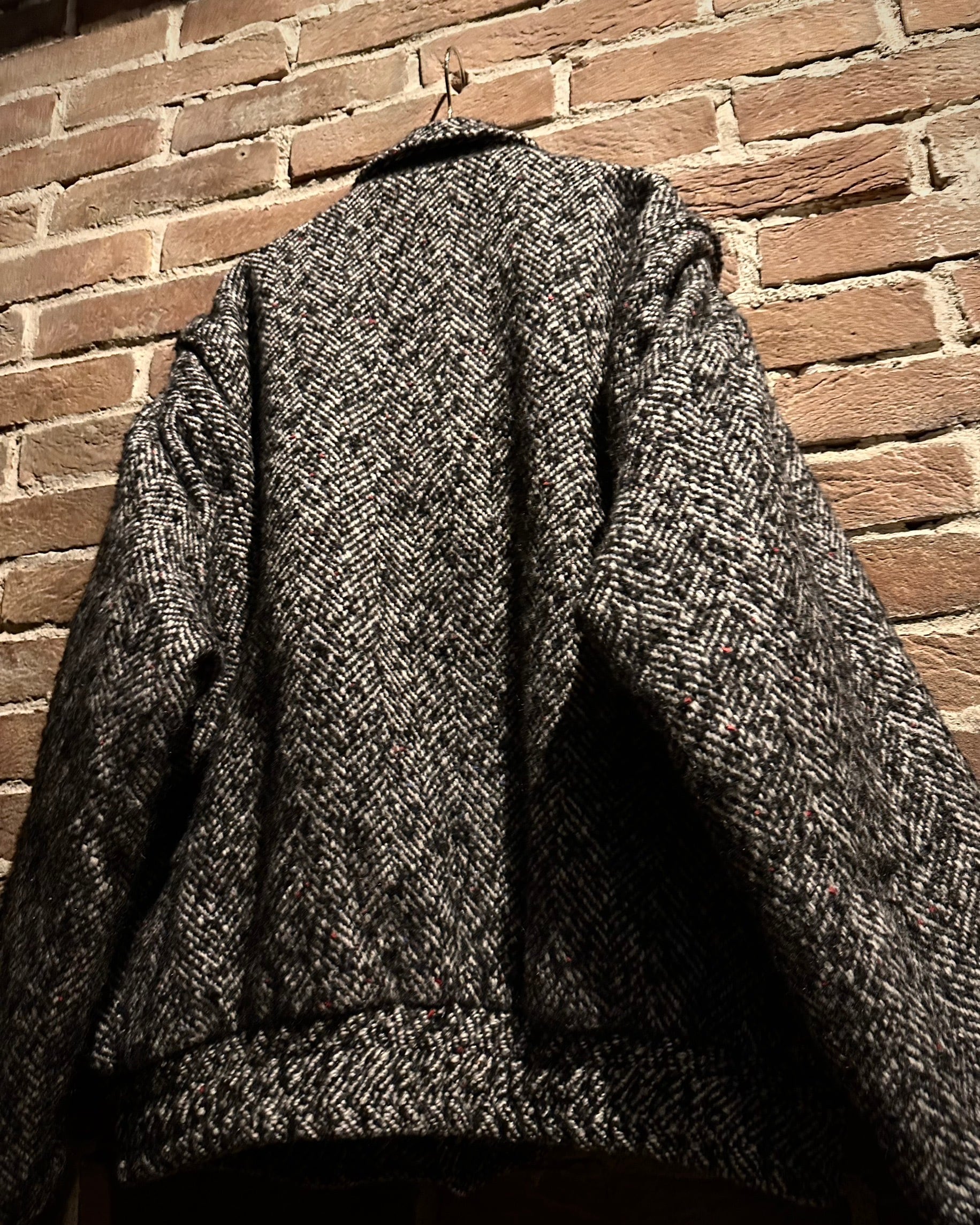赤や青のネップをボディ全体に散らした、ヘリンボーンツイードのブルゾンジャケット。