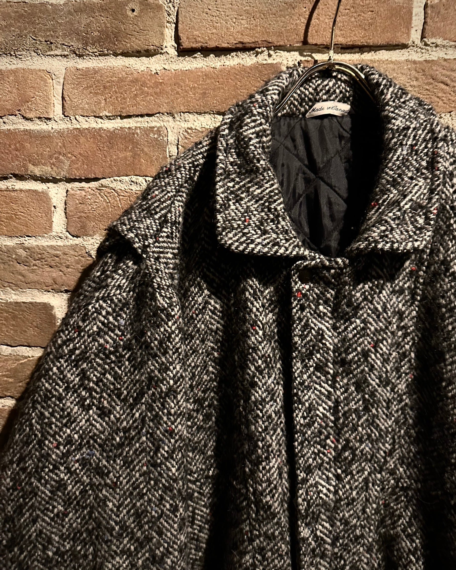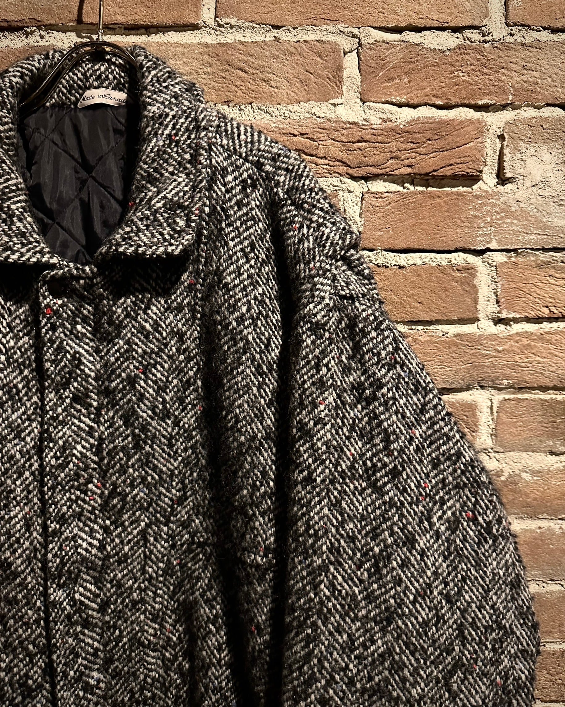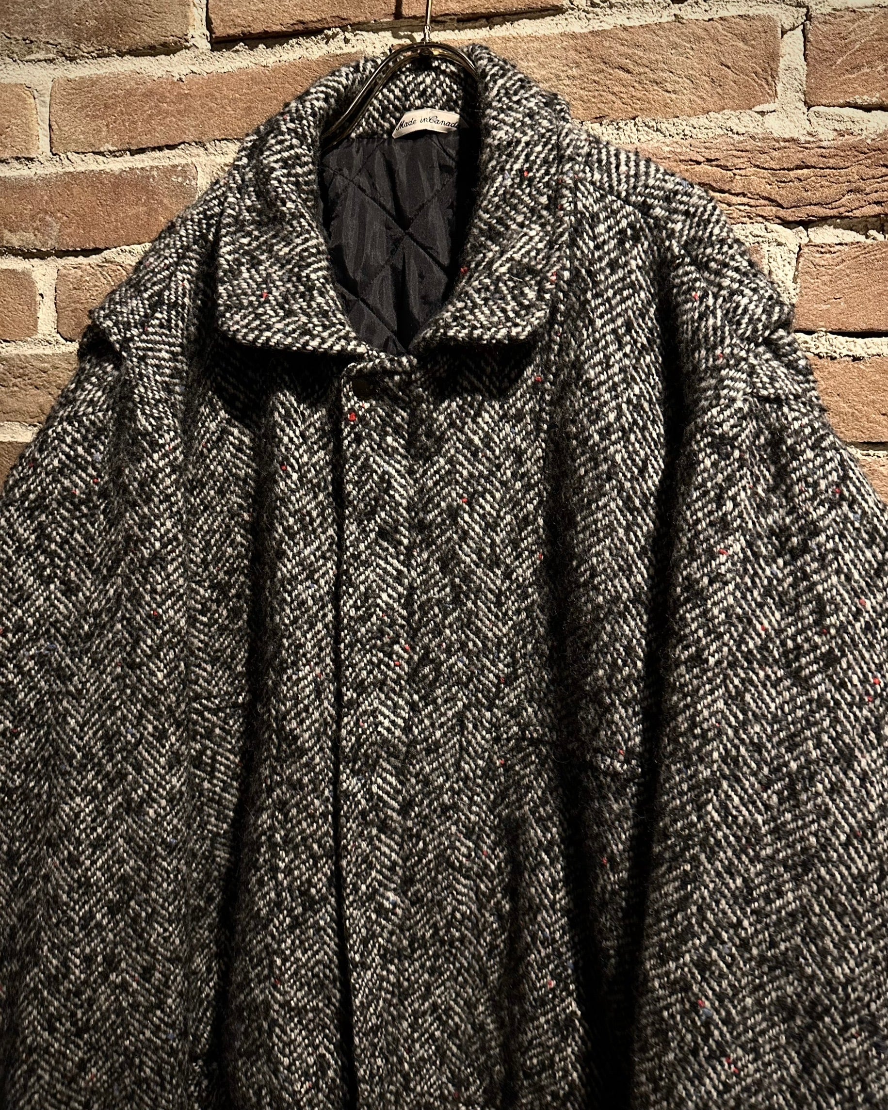 赤や青のネップをボディ全体に散らした、ヘリンボーンツイードのブルゾンジャケット。