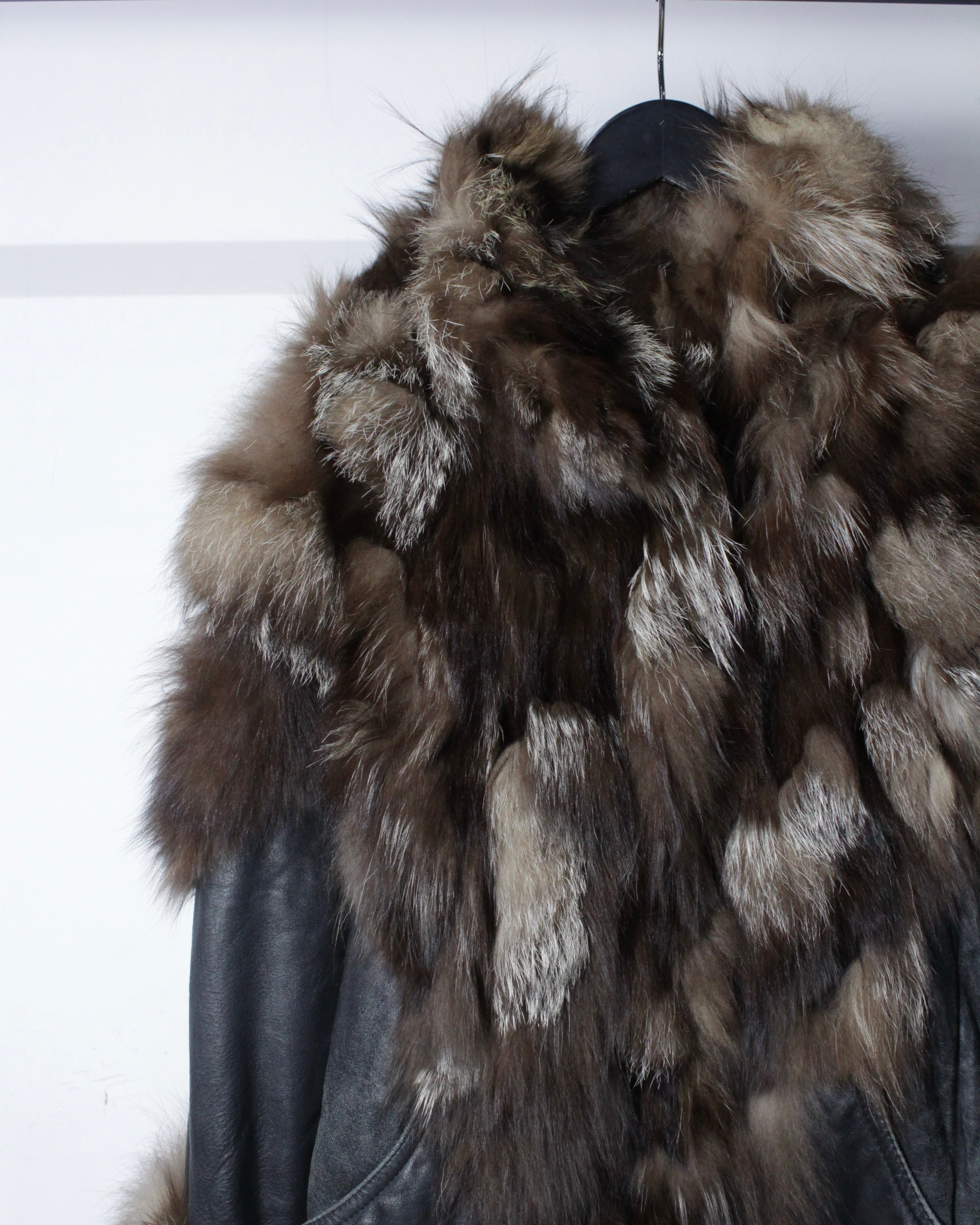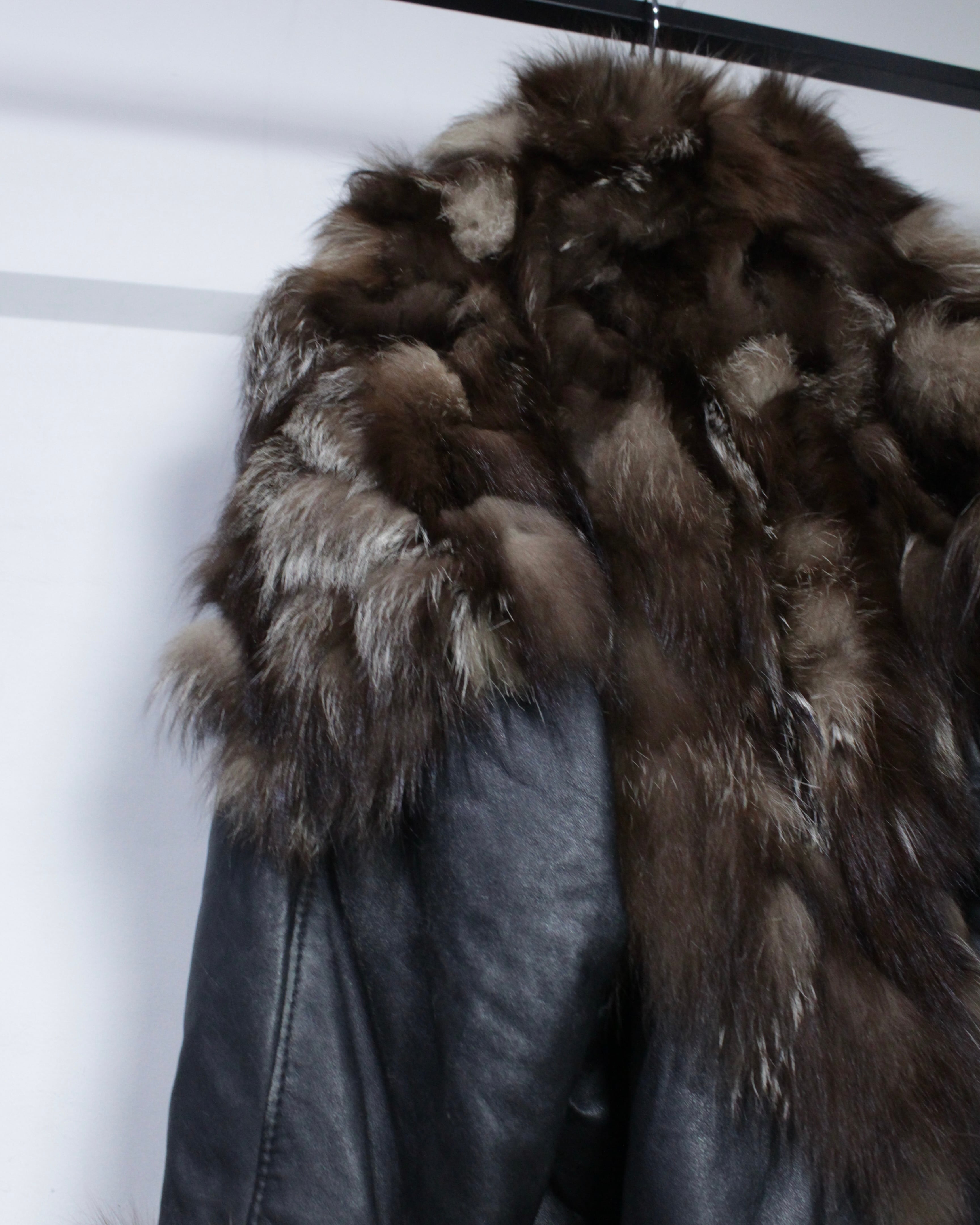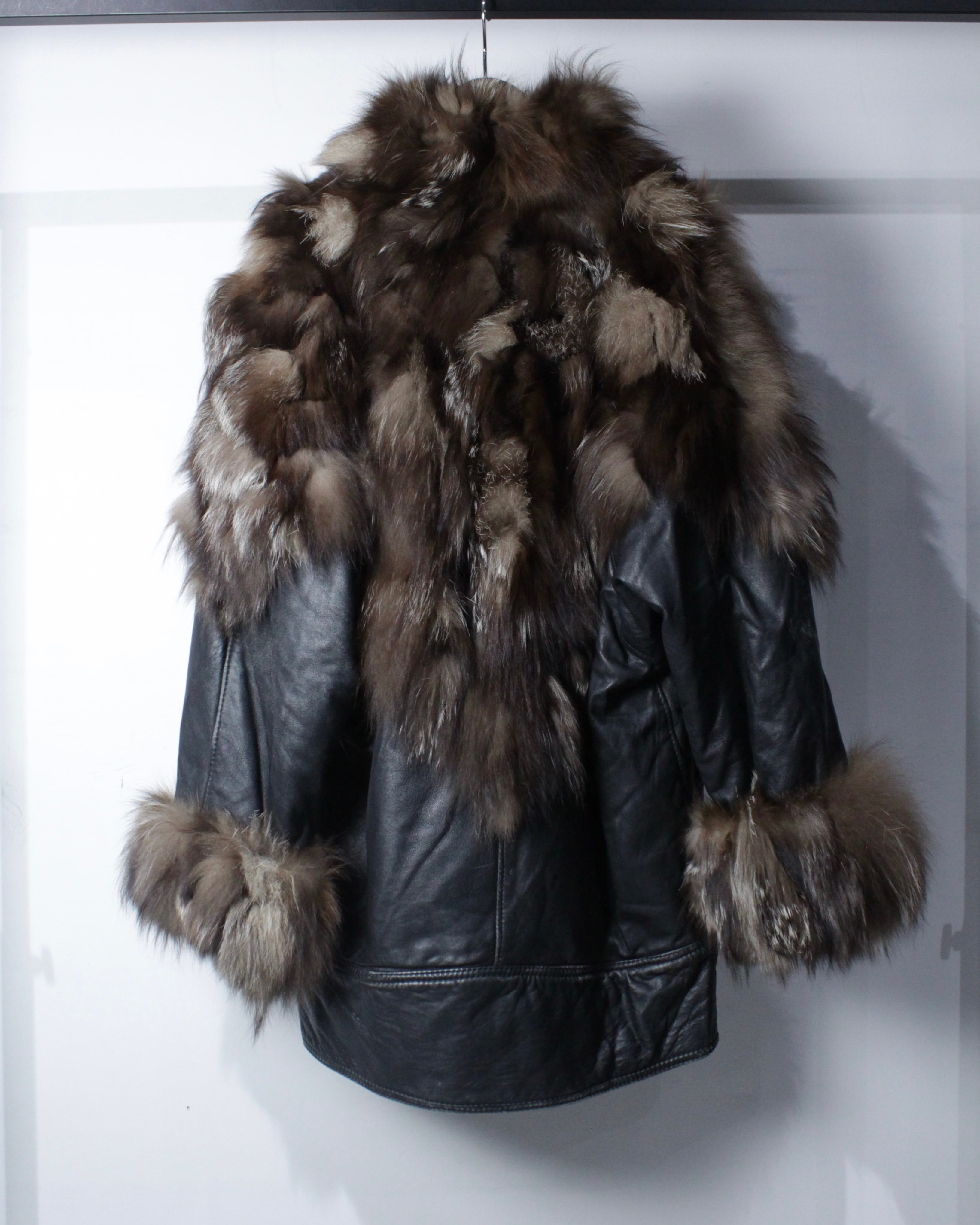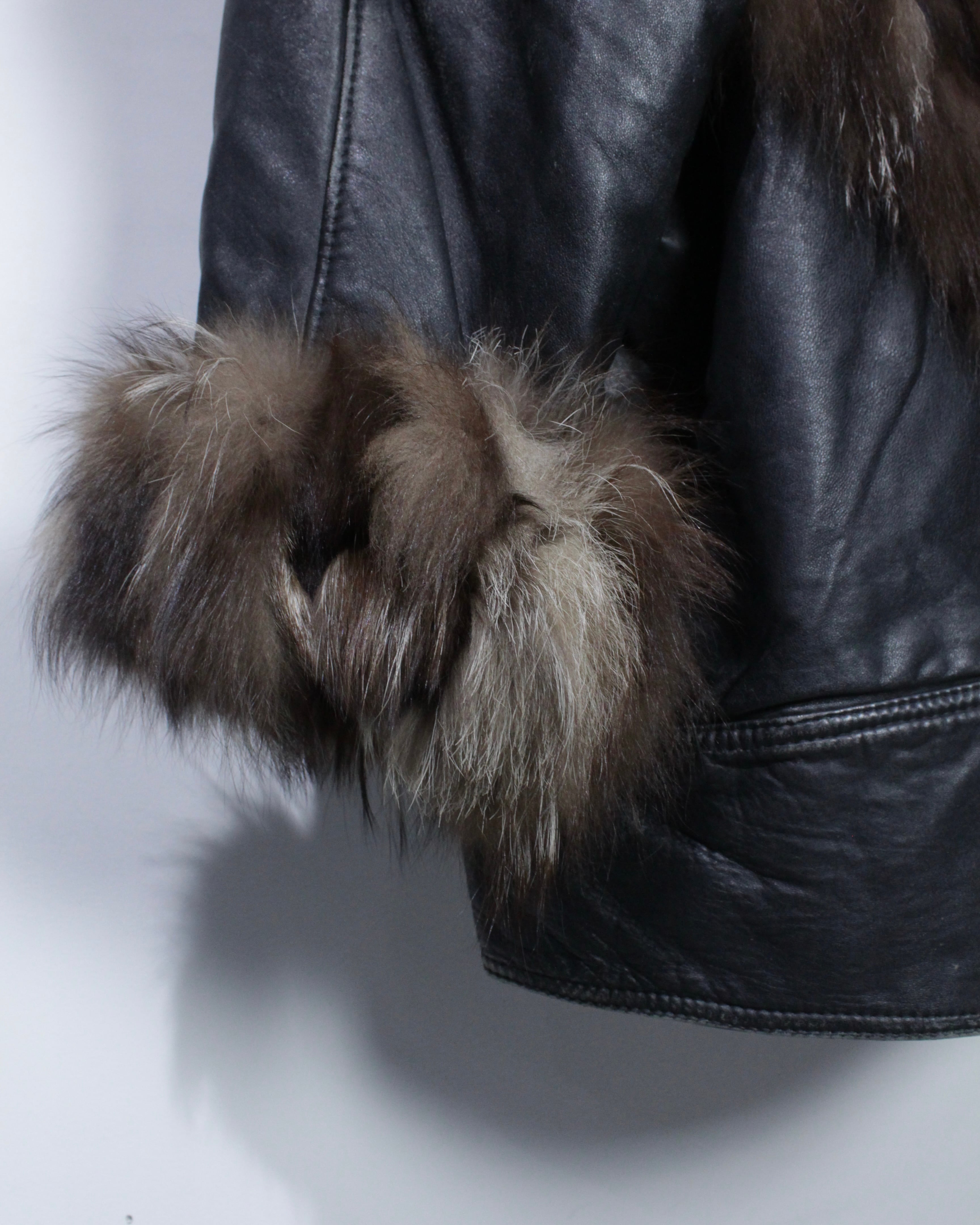 柔らかく滑らかな質感を持つブラックレザーをベースに、縦横無尽にファーを切り替えた、圧倒的な存在感を放つイタリア製のレザージャケット。