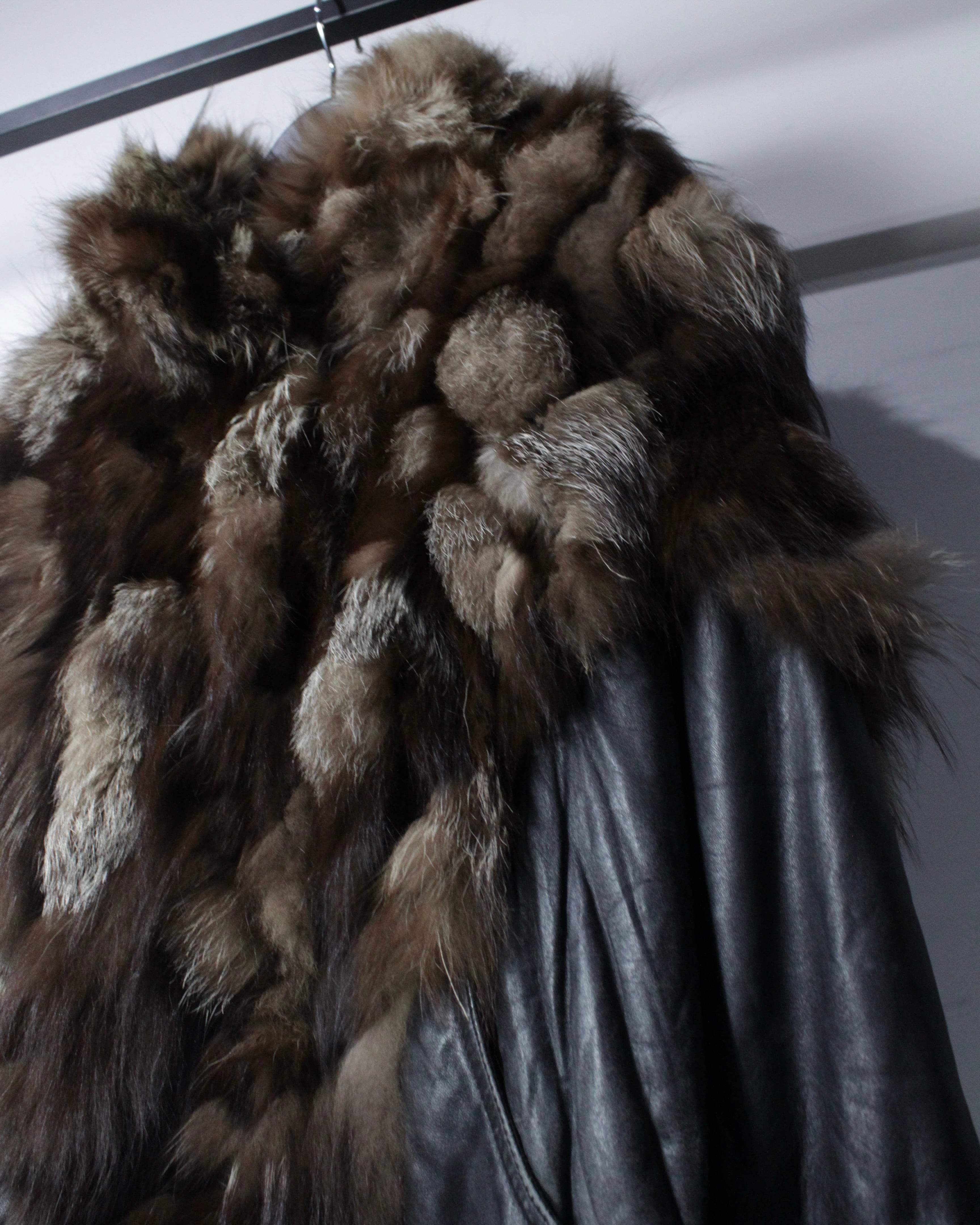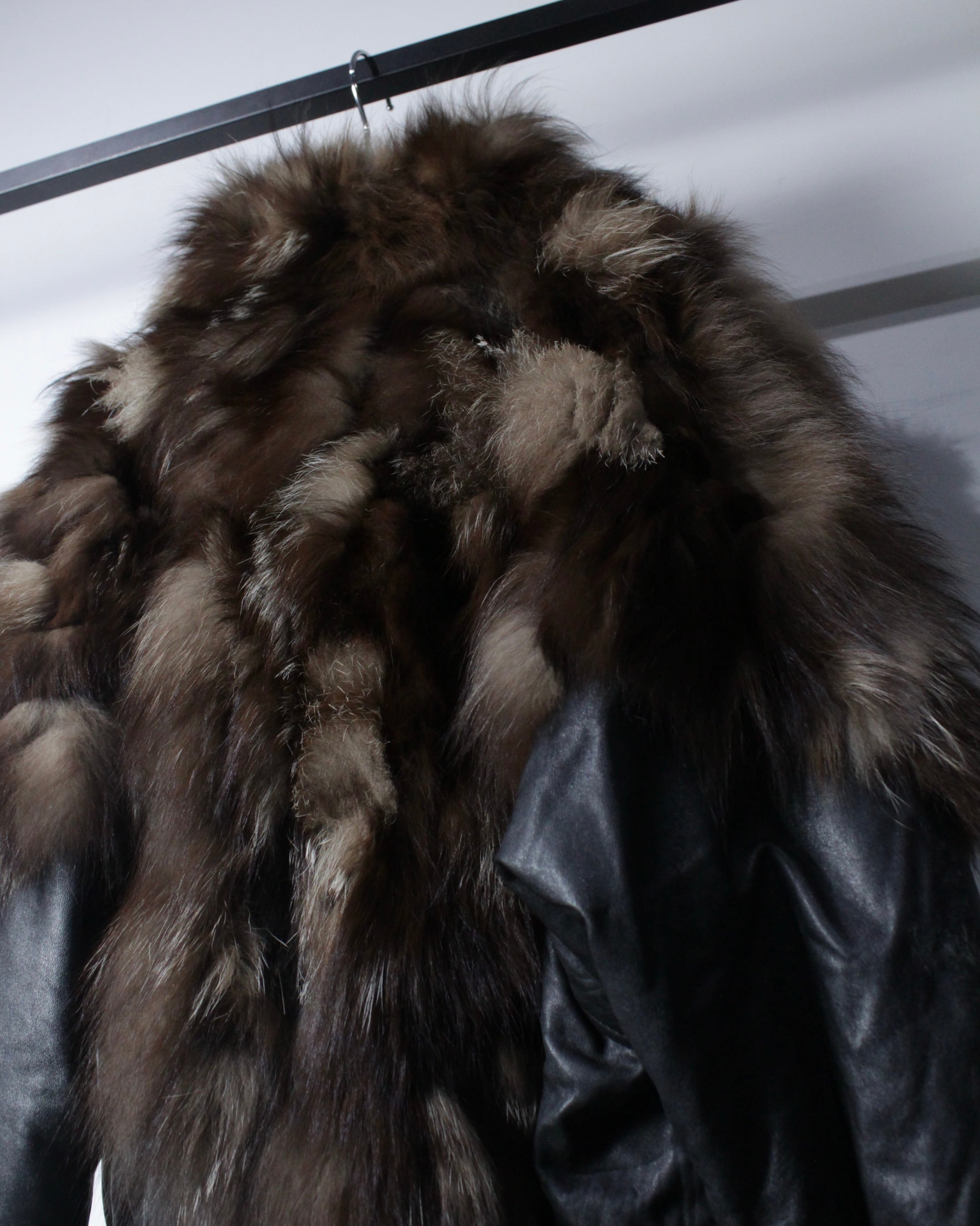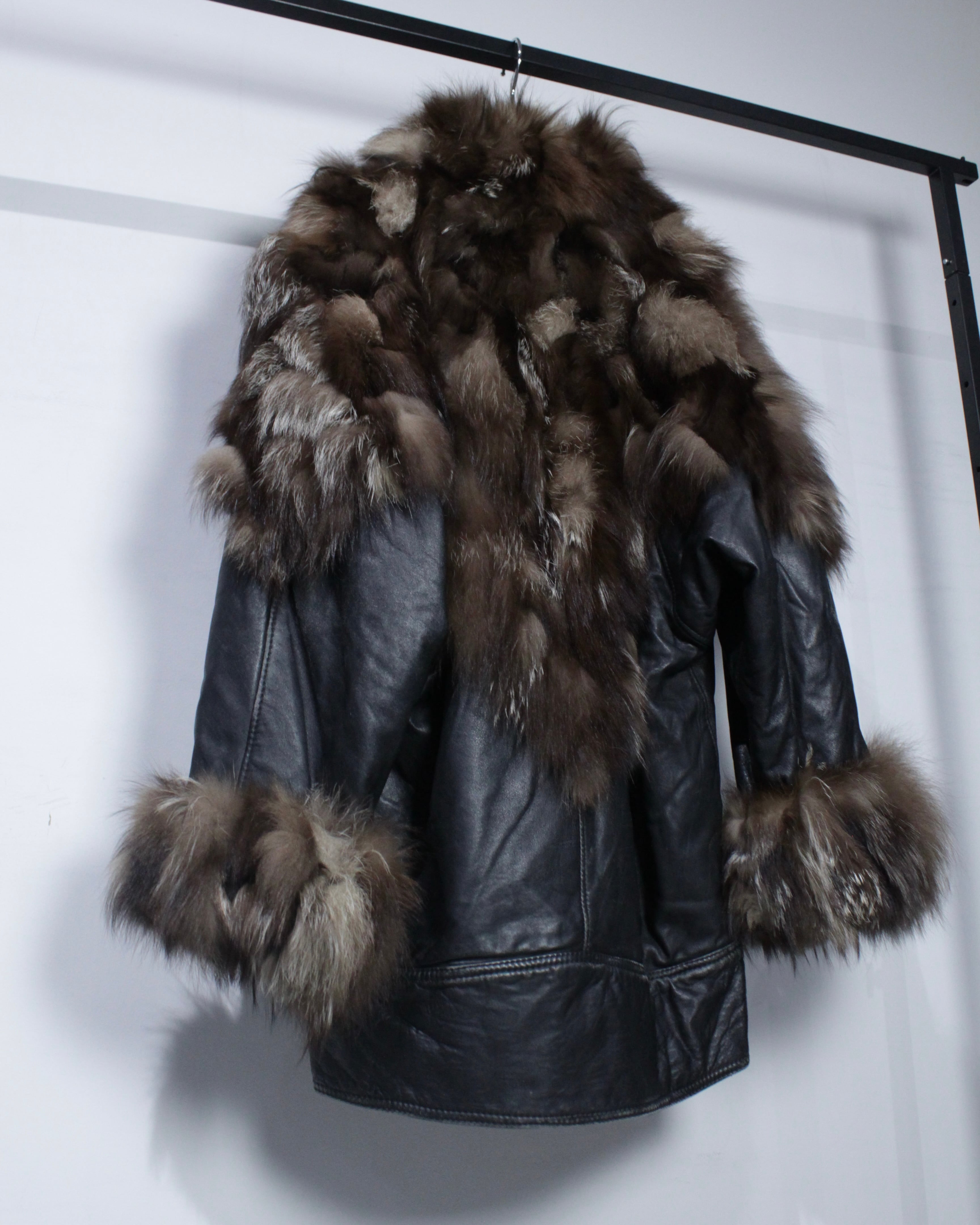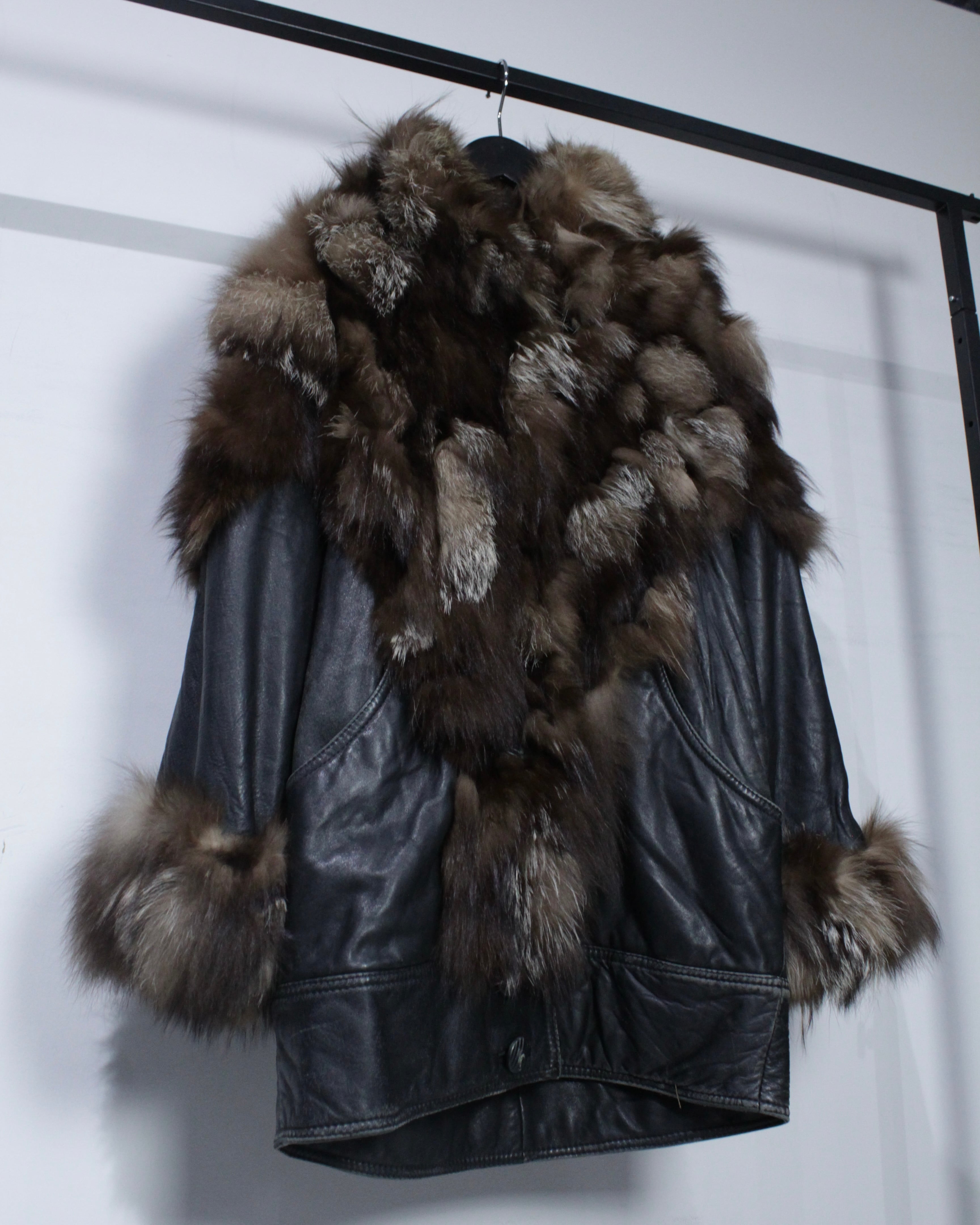 柔らかく滑らかな質感を持つブラックレザーをベースに、縦横無尽にファーを切り替えた、圧倒的な存在感を放つイタリア製のレザージャケット。