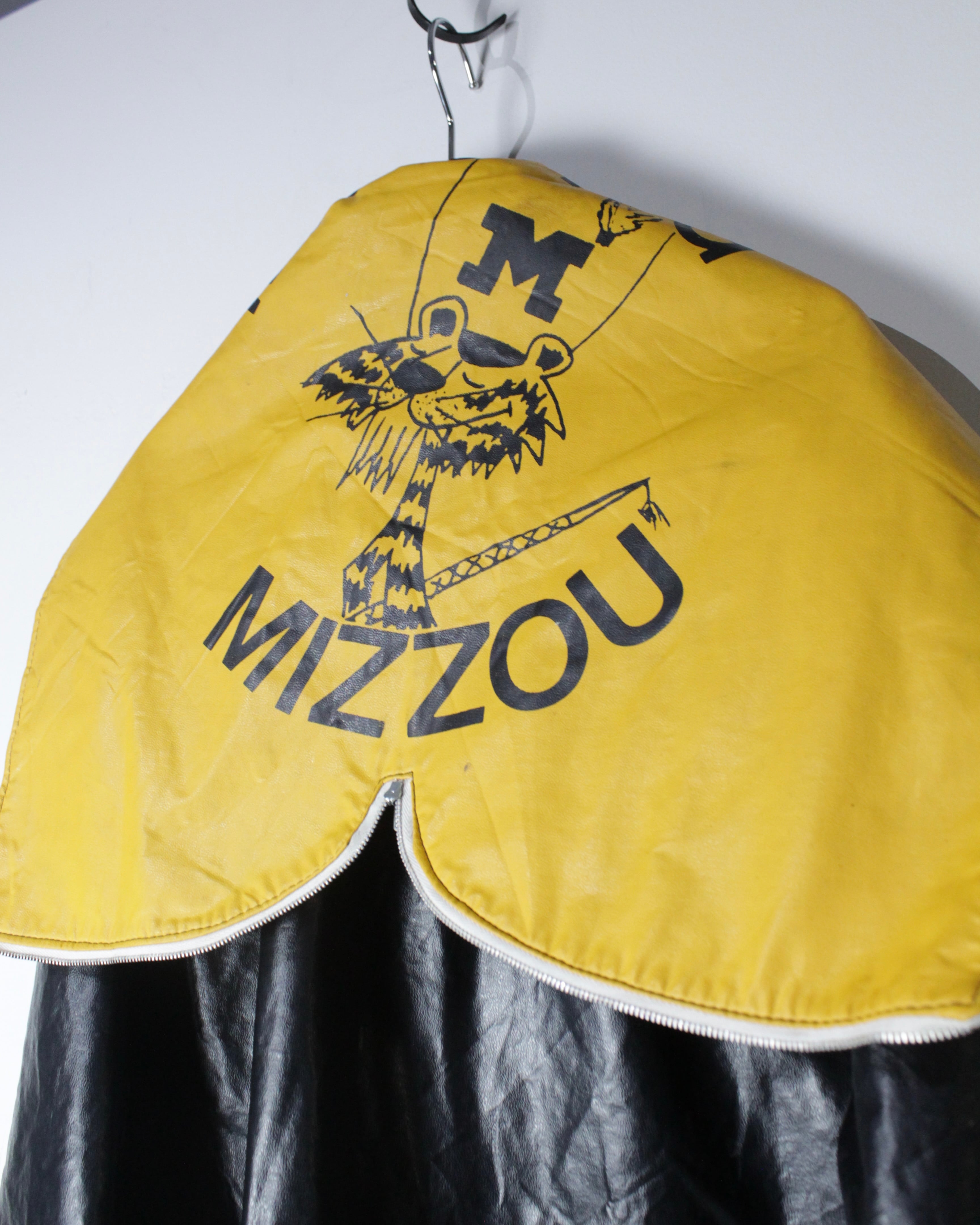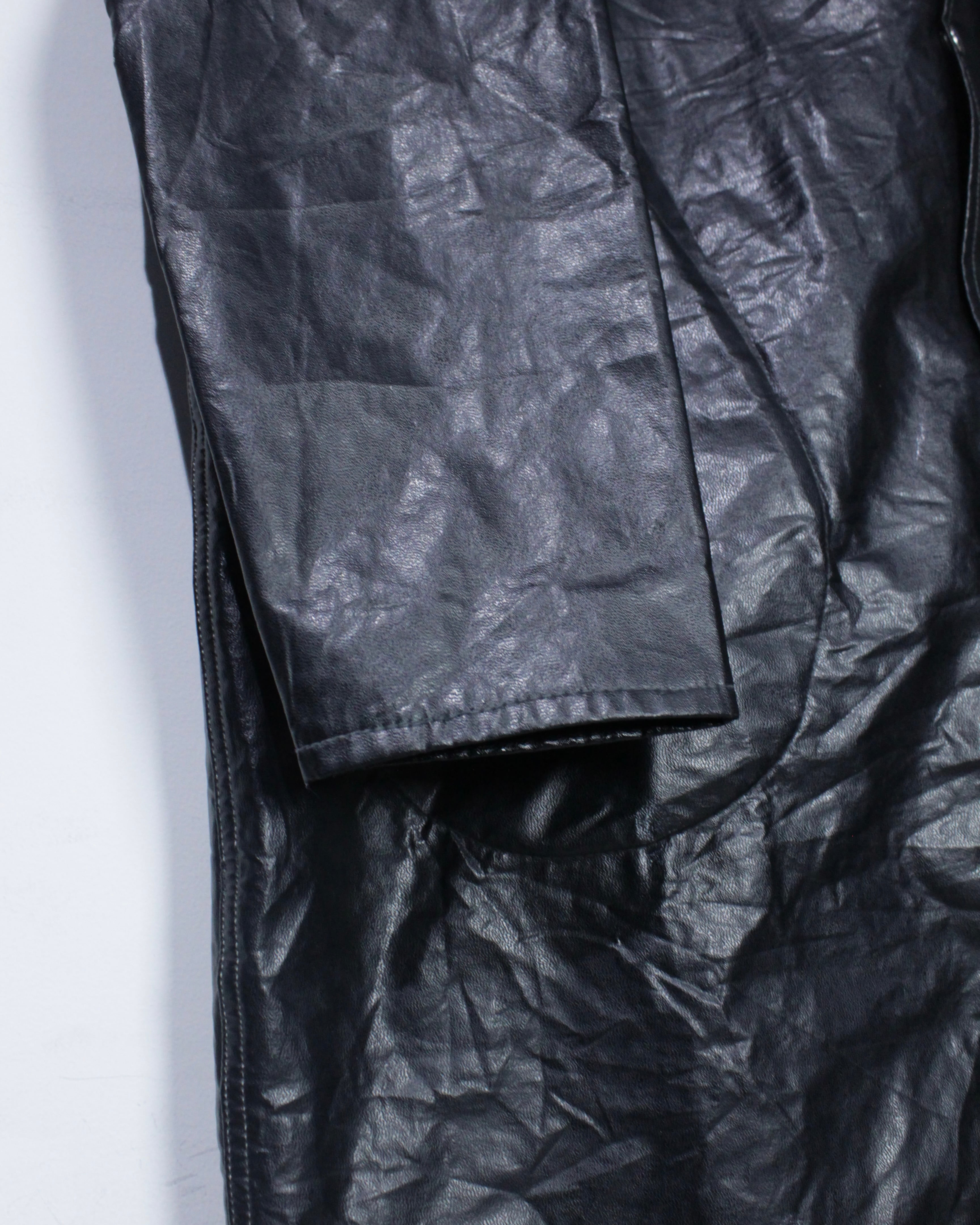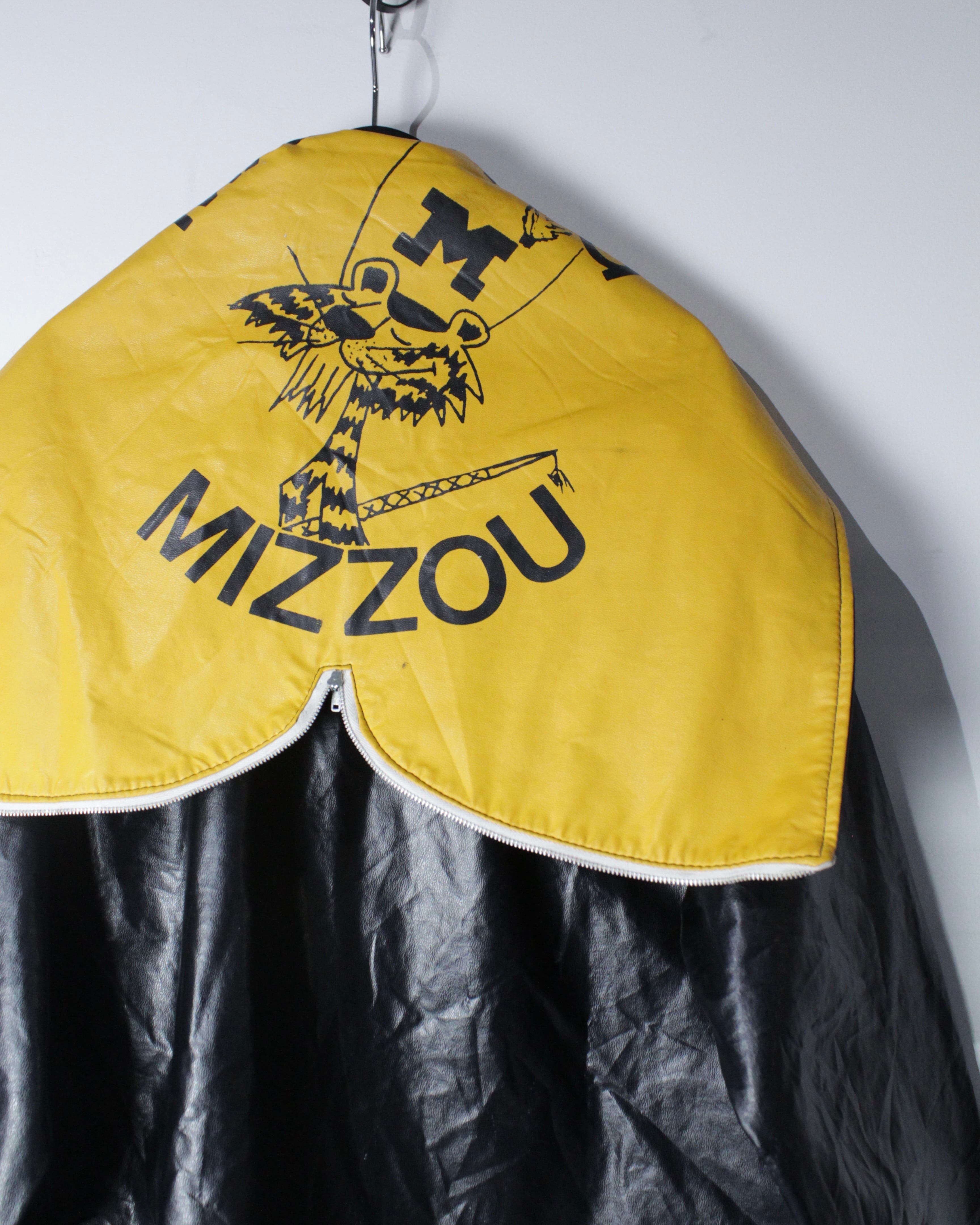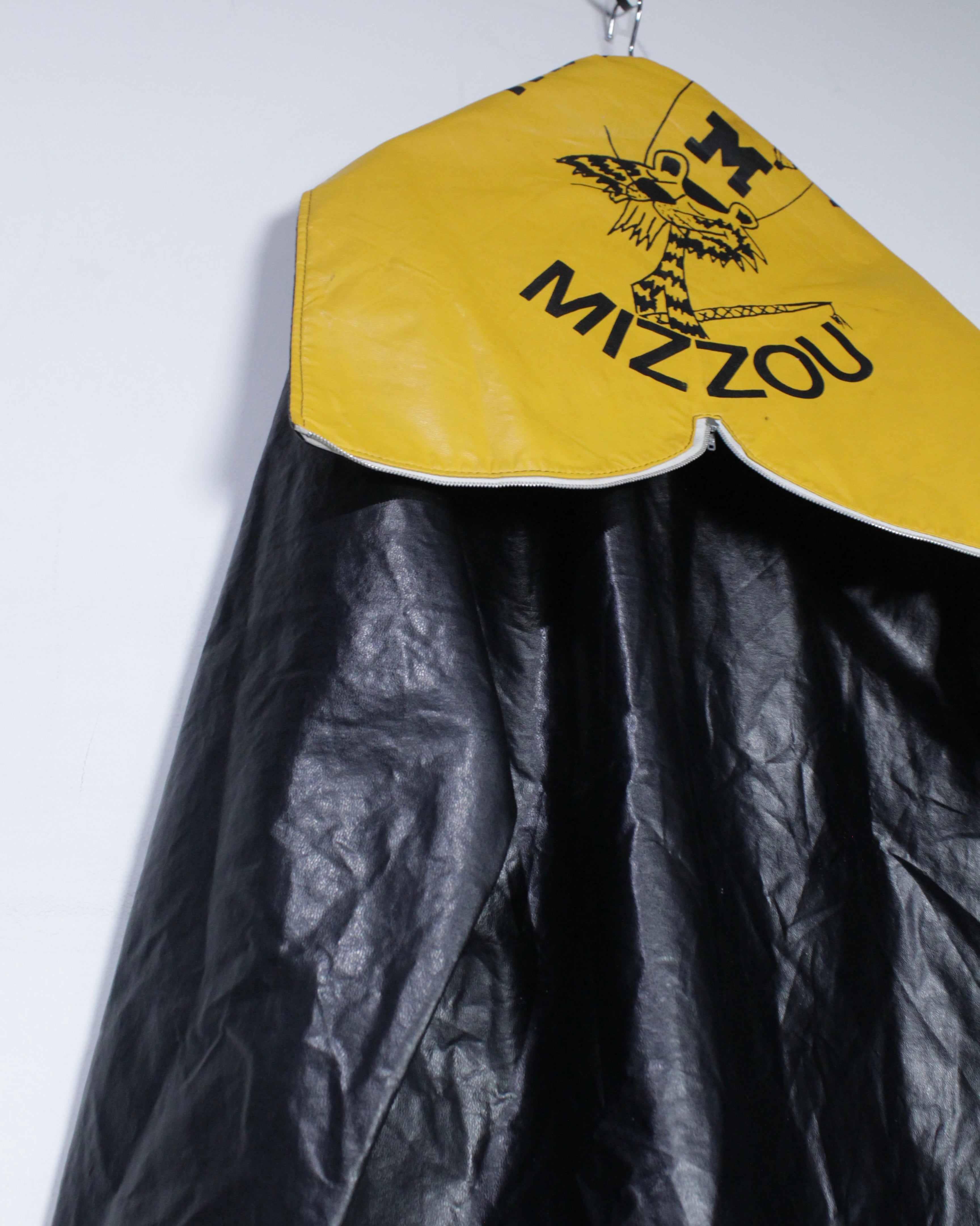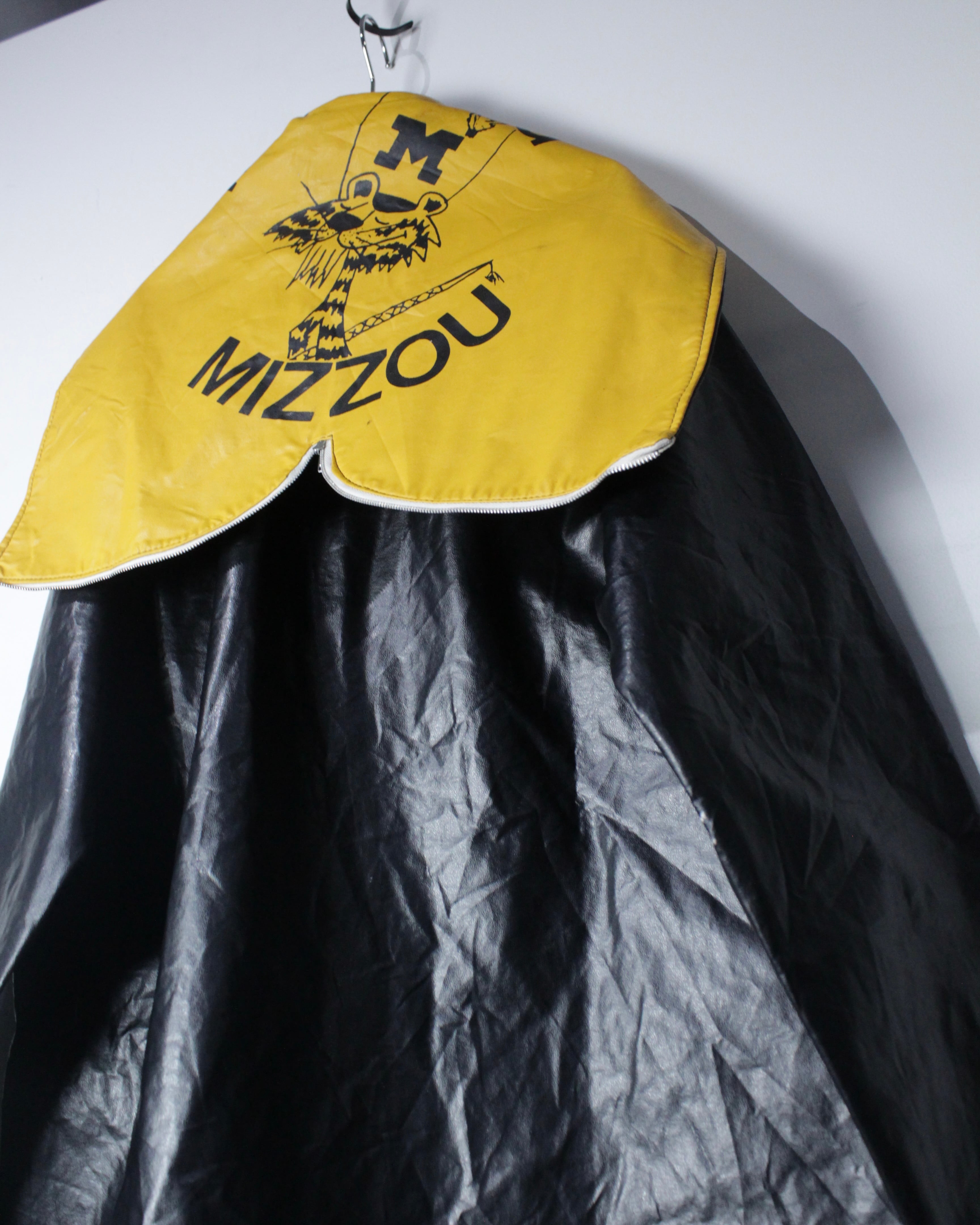 ボディには艶のあるフェイクレザー素材を採用。ヴィンテージのフェイクレザーって点が非常に良く、ムードをしっかりと感じさせます。雨具としての用途を前提としながらも、しっかりとファッションとして成り立つバランス感が◎