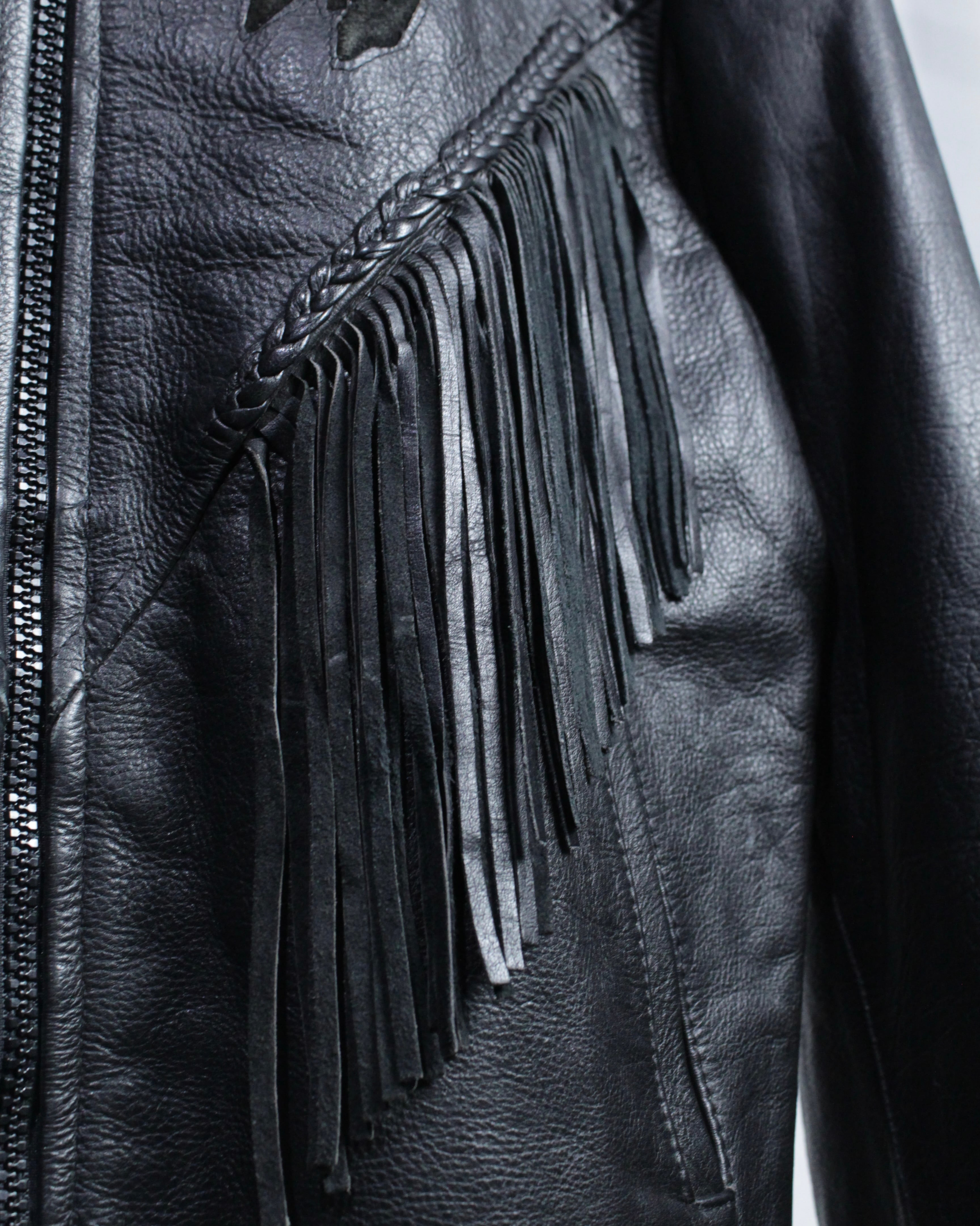 しなやかで重厚感のあるレザーを用い、圧倒的な存在感を放つフリンジレザージャケット。