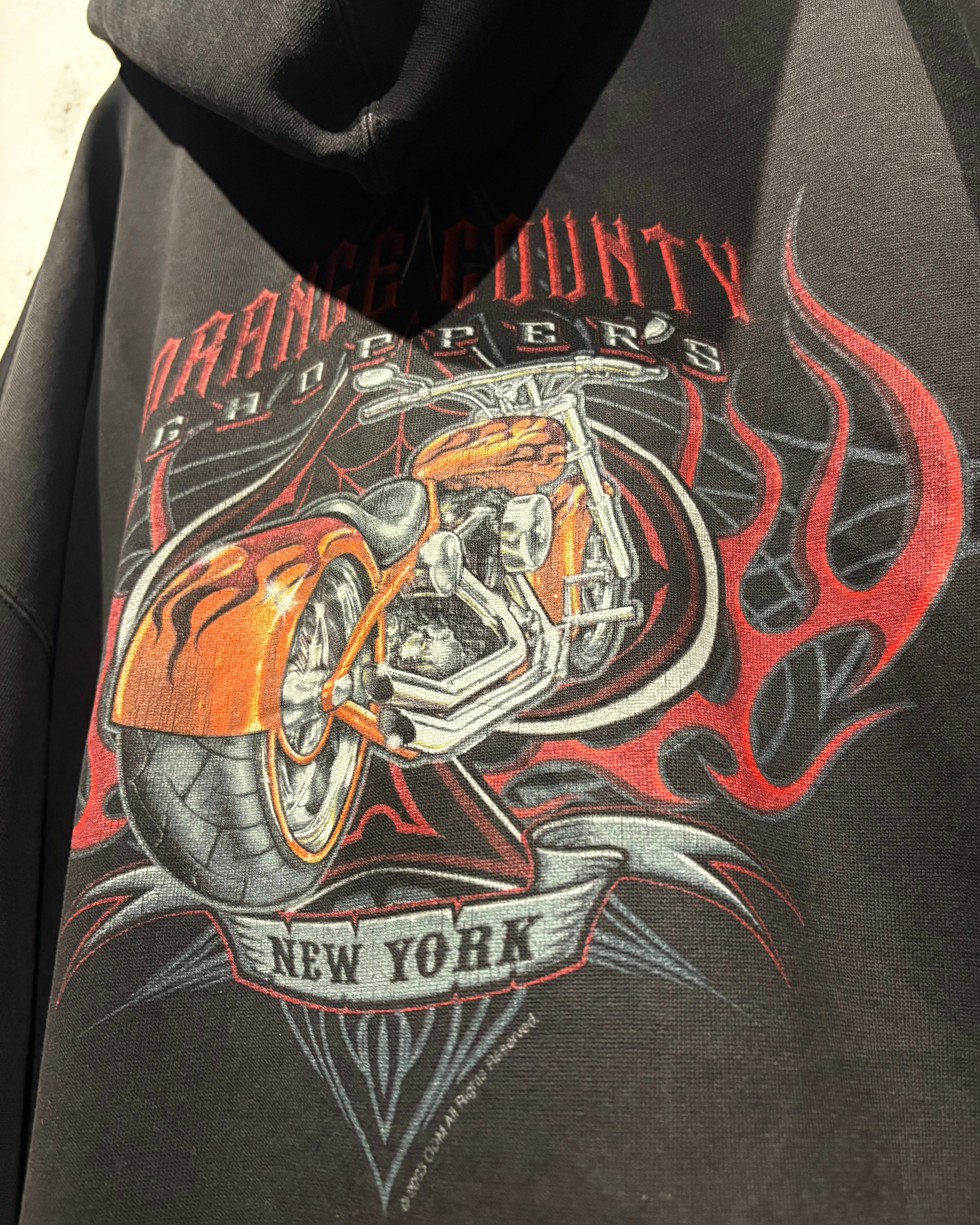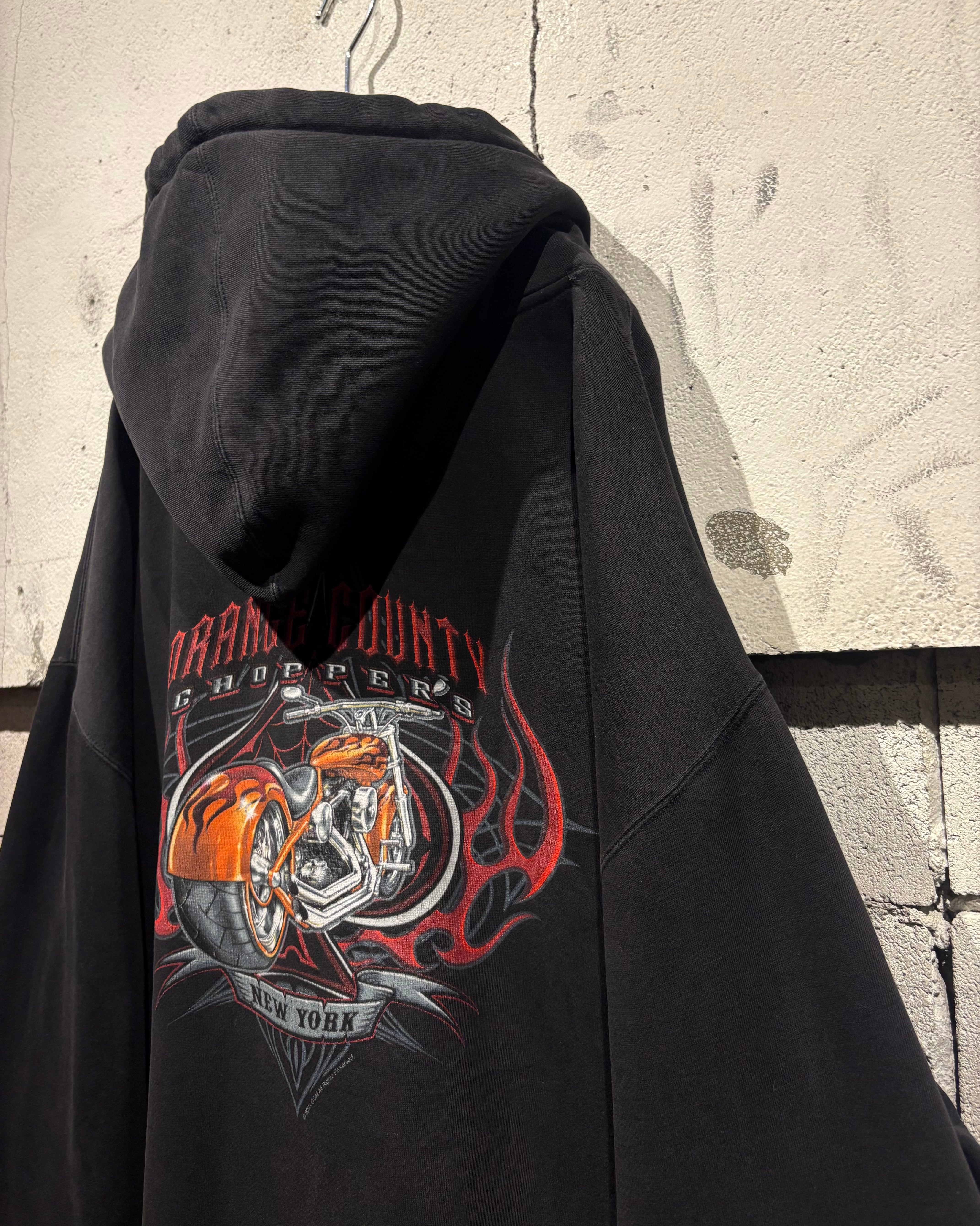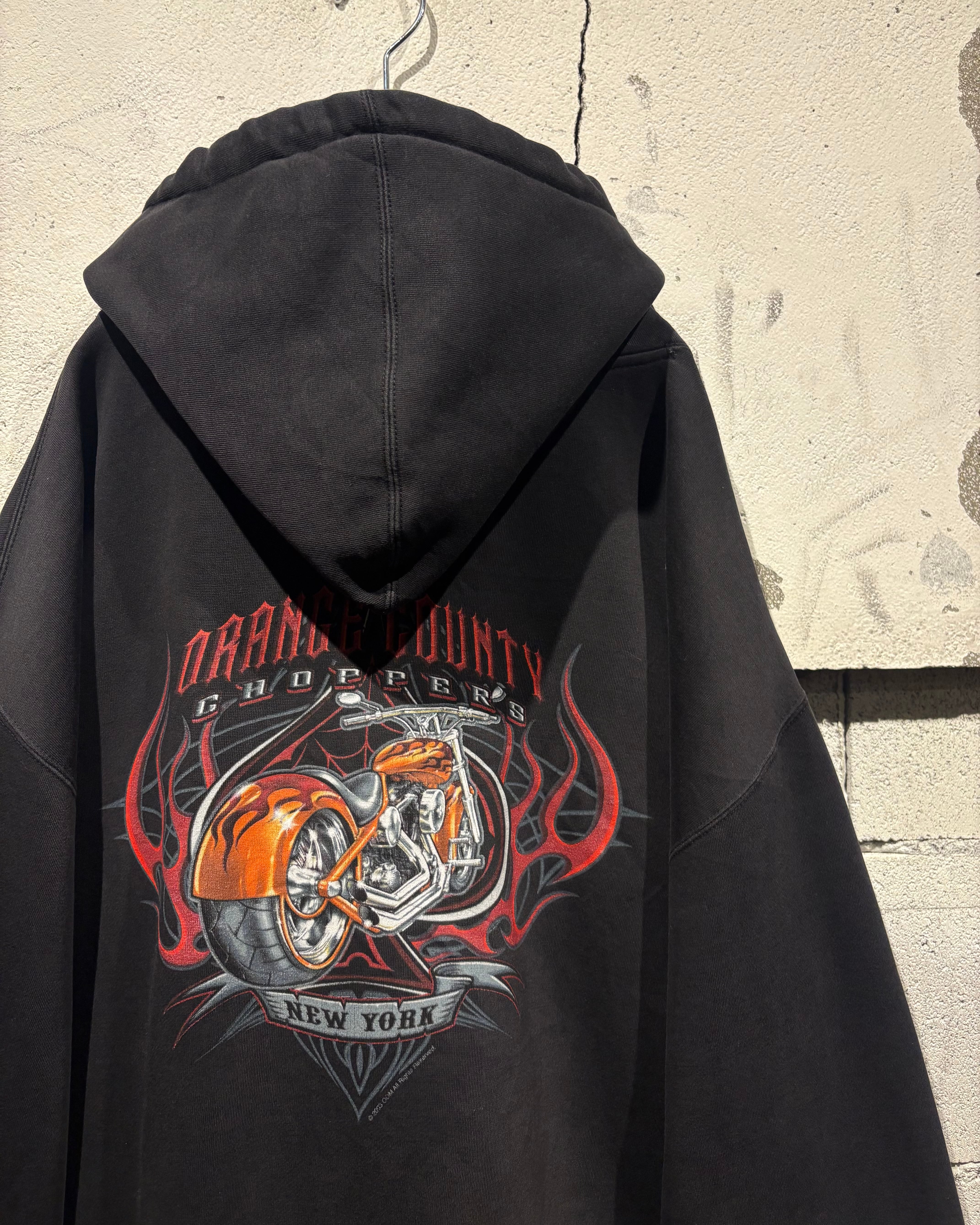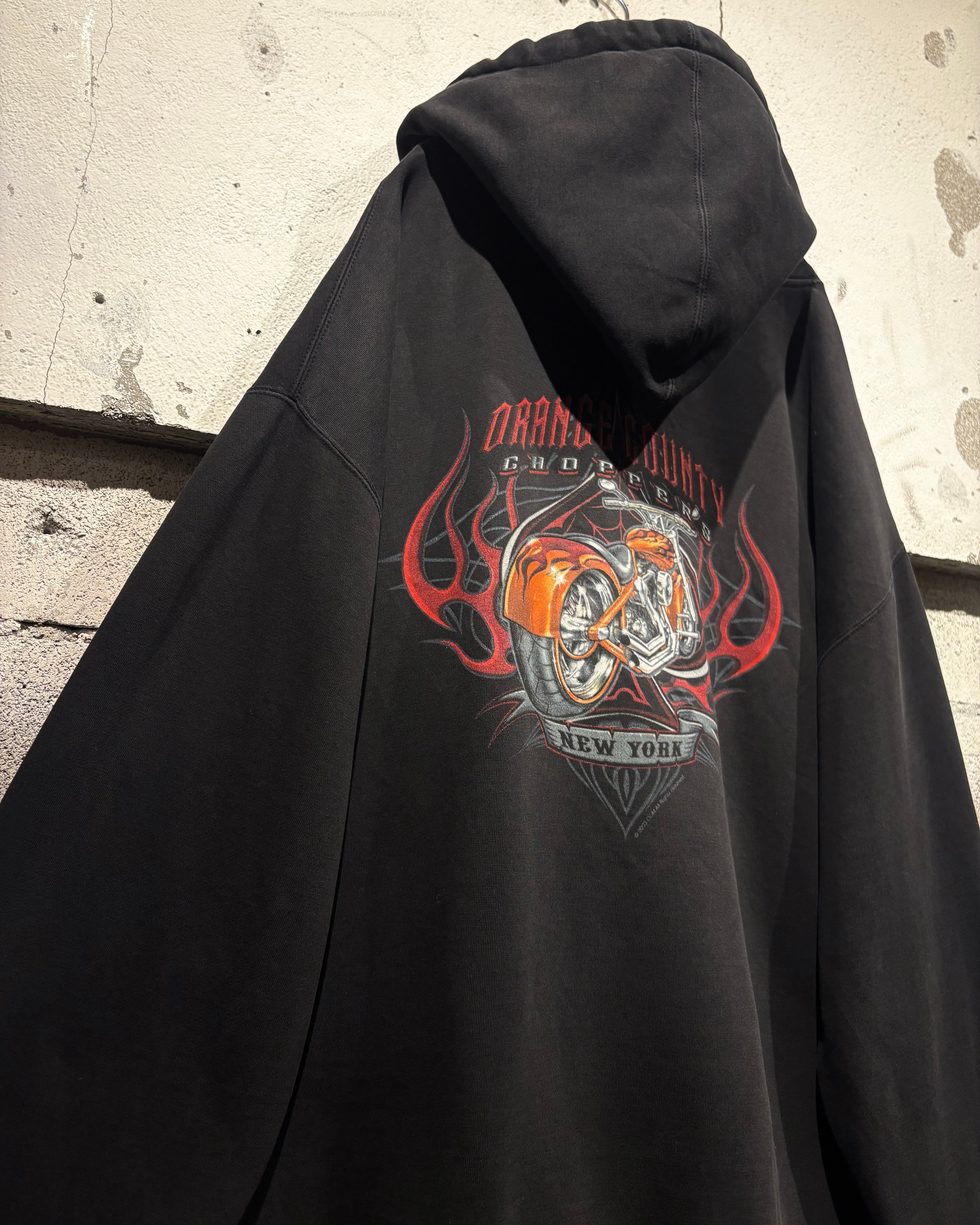 “Orange County Choppers”の世界観をファッションとして楽しめる、存在感のあるフーディーの逸品です。
