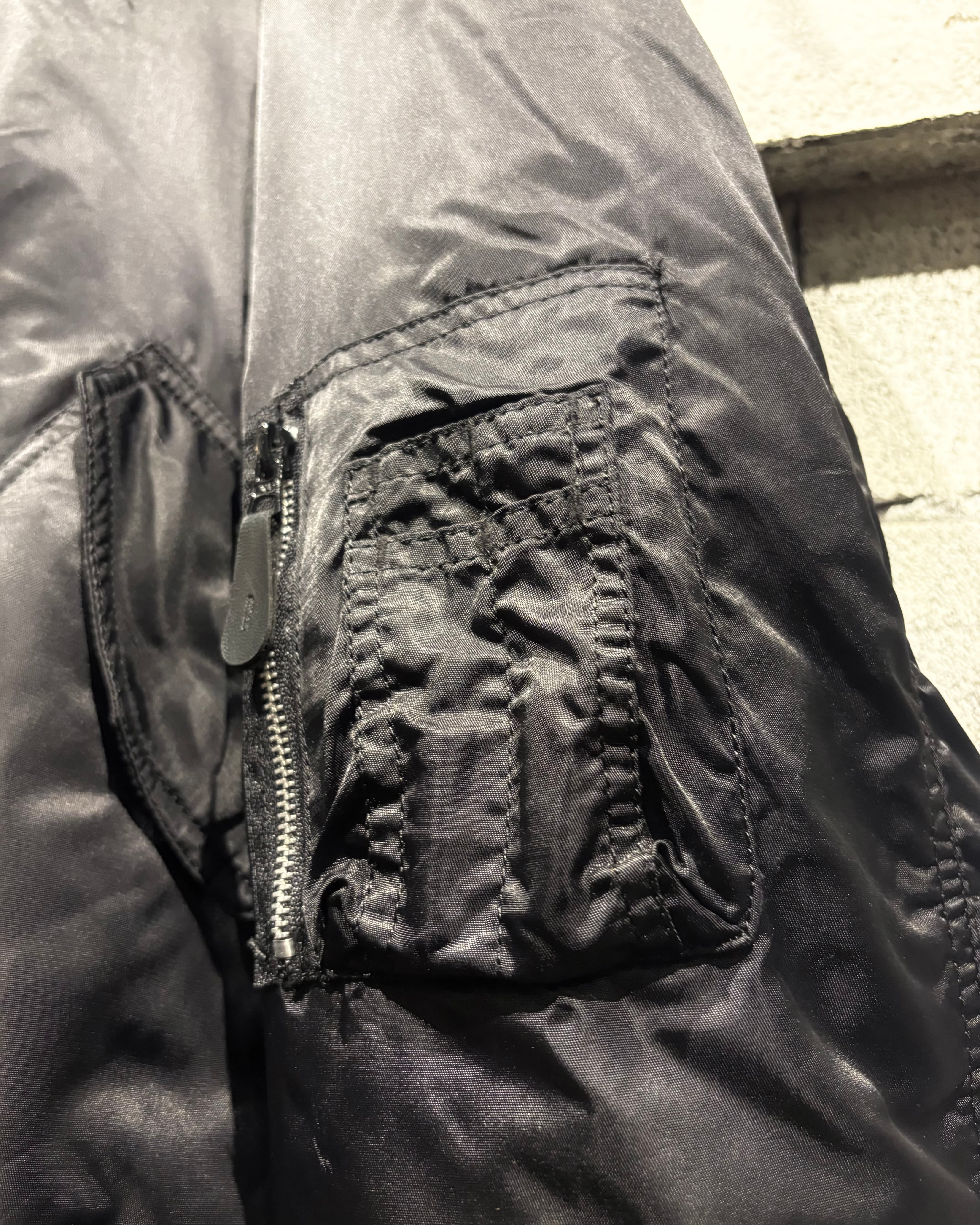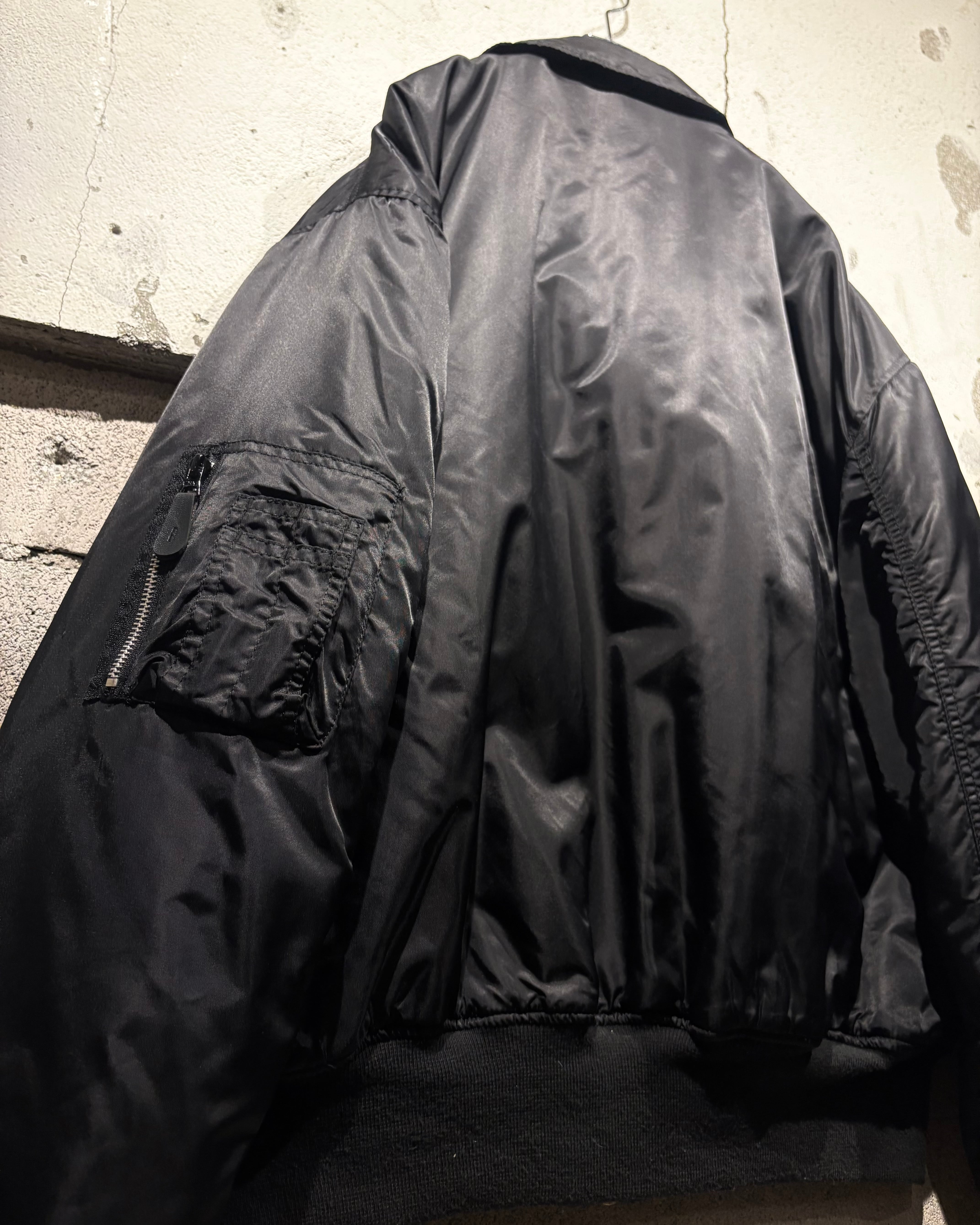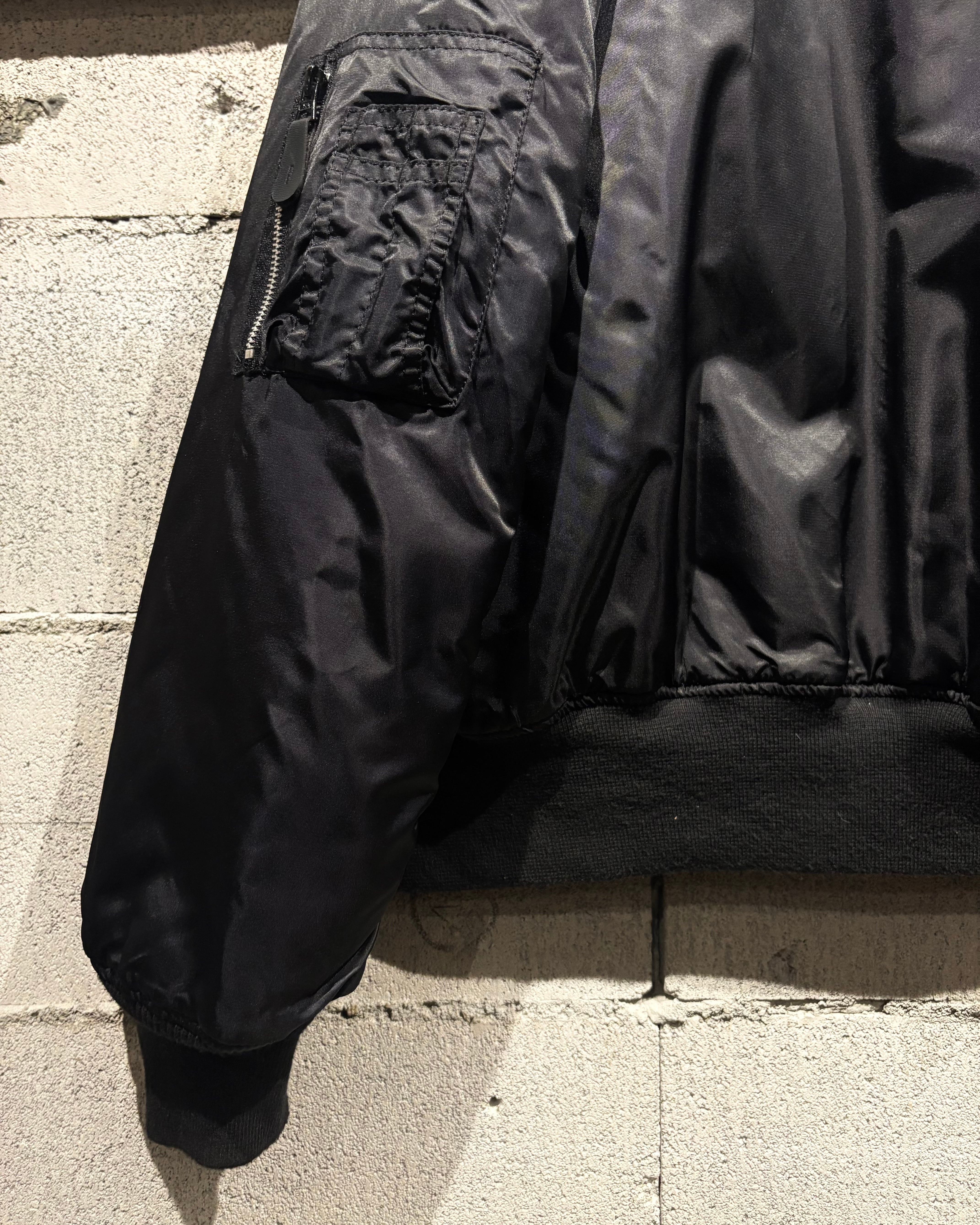 ミリタリーアウターの名門、“ALPHA INDUSTRIES”より、光沢を帯びたブラックのタフなナイロン生地をボディに用いた、アメリカ空軍の名品"CWU-45/P”フライトジャケットをサンプリングした1着。