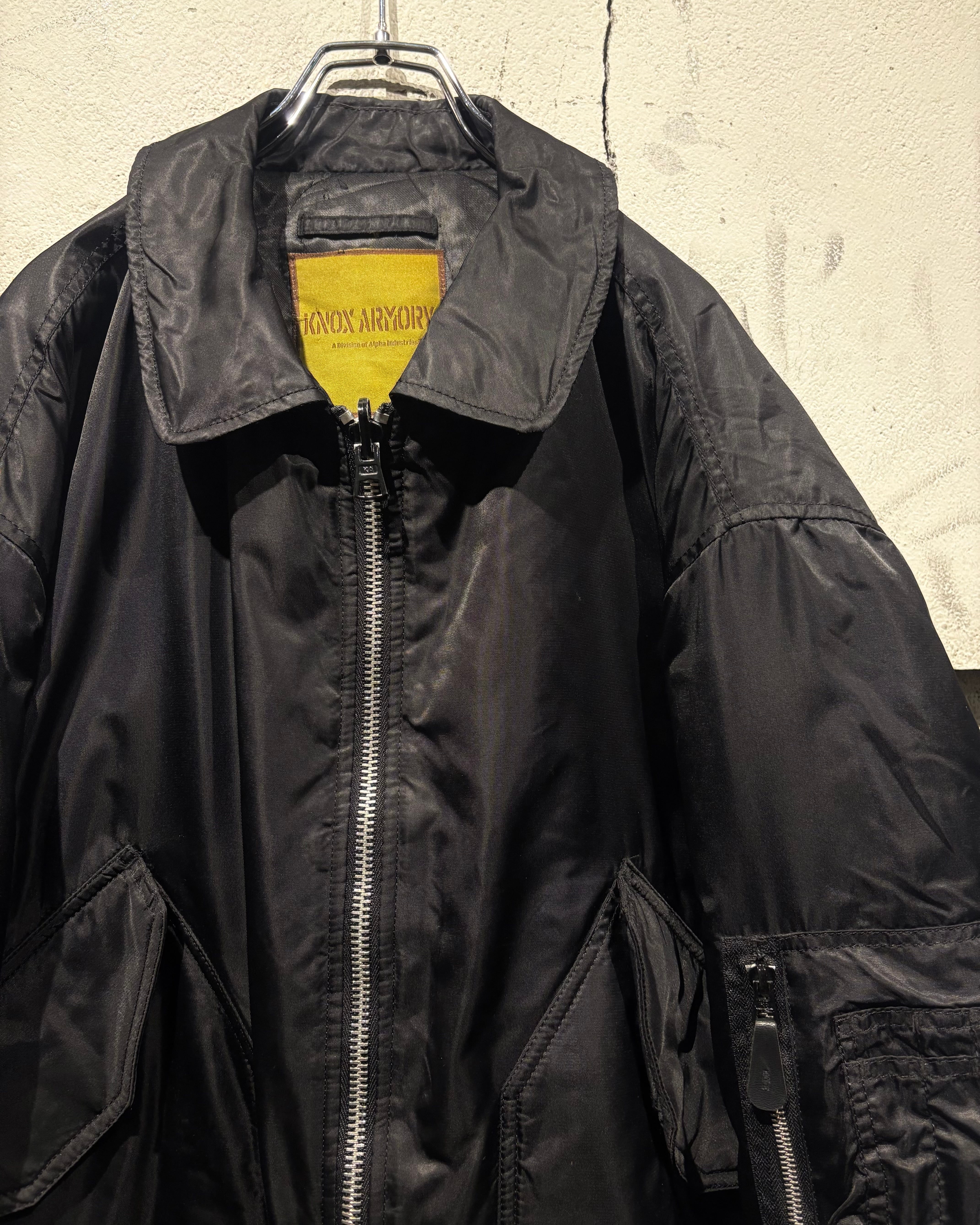 短くスッキリとした丈感に空気を含んだボリューミーシルエットが特徴で、元来狭い軍用機での着用がされていたため、機材等に引っかからないようなミニマムで洗練されたシンプルな作りに。