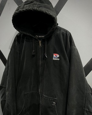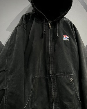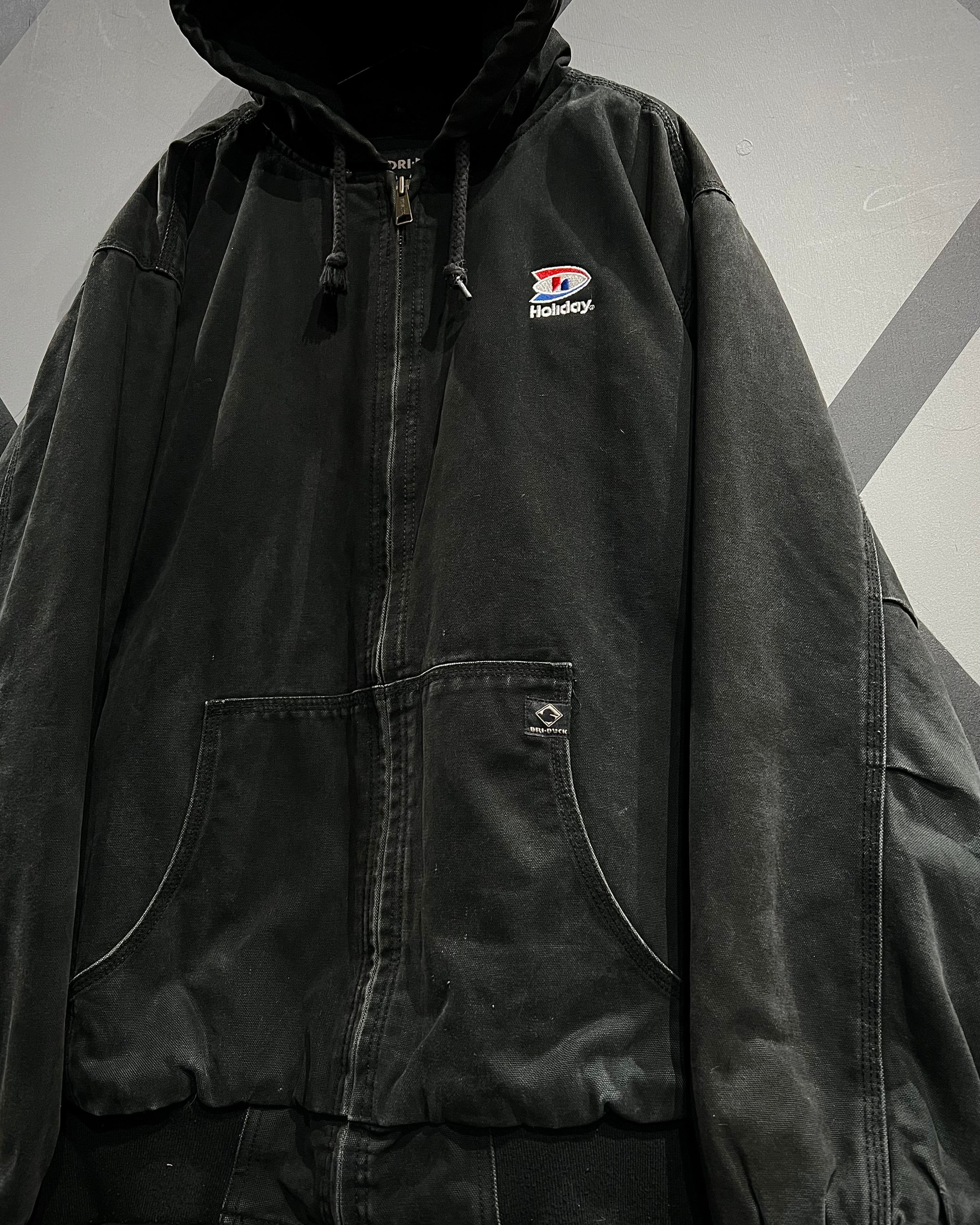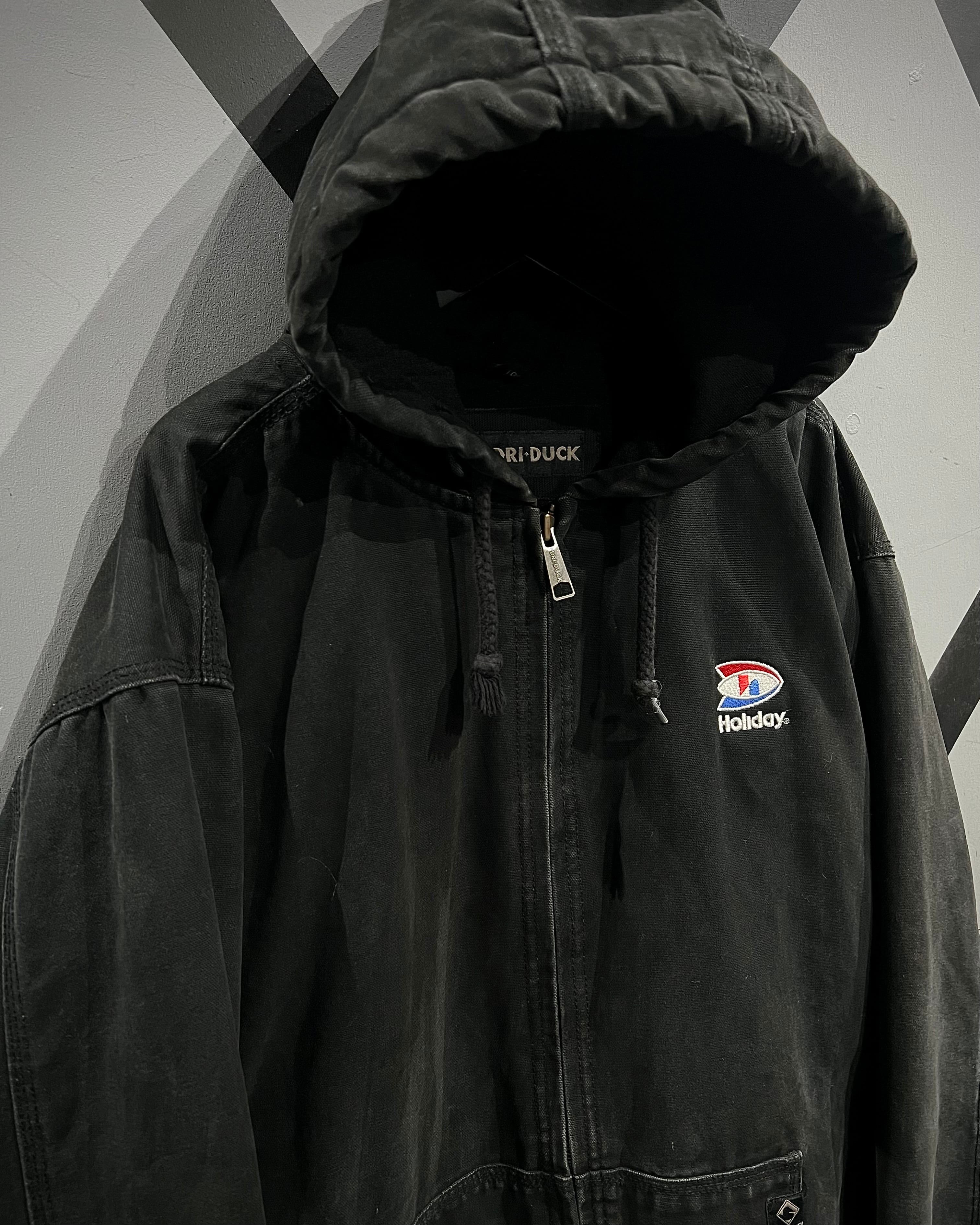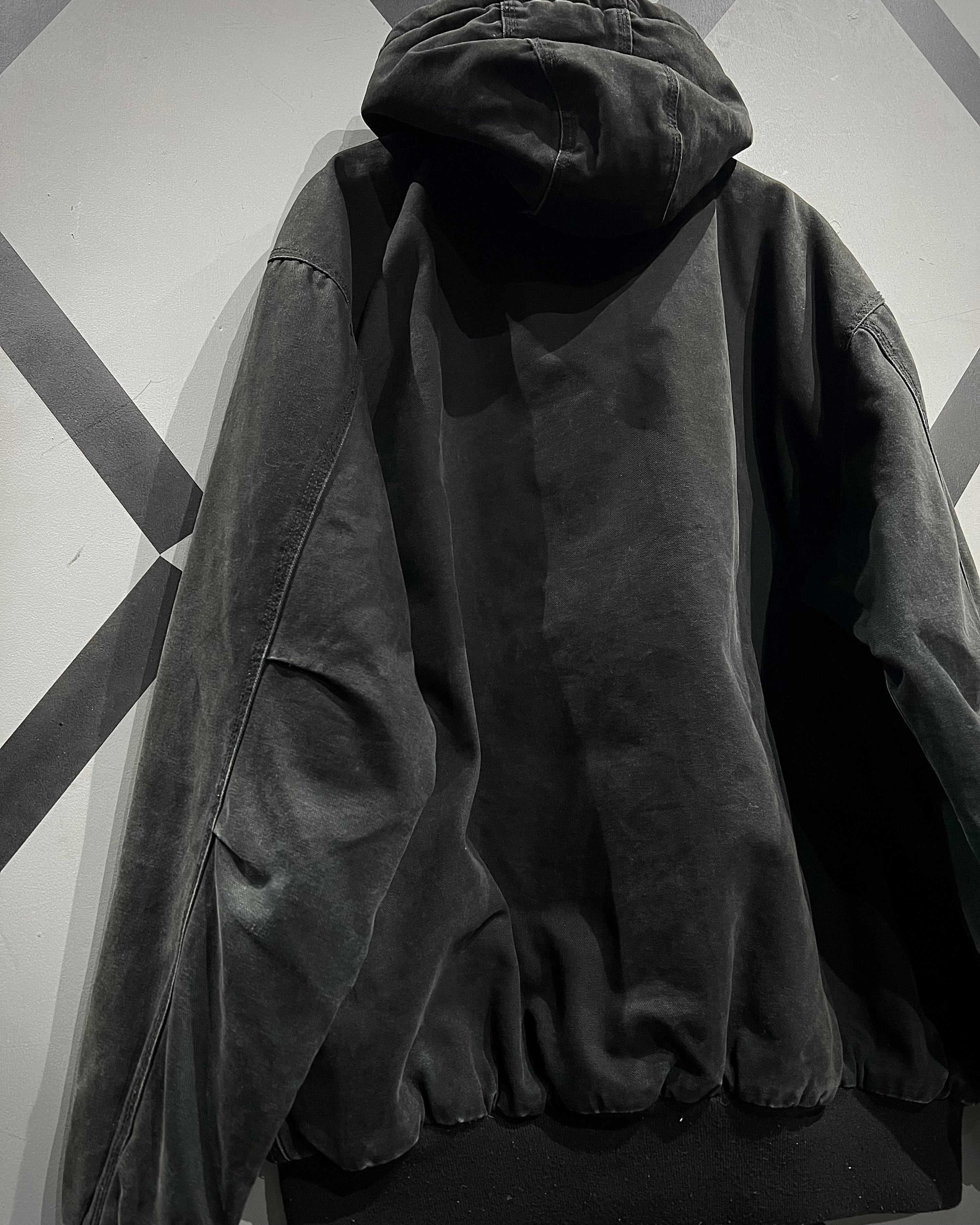 肉厚でタフなダック生地をボディに使用し、長年の着用によって生まれたフェードブラックの表情が美しいアクティブジャケット型のダックジャケット。