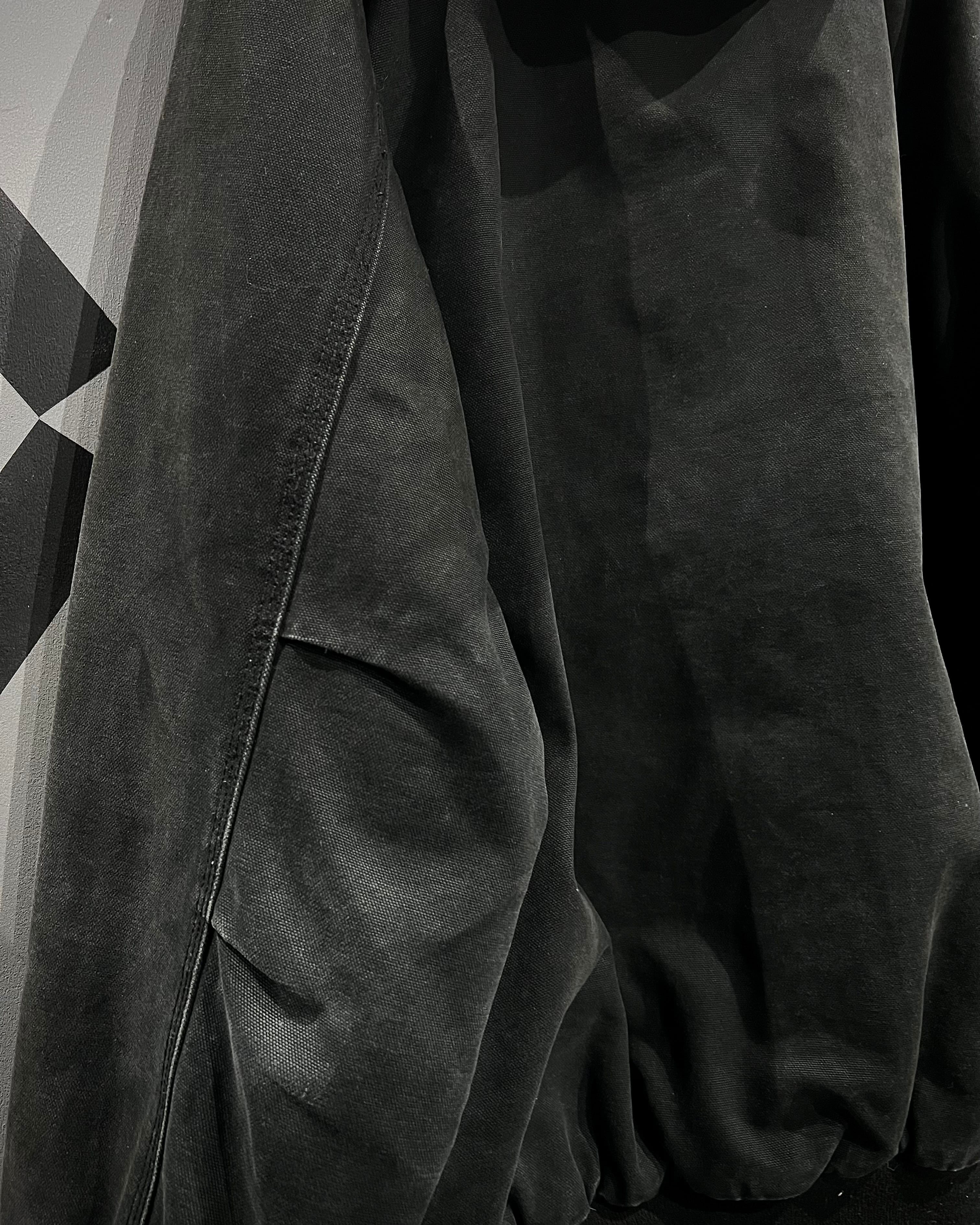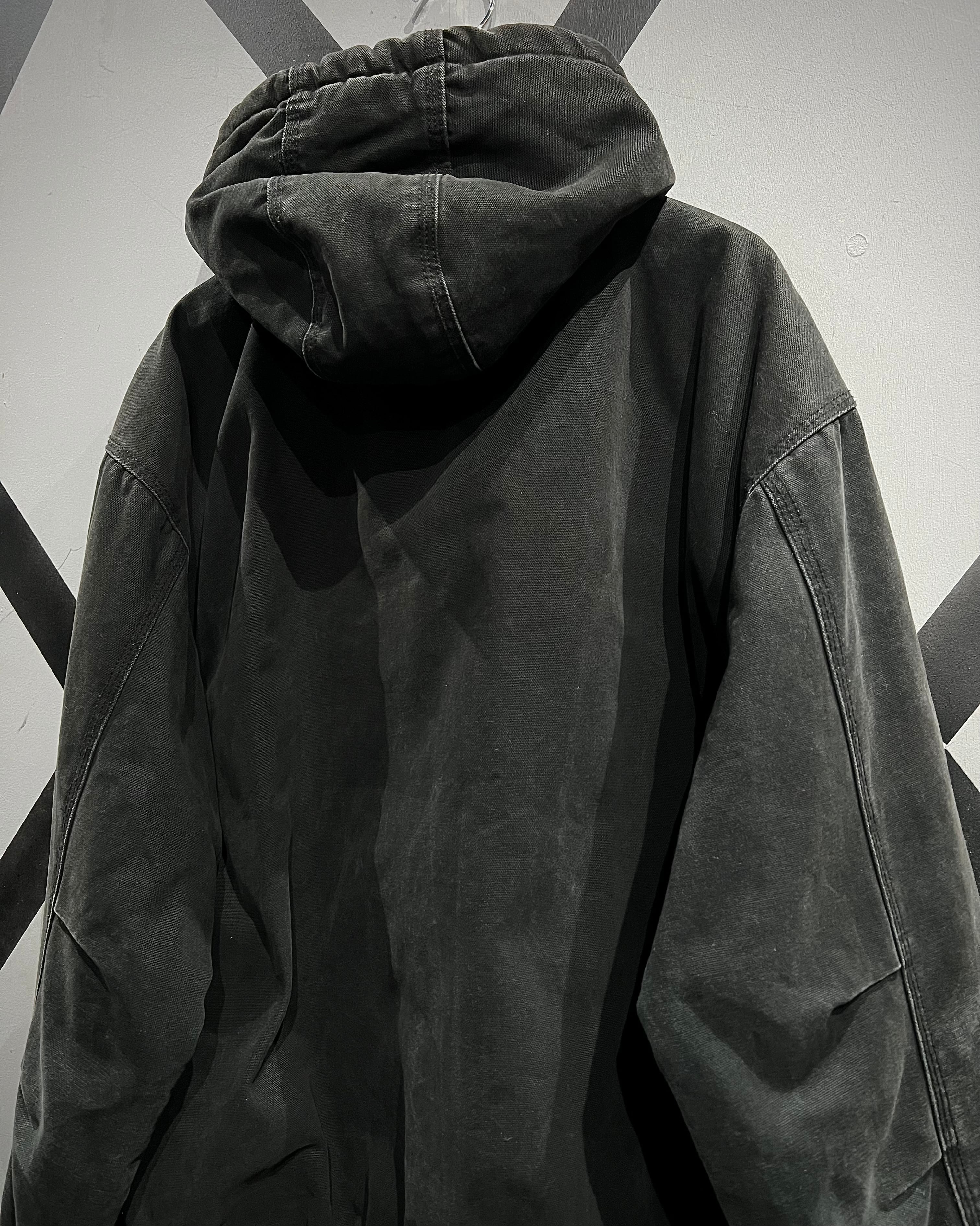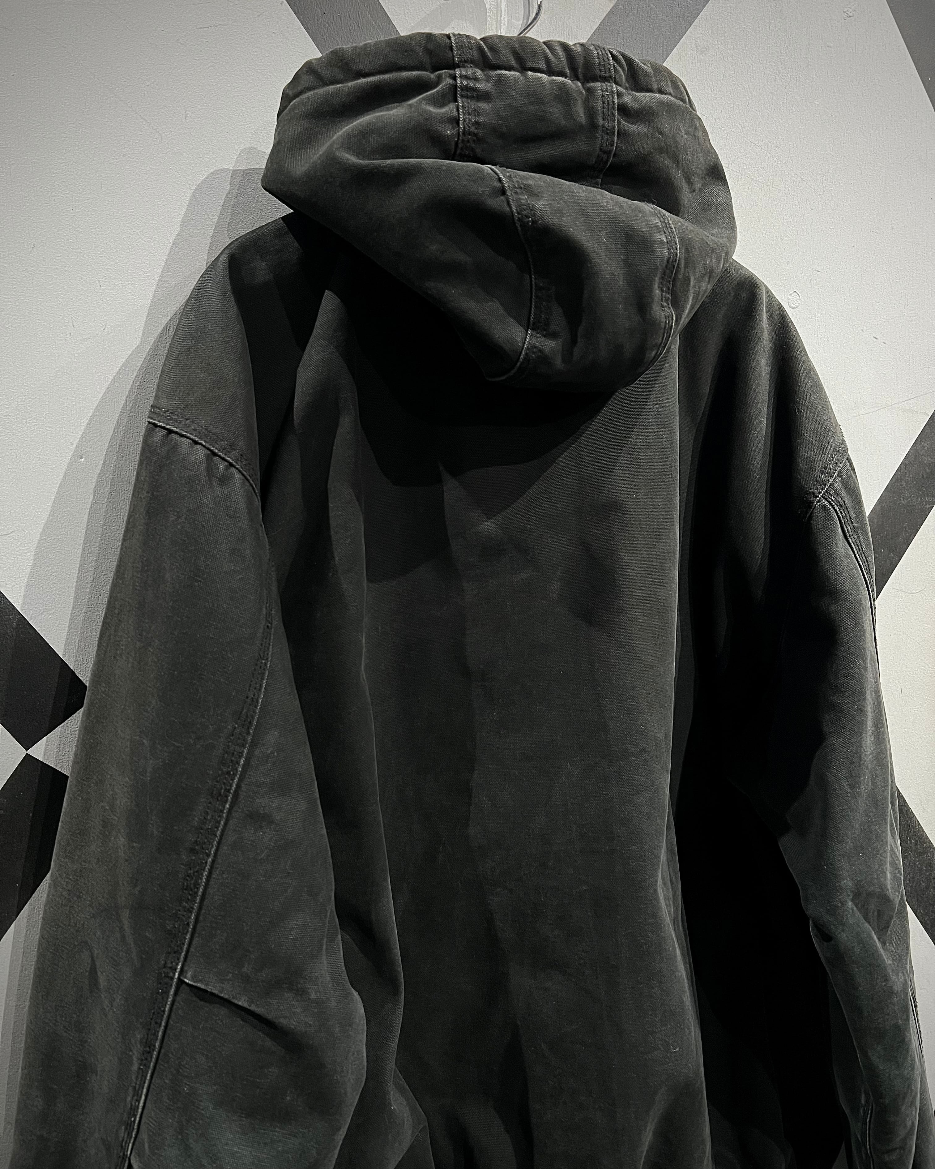 シルエットは身幅にゆとりのあるルーズなシルエット。フーディーやスウェットの上からも問題なく羽織れるサイズバランスで、冬場のメインアウターとしても即戦力。デニムやペインターパンツとの王道ワークスタイルはもちろん、スラックスやテック系アイテムとのミックスもおすすめです。