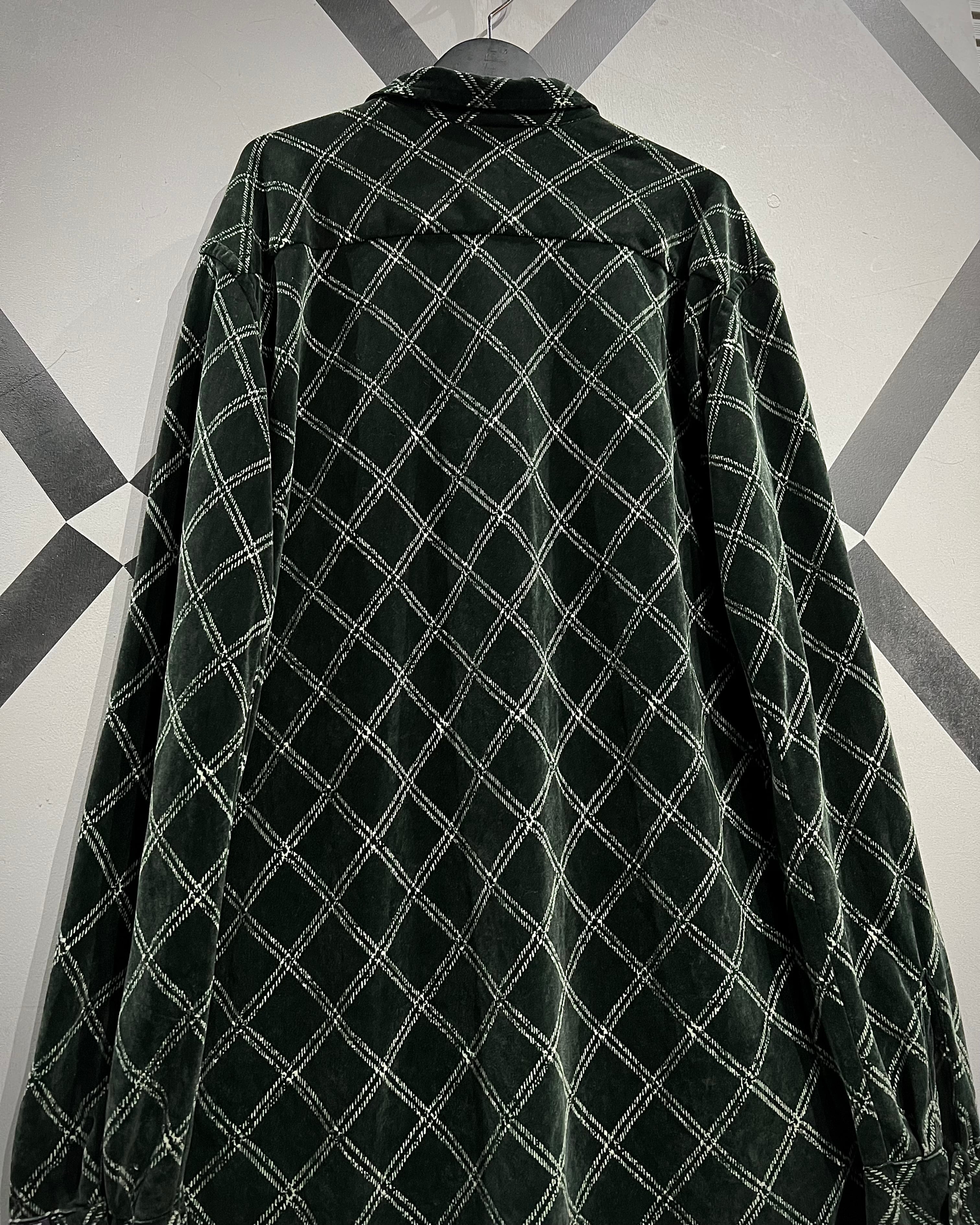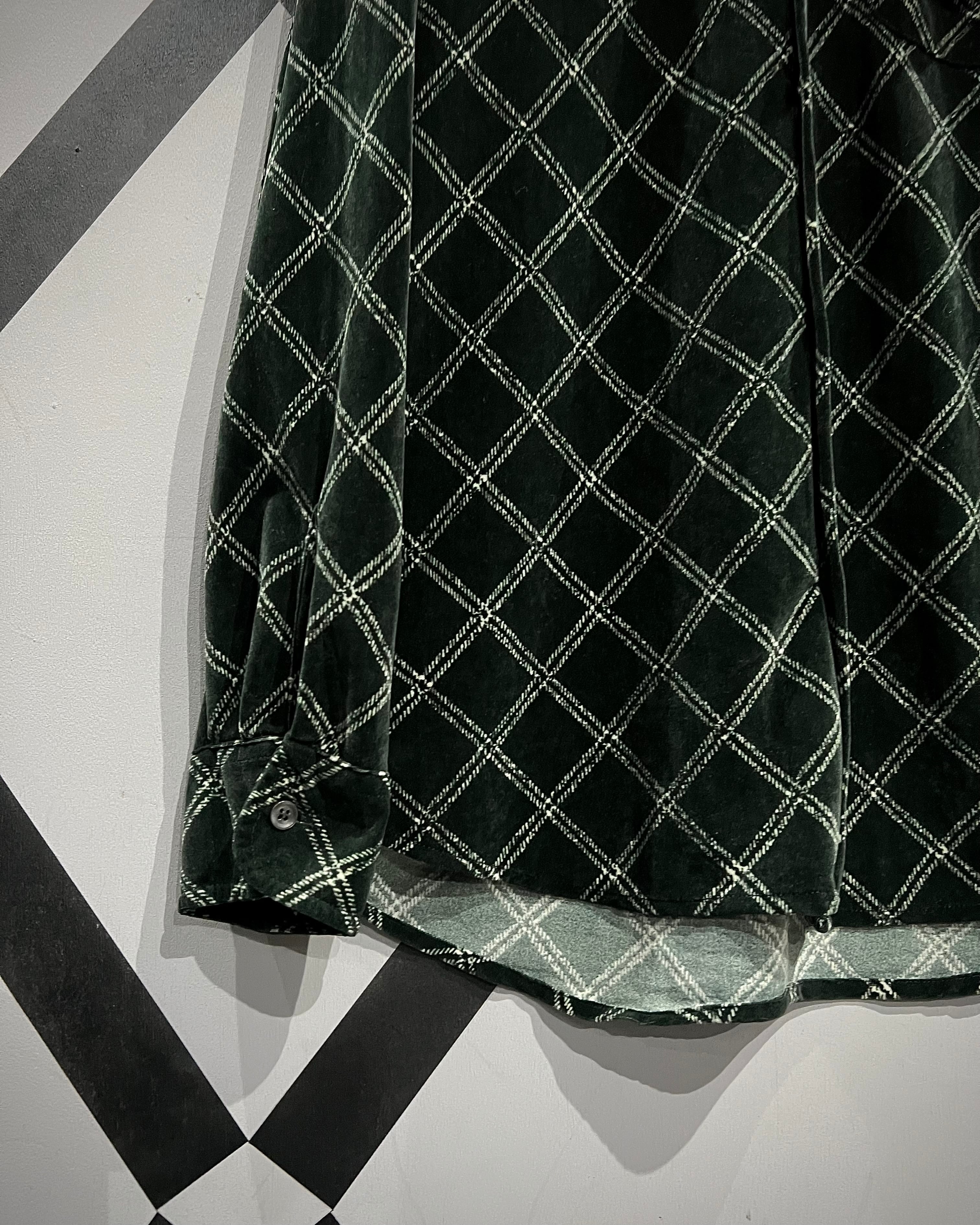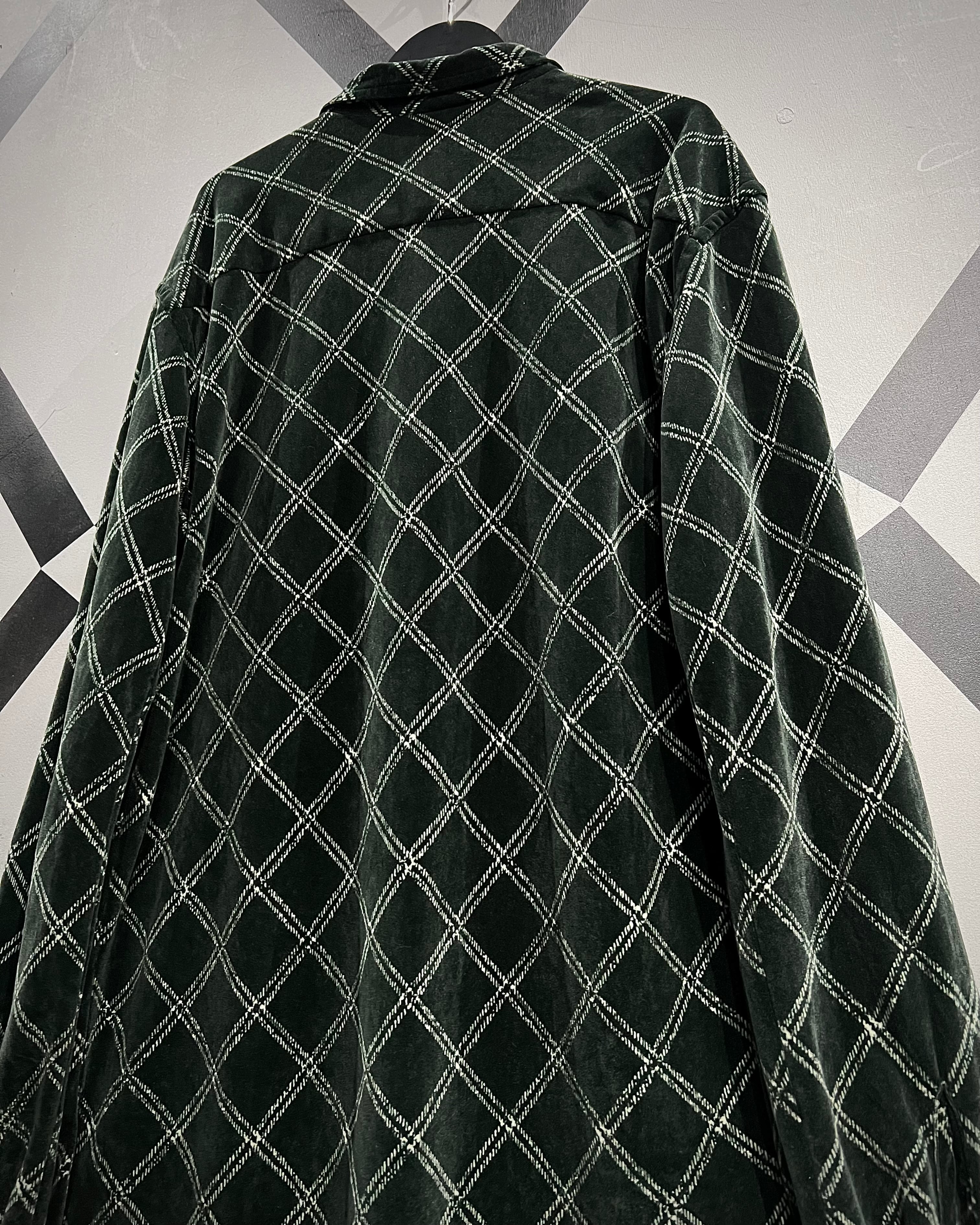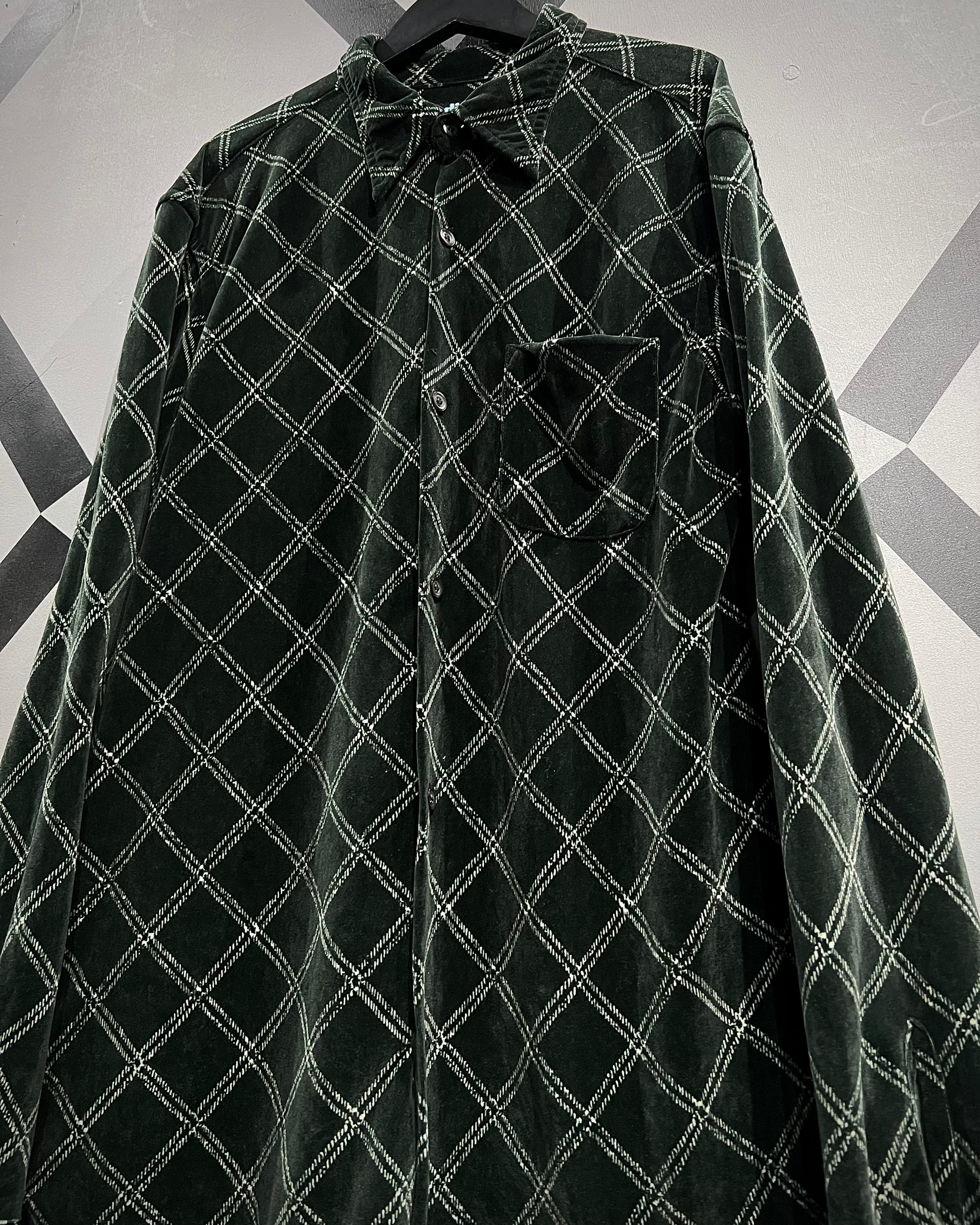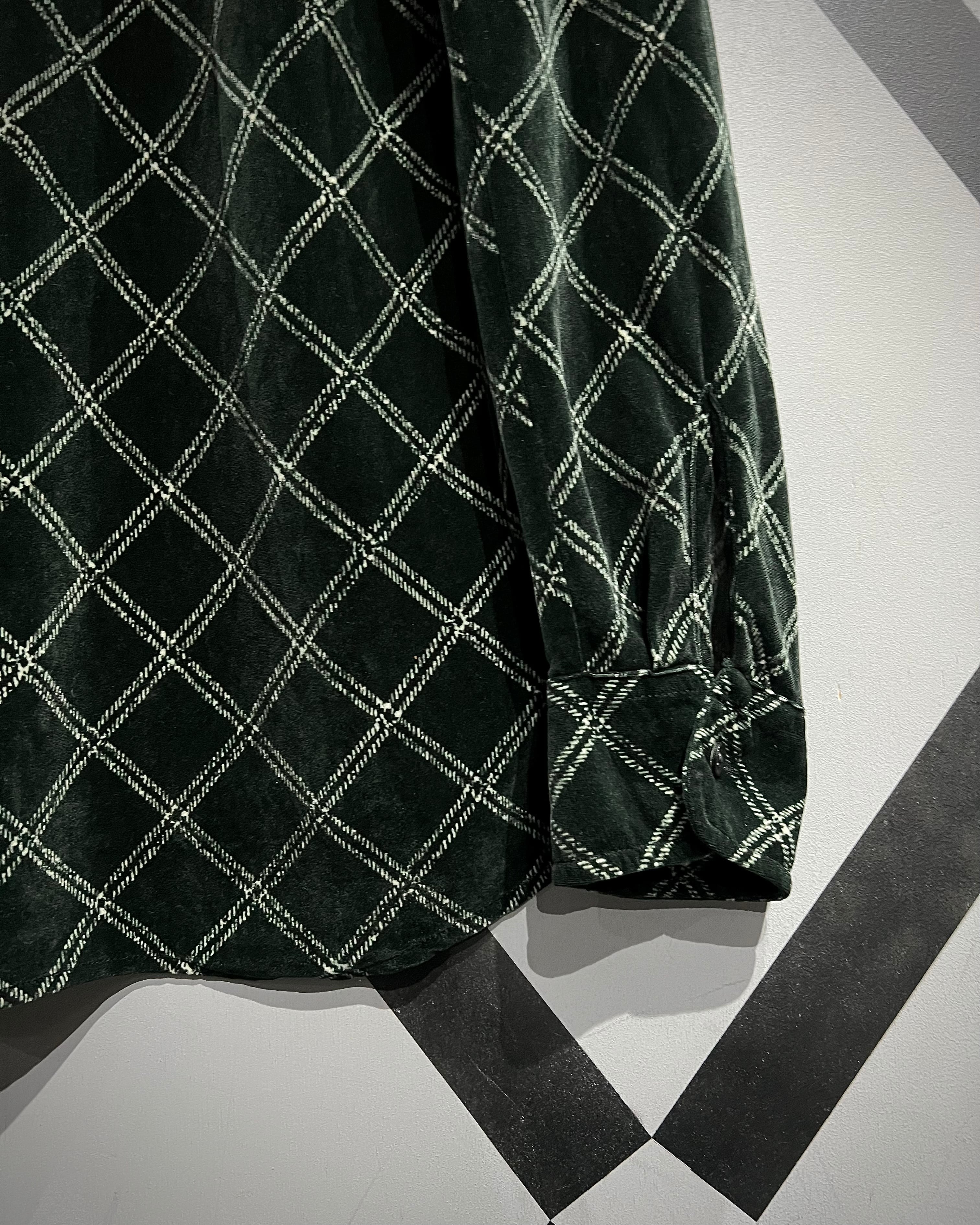 カジュアルなシャツという枠に収まらない、素材選びとグラフィカルなアプローチが特徴的な、“DIESEL“らしいエッジの効いた感性が色濃く反映された、ベロア素材のチェックシャツ。