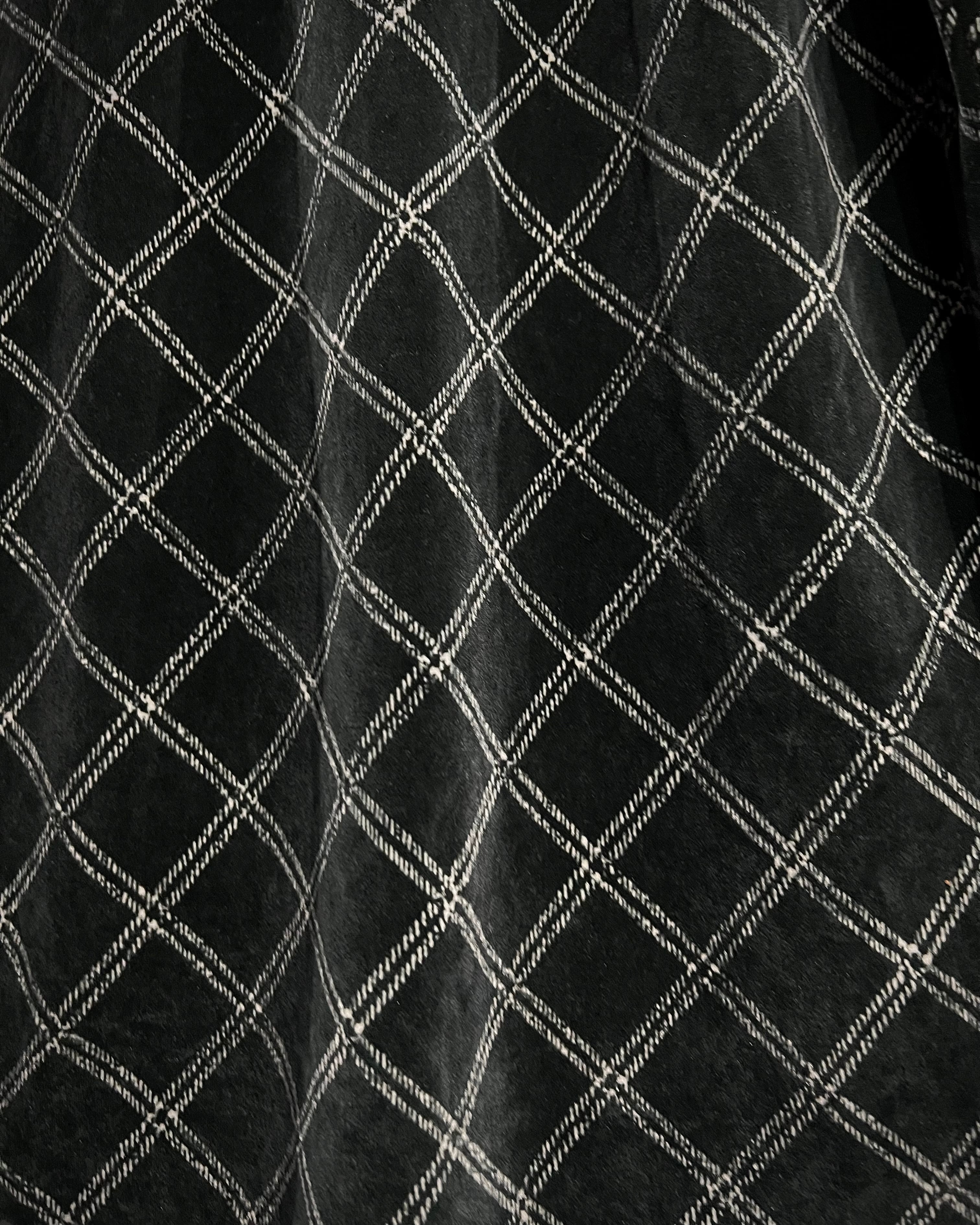 胸ポケットの配置や柄合わせなど細部まで抜かりのない作り込みもあり、ベロア×チェックという一見クセのある組み合わせを、しっかりとファッションとして成立させている点は、ディーゼルならではかと。