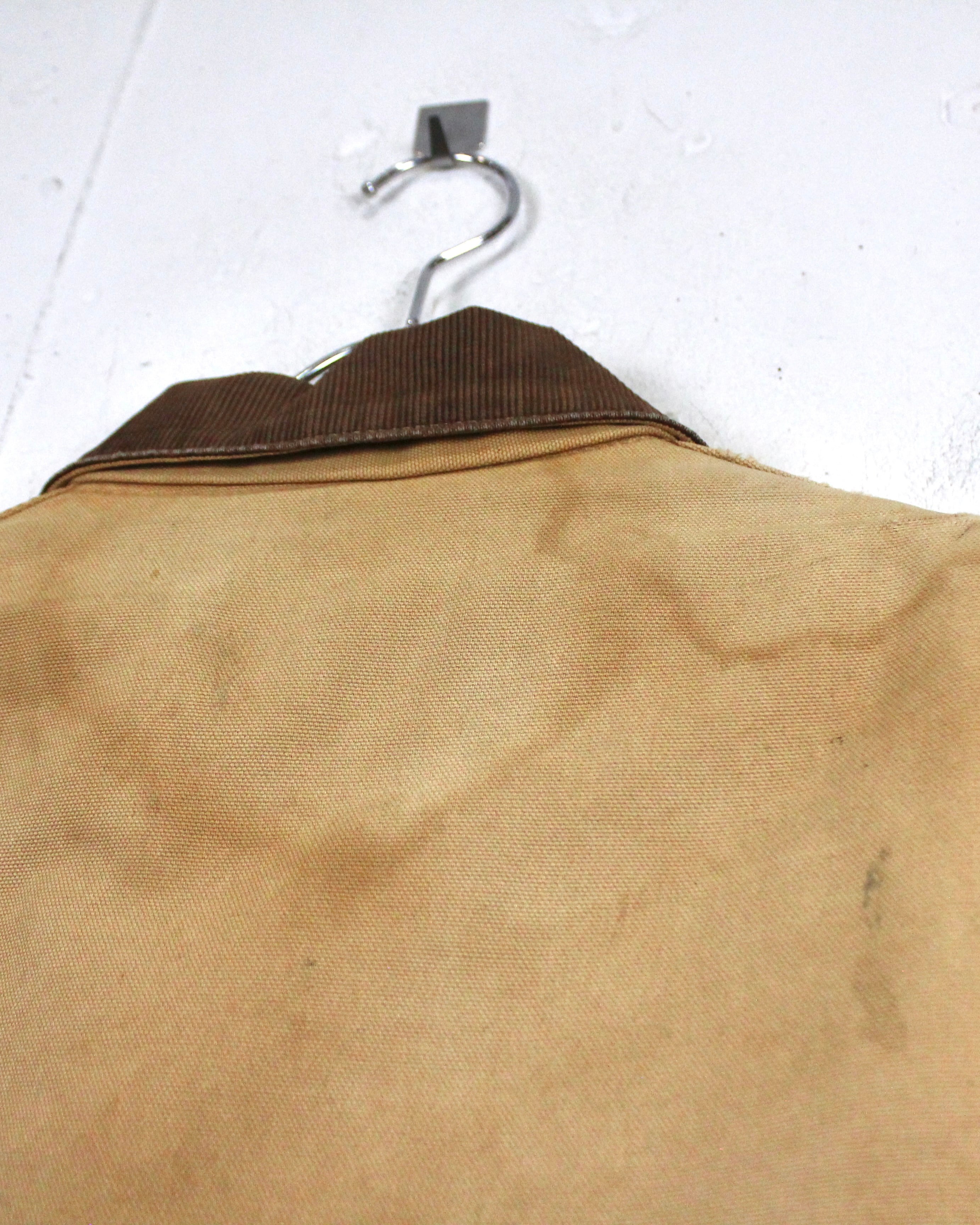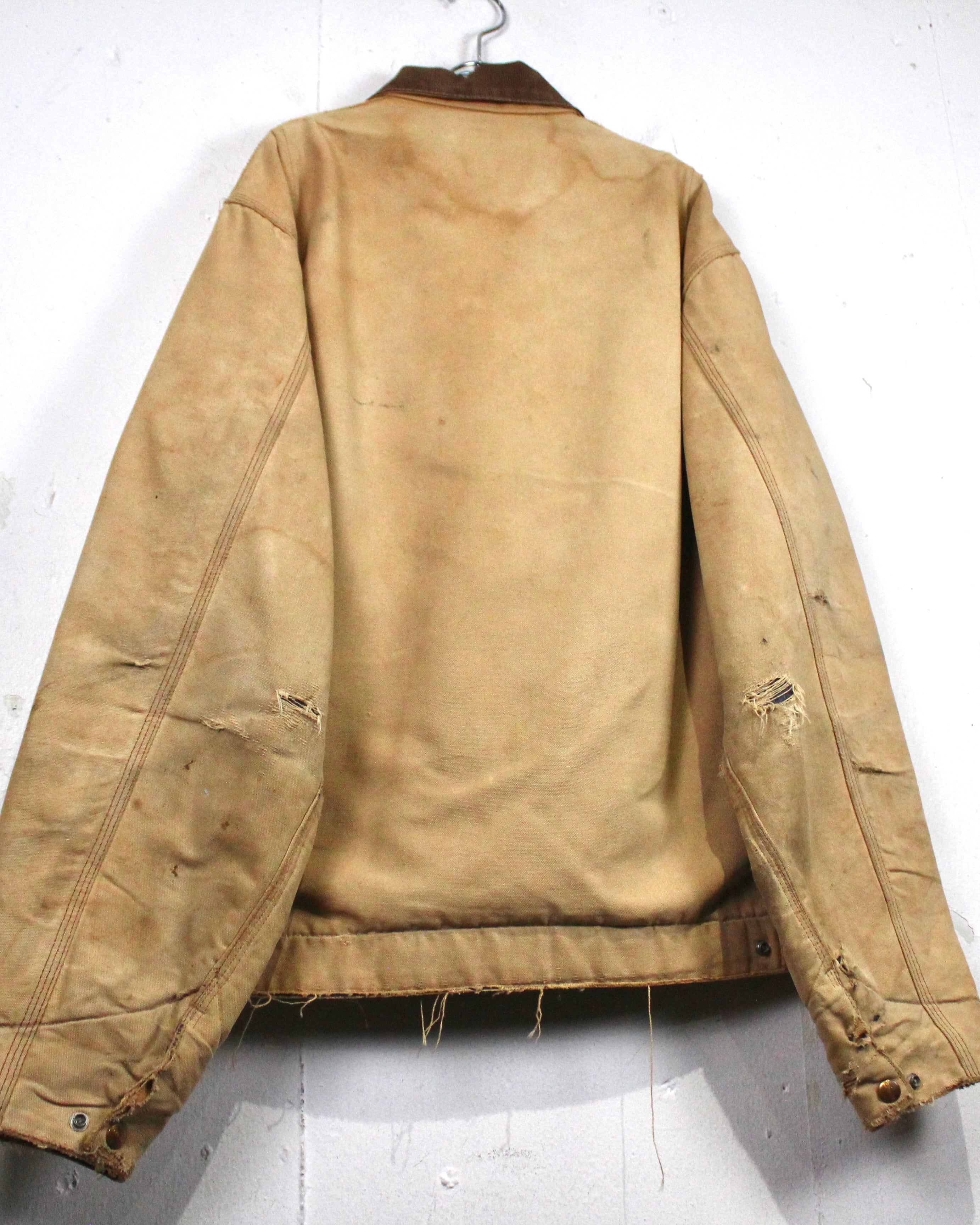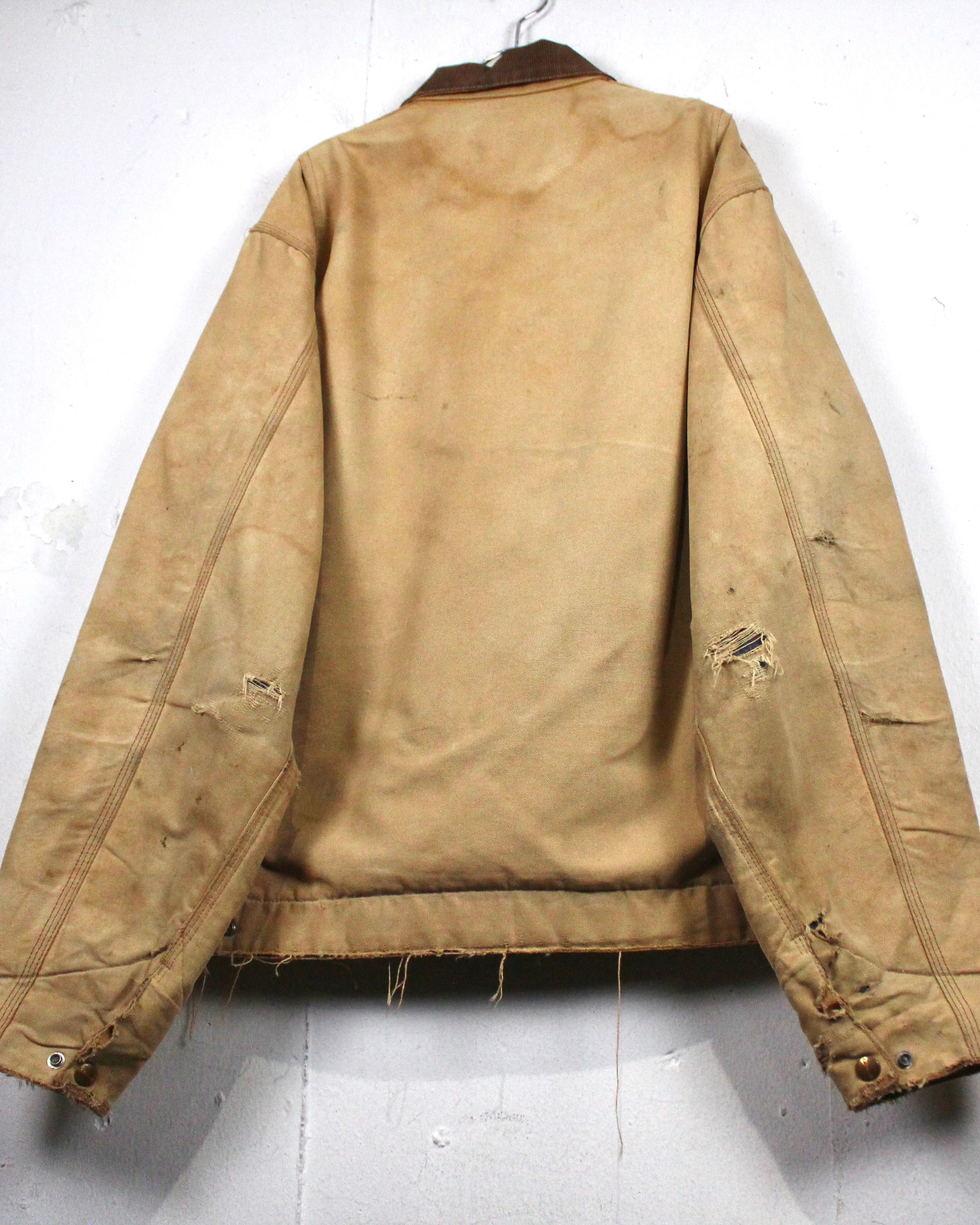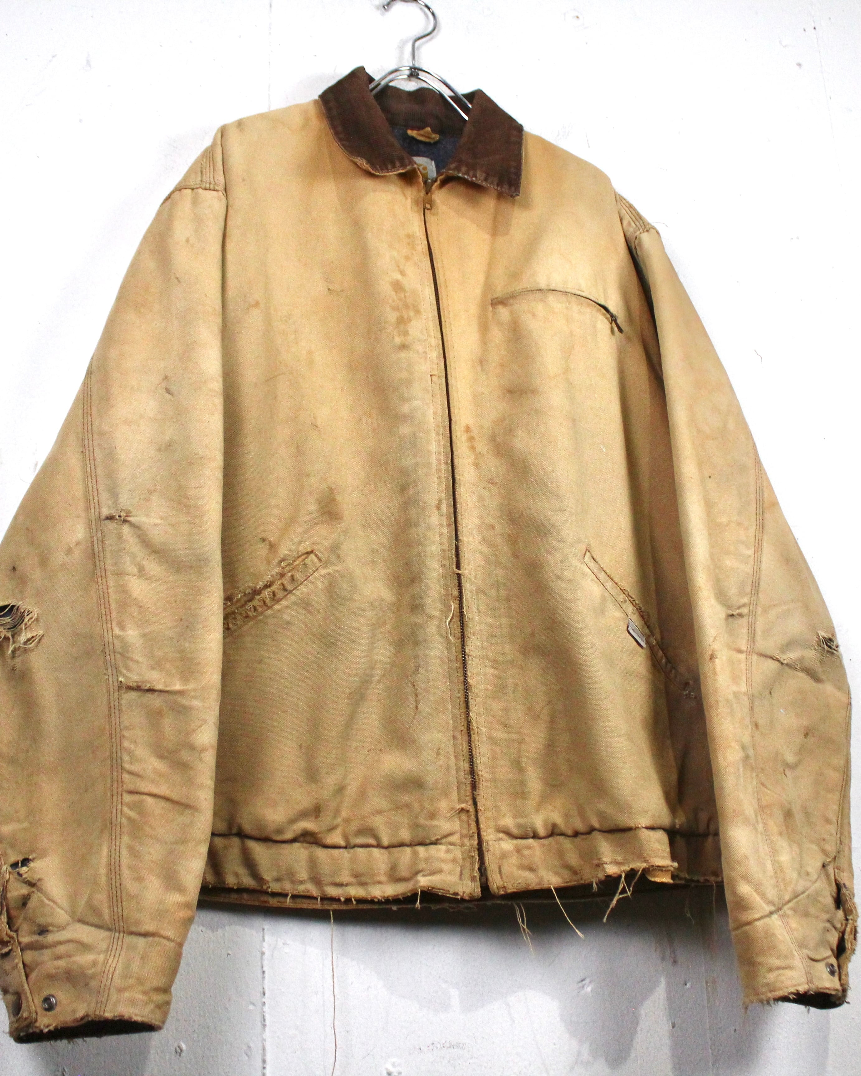 強靭なダック地をベースに、長年の着用によって刻まれたフェード、擦れ、ダメージが全体に広がり、ワークウェアならではの迫力ある佇まいに仕上がった1着。均一ではない色落ちやボロ感が、現行品では決して表現できない奥行きを生み出しています。
