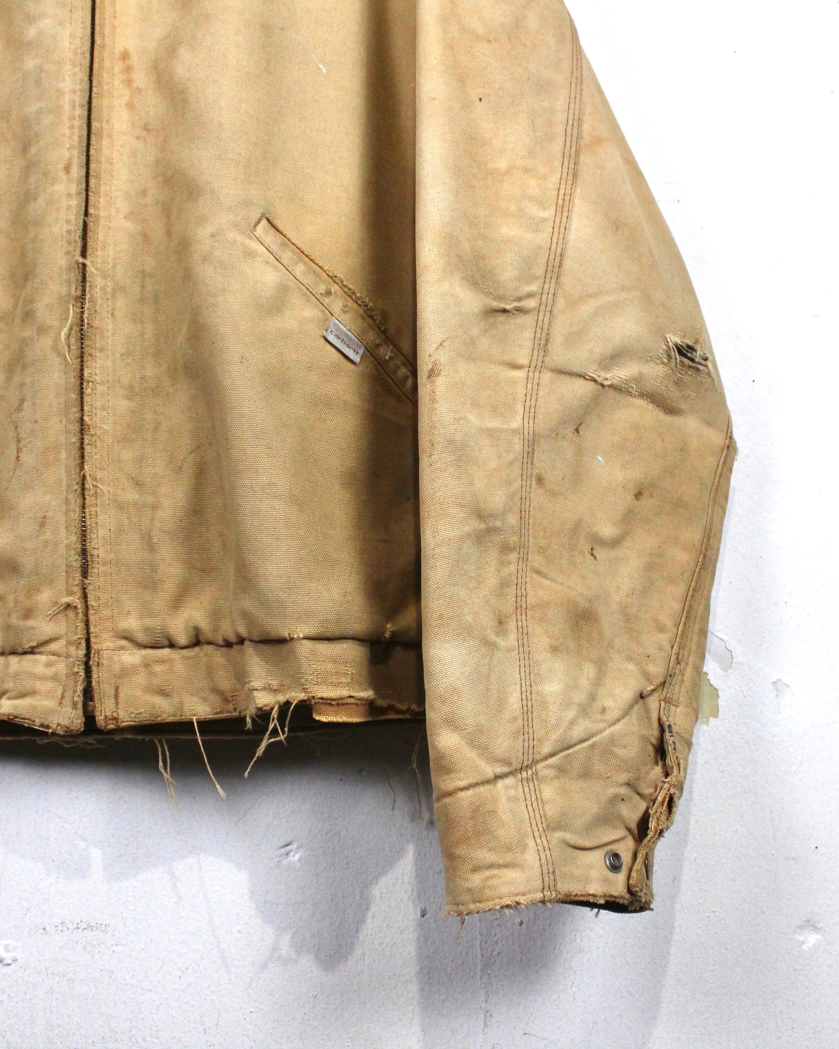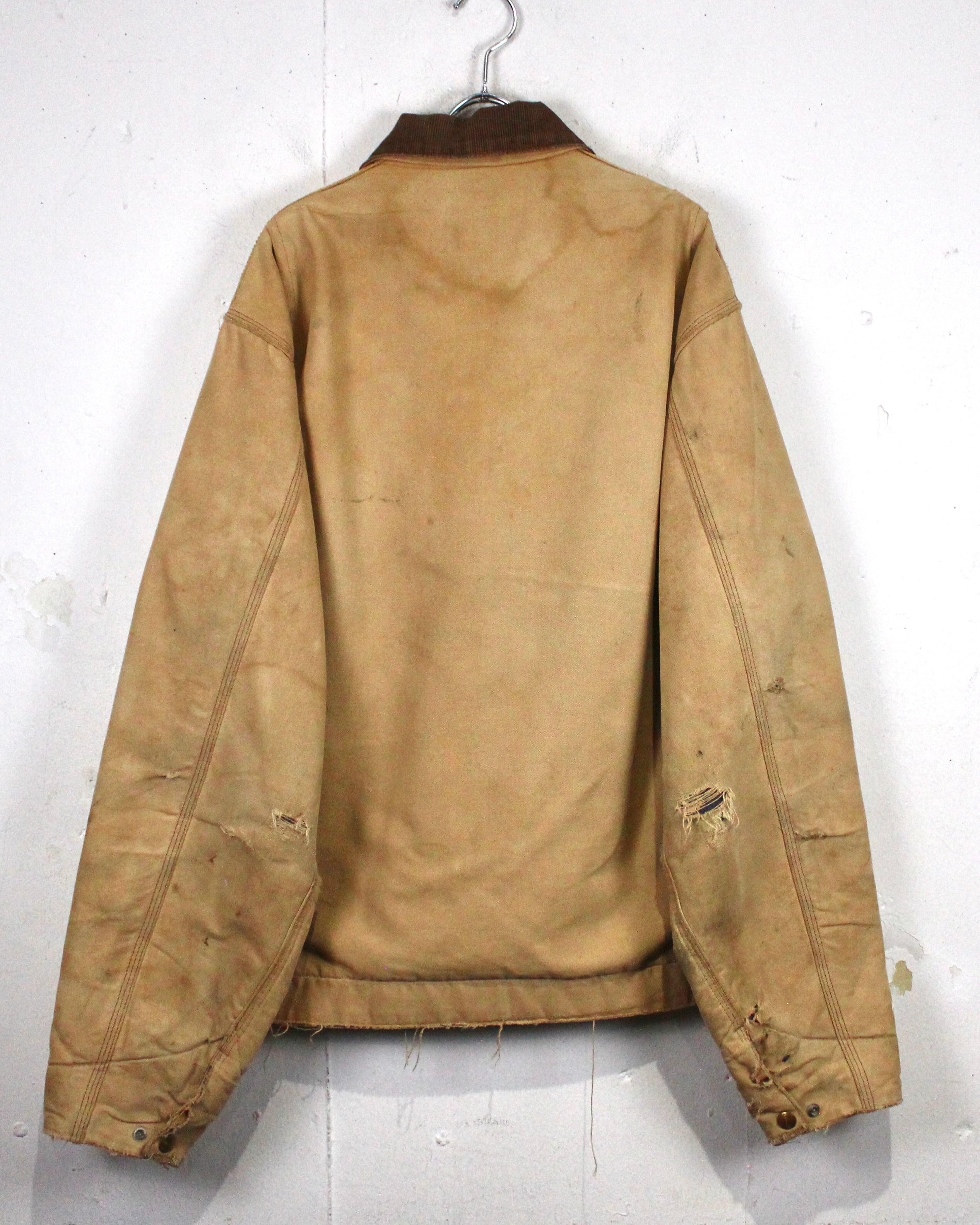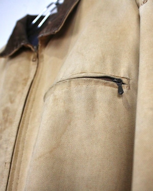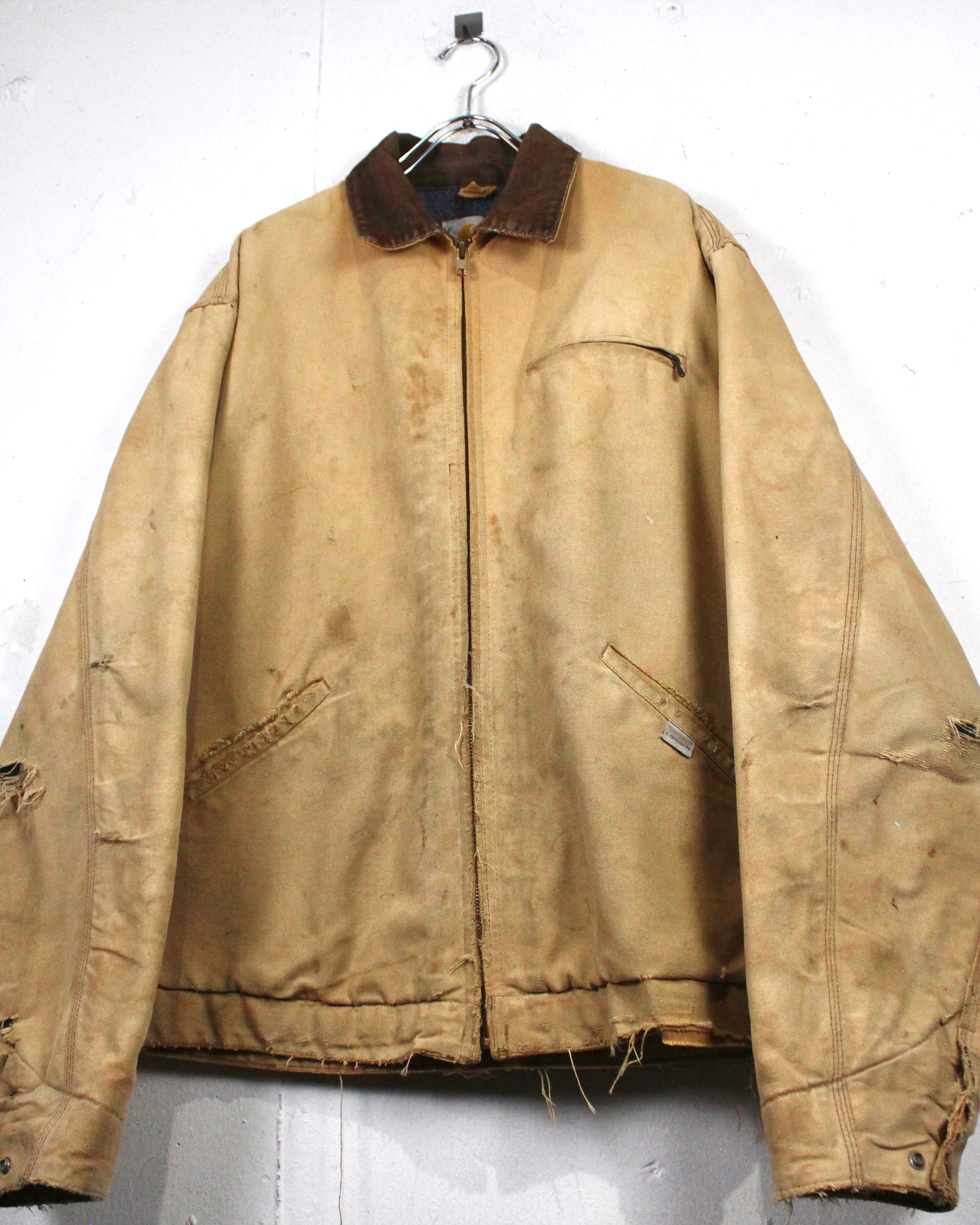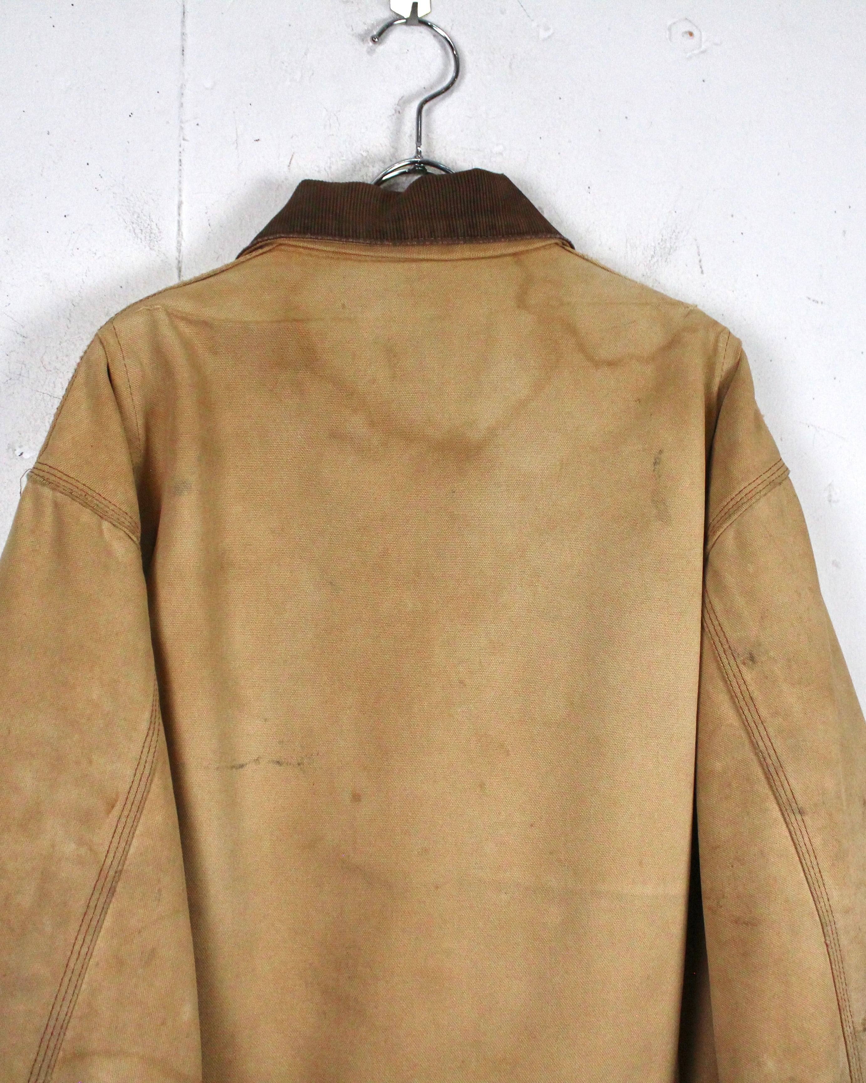 強靭なダック地をベースに、長年の着用によって刻まれたフェード、擦れ、ダメージが全体に広がり、ワークウェアならではの迫力ある佇まいに仕上がった1着。均一ではない色落ちやボロ感が、現行品では決して表現できない奥行きを生み出しています。