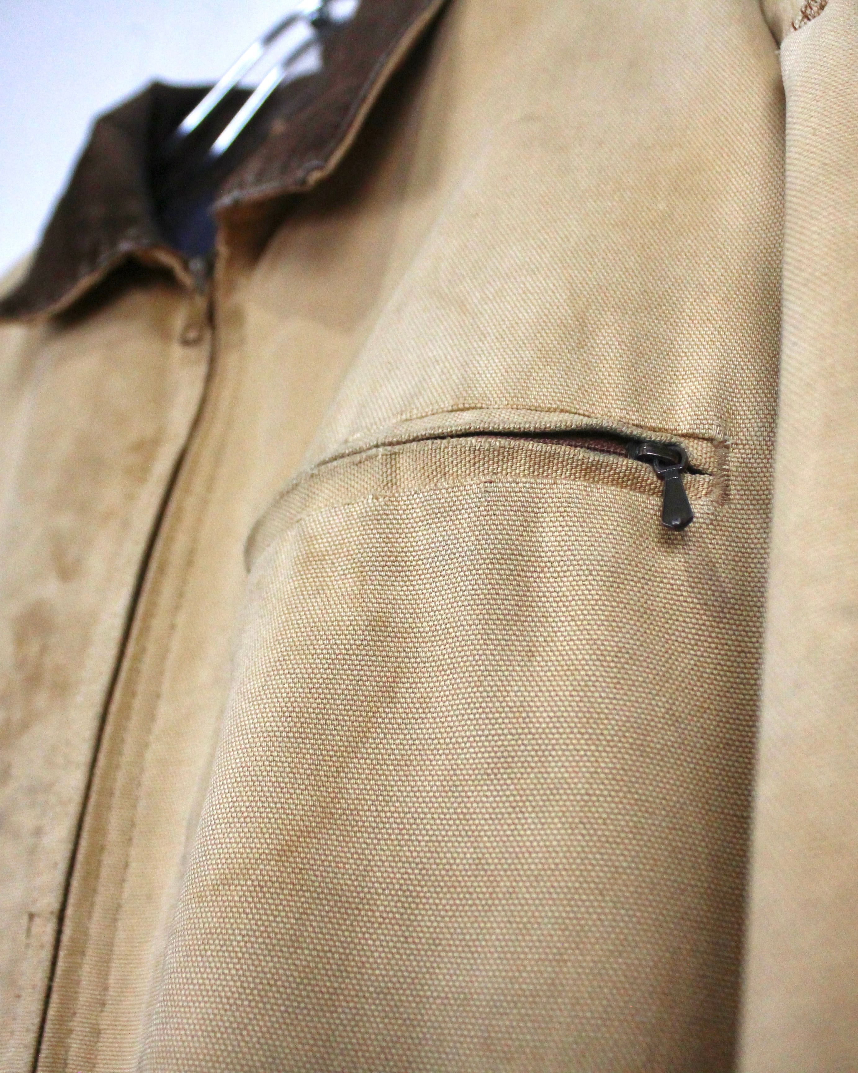 ディテールはデトロイトらしくミニマル。両サイドのハンドポケットに加え、左胸にはジップポケットを配置。無駄を削ぎ落としたデザインが、素材感やエイジングの魅力を際立たせていますね。
