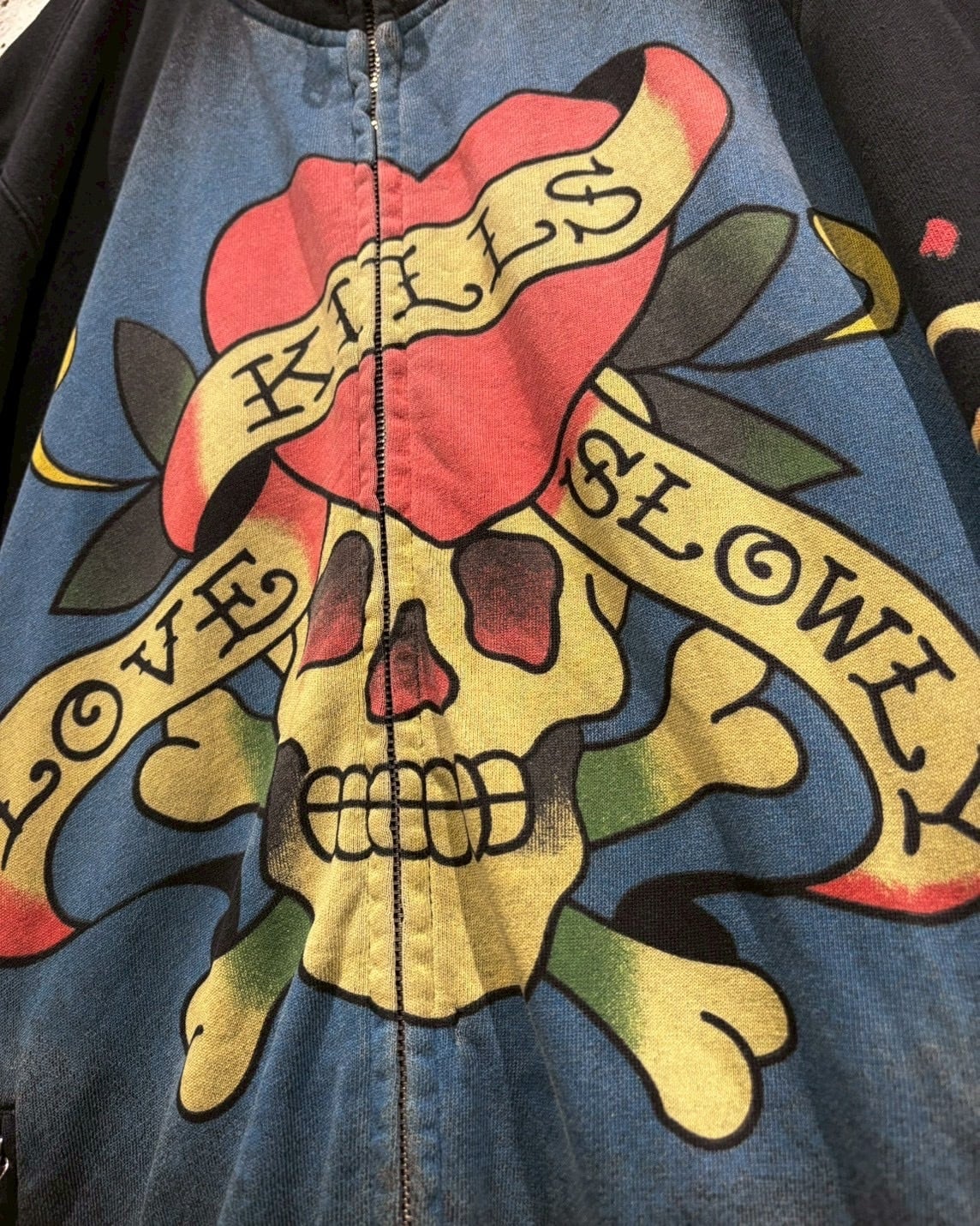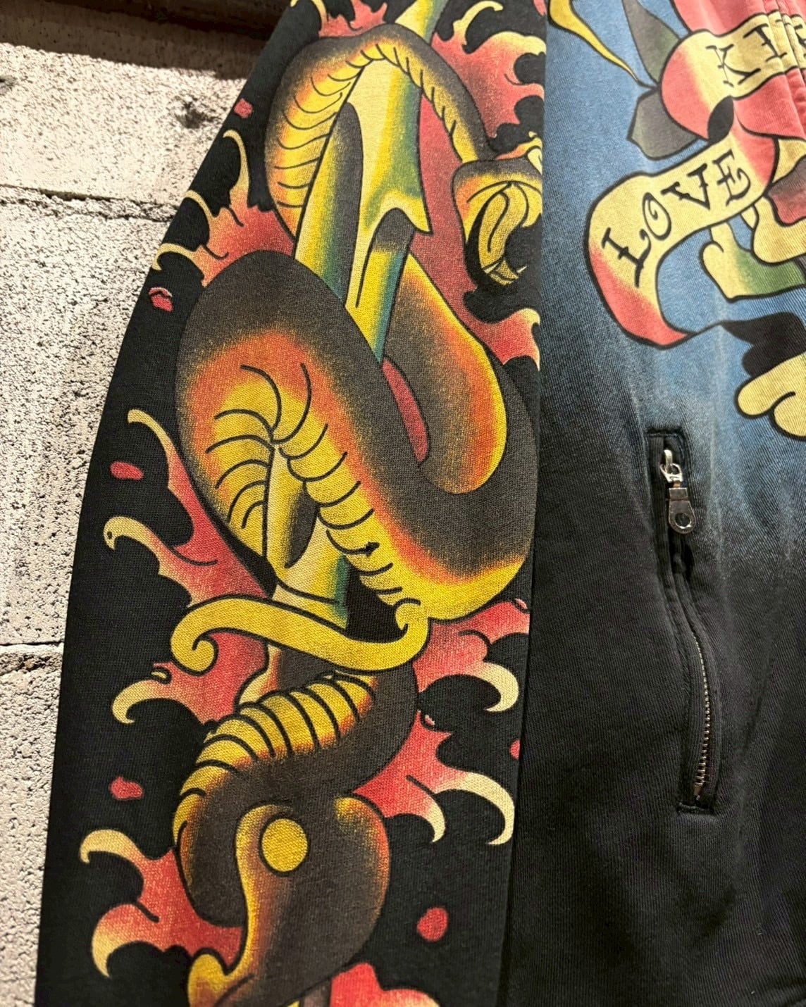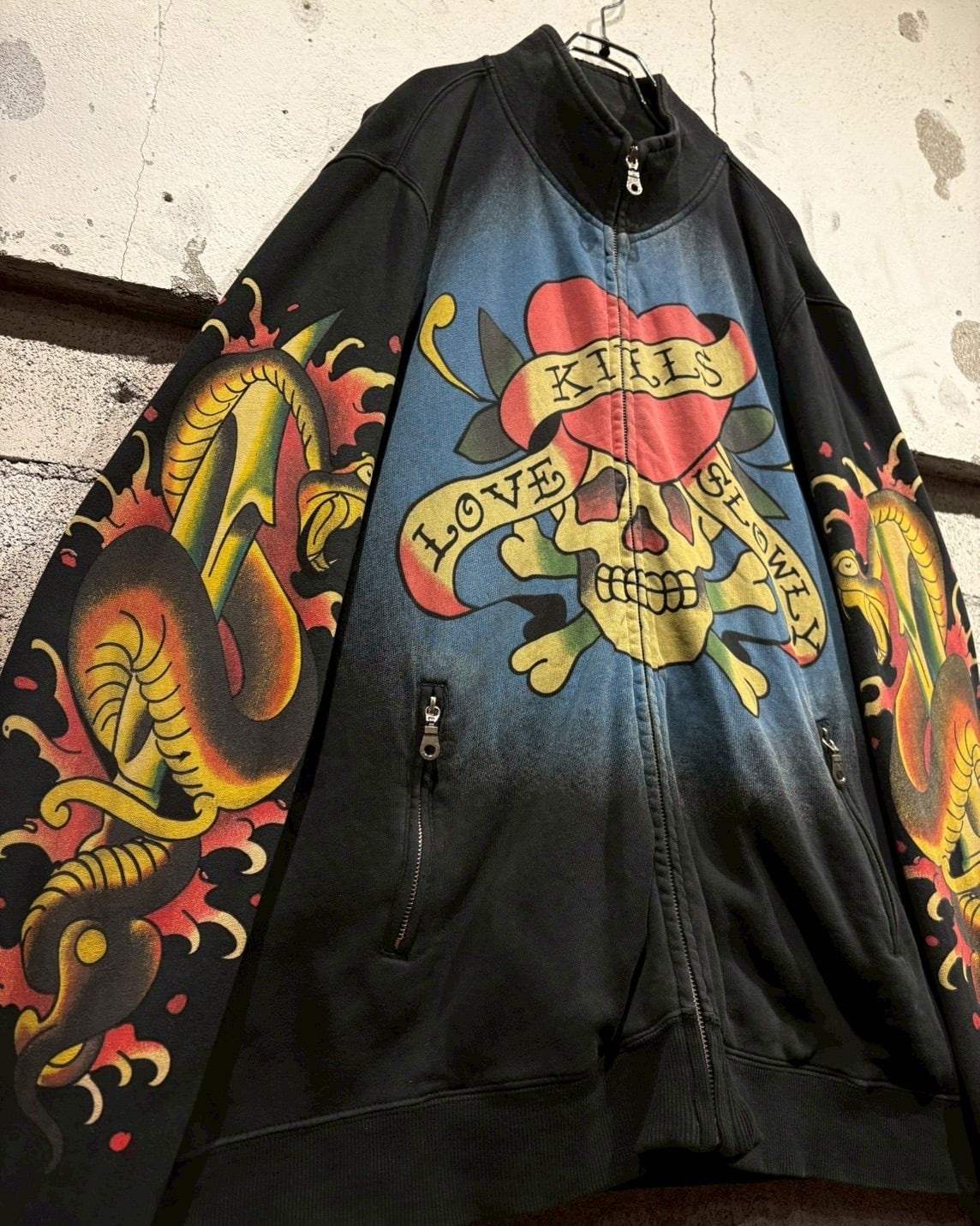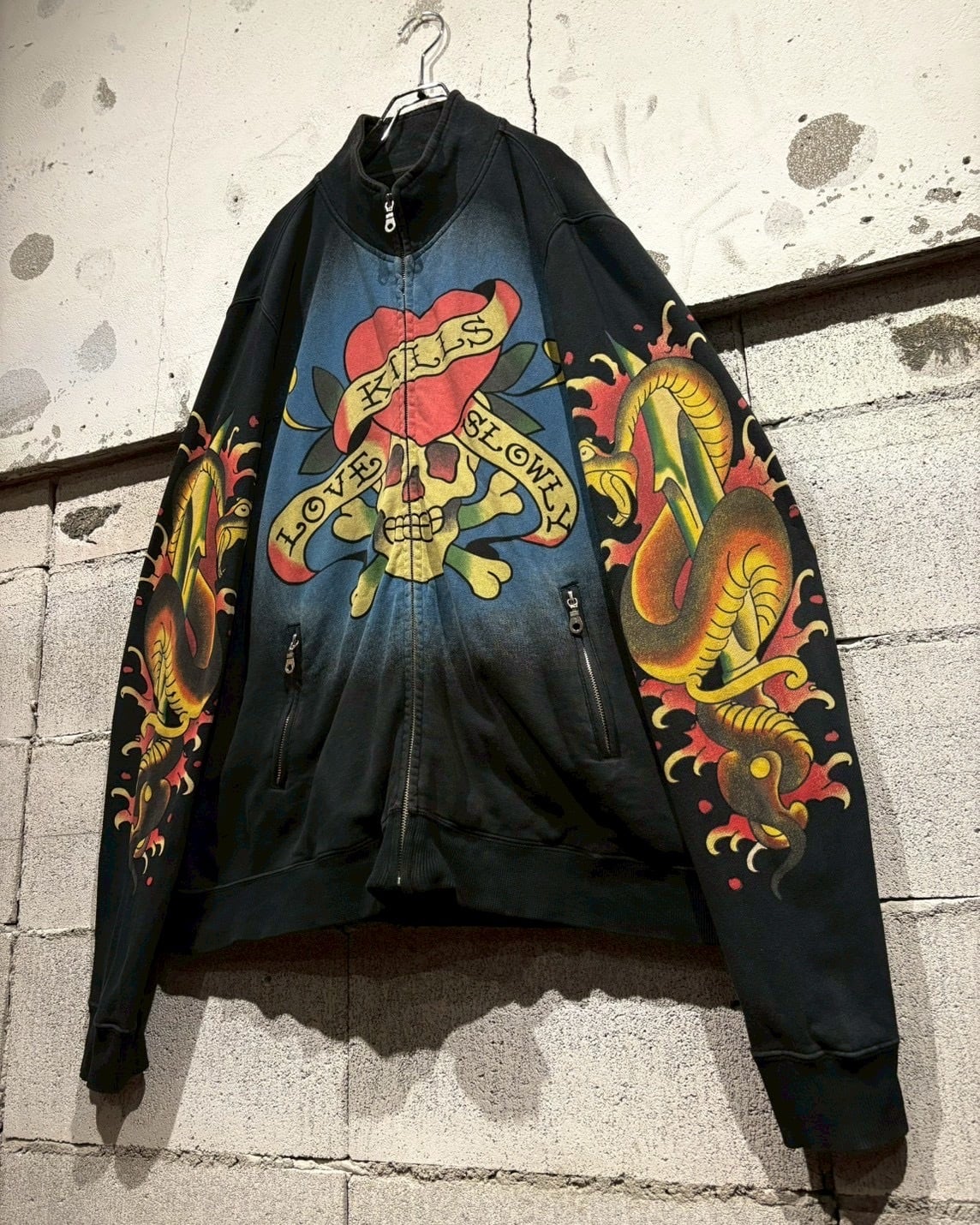 “Ed Hardy”らしいタトゥーカルチャーを色濃く反映した、ジップアップスウェットジャケットをご紹介いたします。