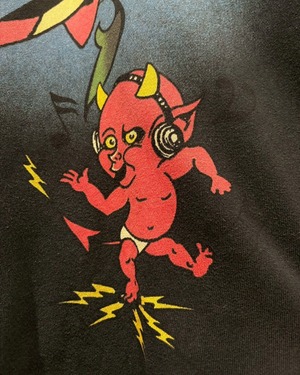 フロント全面にはハート×スカルにリボンを絡めたグラフィックを大胆に配置し、「LOVE KILLS SLOWLY」のメッセージが強烈なインパクトを放つ1着。