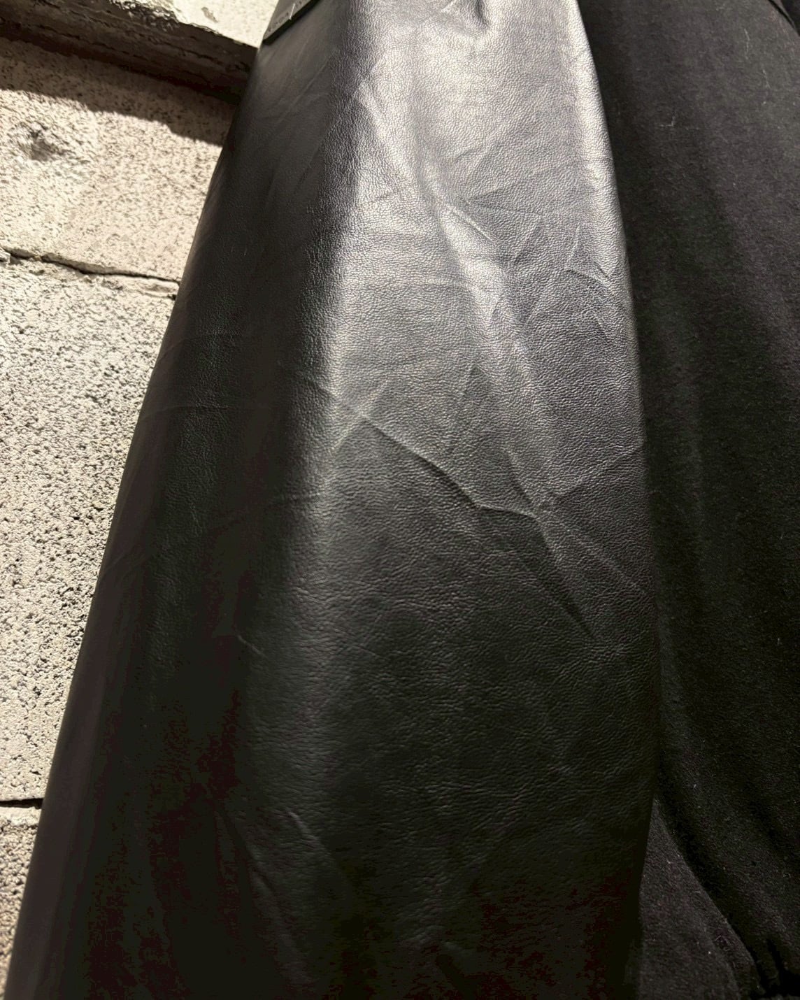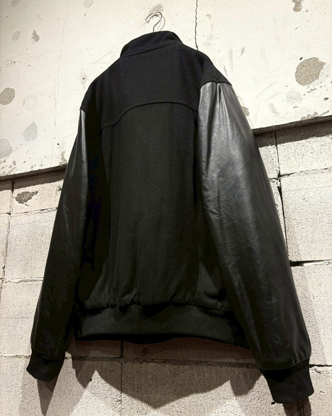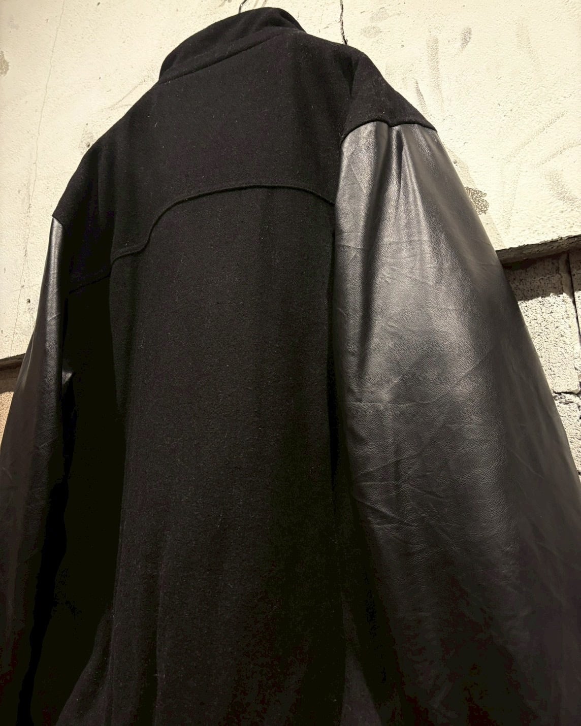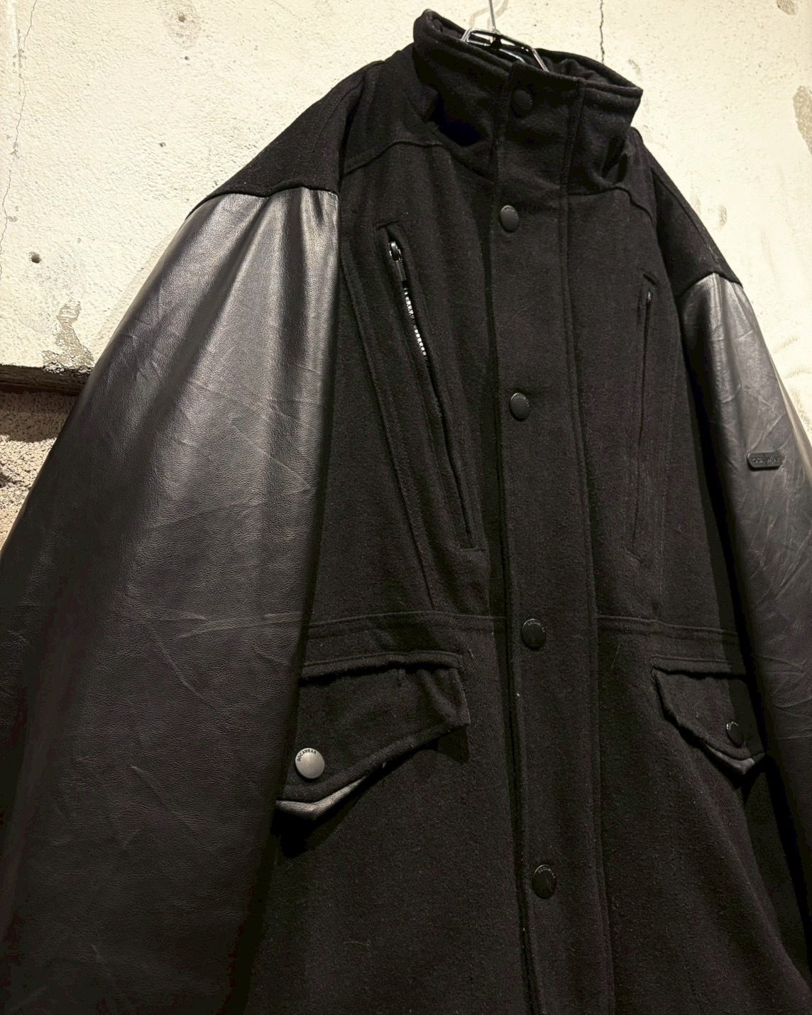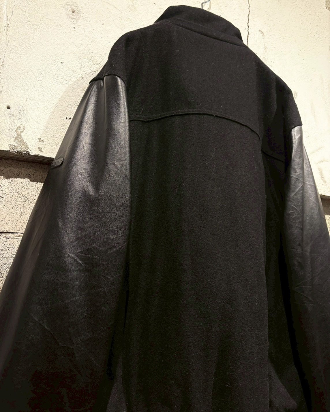 ボディにはウール混素材を採用し、アーム部分にはフェイクレザーを切り替えで配置し、異素材のコントラストが視覚的なアクセントに。ストリートでありながら、落ち着いた雰囲気に仕上がっています。