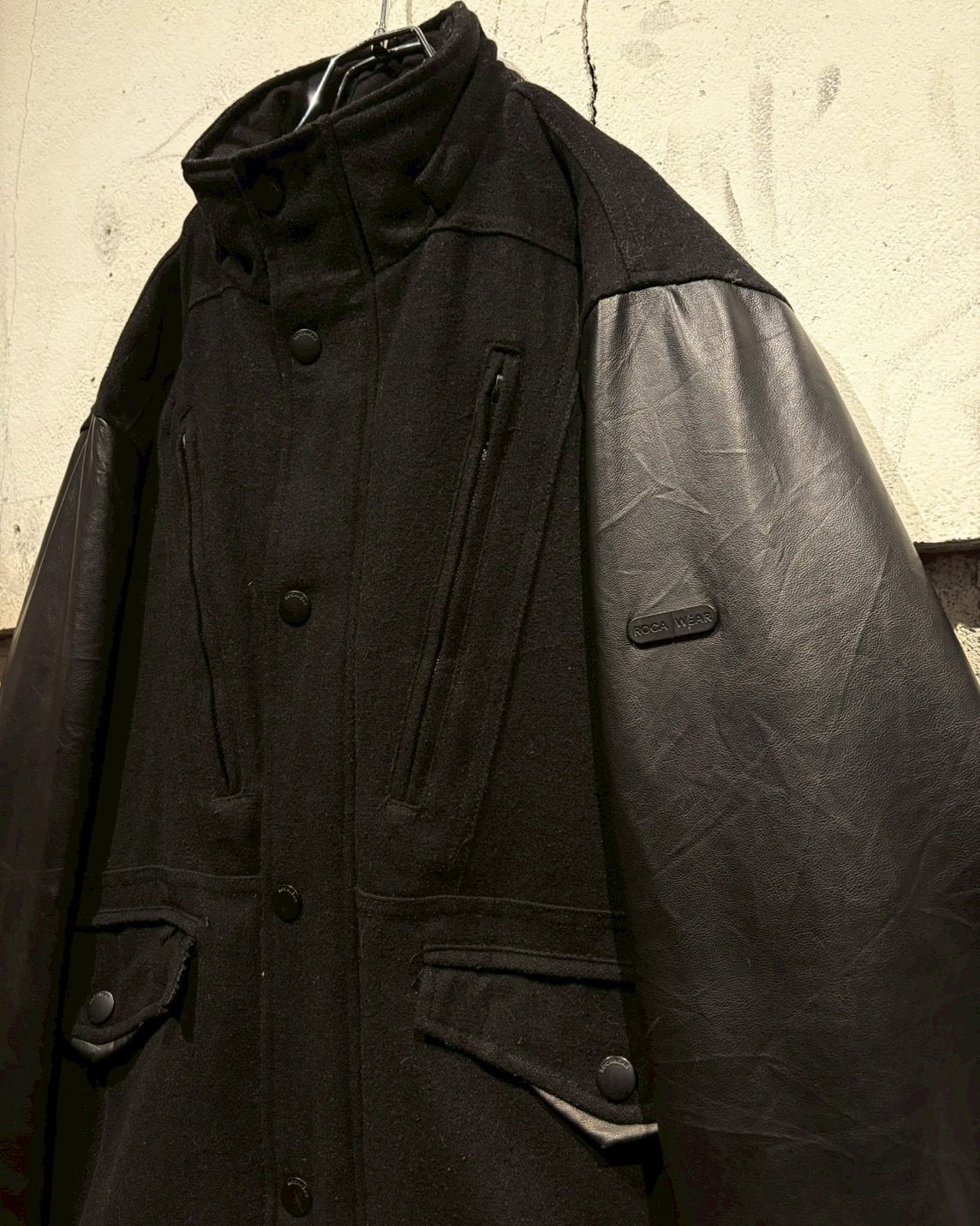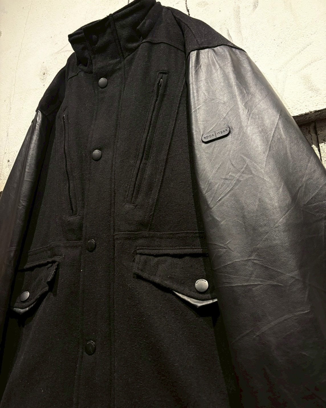 HIPHOPカルチャーを背景に持つ“ROCAWEAR”より、異素材の切り替えが際立つジャケット。
