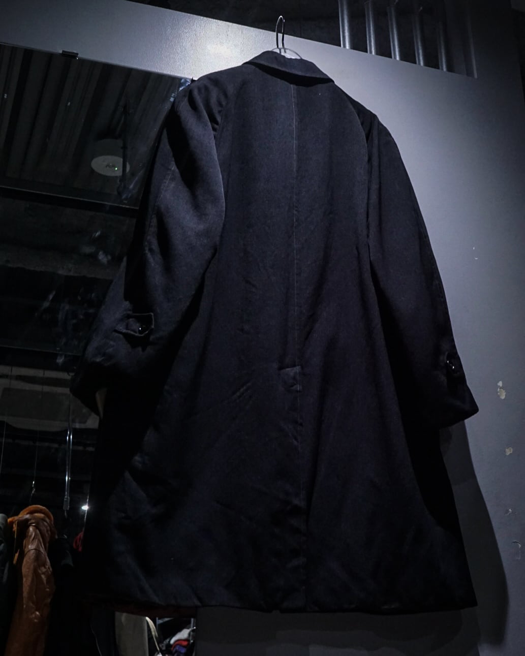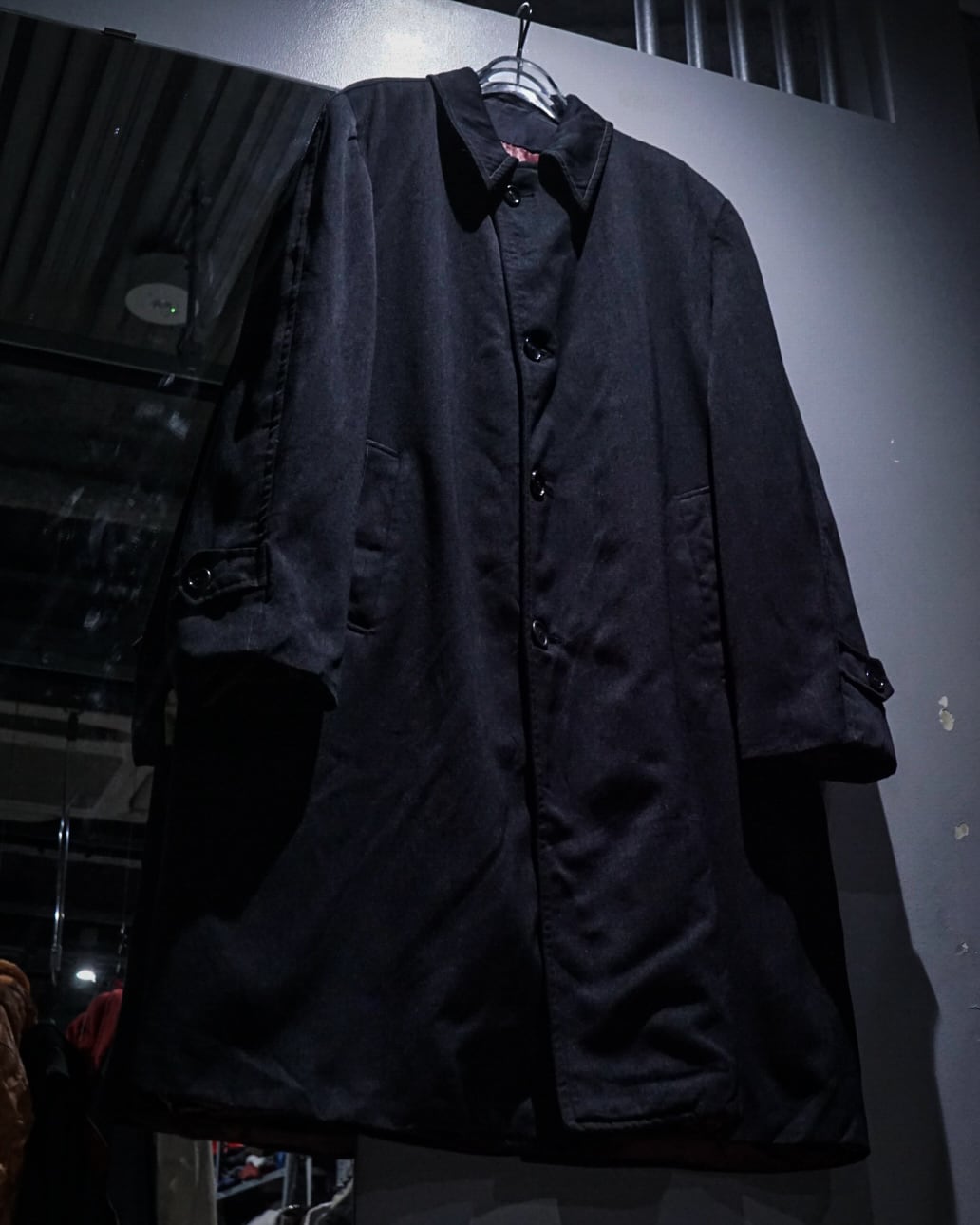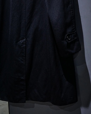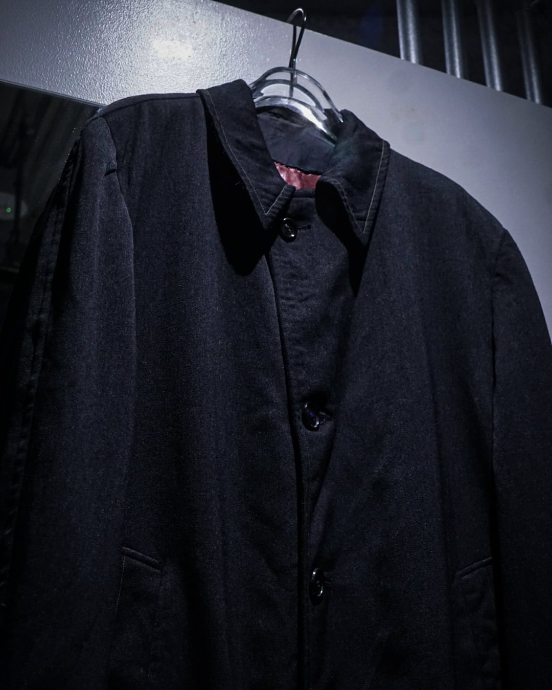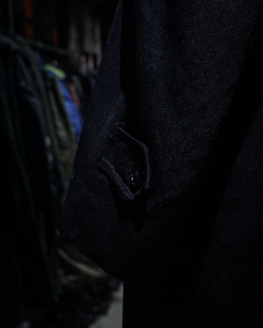 無駄を削ぎ落としたミニマルなルックスの中に、確かな仕立てと素材の良さ、そしてヴィンテージならではの雰囲気が滲む、60'sのブラックウールギャバジンステンカラーコート。