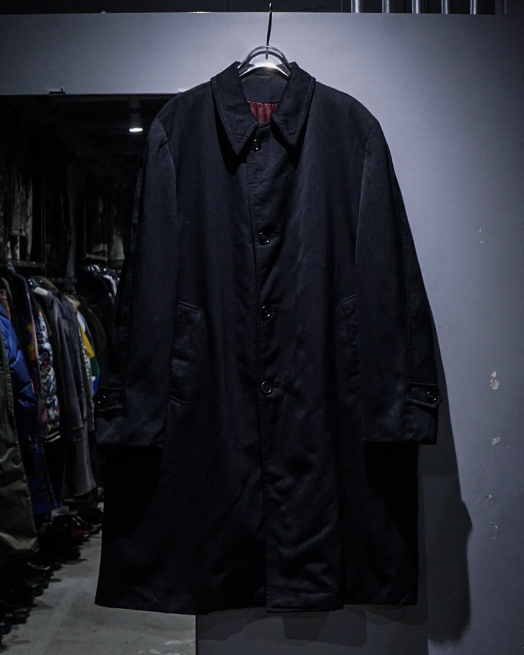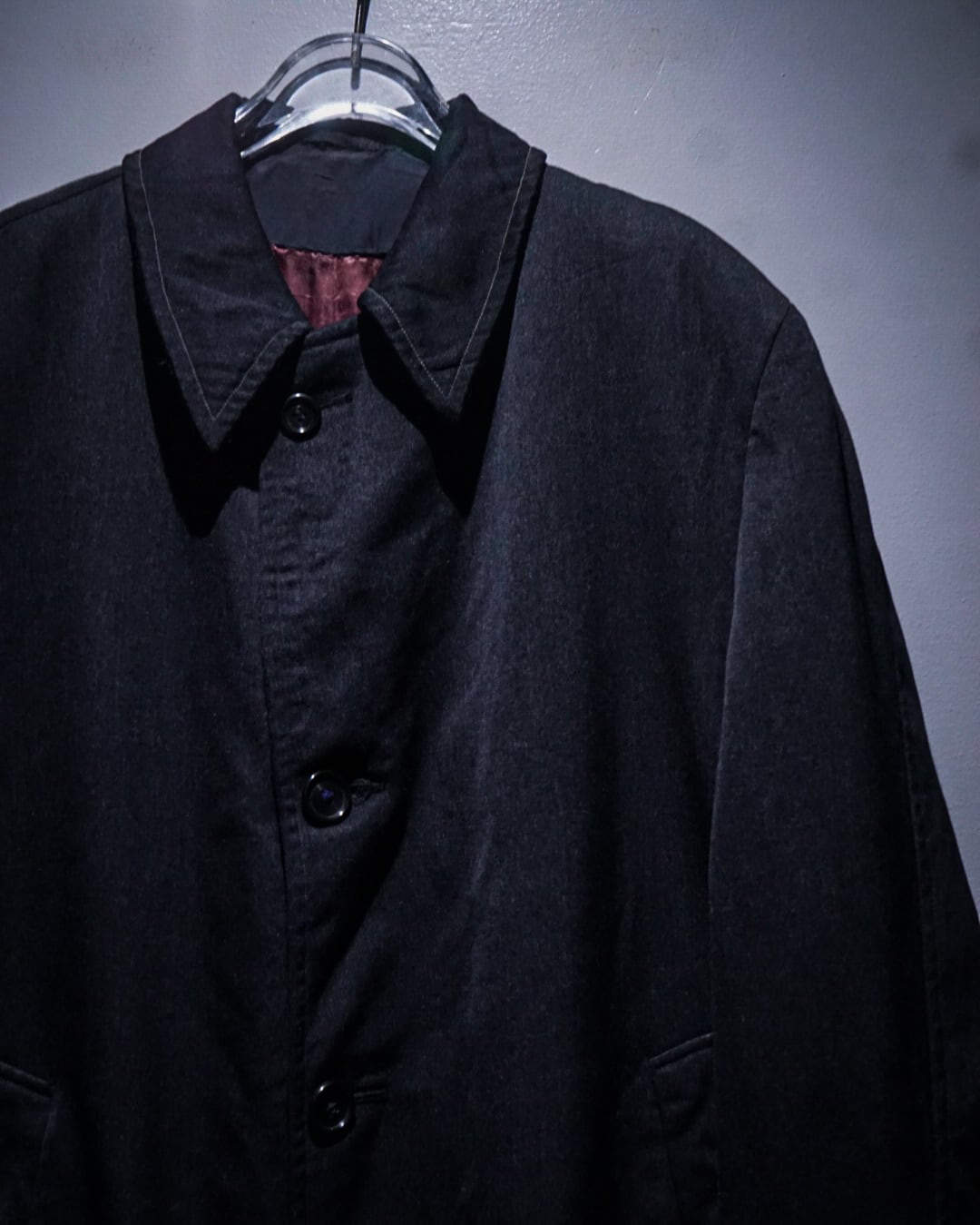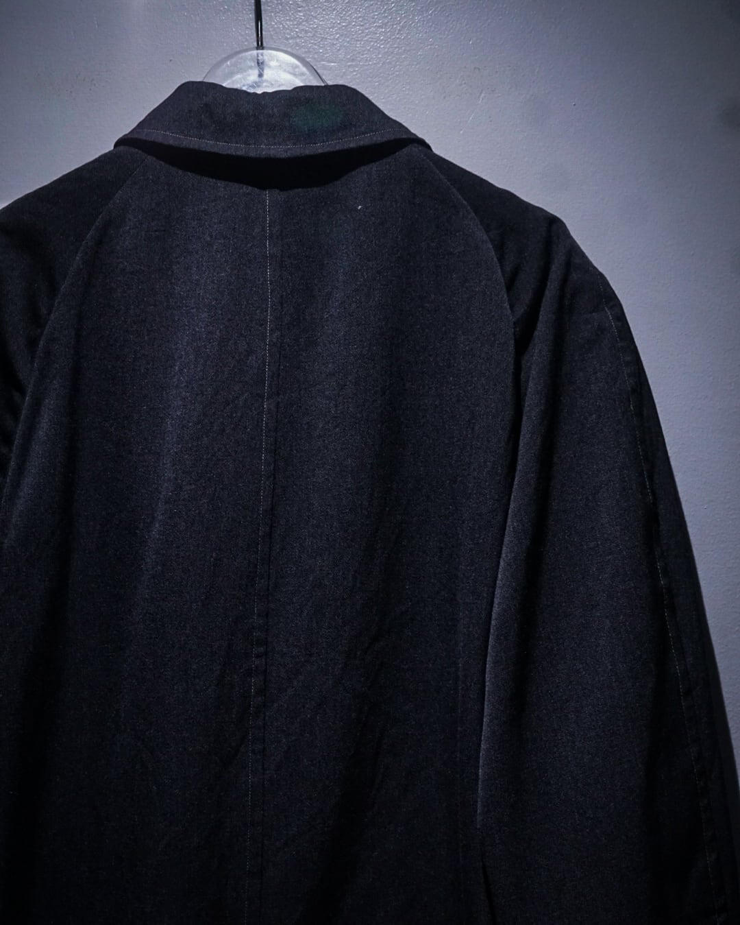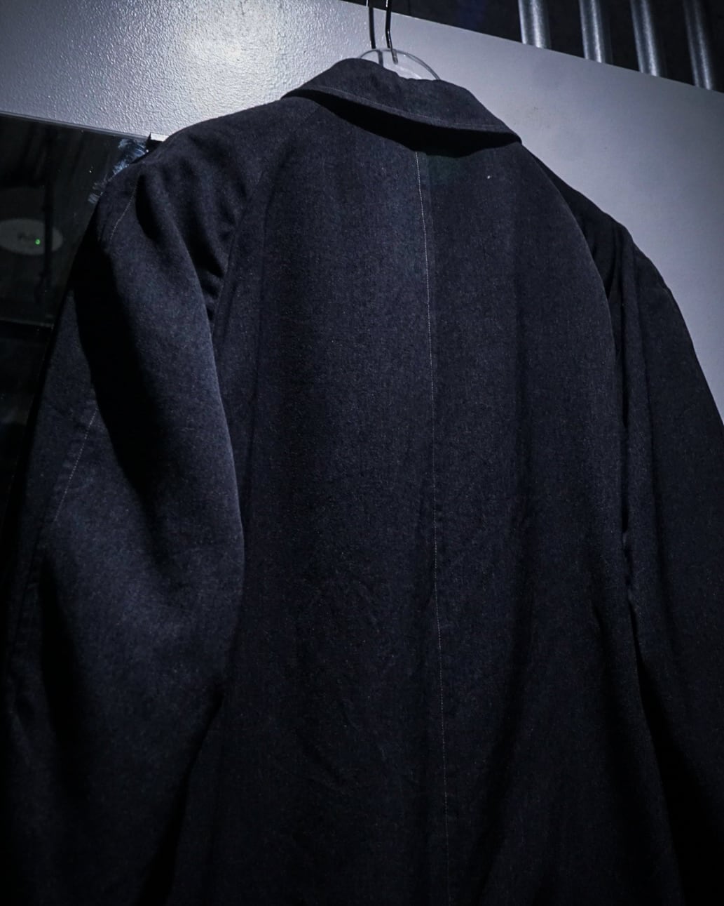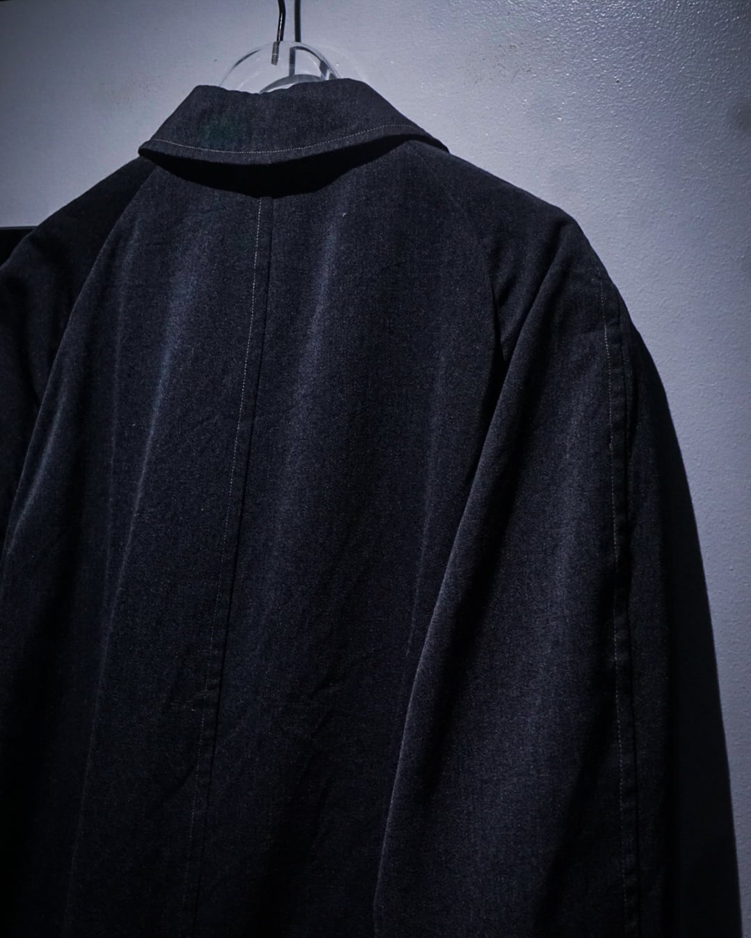 無駄を削ぎ落としたミニマルなルックスの中に、確かな仕立てと素材の良さ、そしてヴィンテージならではの雰囲気が滲む、60'sのブラックウールギャバジンステンカラーコート。