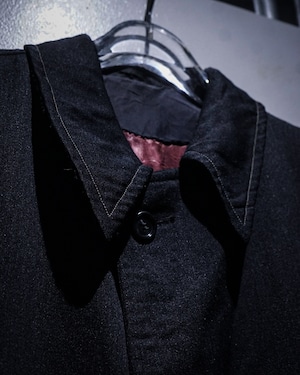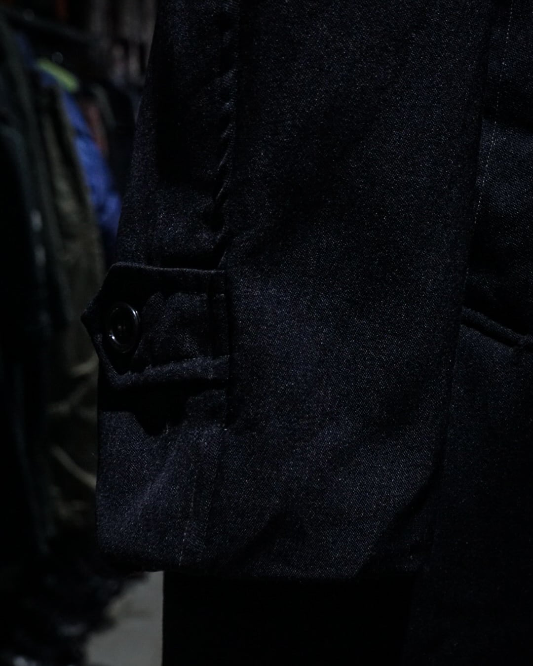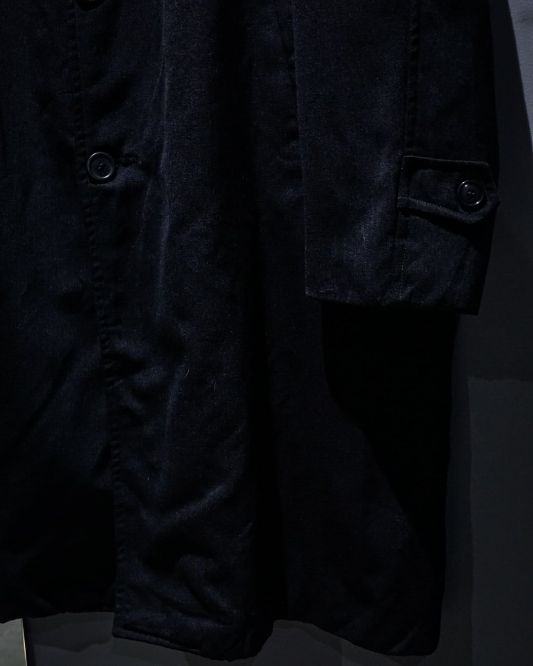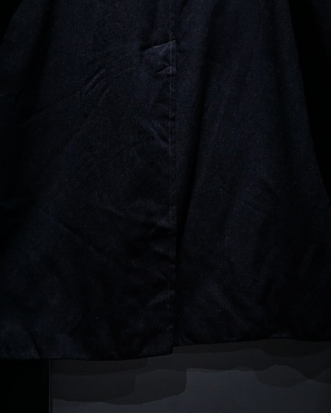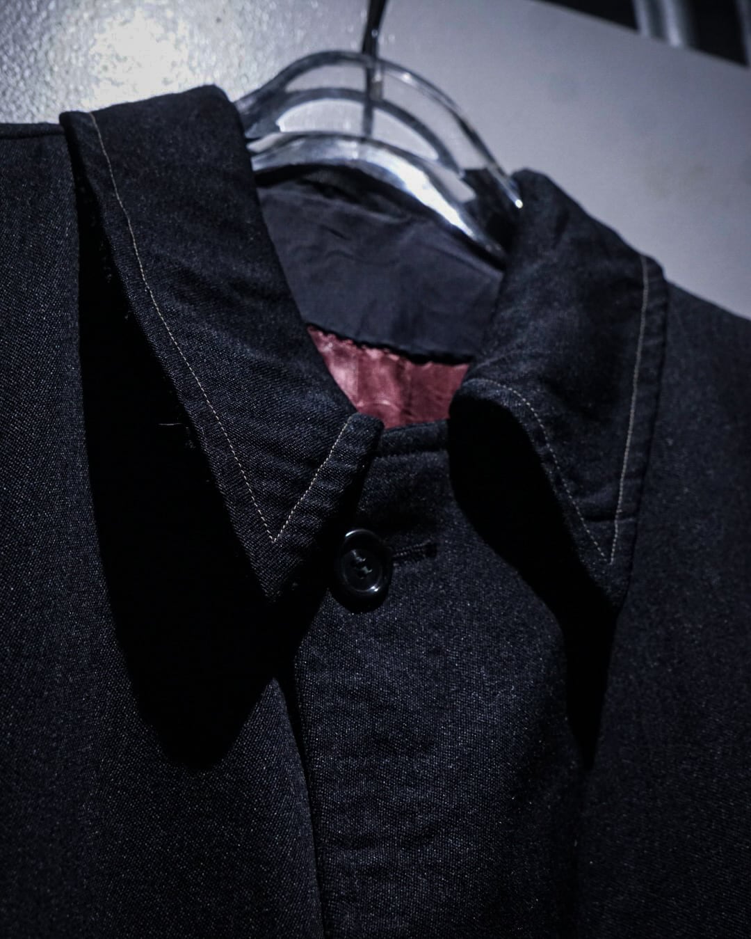 無駄を削ぎ落としたミニマルなルックスの中に、確かな仕立てと素材の良さ、そしてヴィンテージならではの雰囲気が滲む、60'sのブラックウールギャバジンステンカラーコート。