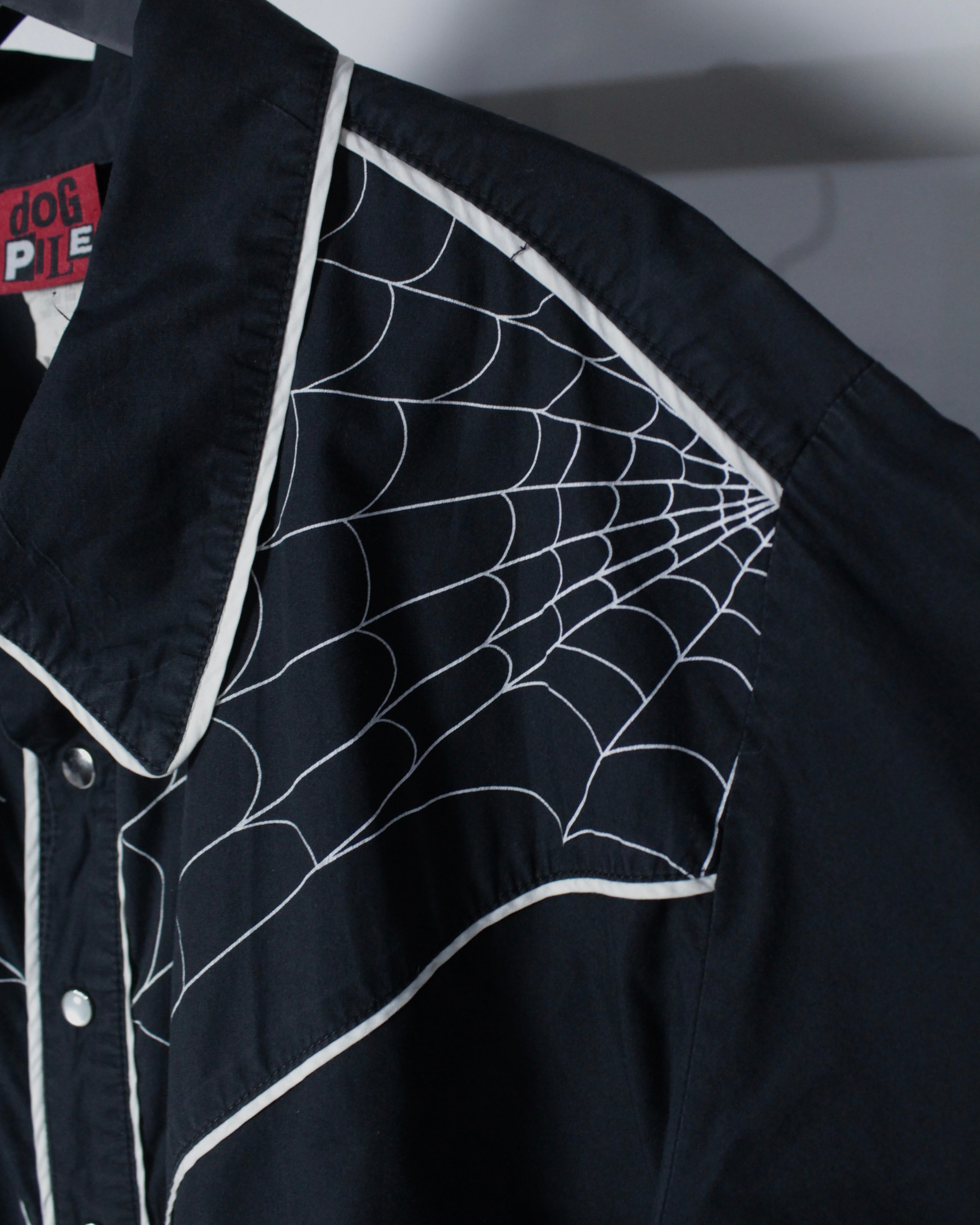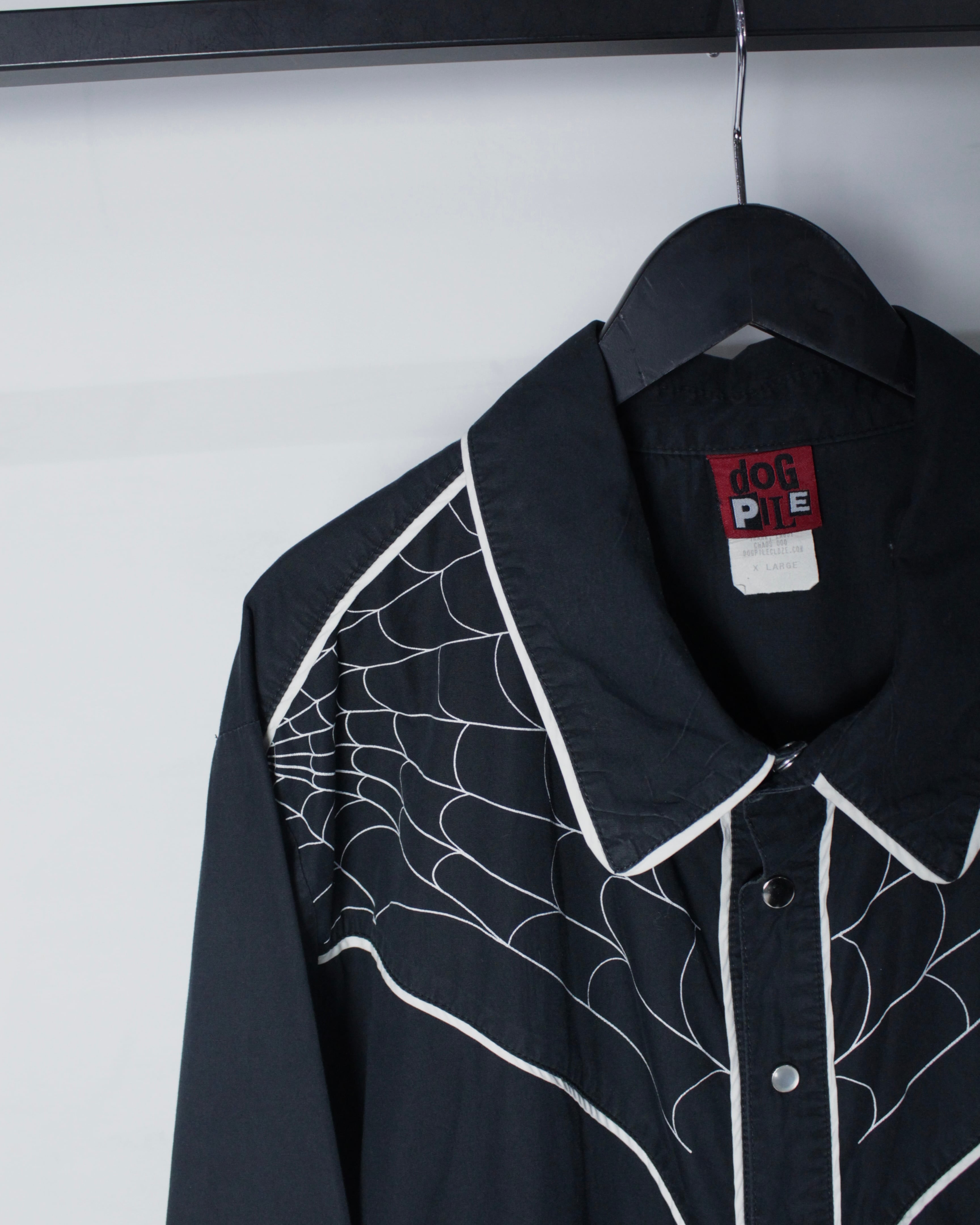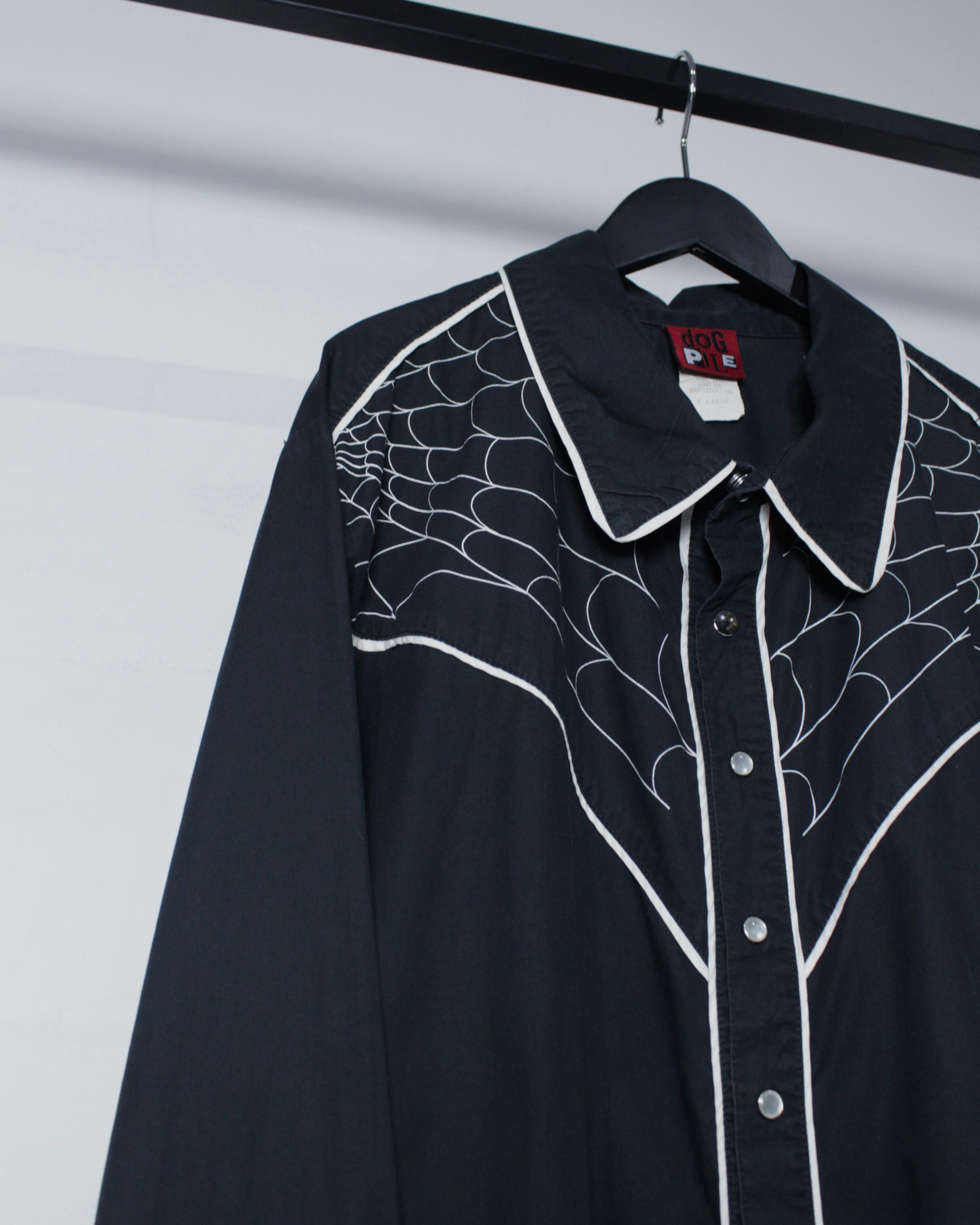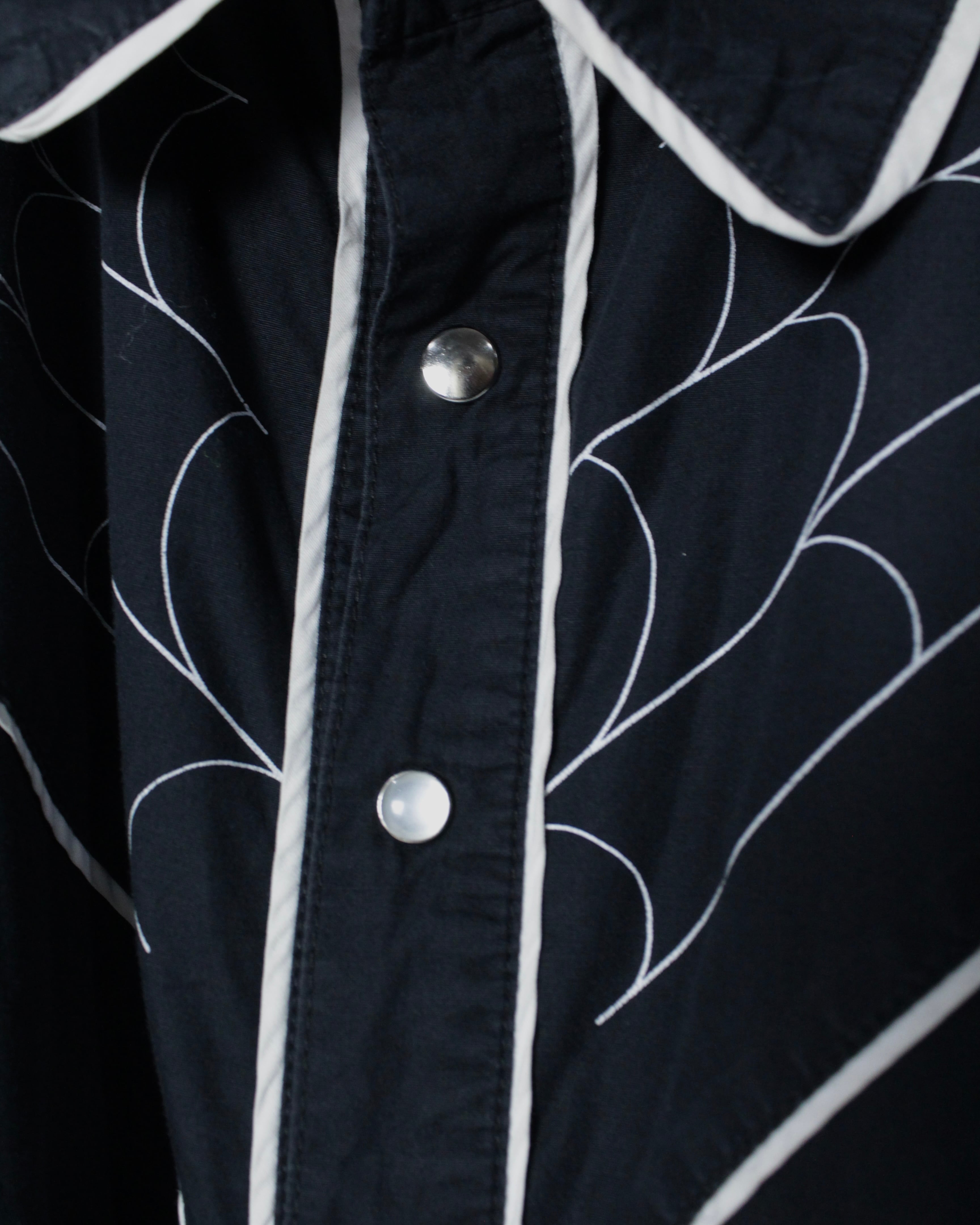 ブラックボディをベースに、ウエスタンシャツならではのヨークラインを活かしながら、蜘蛛の巣モチーフの刺繍を大胆に落とし込んだ1着。