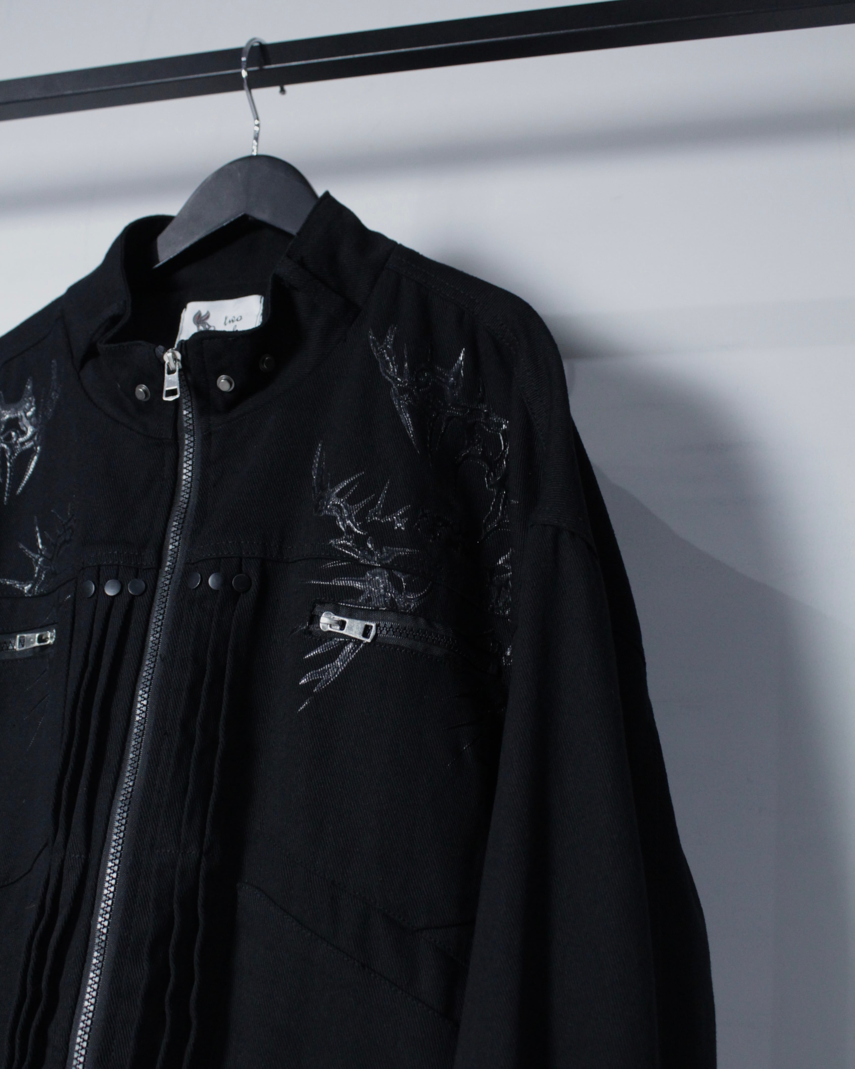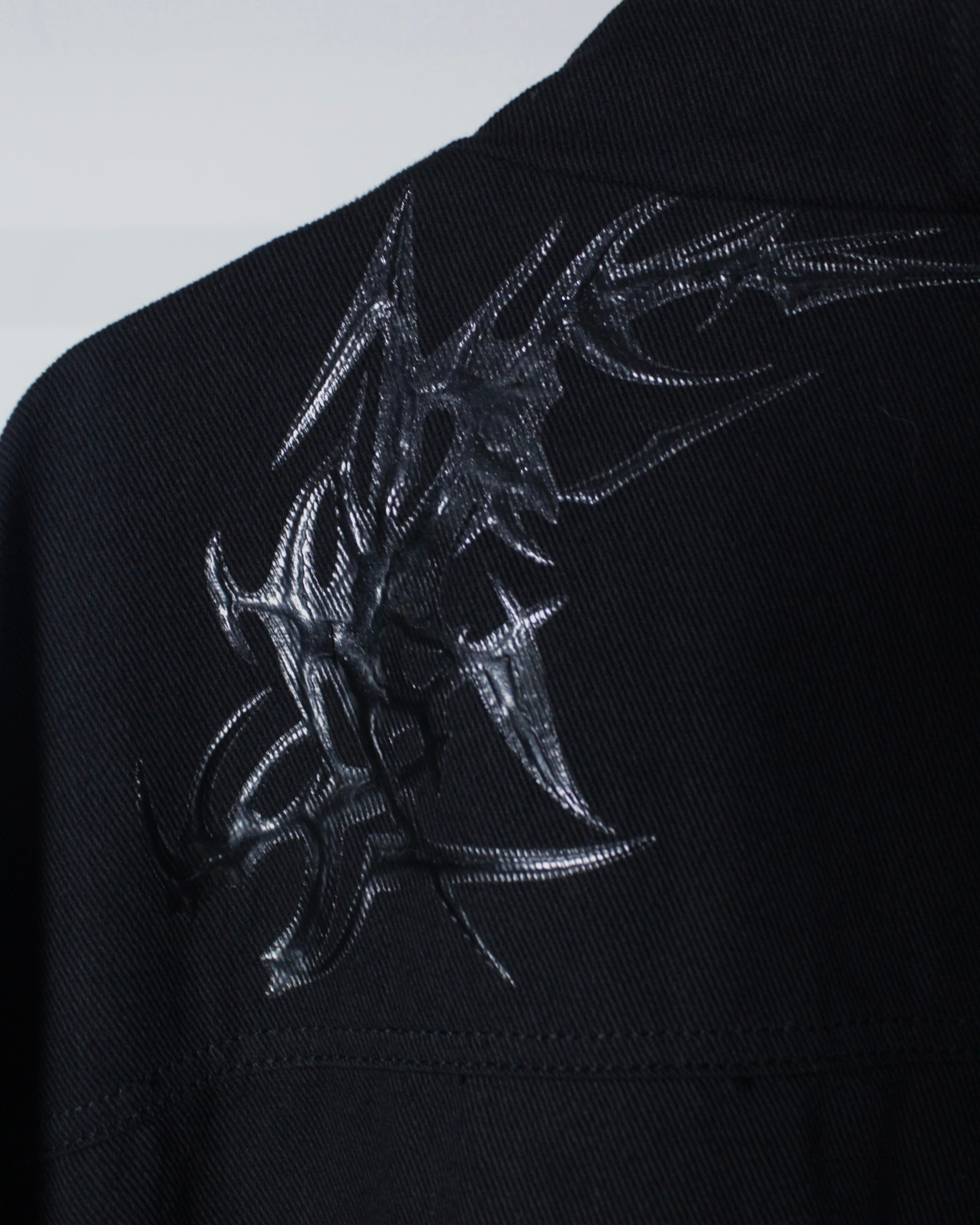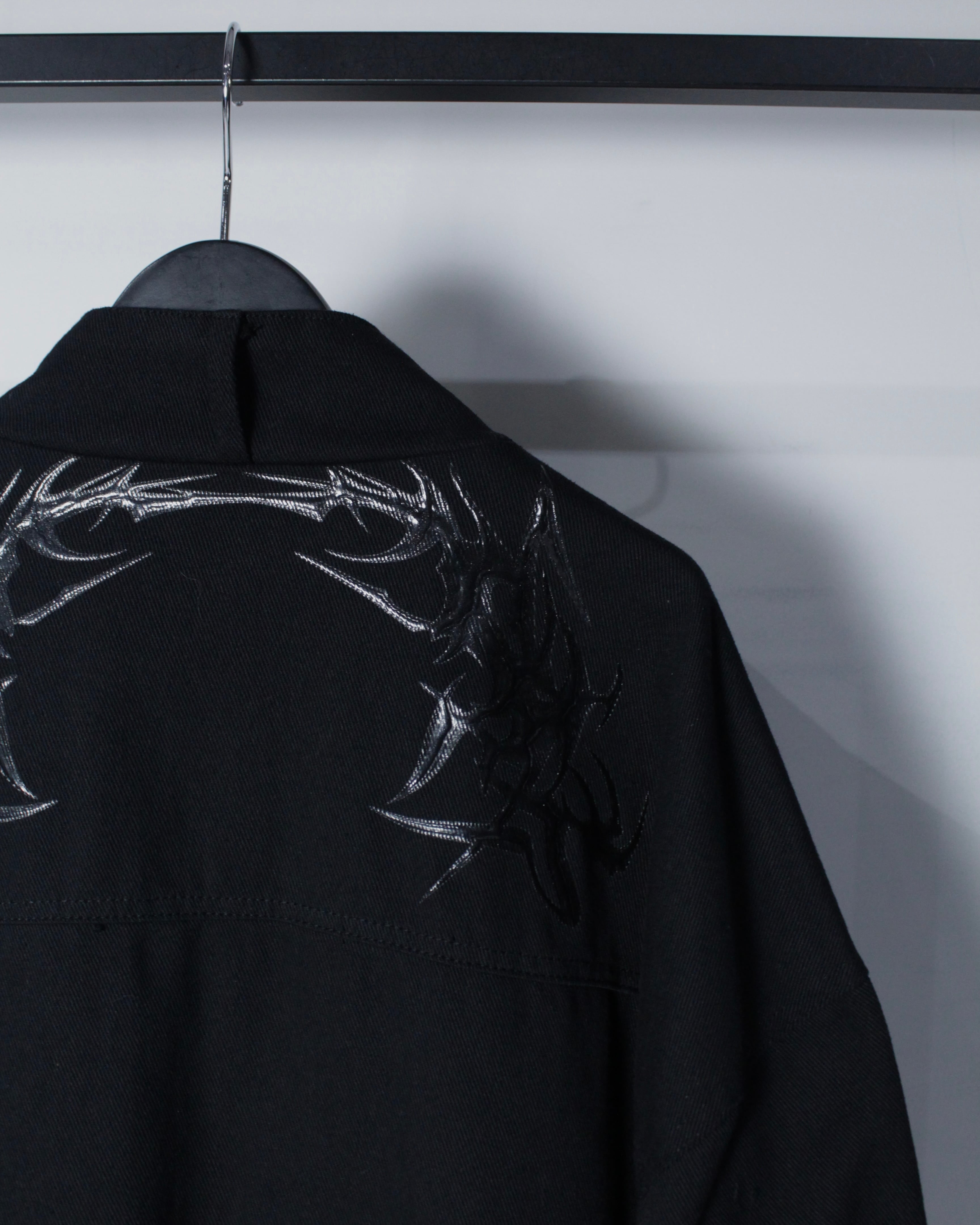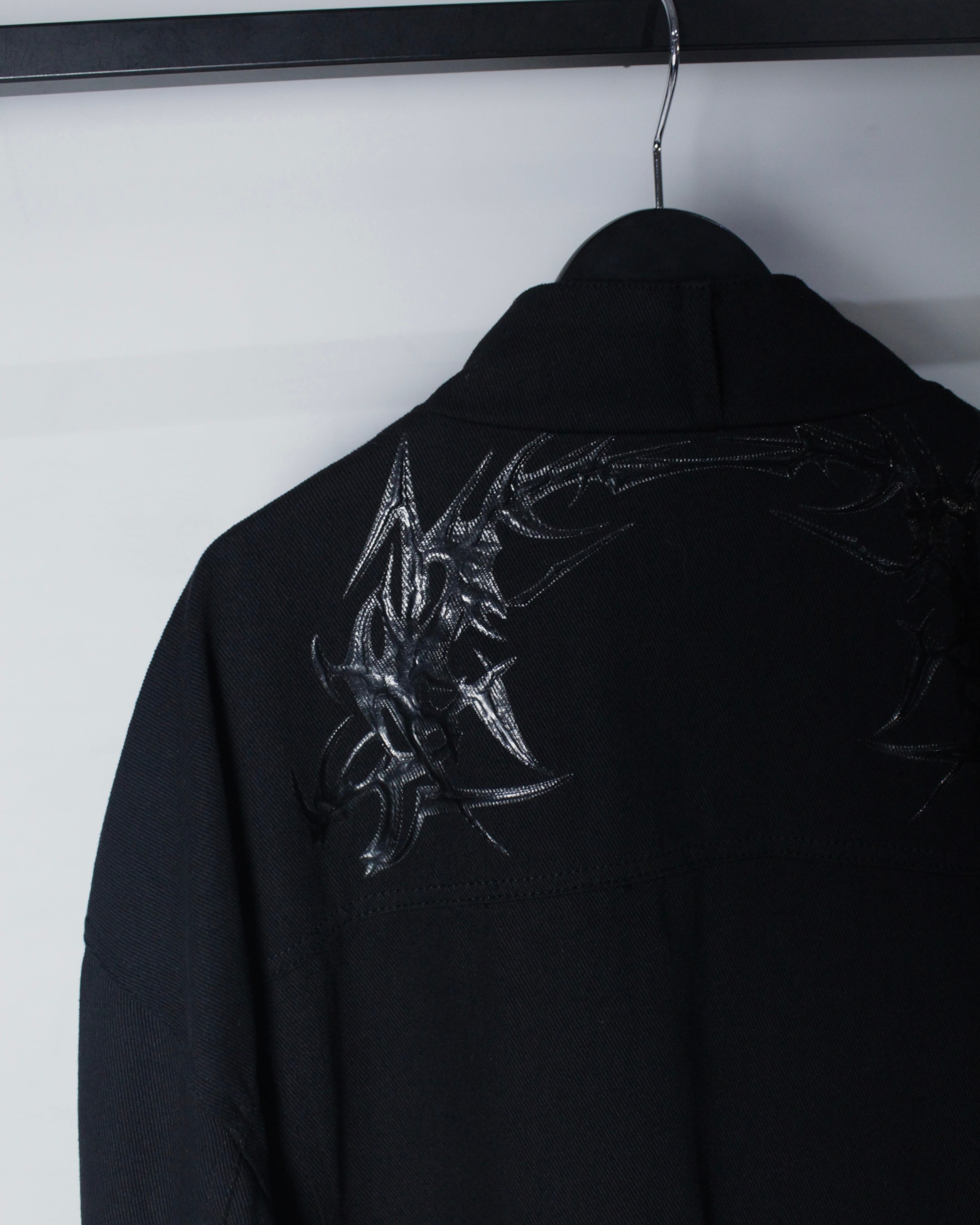 トライバルプリントの存在感、ディテール、オールブラックでまとめた完成度の高さ。服好きの心を確実に掴むスペシャルなジャケットです。