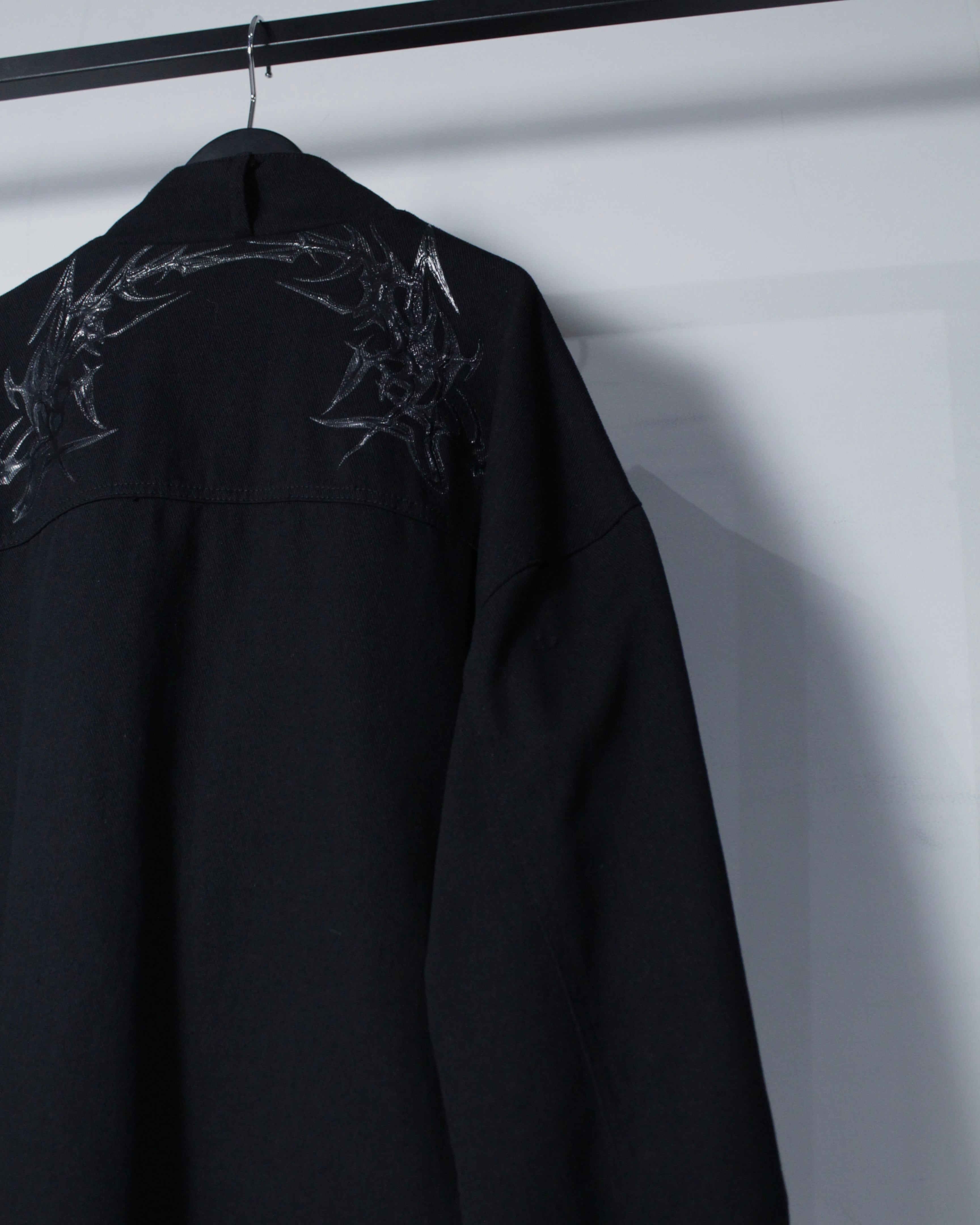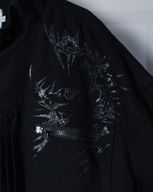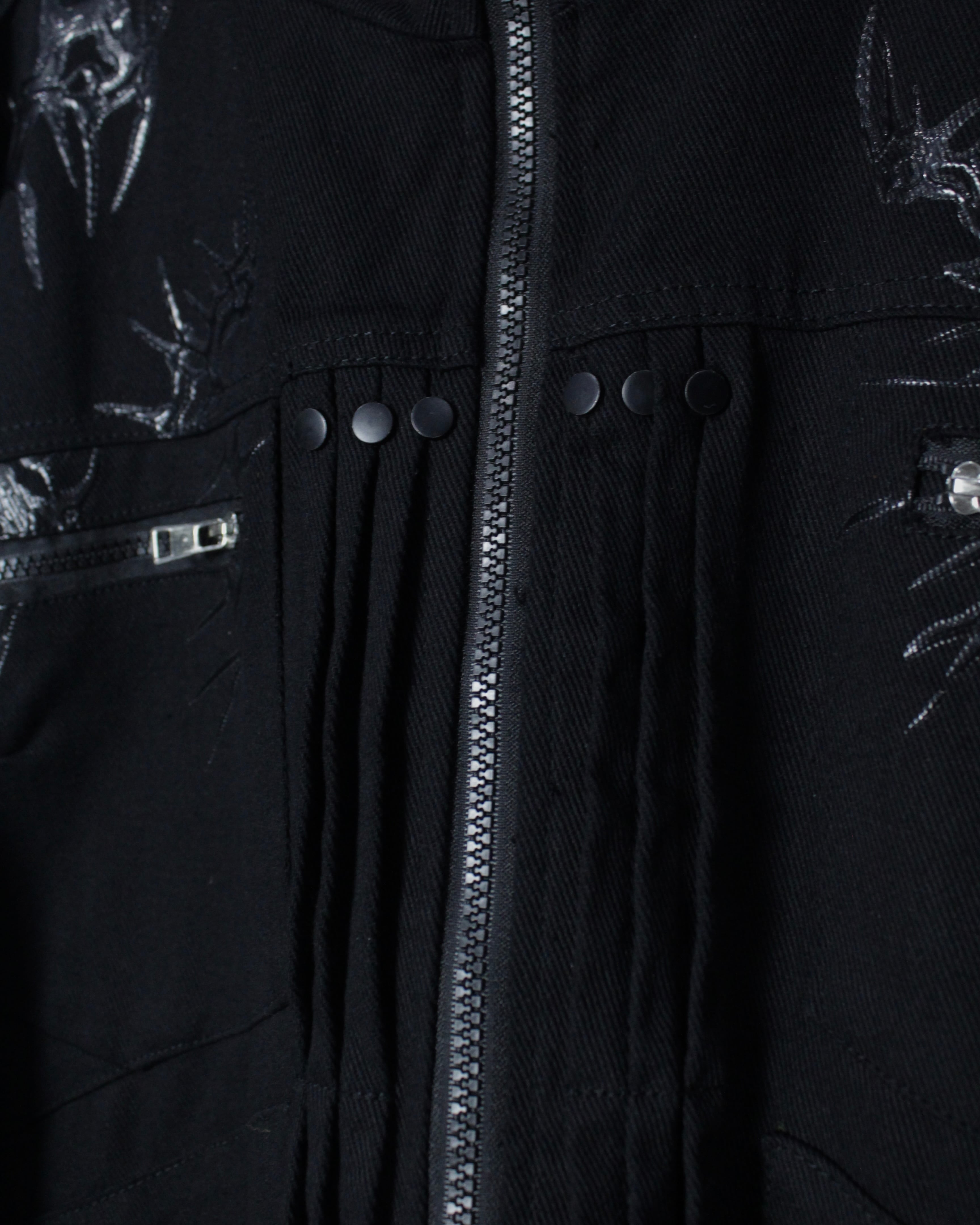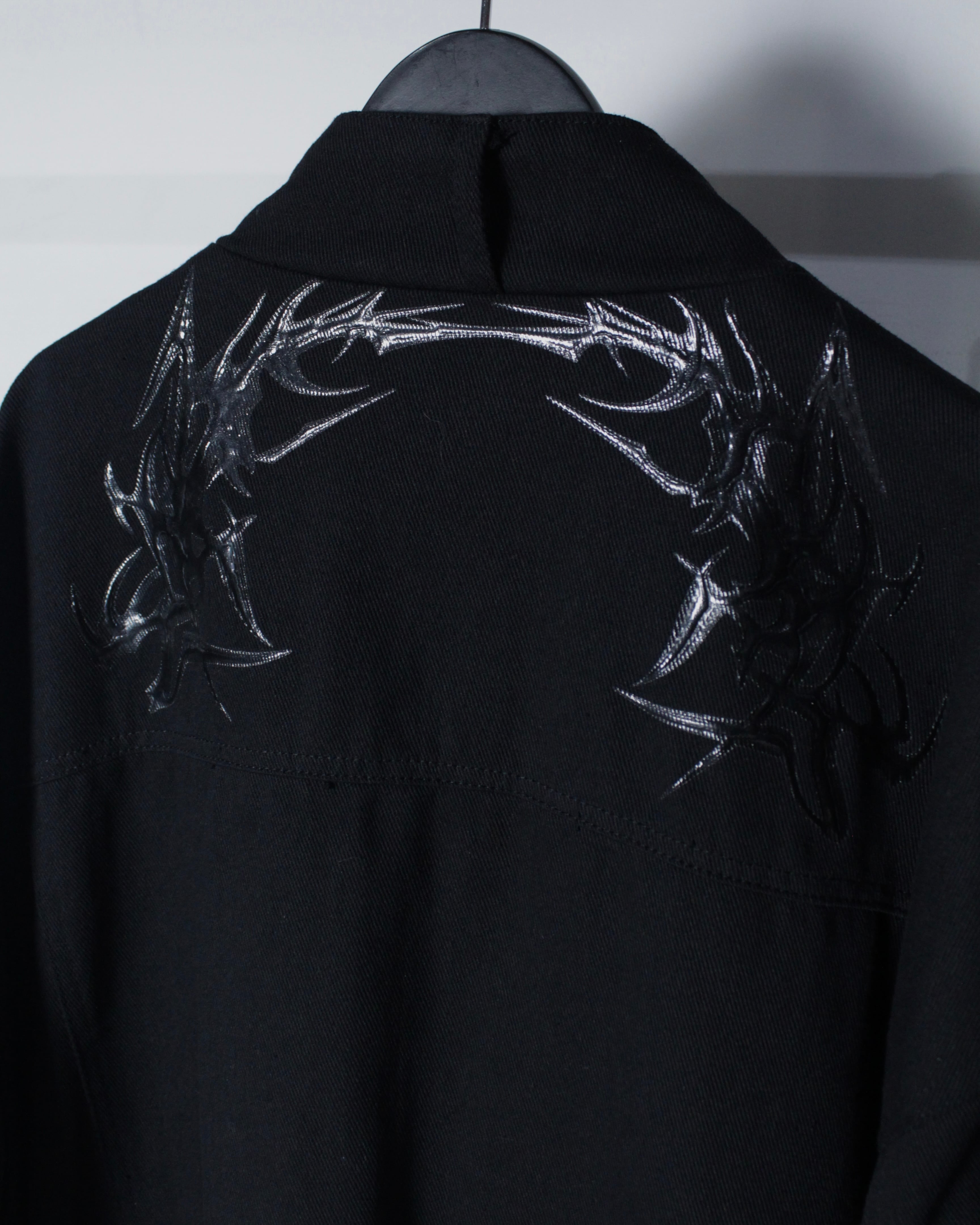 トライバルプリントの存在感、ディテール、オールブラックでまとめた完成度の高さ。服好きの心を確実に掴むスペシャルなジャケットです。
