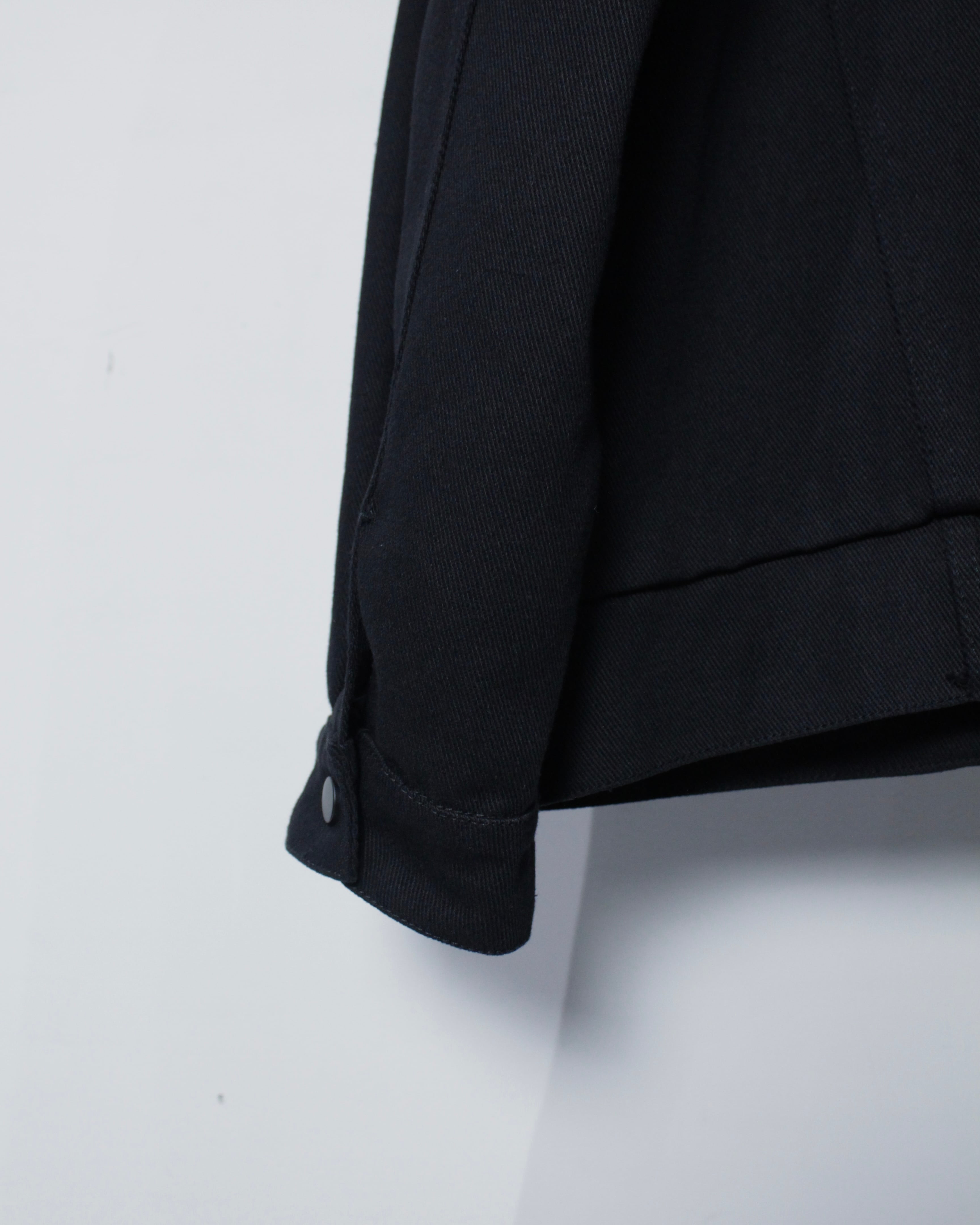 首元はスタンドカラー仕様で、シャープかつ都会的なムードに。胸元のジップポケット、ボディ両サイドのスラッシュポケットなど、実用性とデザイン性を兼ね備えたディテールも抜かりありません。