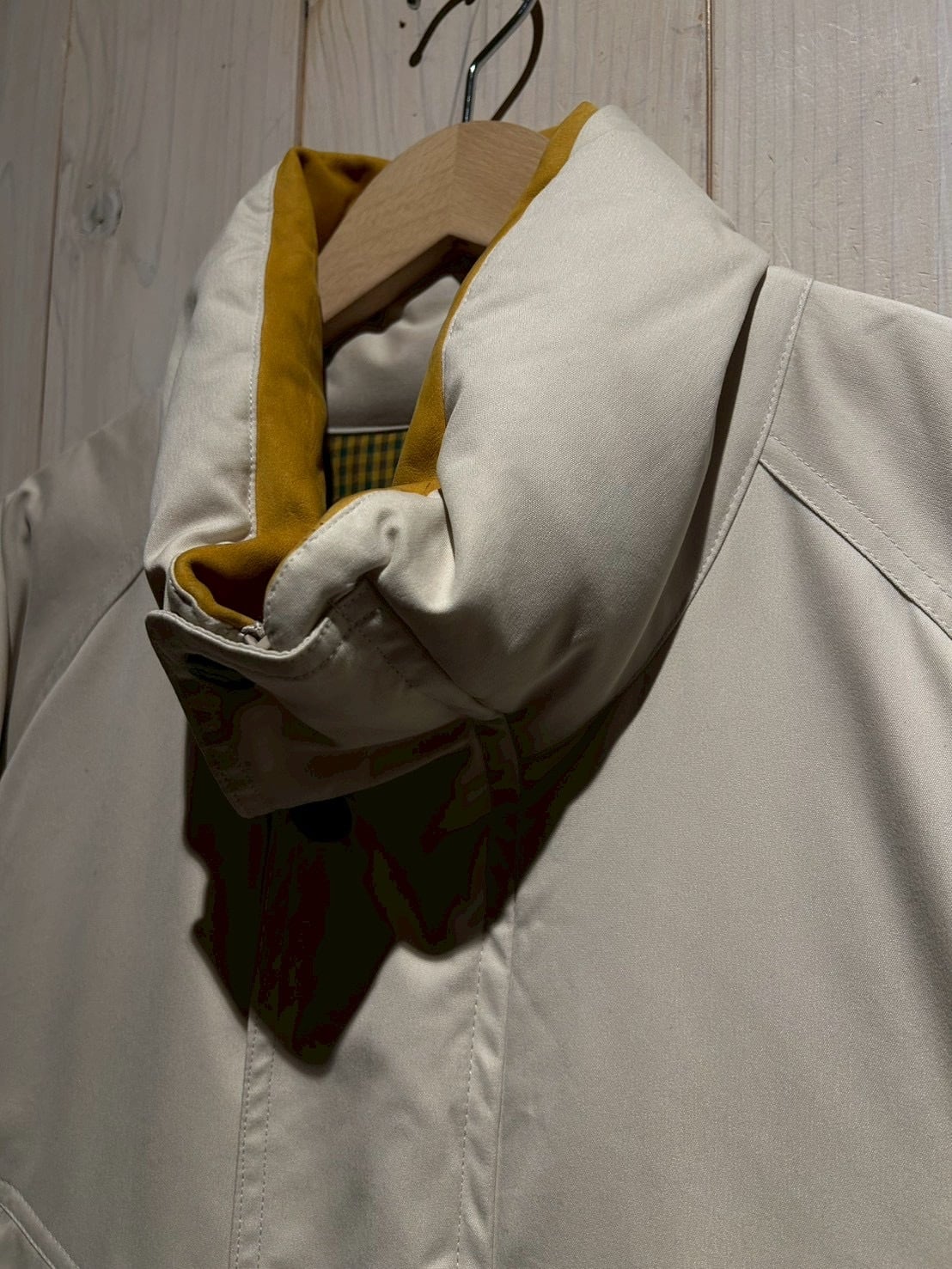 首元はボリュームのあるスタンドカラー仕様で、ダウン×フェザーを内包し、防寒性をしっかり確保。内側にはチェックライニングを配し、着脱時に覗くカラーアクセントもNAUTICAらしいポイント。フロントはスナップボタン仕様、ハンドウォーマーポケットも完備され、日常使いに十分な実用性も◎