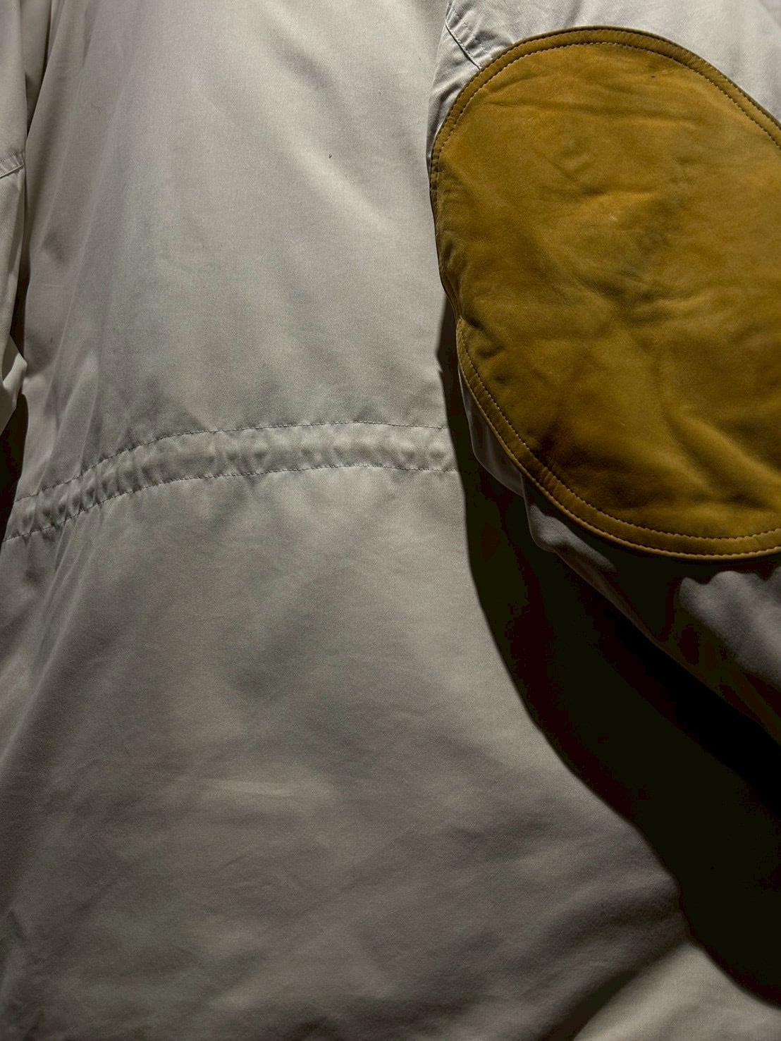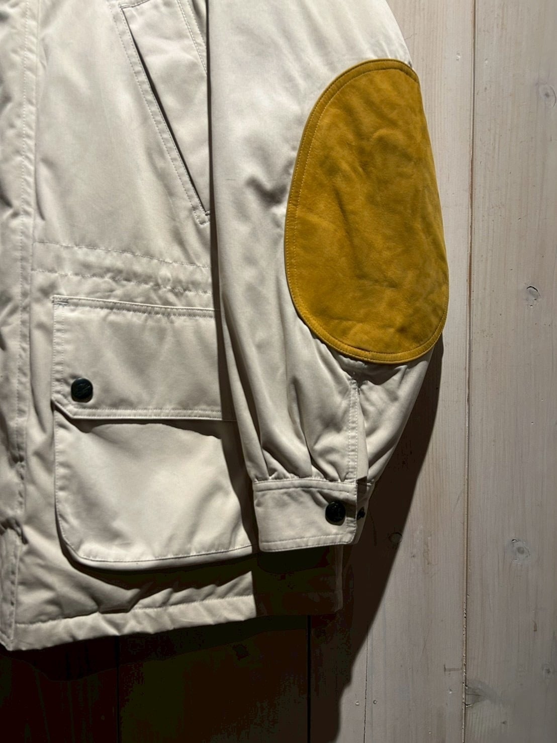 ボディには程よくハリのあるコットン×マイクロポリエステルのシェルを採用。カラーは柔らかく上品なアイボリーで、クリーンさとアウトドアの無骨さが合わさった表情が魅力です。