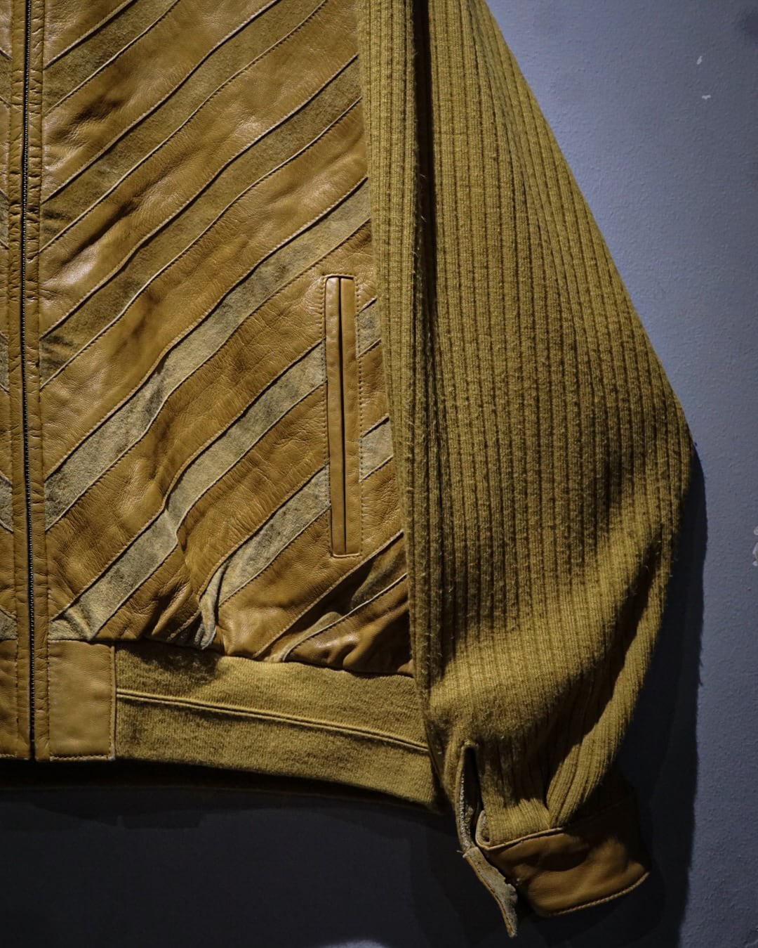 レザーとニットという異素材の組み合わせを、洗練された一着へと昇華した上質なジャケットです。