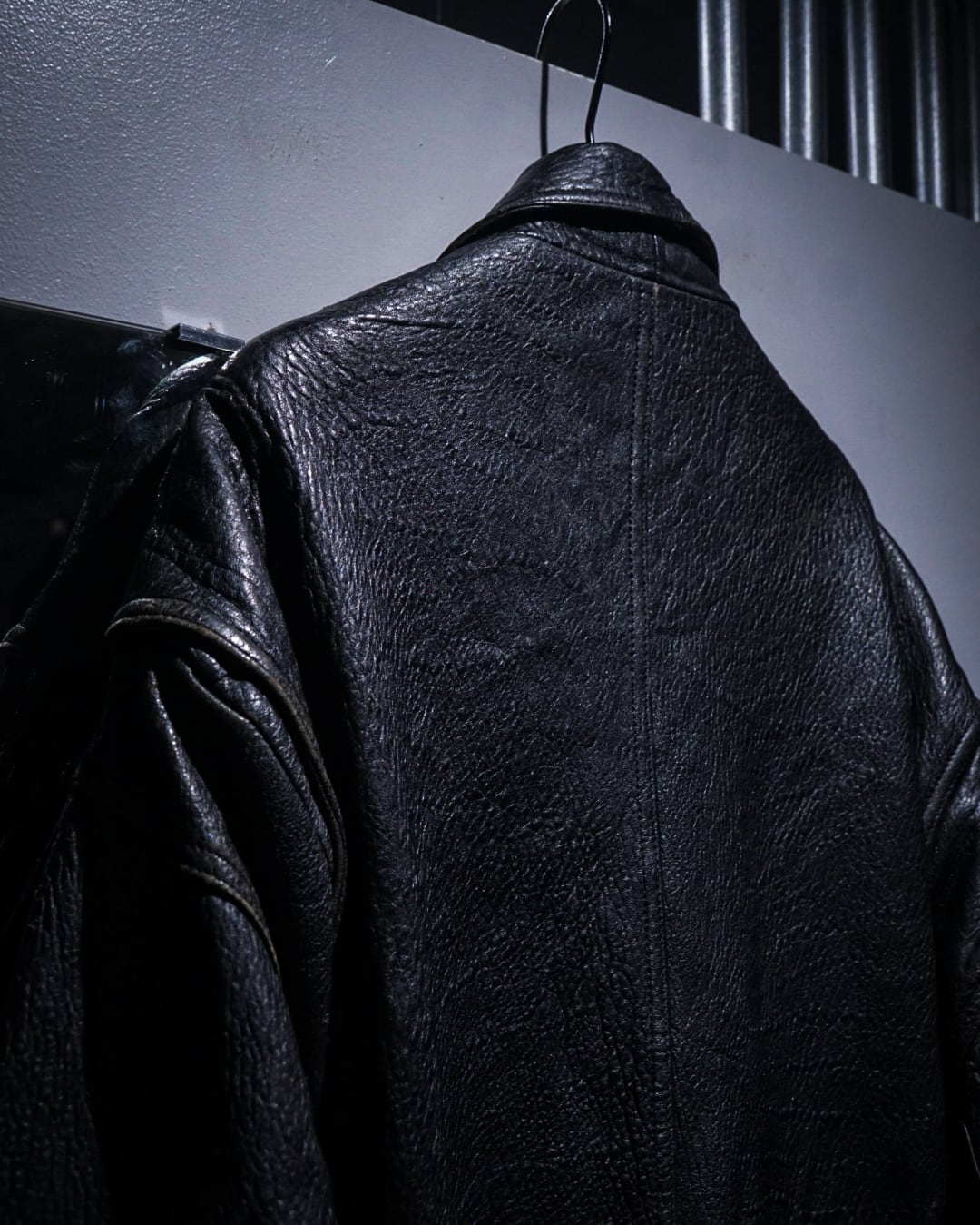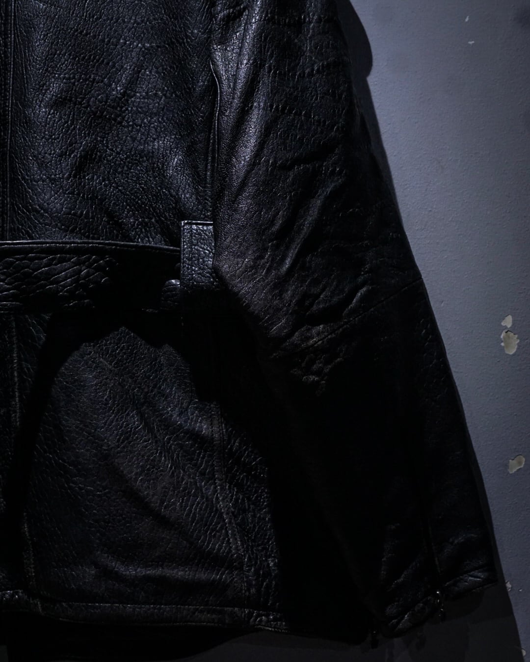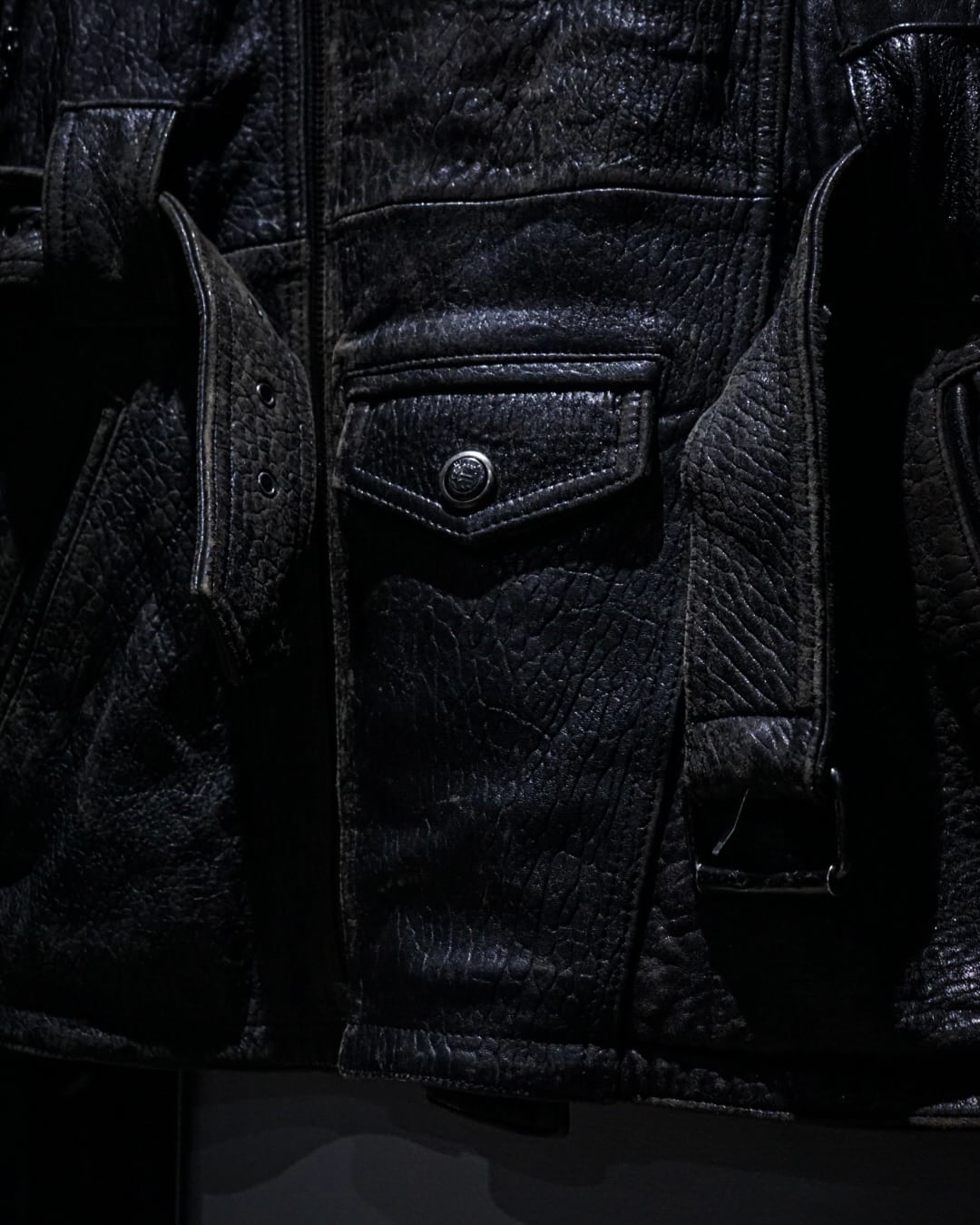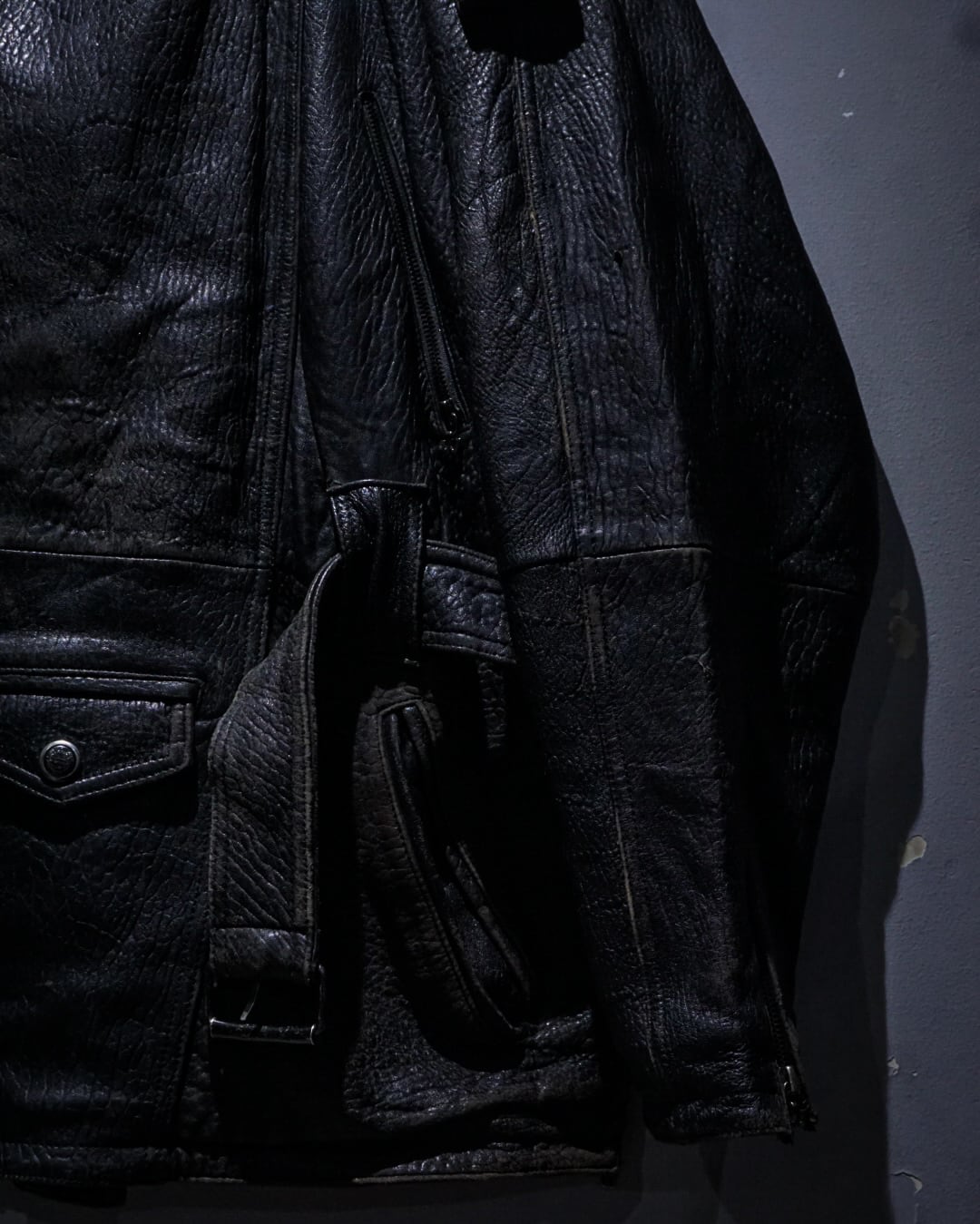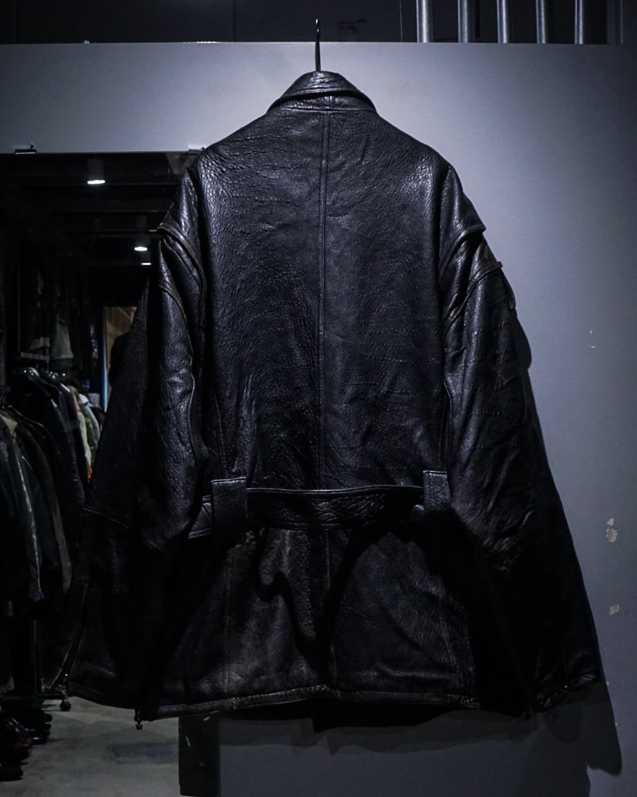 レザーの迫力、ギミックの多さ、そして稀有なシルエット。存在感のあるスペシャルな一着です。