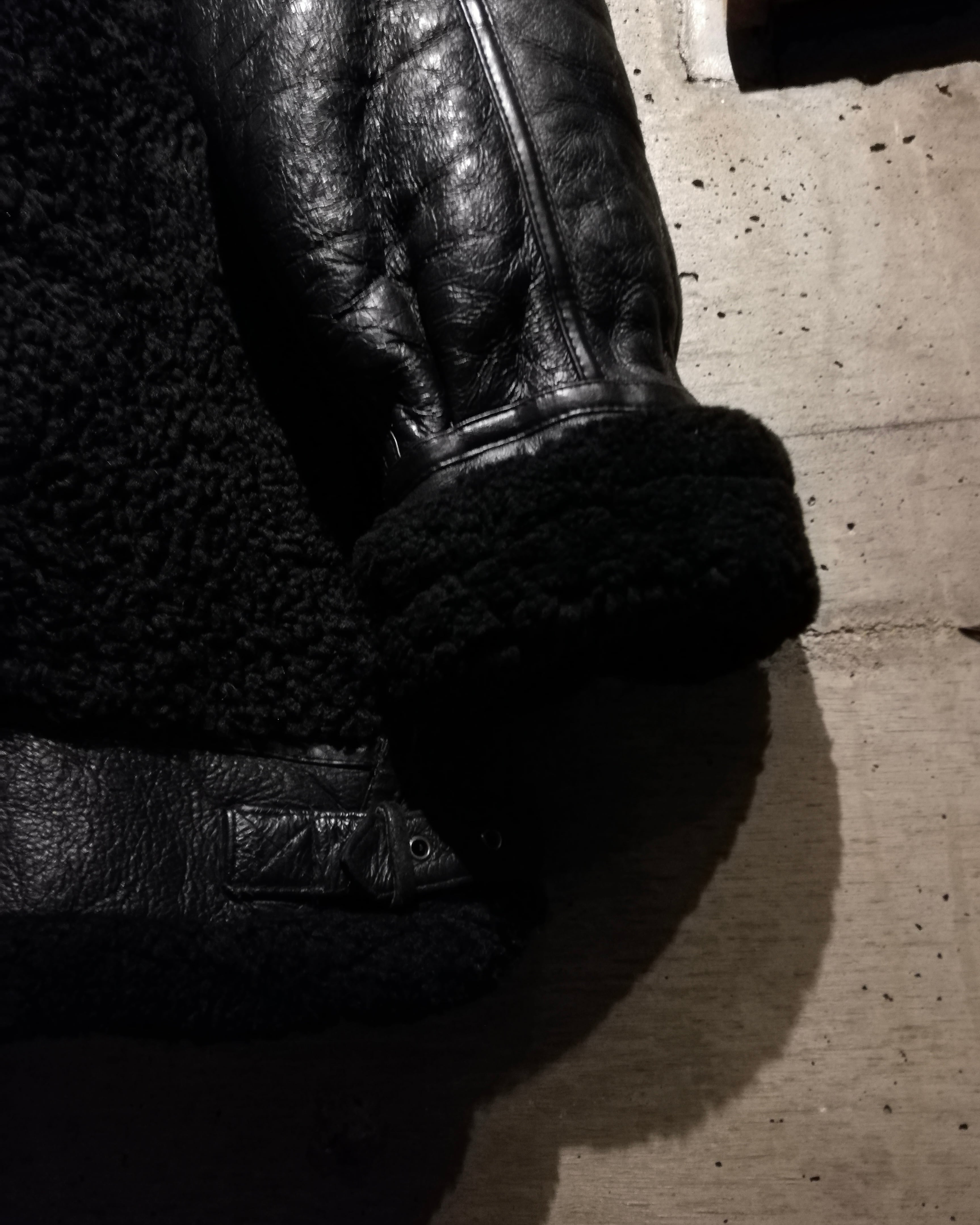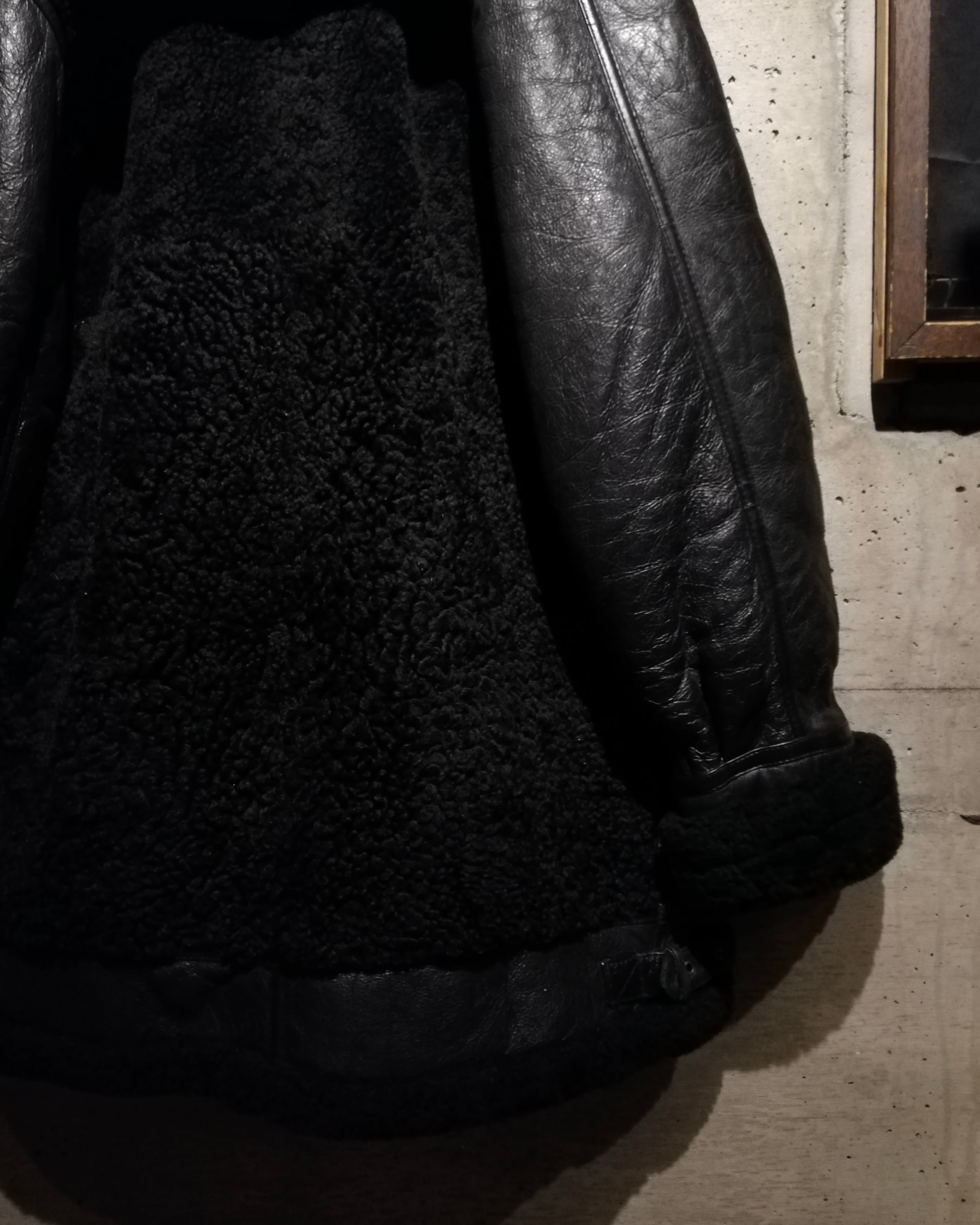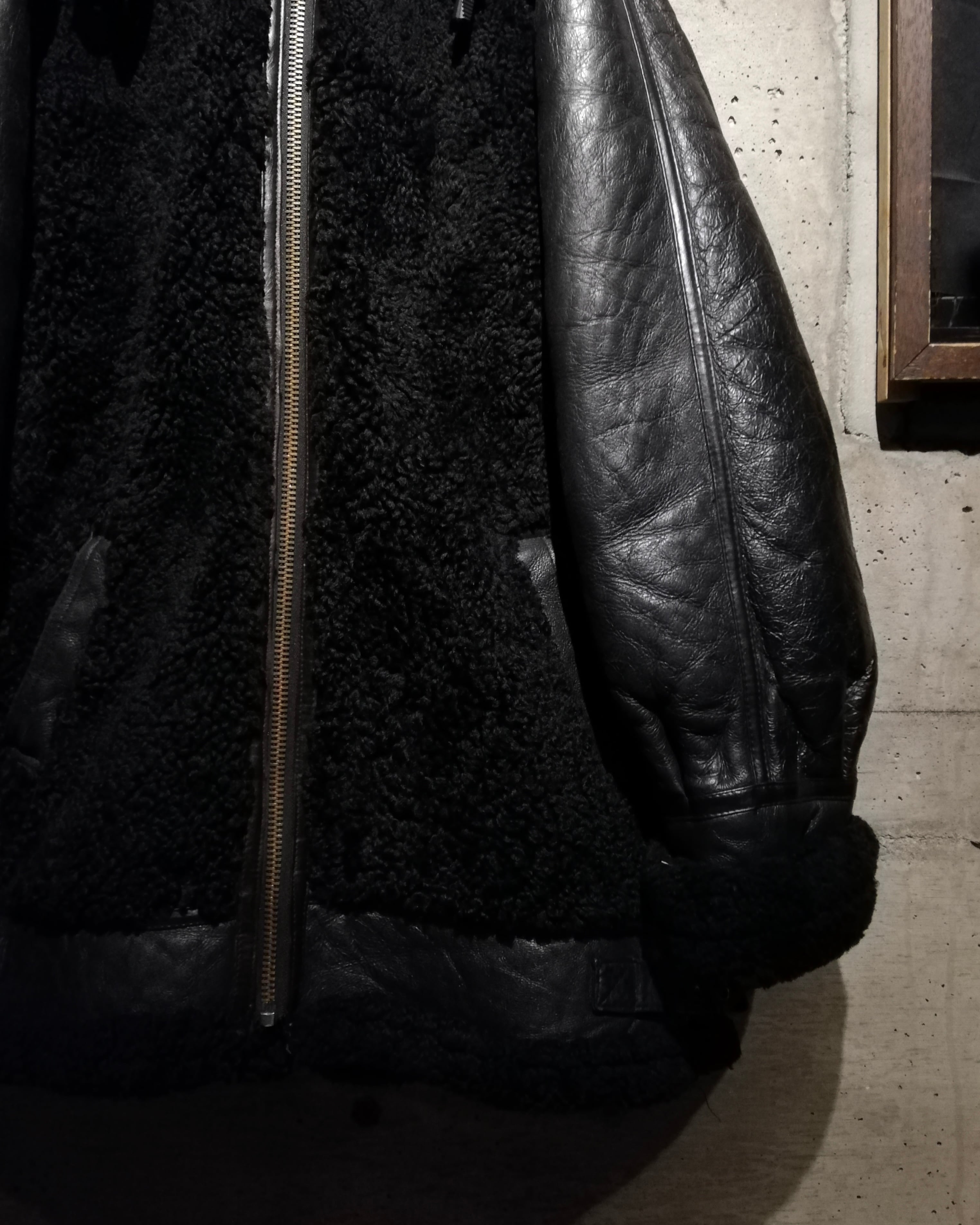 極上のリアルムートンを使用し、表面の柔らかな毛皮、裏面の艶やかな皮革の質感を利用して切り替えを効かせた、B-3タイプのスペシャルなムートンジャケット。