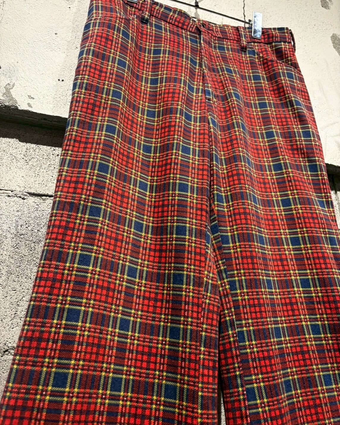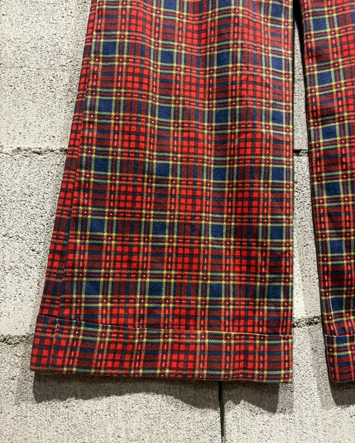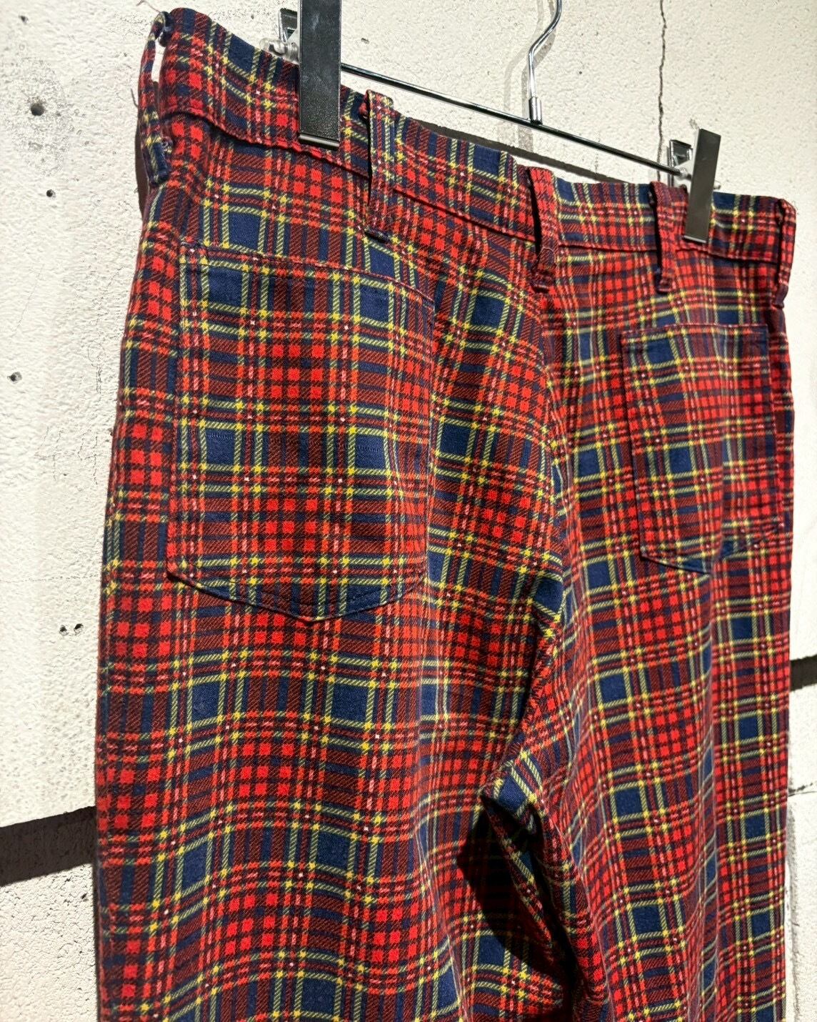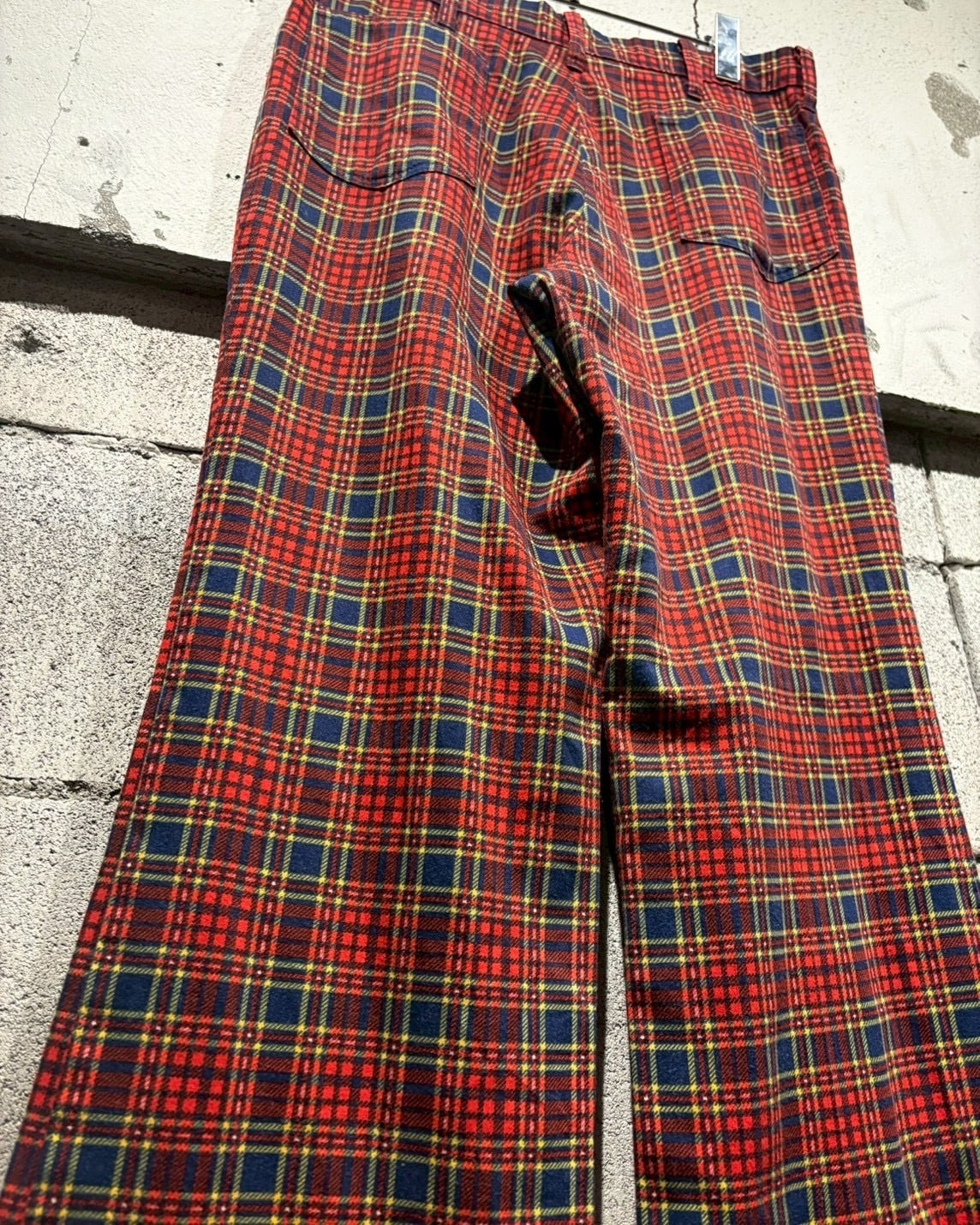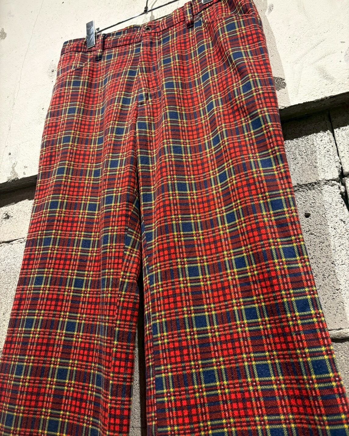 チェック柄×ワイドフレアという時代性とデザイン性を兼ね備えつつ、現代のスタイリングにもしっかりとハマるワイドフレアパンツの逸品です。