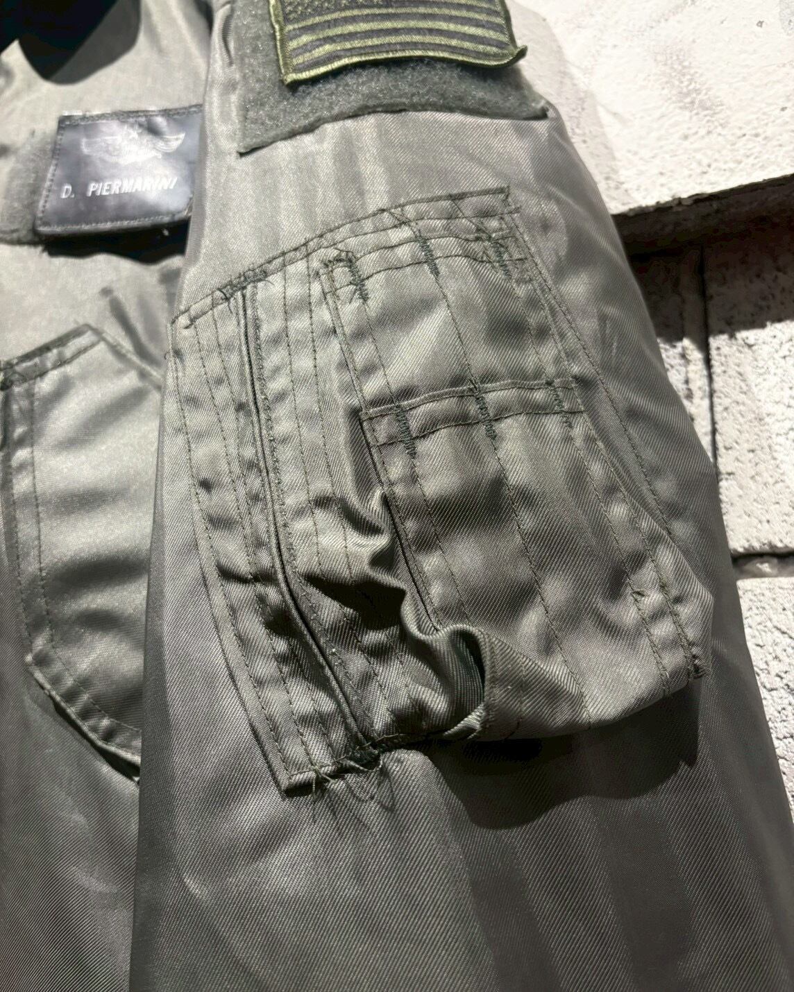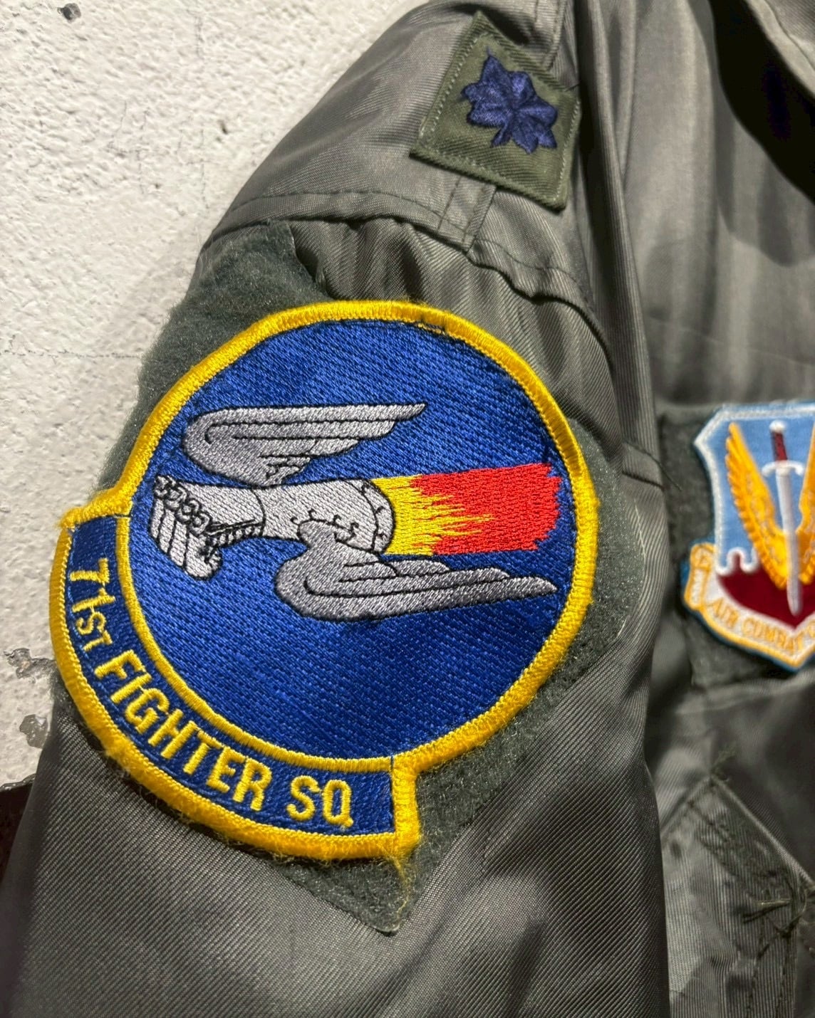 胸元やアームには複数のワッペンが配置され、ミリタリーアイテムならではの存在感を演出。