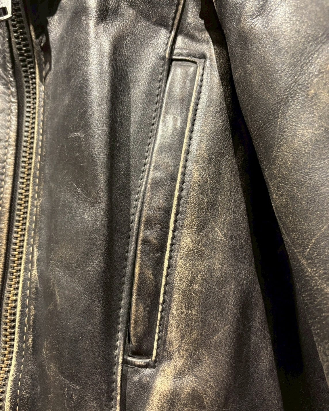 裏地はキルティング仕様で、防寒性と着用時の快適さを両立。レザー特有の重量感を感じさせつつも動きを妨げないのも◎