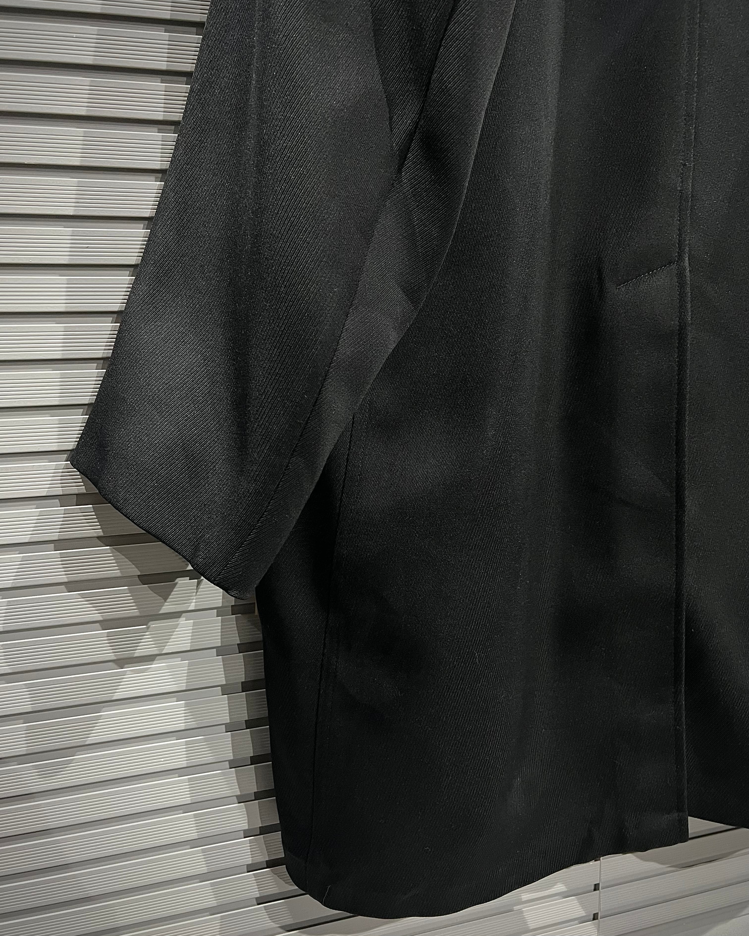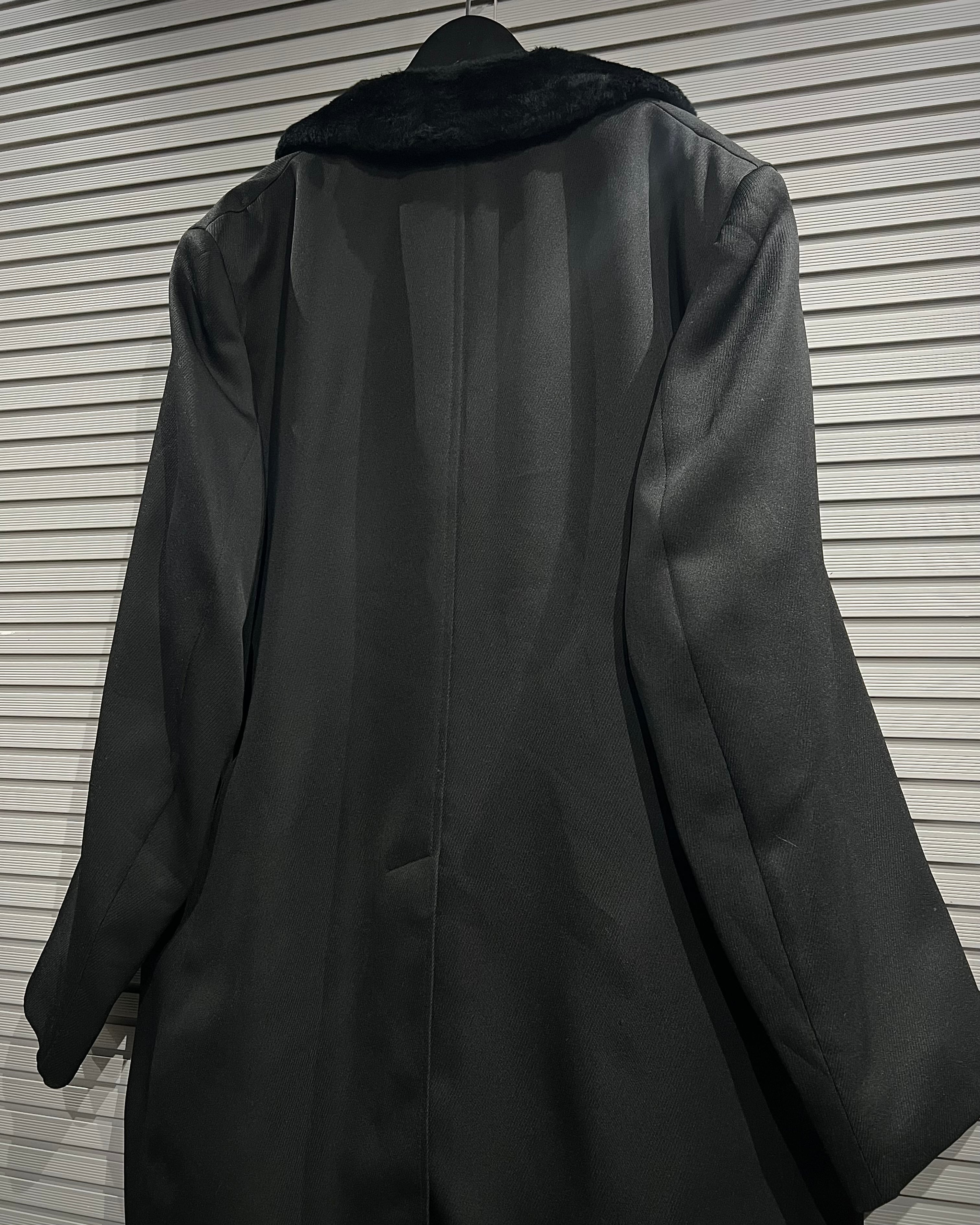ボディにはしなやかなファブリックを採用し、襟元にはボリュームのあるファーをあしらい、無骨さの中に色気を感じさせる表情をプラス。シンプルながらも存在感のあるバランスで、ギャングコートらしいムードをしっかりと押さえています。