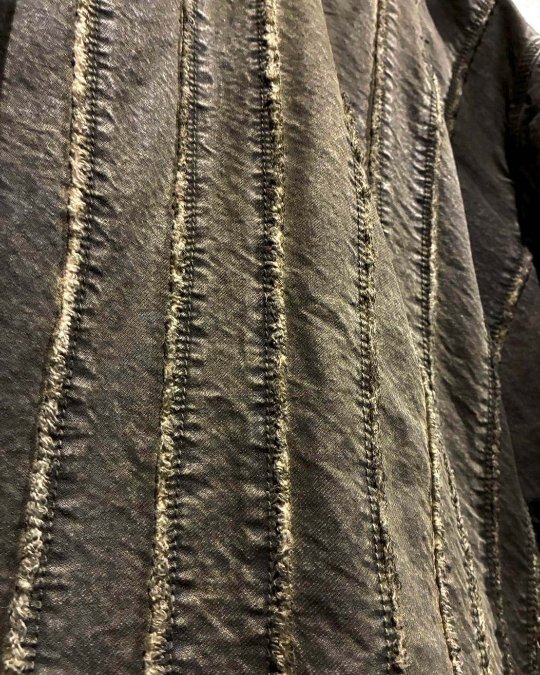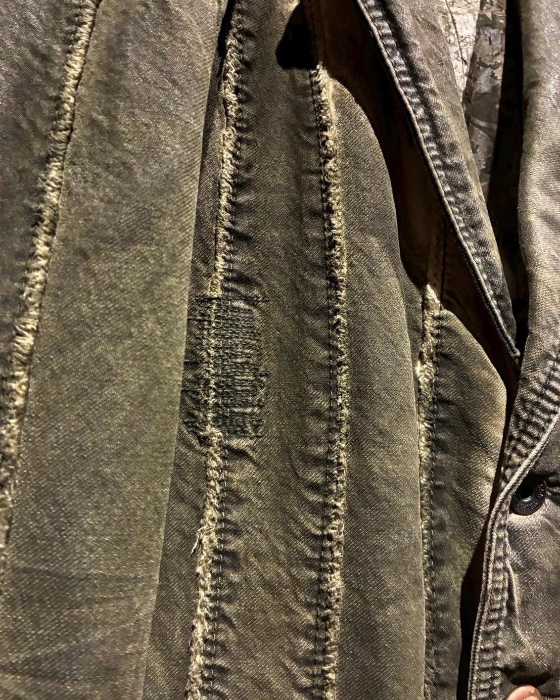 ボディには程よく肉感のあるデニムでパッチワーク的な切り替えを施し、縦に走る切り替えラインが立体感を生み、ジャケット全体に奥行きのある表情を演出しています。