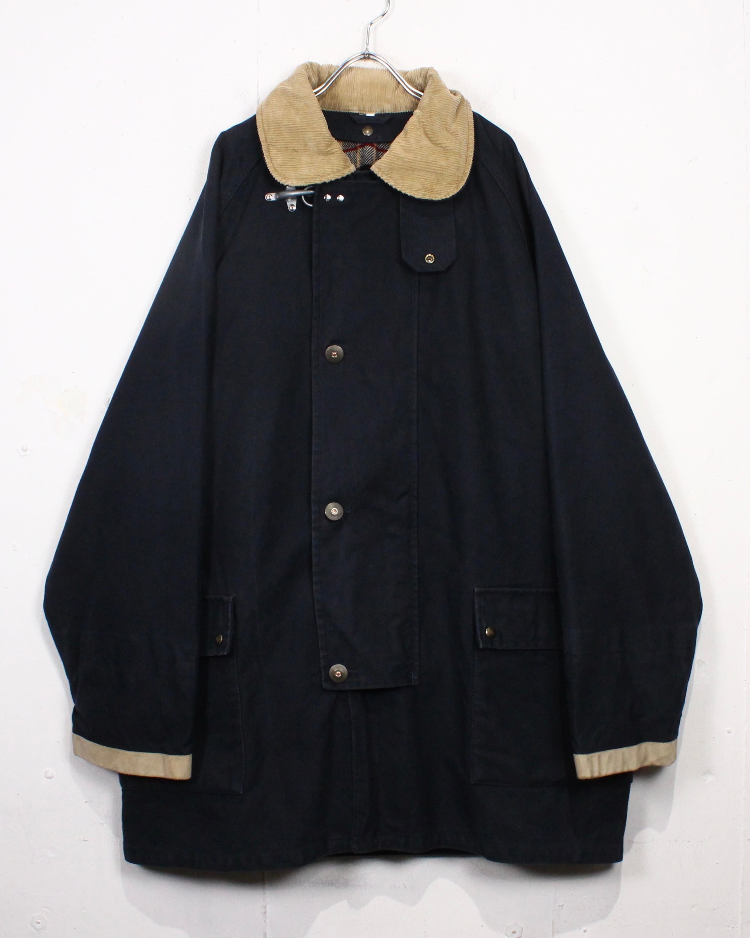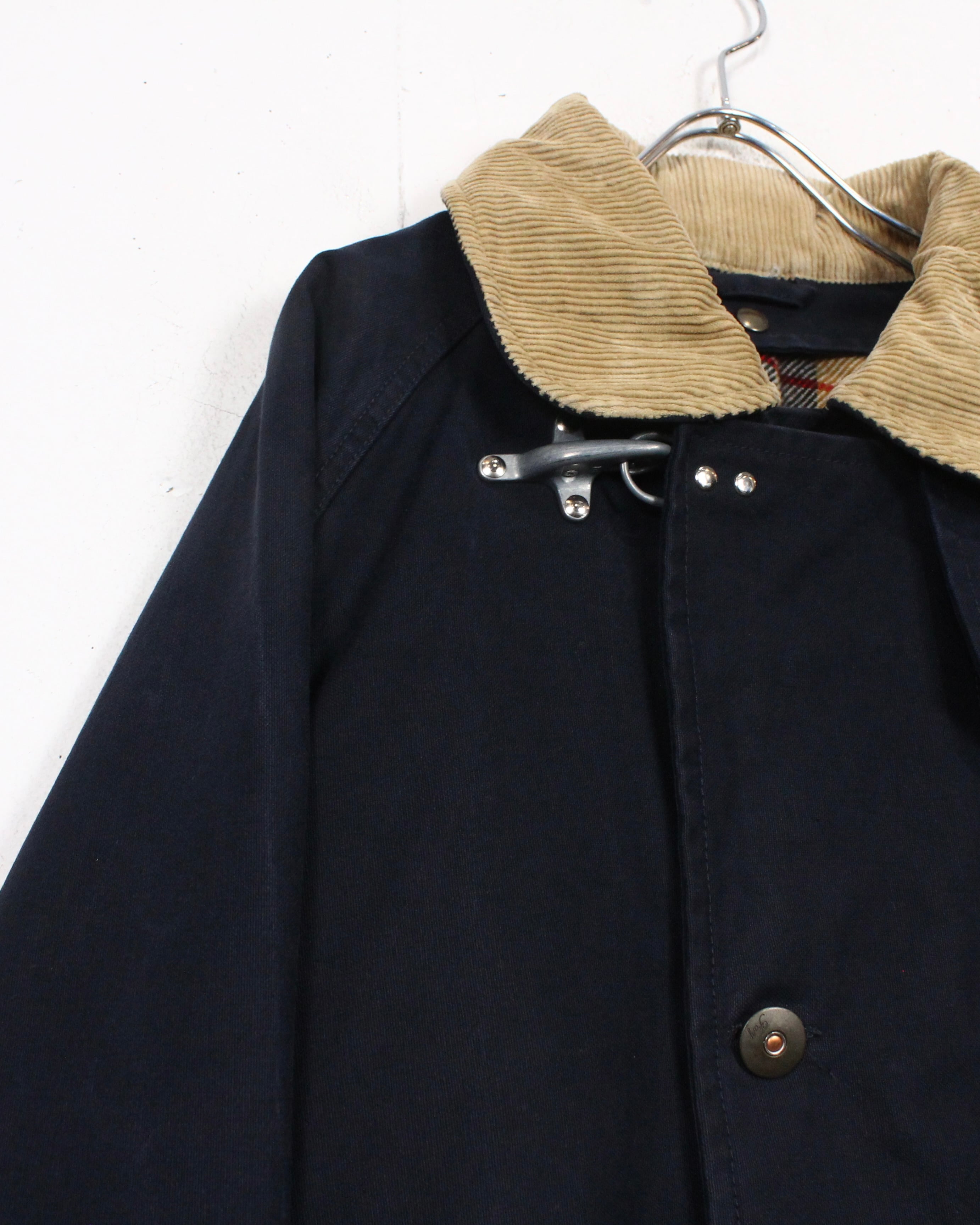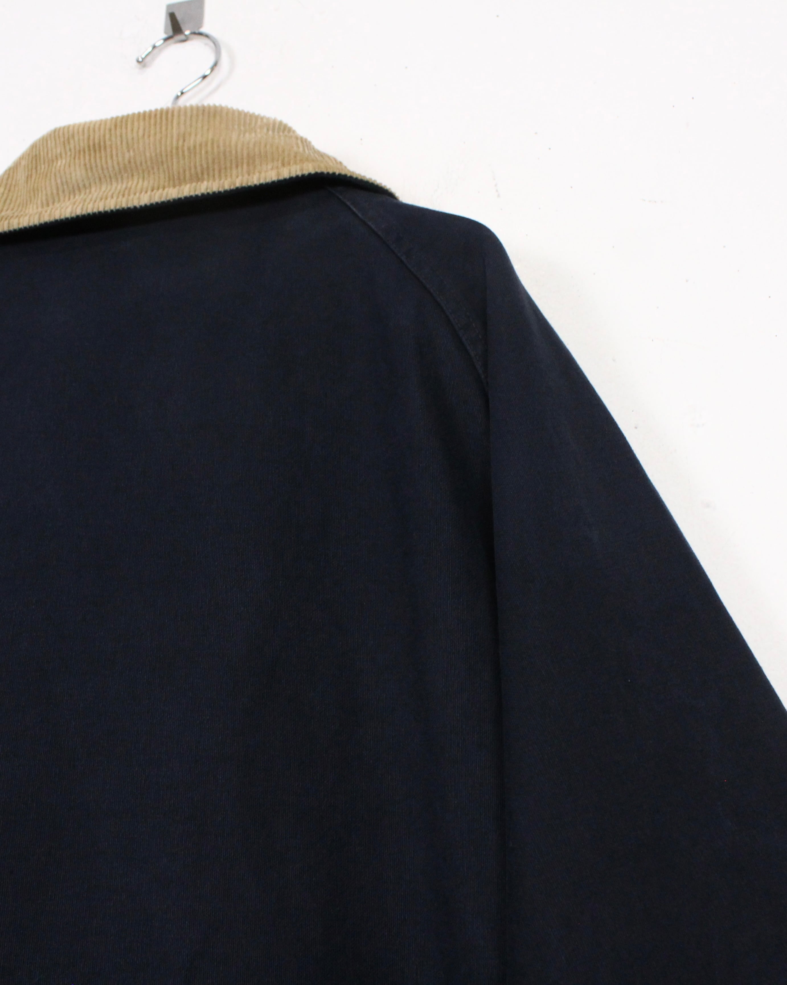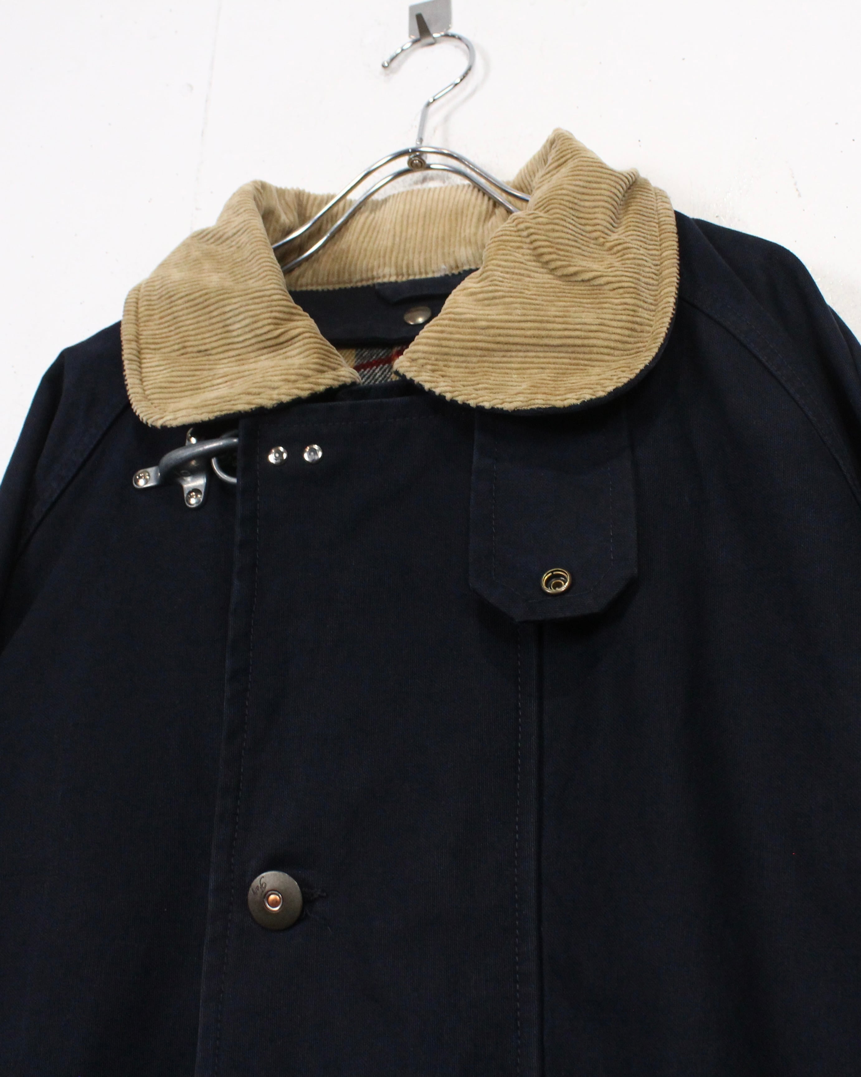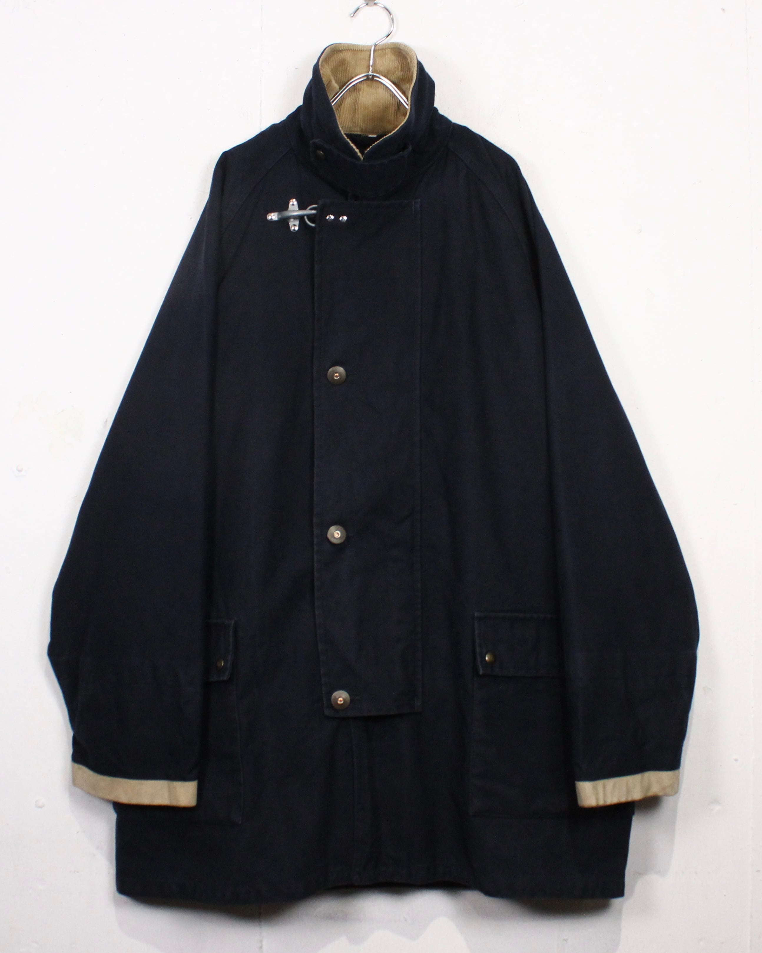 肉厚でタフな生地を使用し、ワーク由来の無骨さとラグジュアリーブランドならではの上品さが合わさった仕上がり。ネイビーボディにベージュの太畝コーデュロイカラーが映え、クラシックかつタイムレスな表情を演出しています。